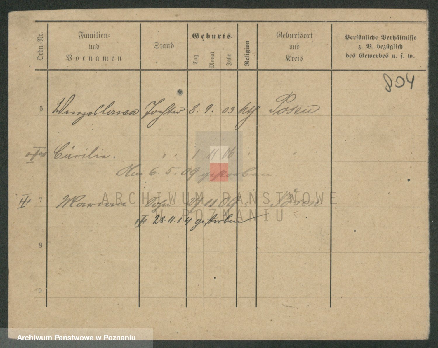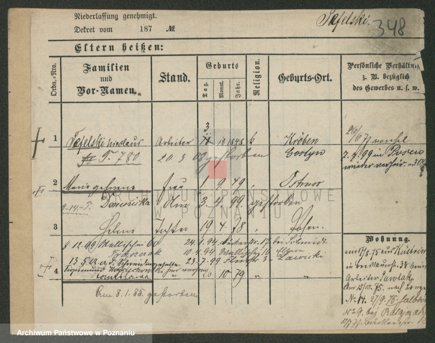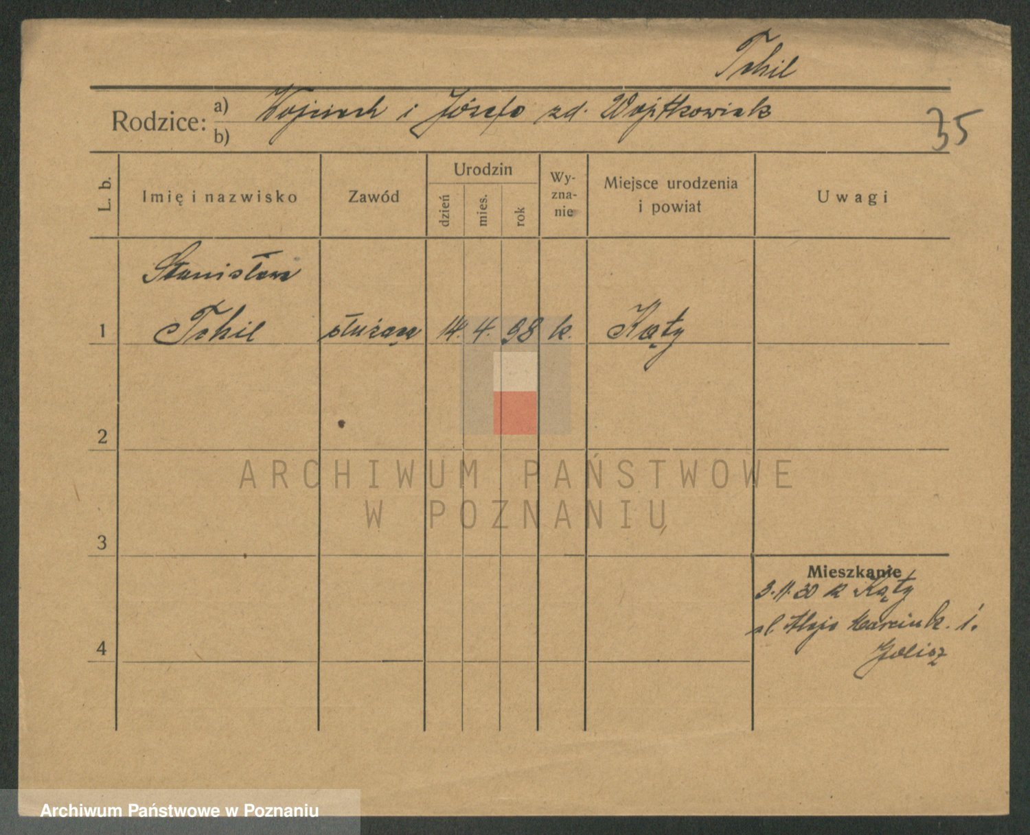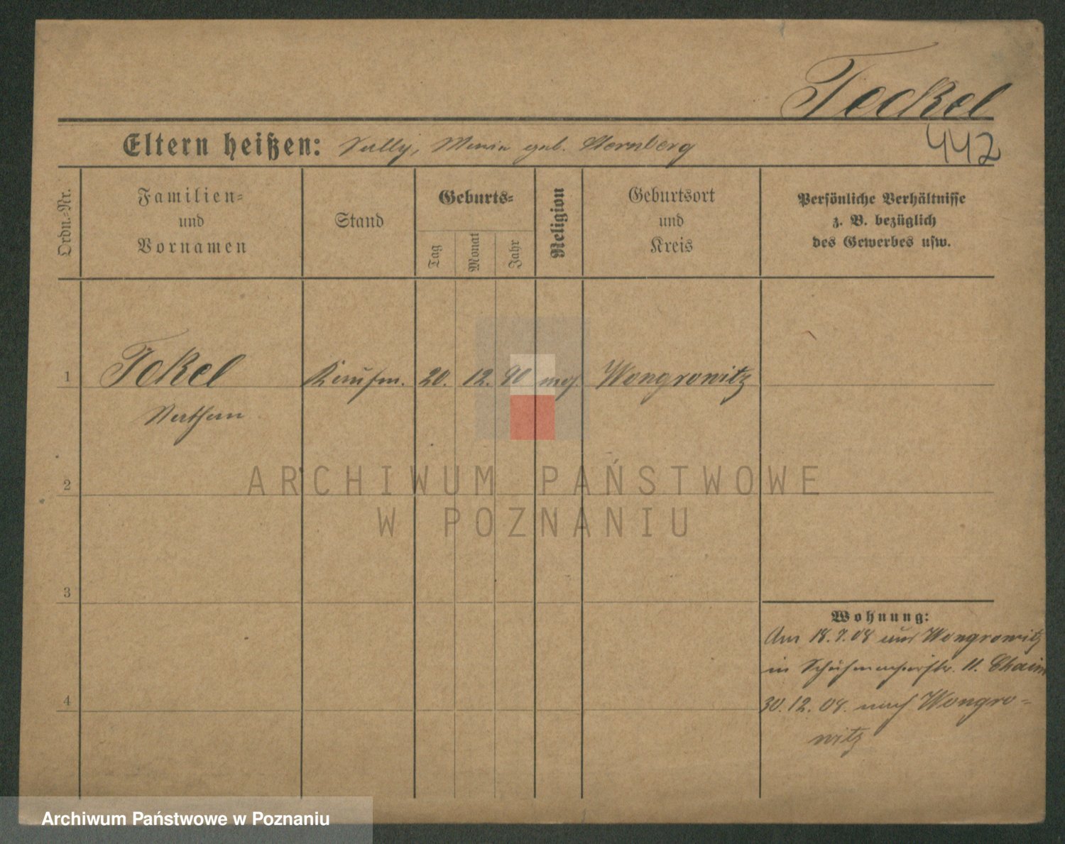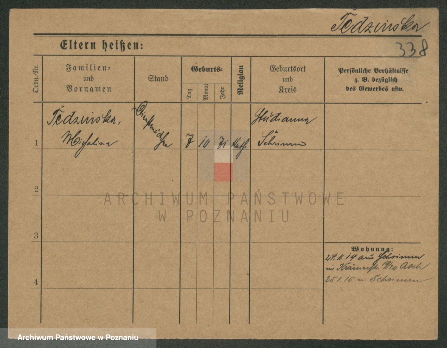 Podgląd karty osobowej dostępny jest po kliknięciu na nazwisko lub ikonkę karty. Można dokonywać powiększenia (ikony na górze) lub przechodzić między kolejnymi skanami (strzałki po bokach).