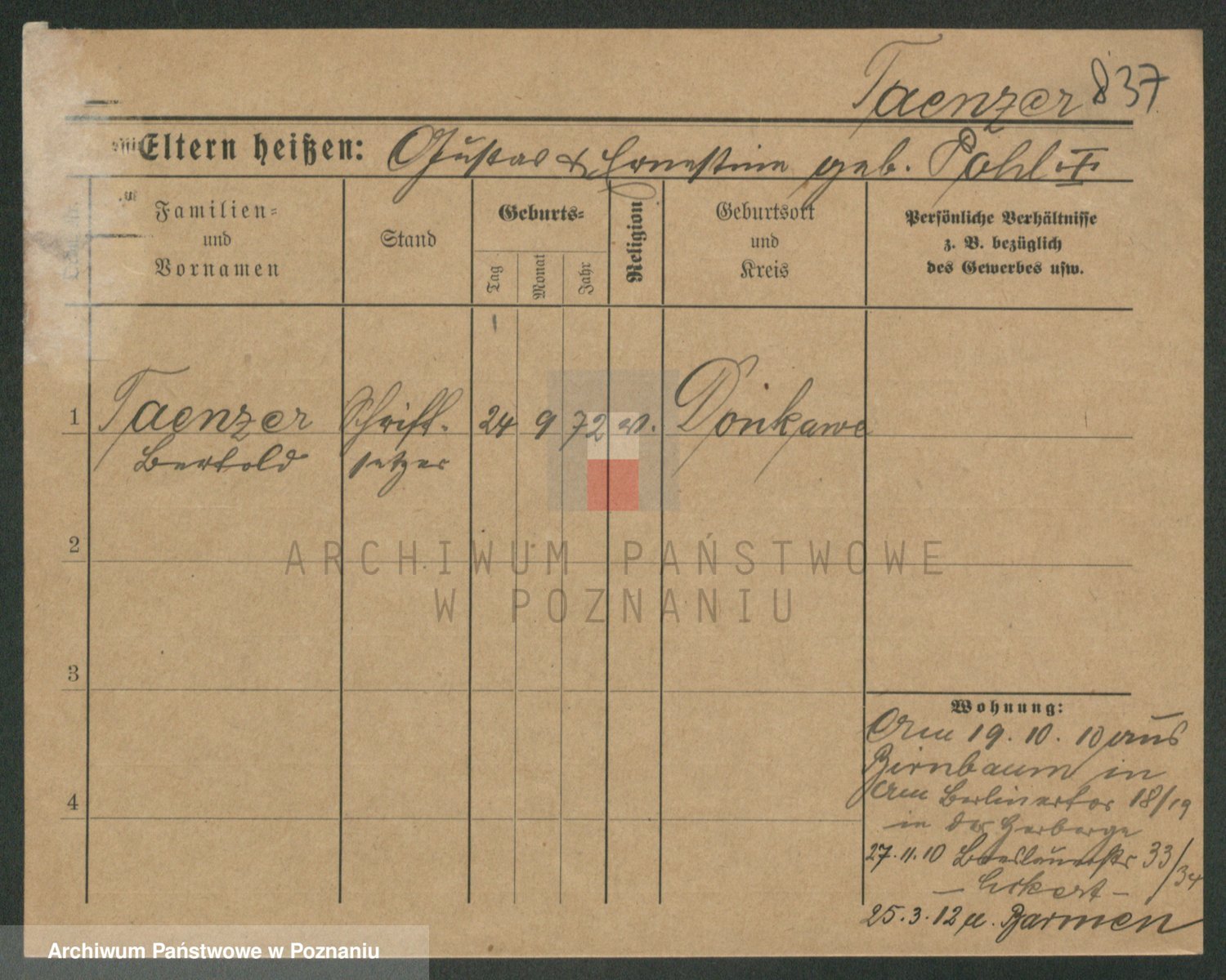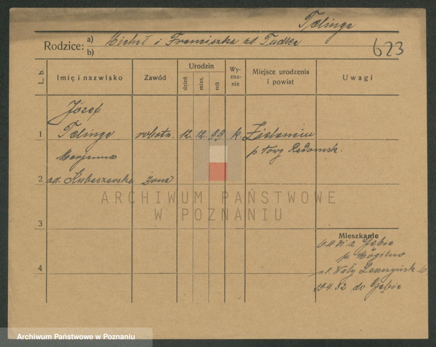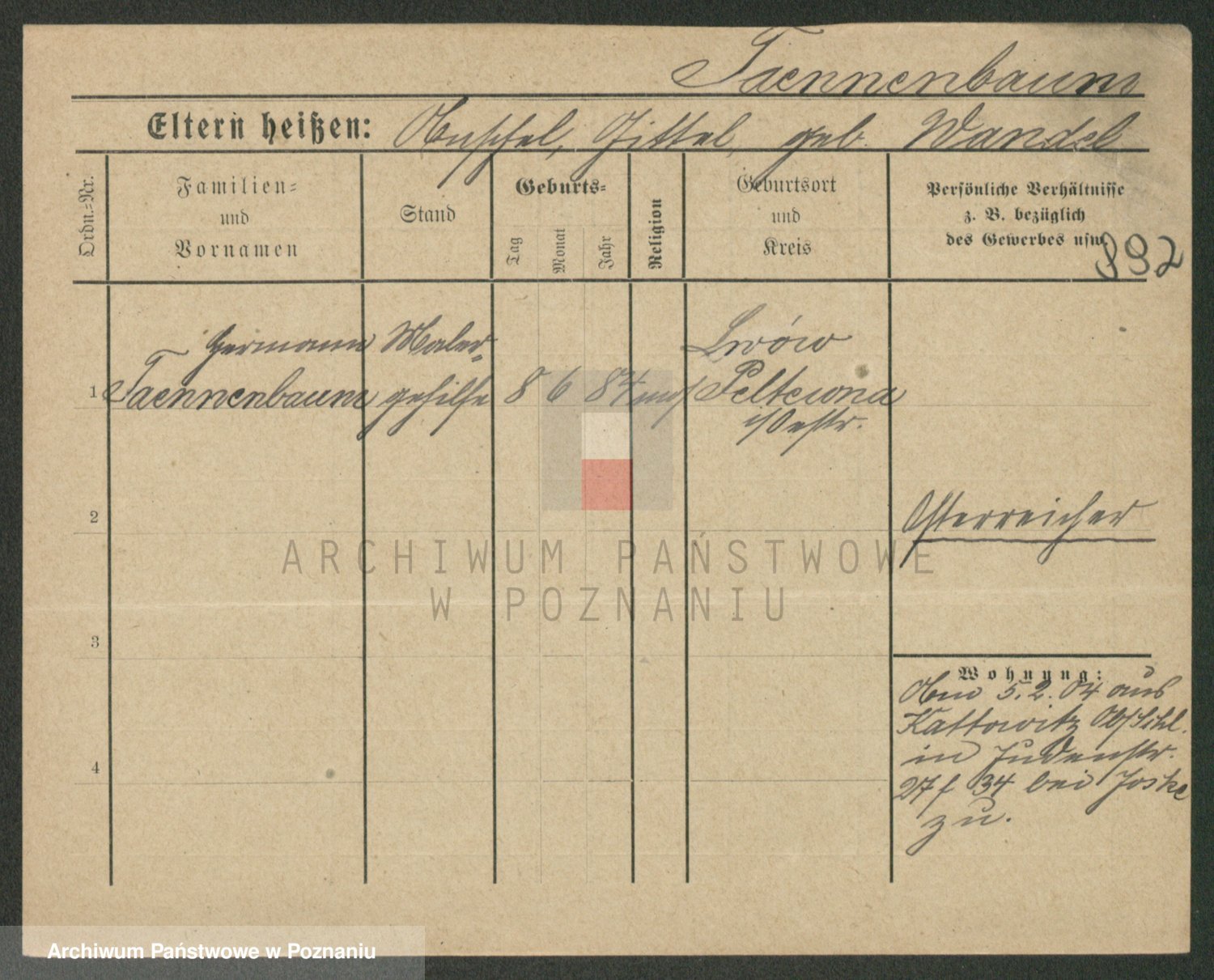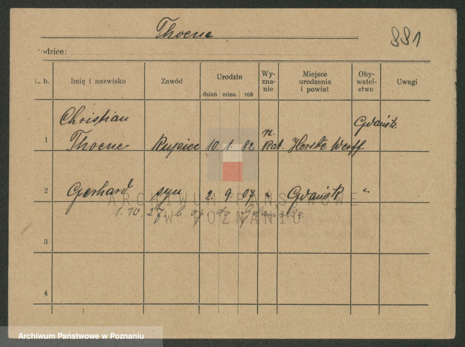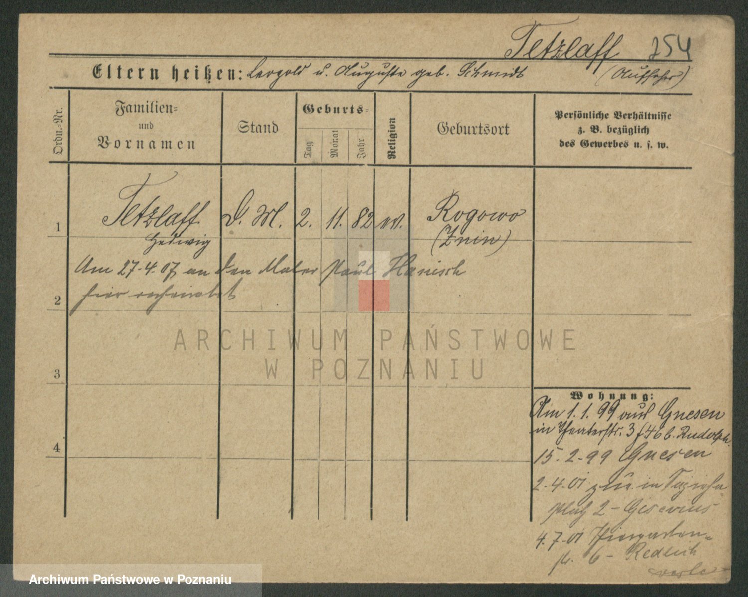 Podgląd karty osobowej dostępny jest po kliknięciu na nazwisko lub ikonkę karty. Można dokonywać powiększenia (ikony na górze) lub przechodzić między kolejnymi skanami (strzałki po bokach).