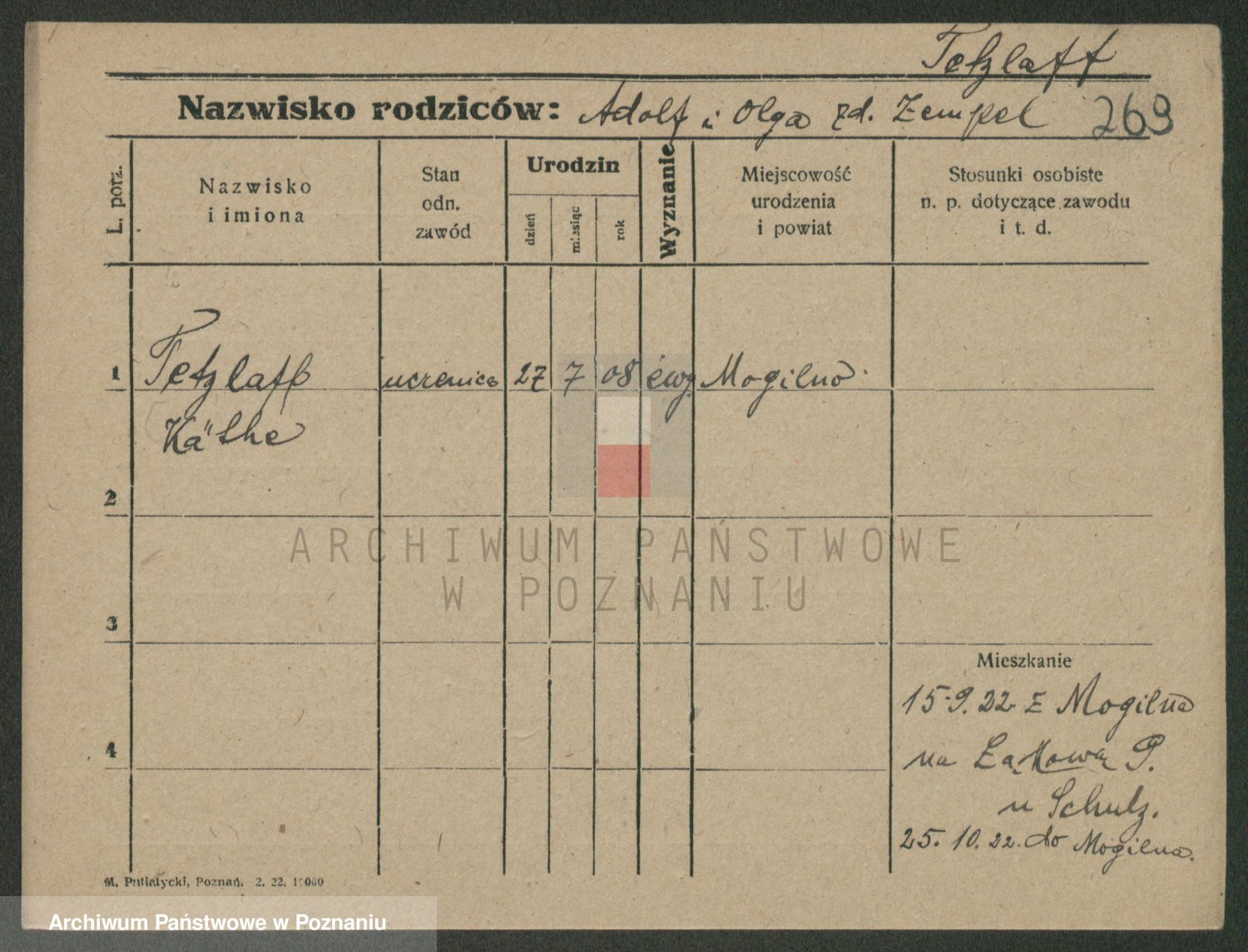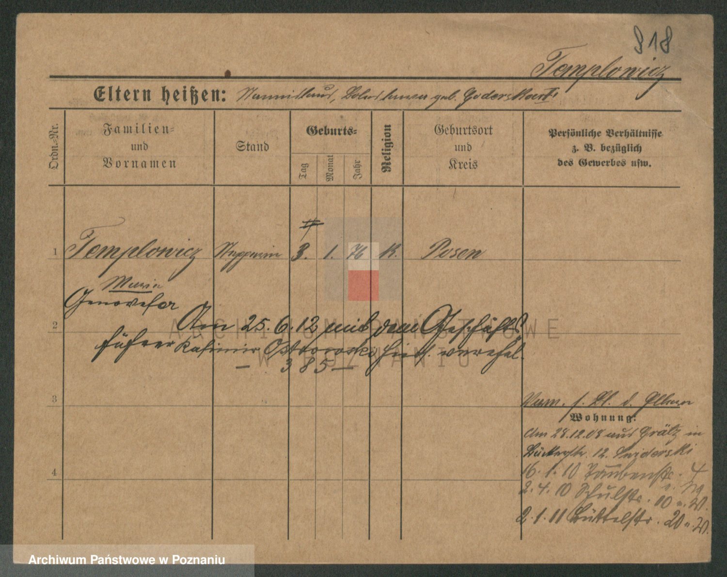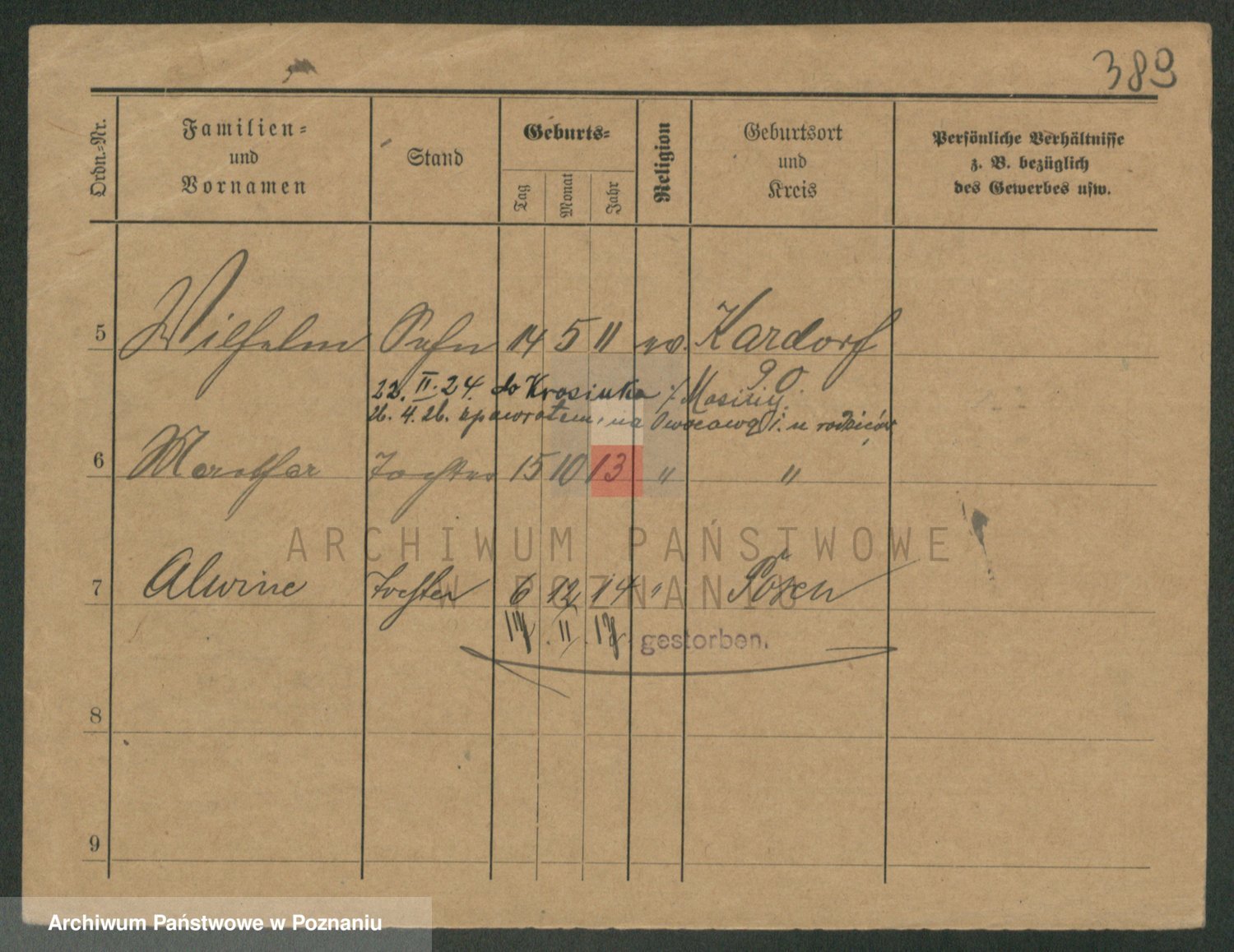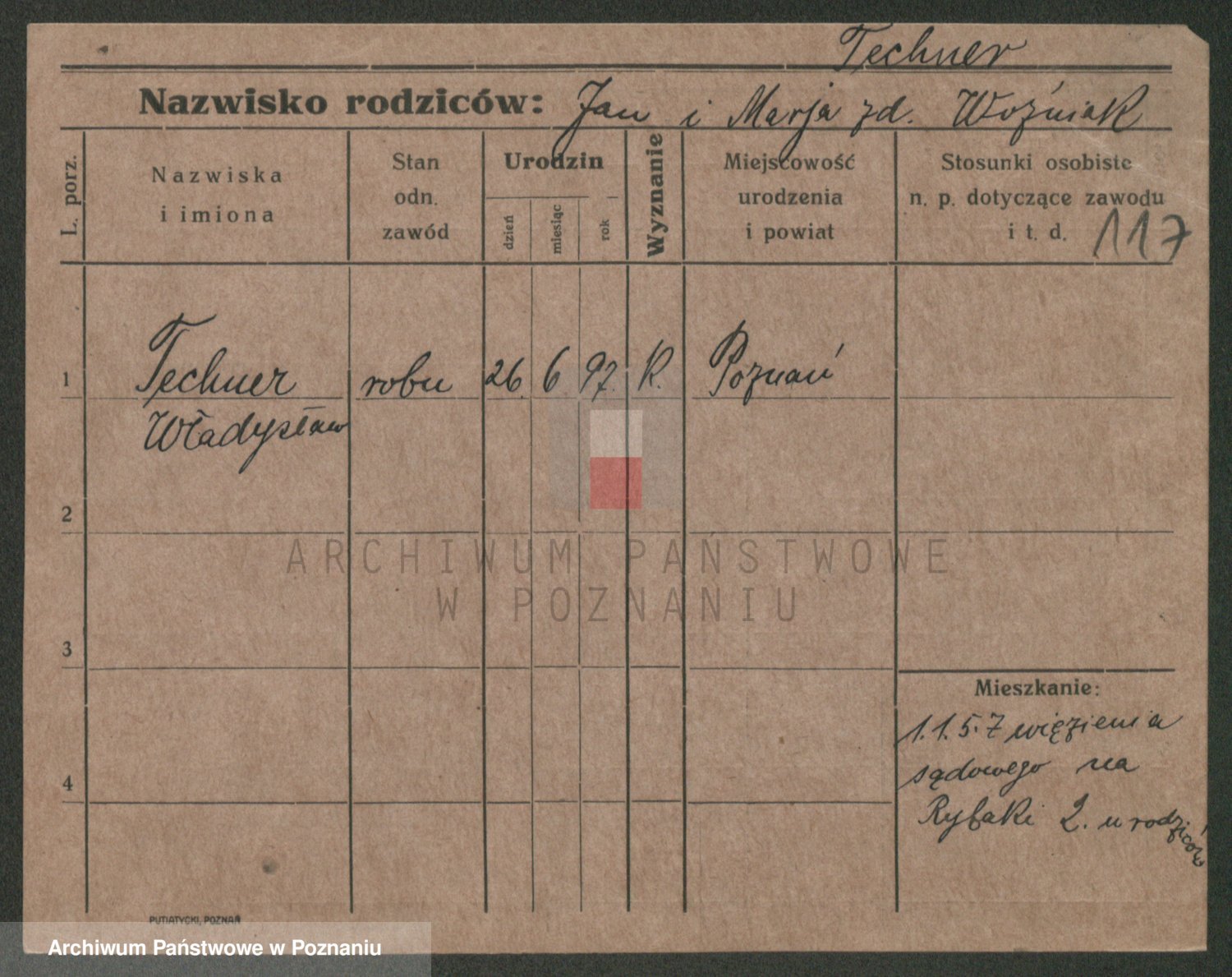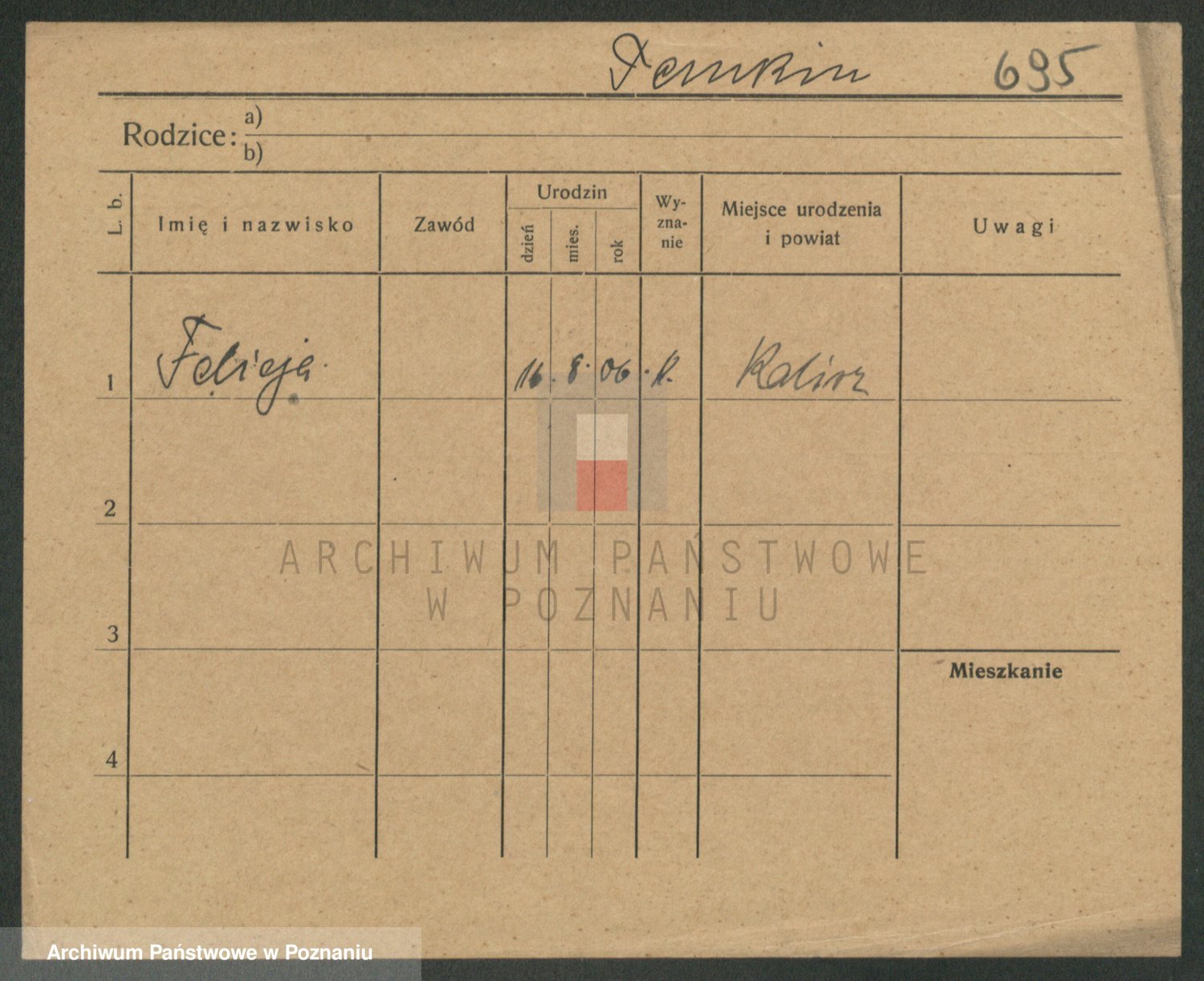 Podgląd karty osobowej dostępny jest po kliknięciu na nazwisko lub ikonkę karty. Można dokonywać powiększenia (ikony na górze) lub przechodzić między kolejnymi skanami (strzałki po bokach).