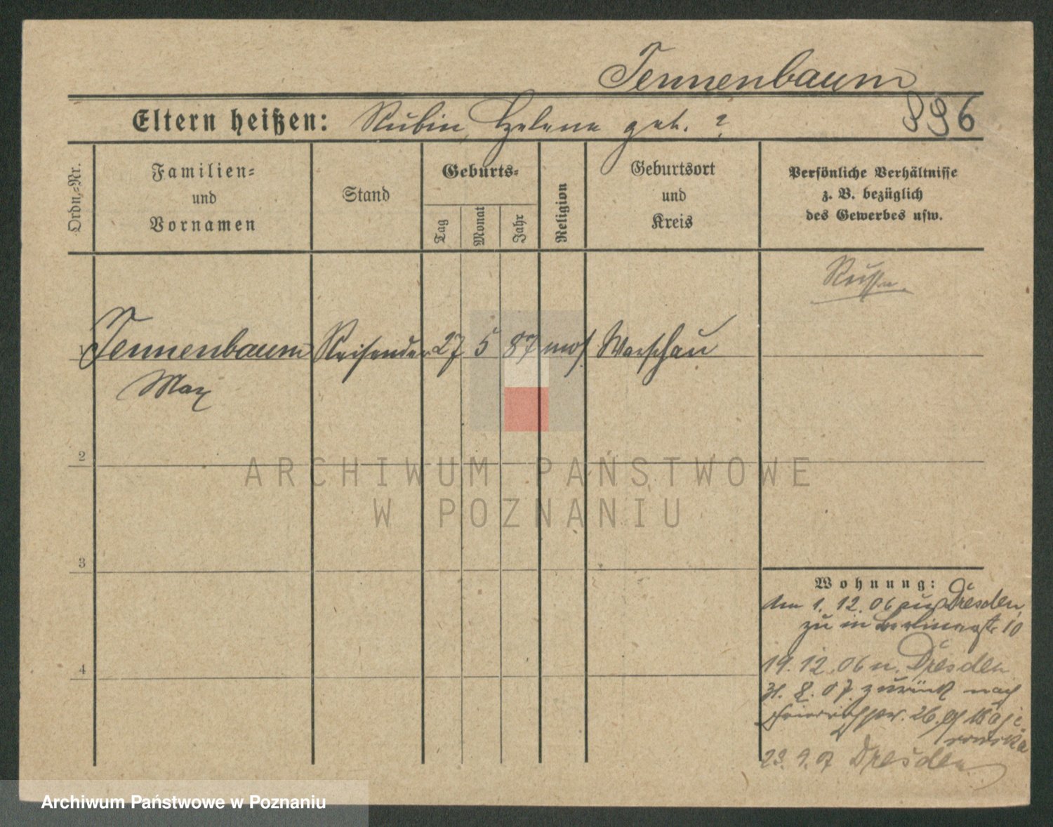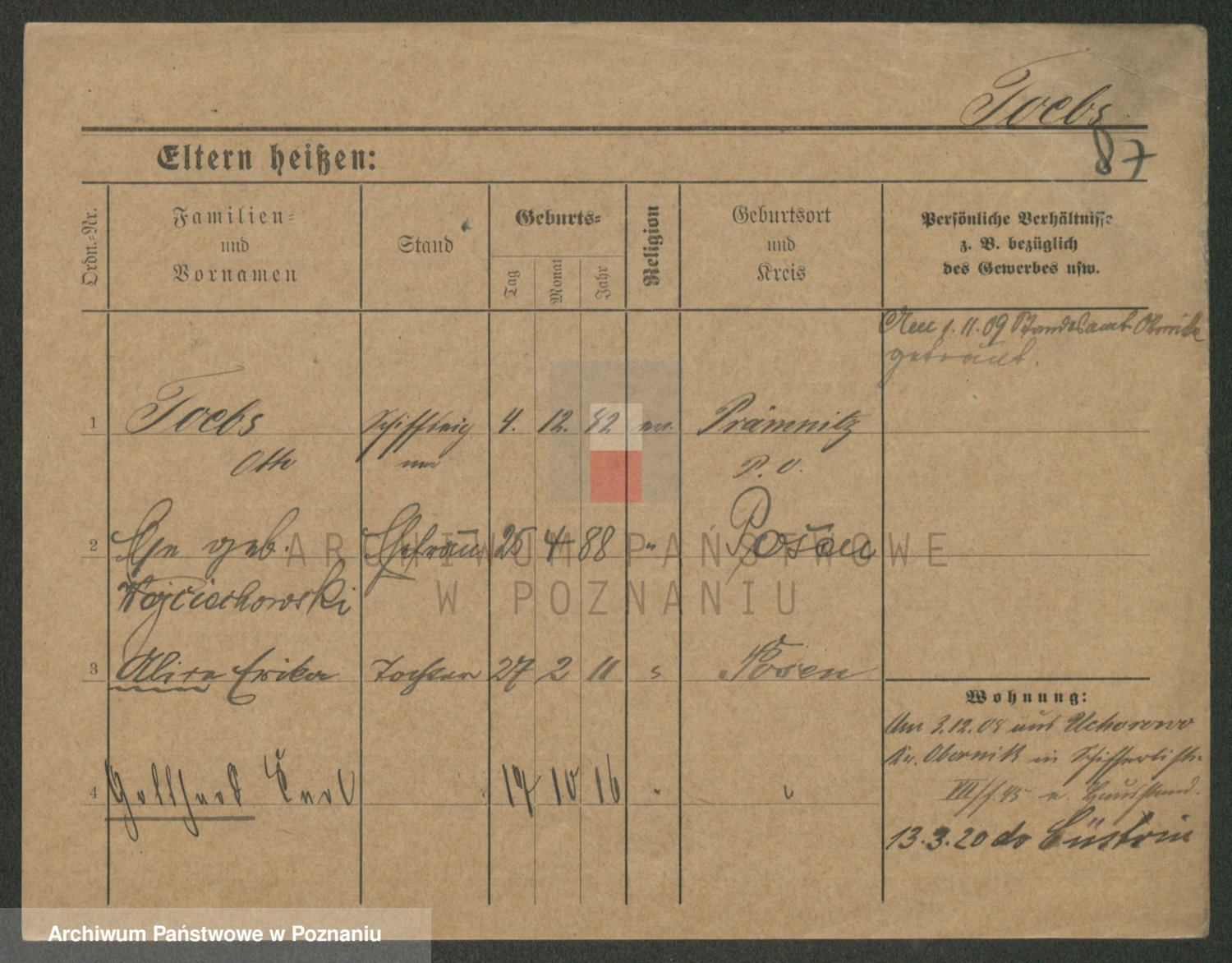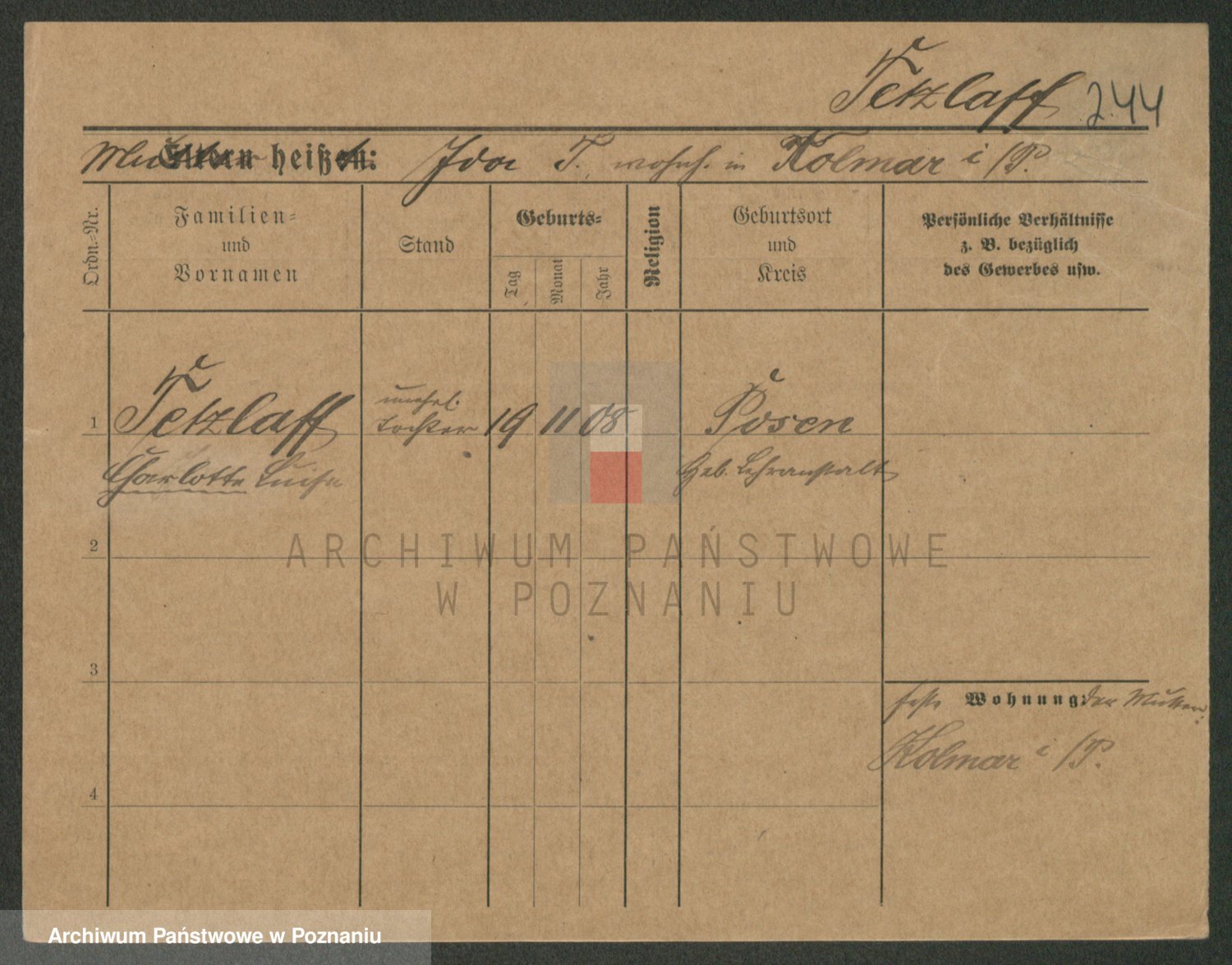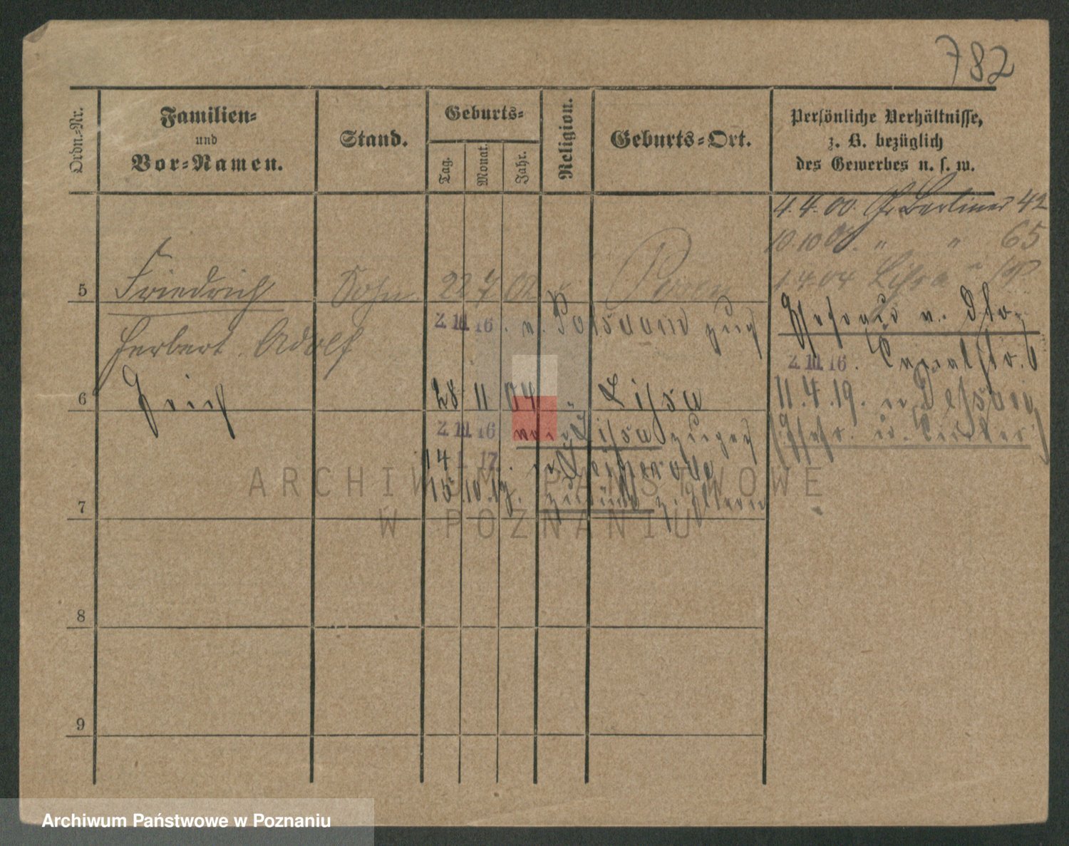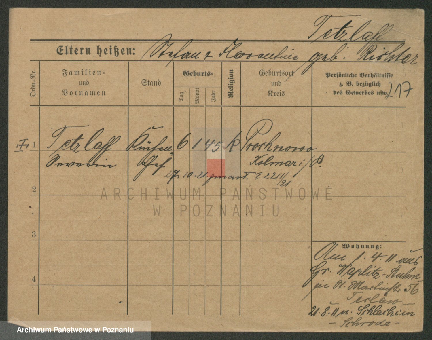 Podgląd karty osobowej dostępny jest po kliknięciu na nazwisko lub ikonkę karty. Można dokonywać powiększenia (ikony na górze) lub przechodzić między kolejnymi skanami (strzałki po bokach).