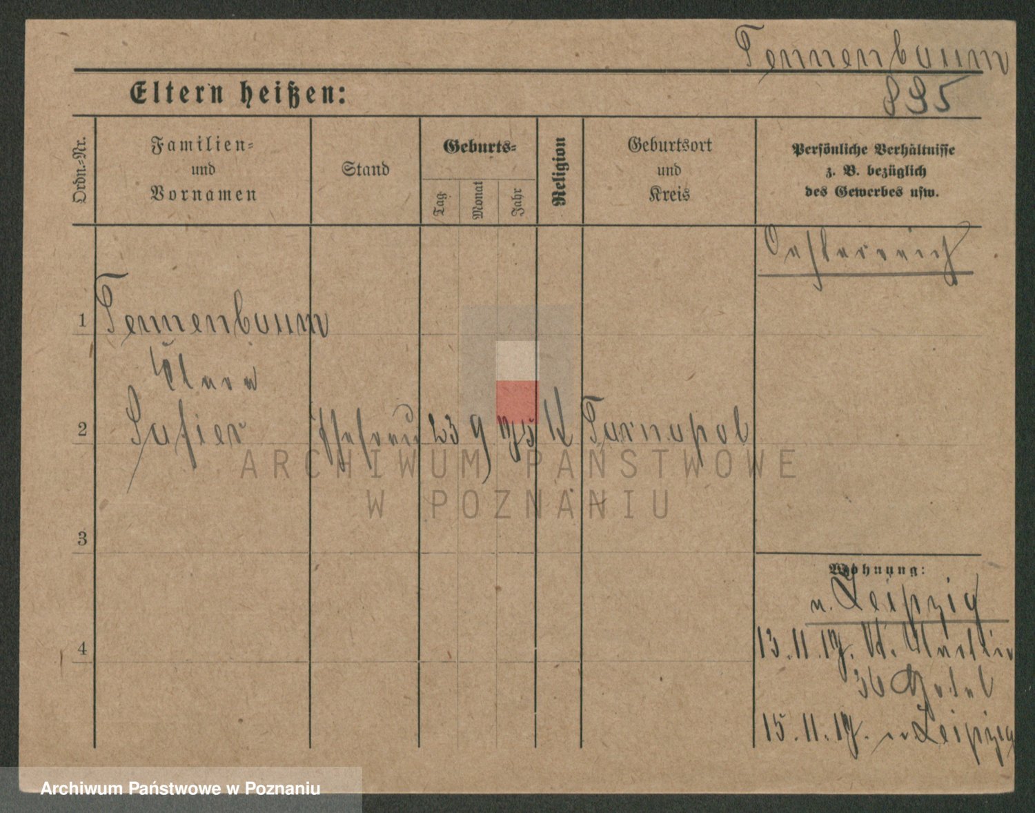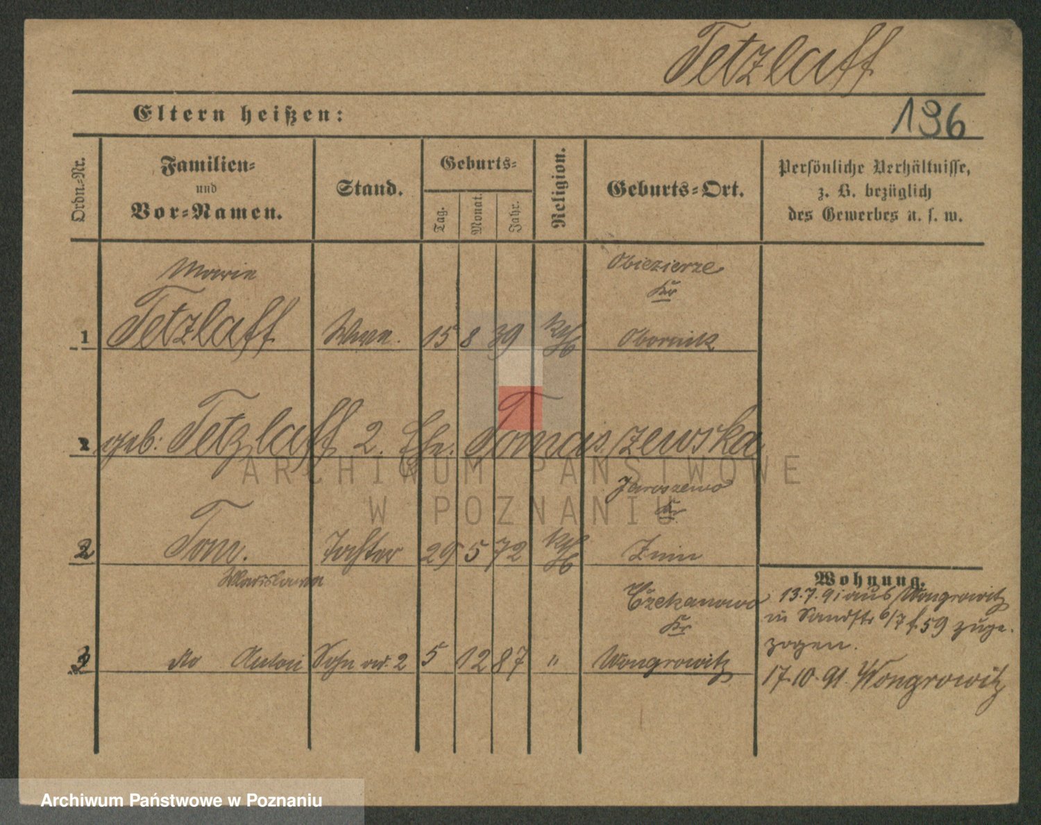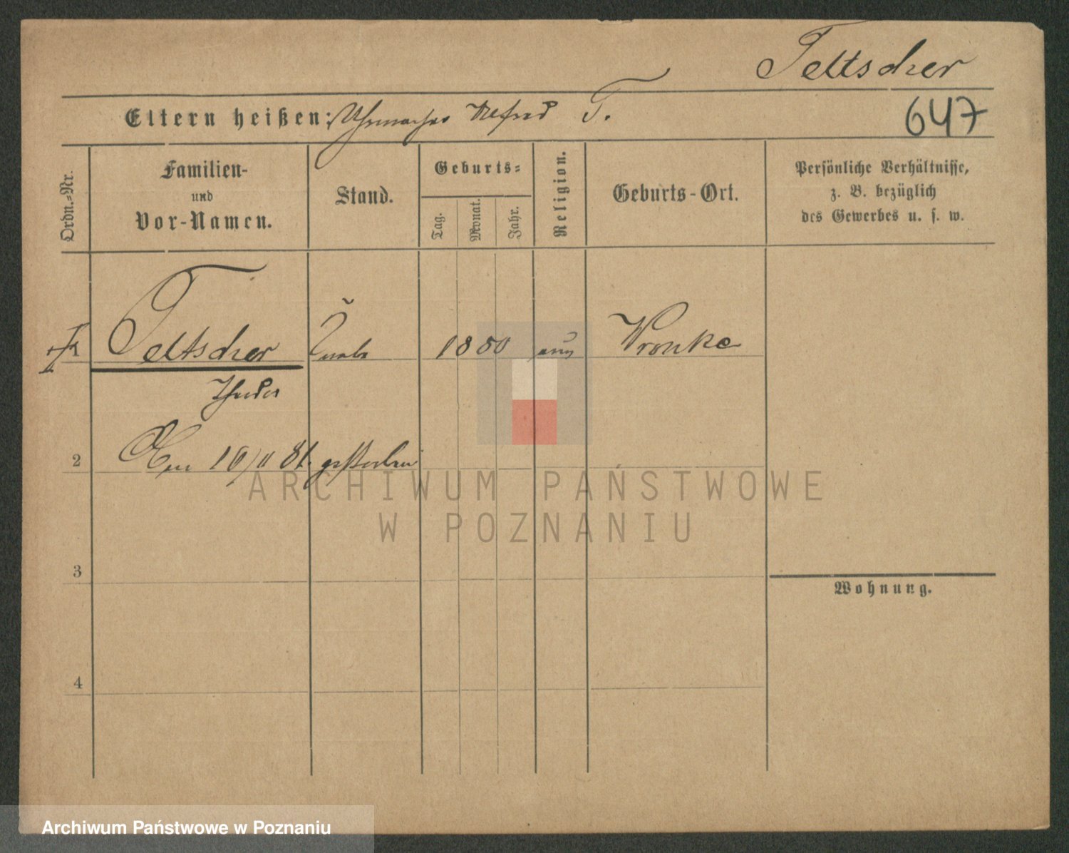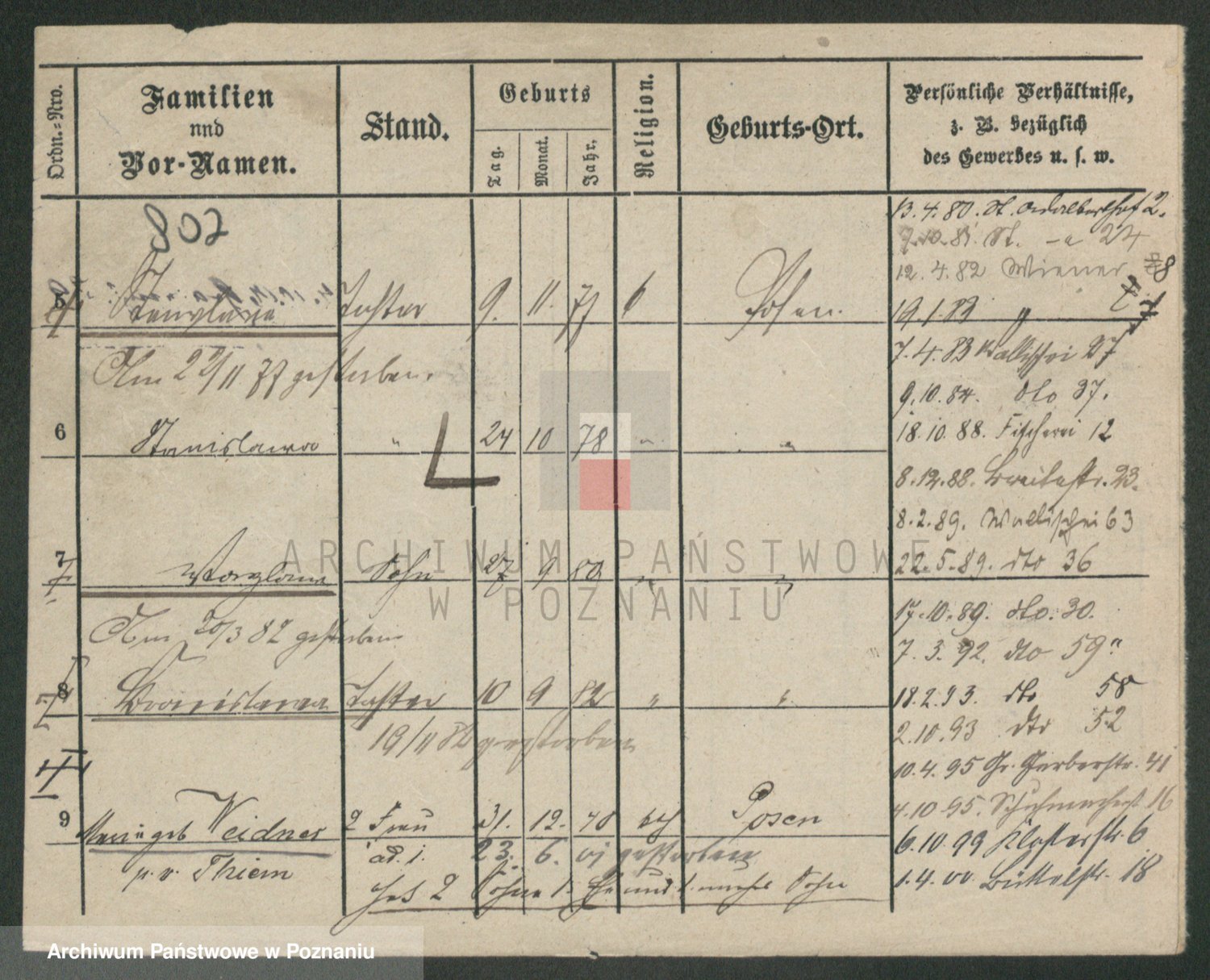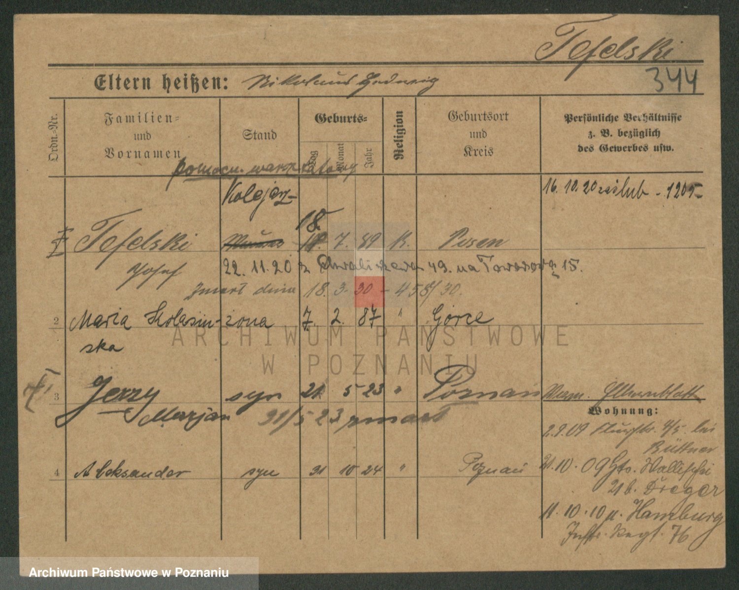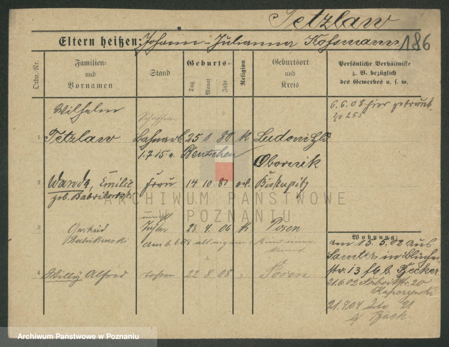 Podgląd karty osobowej dostępny jest po kliknięciu na nazwisko lub ikonkę karty. Można dokonywać powiększenia (ikony na górze) lub przechodzić między kolejnymi skanami (strzałki po bokach).