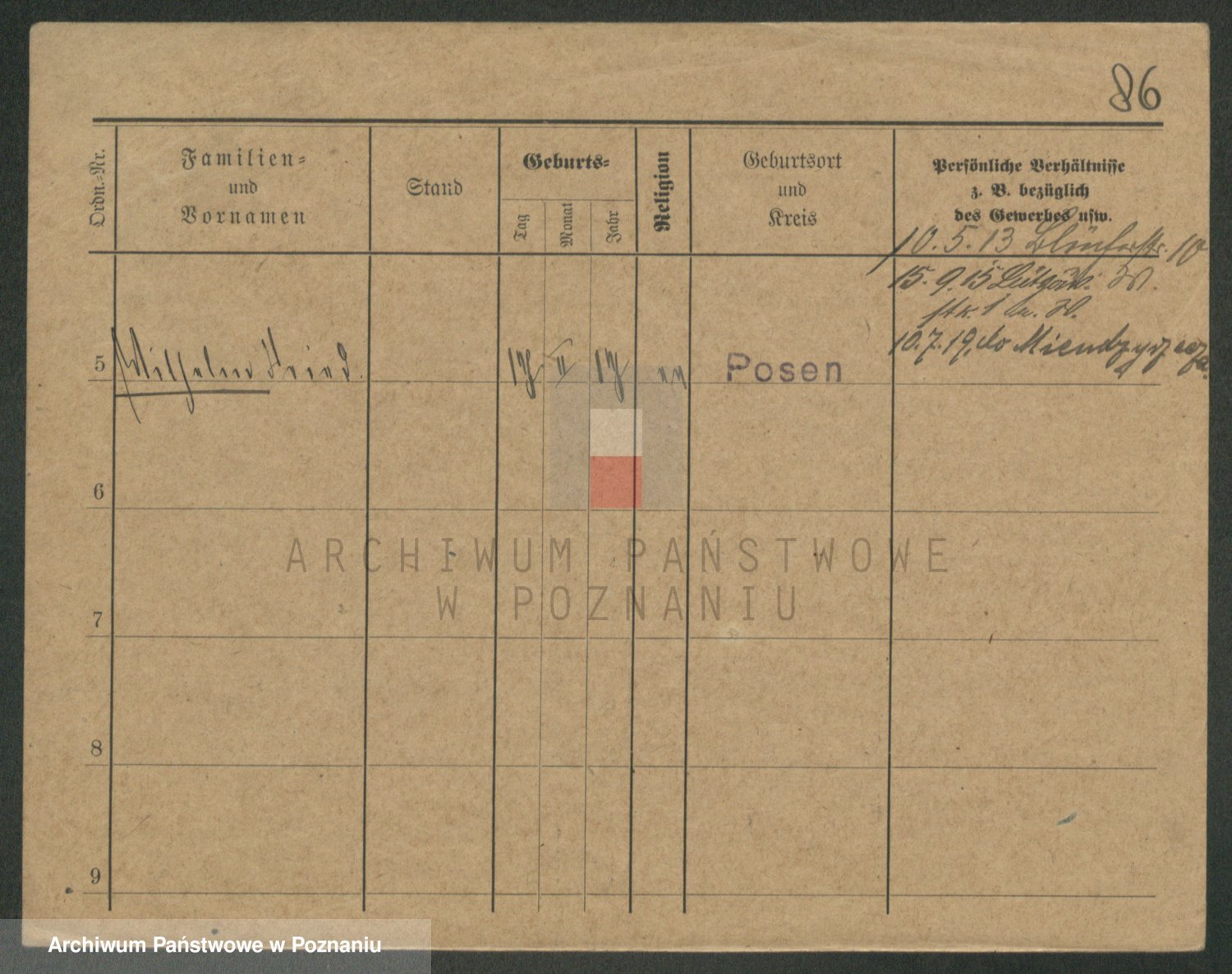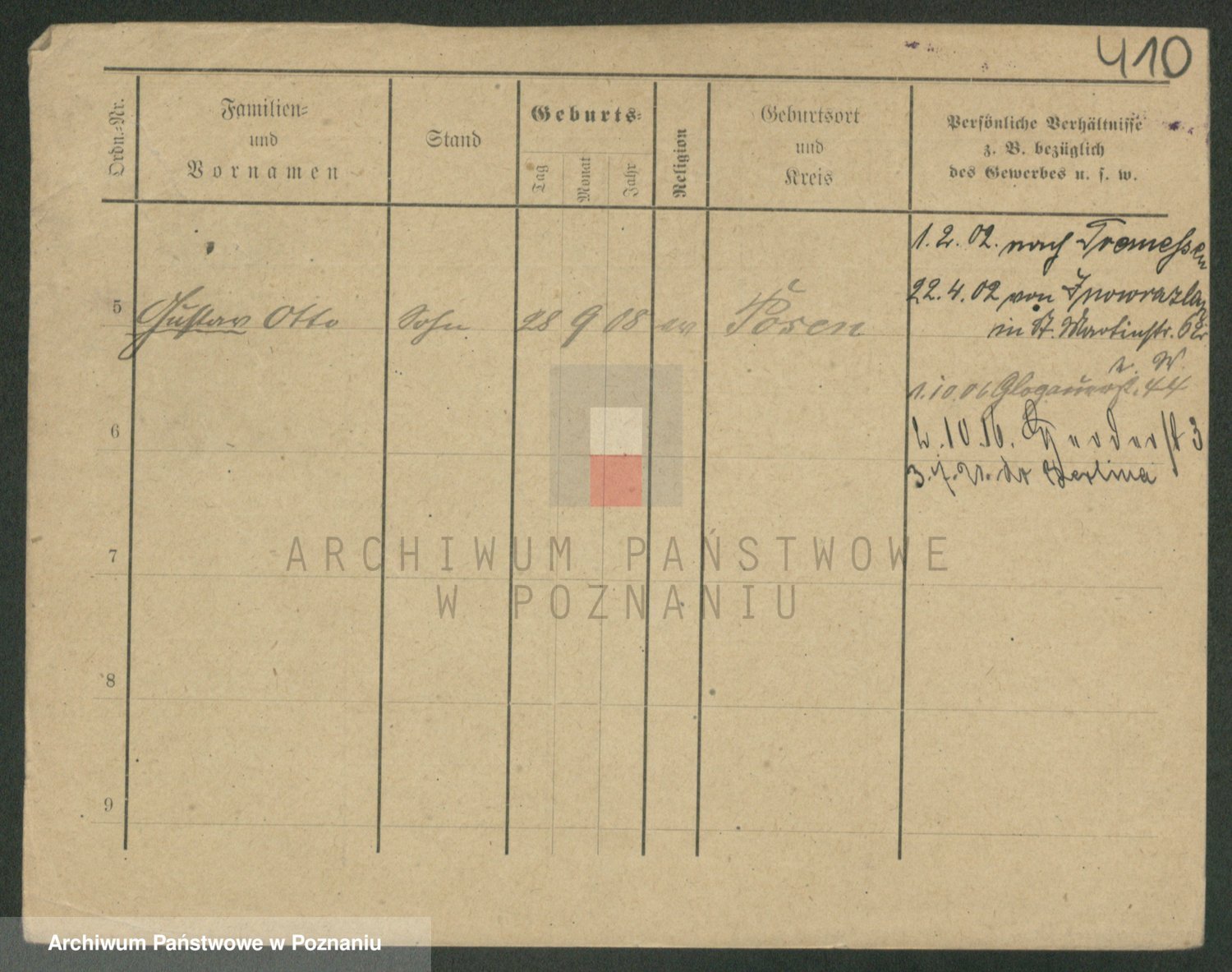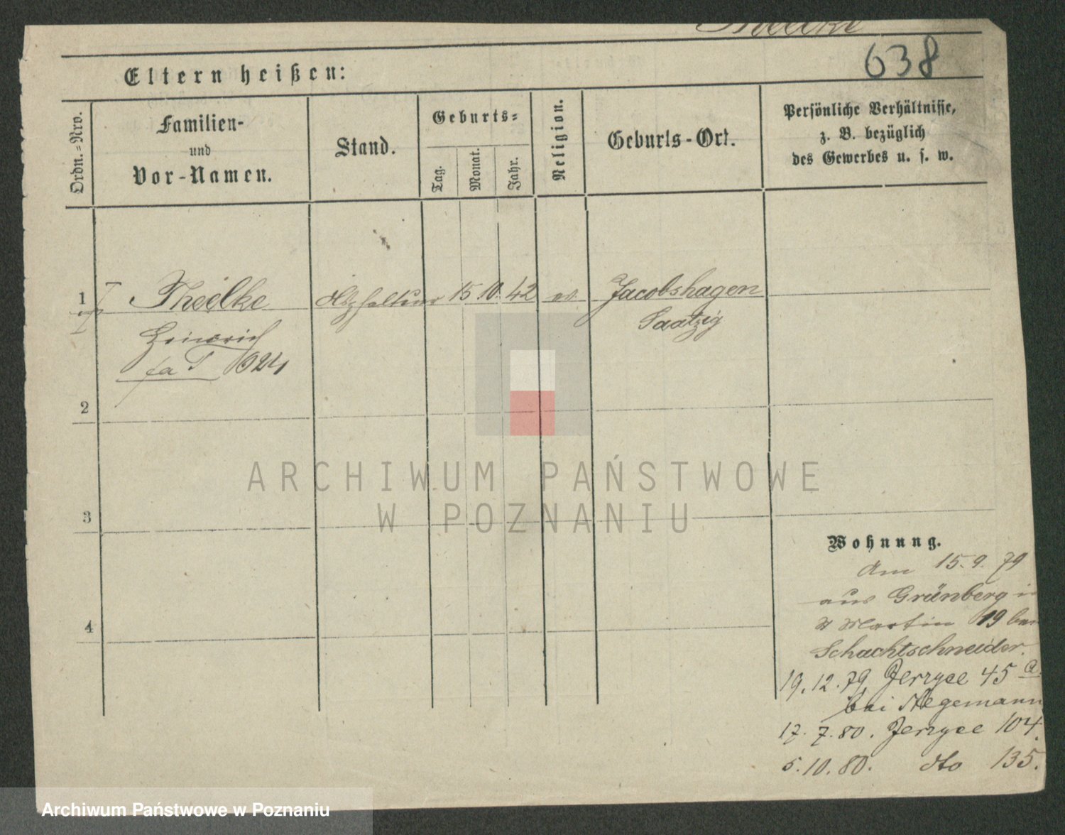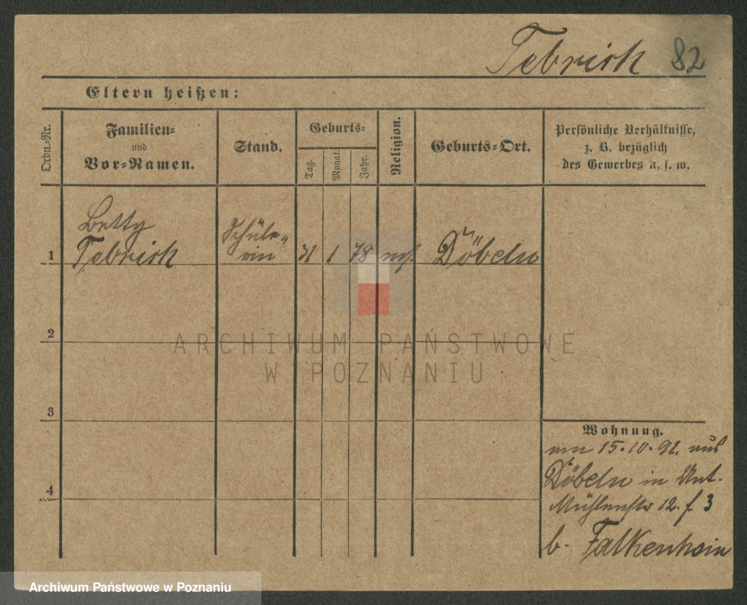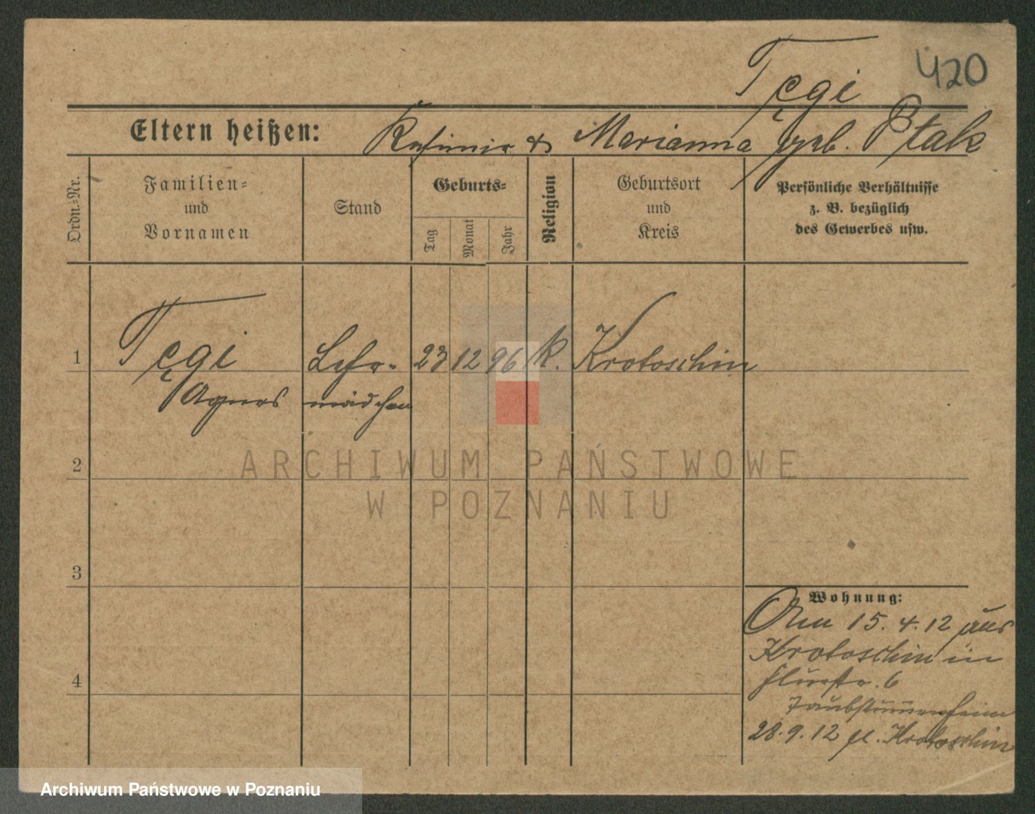 Podgląd karty osobowej dostępny jest po kliknięciu na nazwisko lub ikonkę karty. Można dokonywać powiększenia (ikony na górze) lub przechodzić między kolejnymi skanami (strzałki po bokach).
