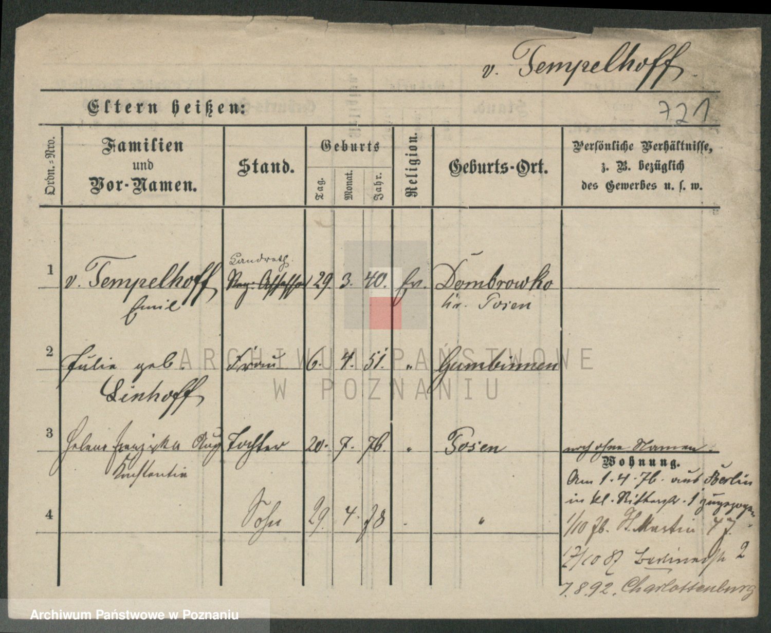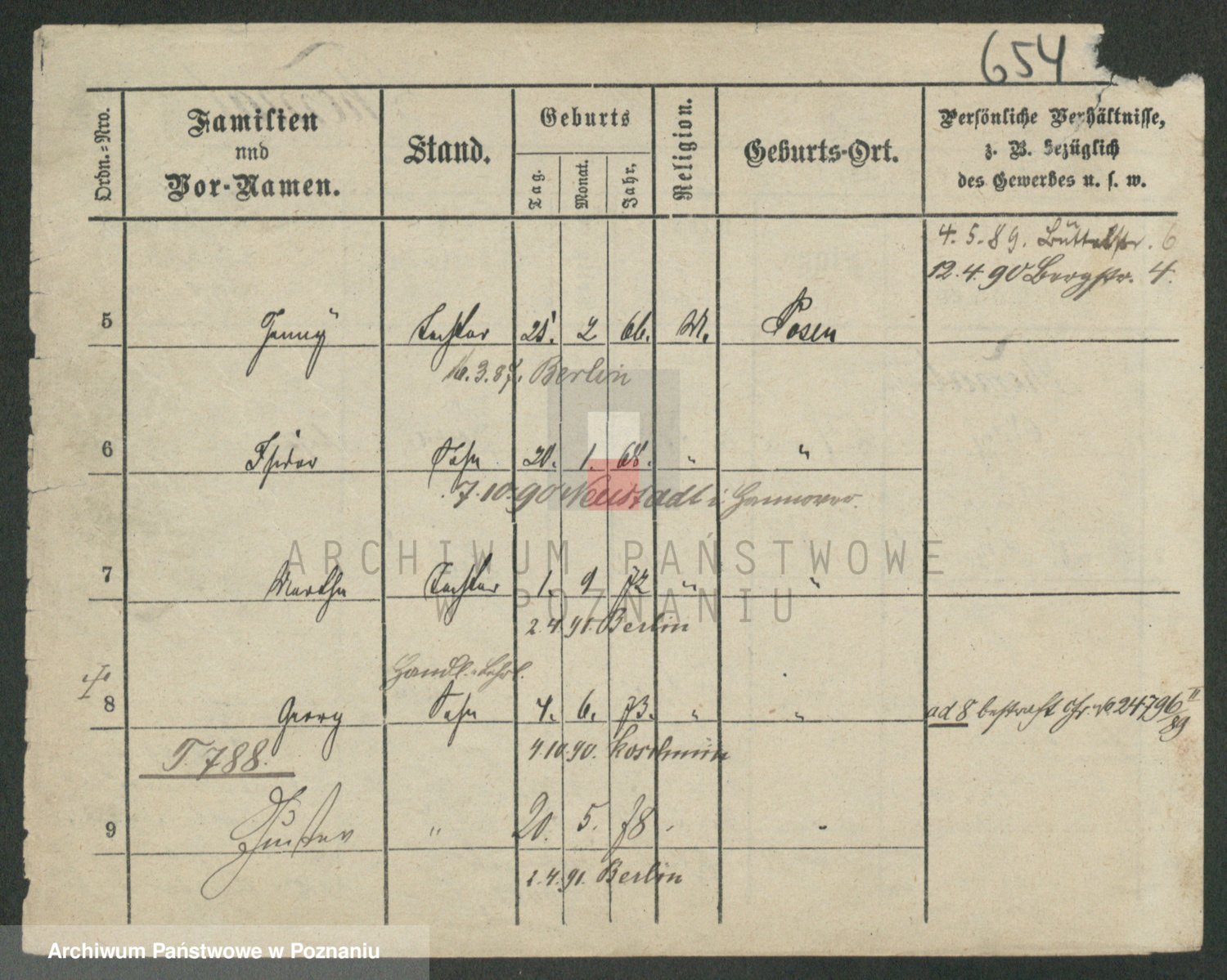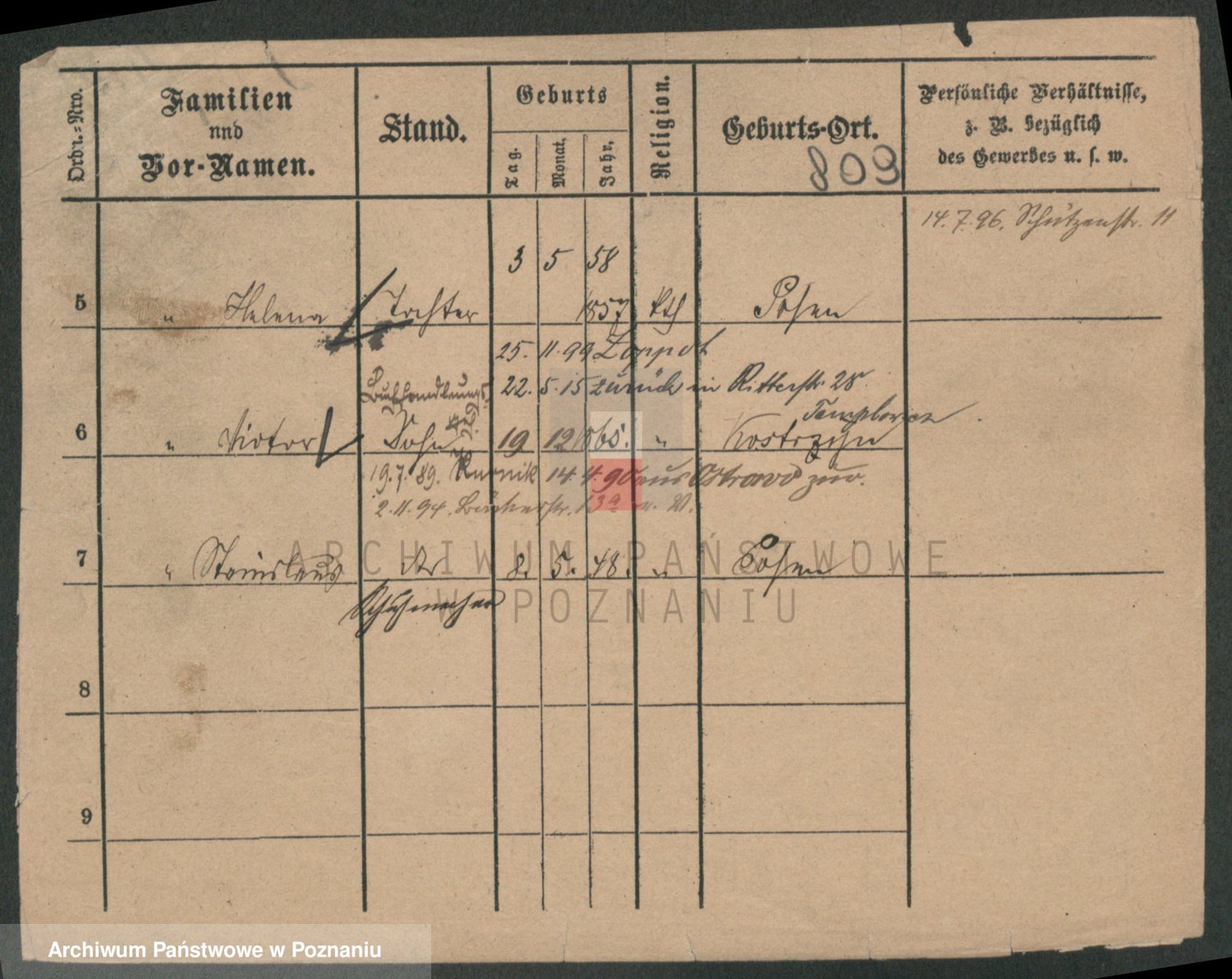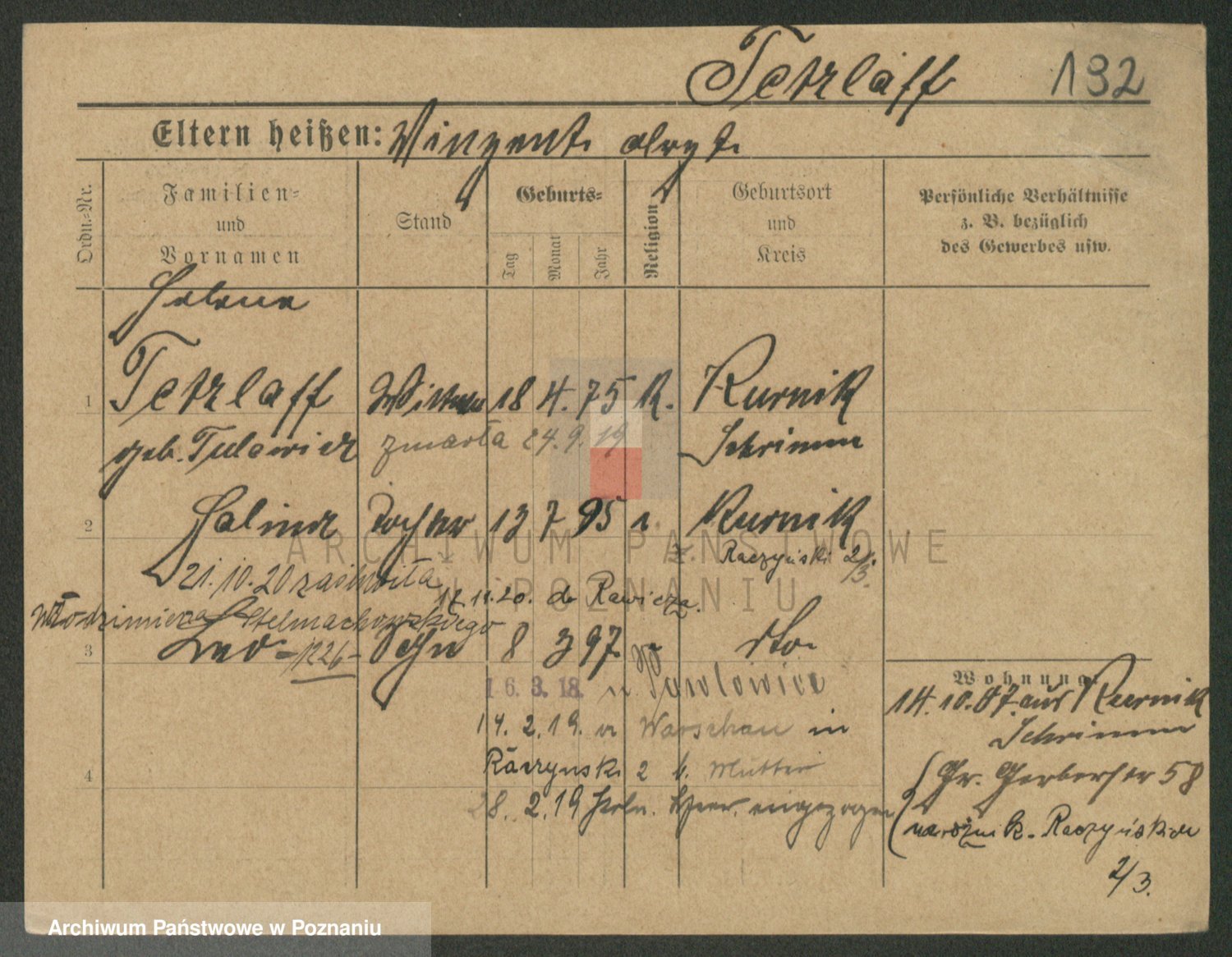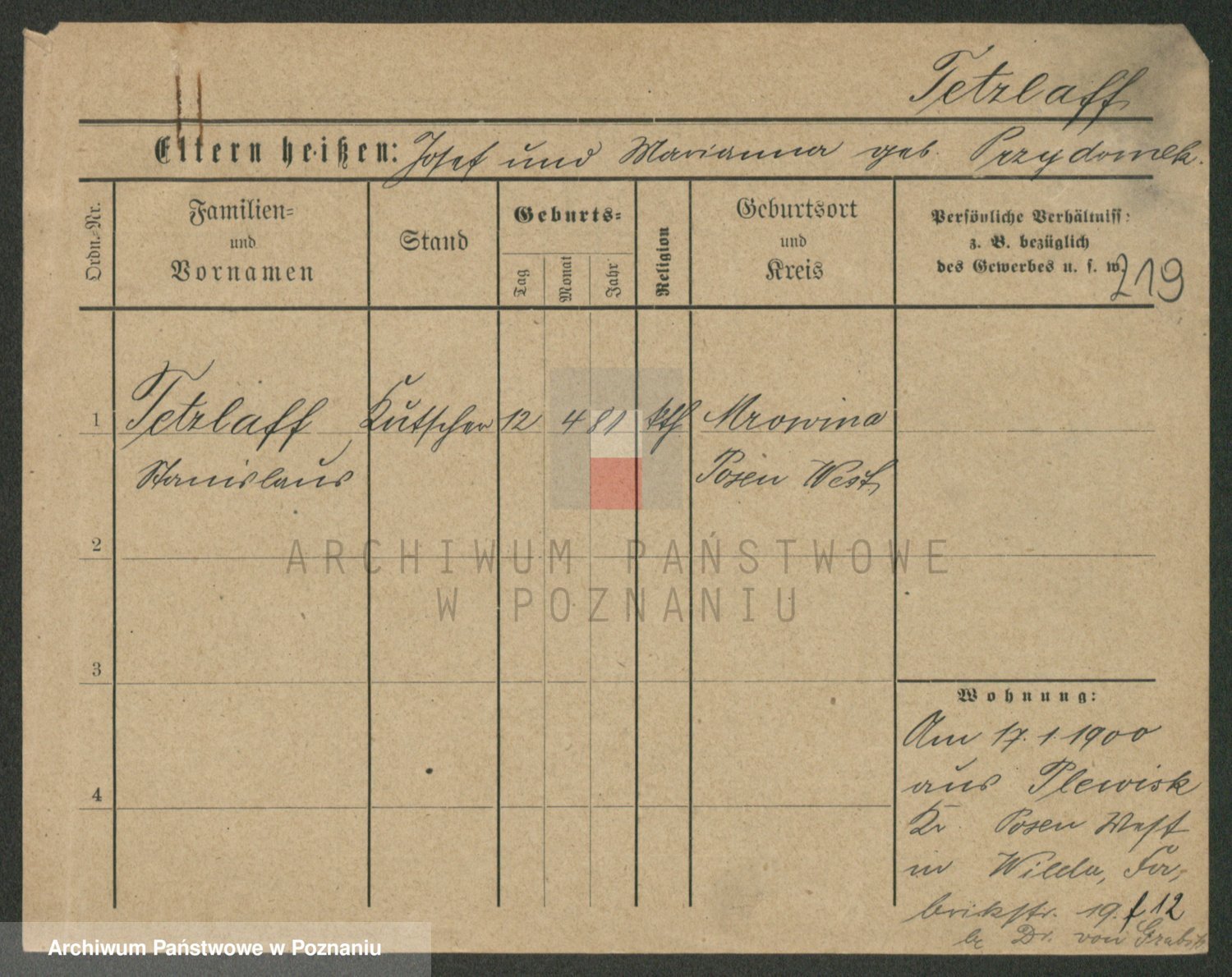 Podgląd karty osobowej dostępny jest po kliknięciu na nazwisko lub ikonkę karty. Można dokonywać powiększenia (ikony na górze) lub przechodzić między kolejnymi skanami (strzałki po bokach).