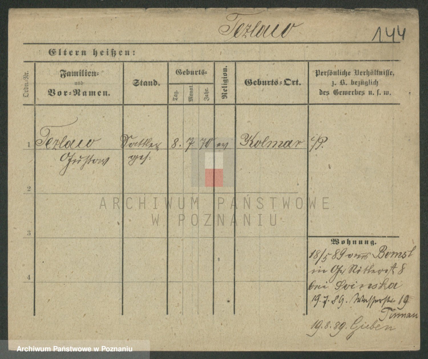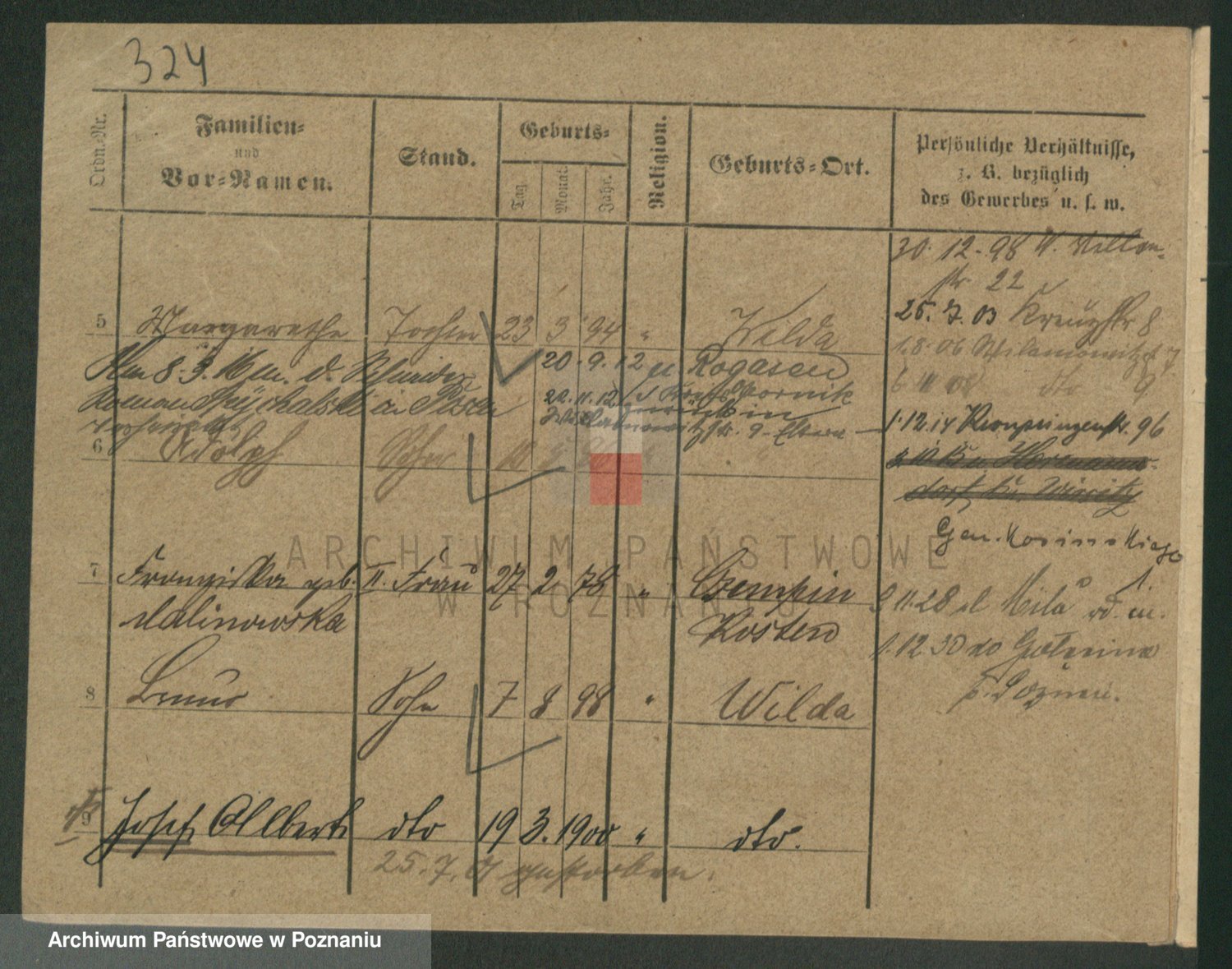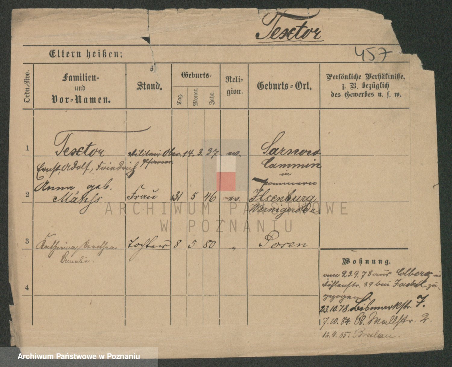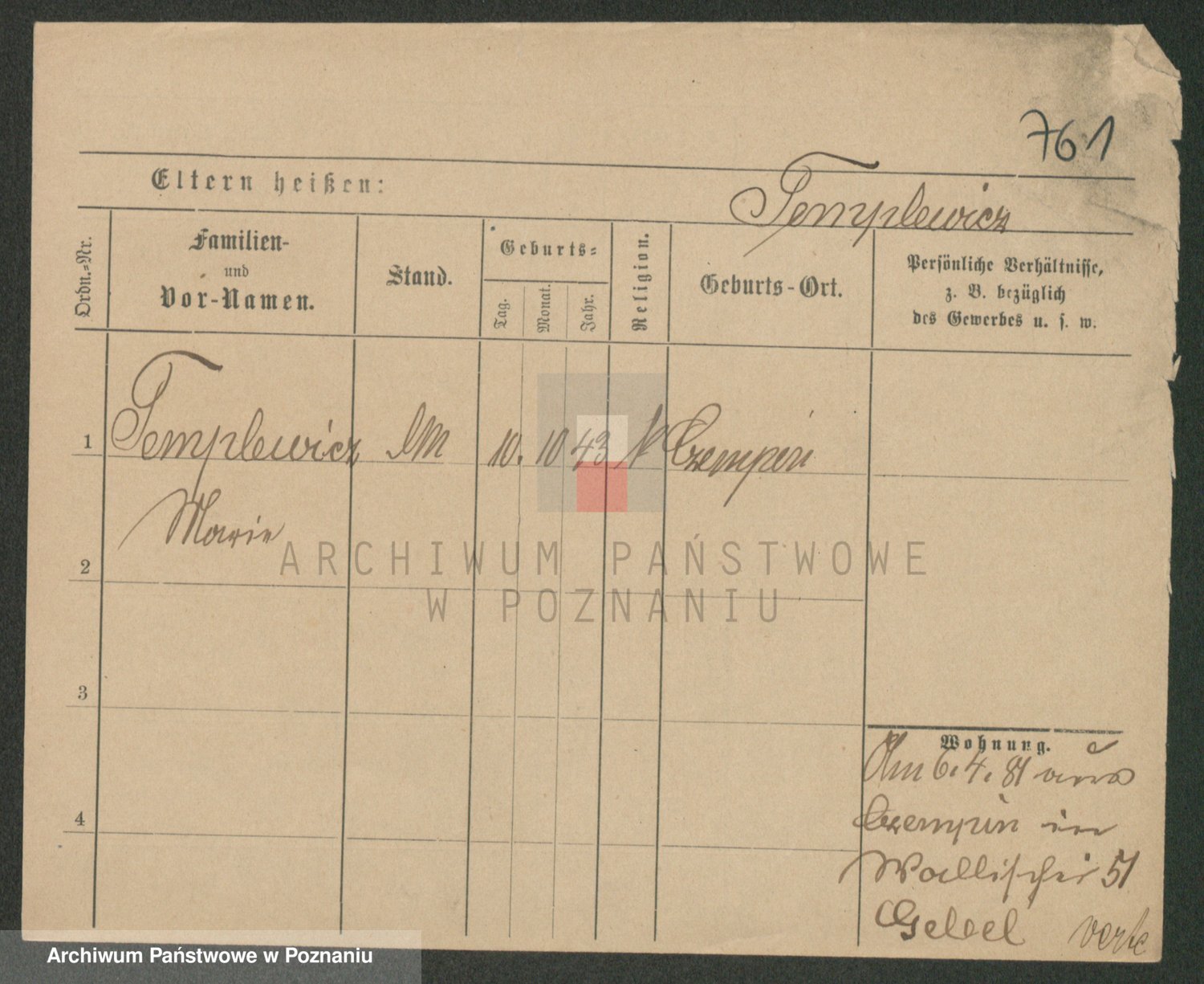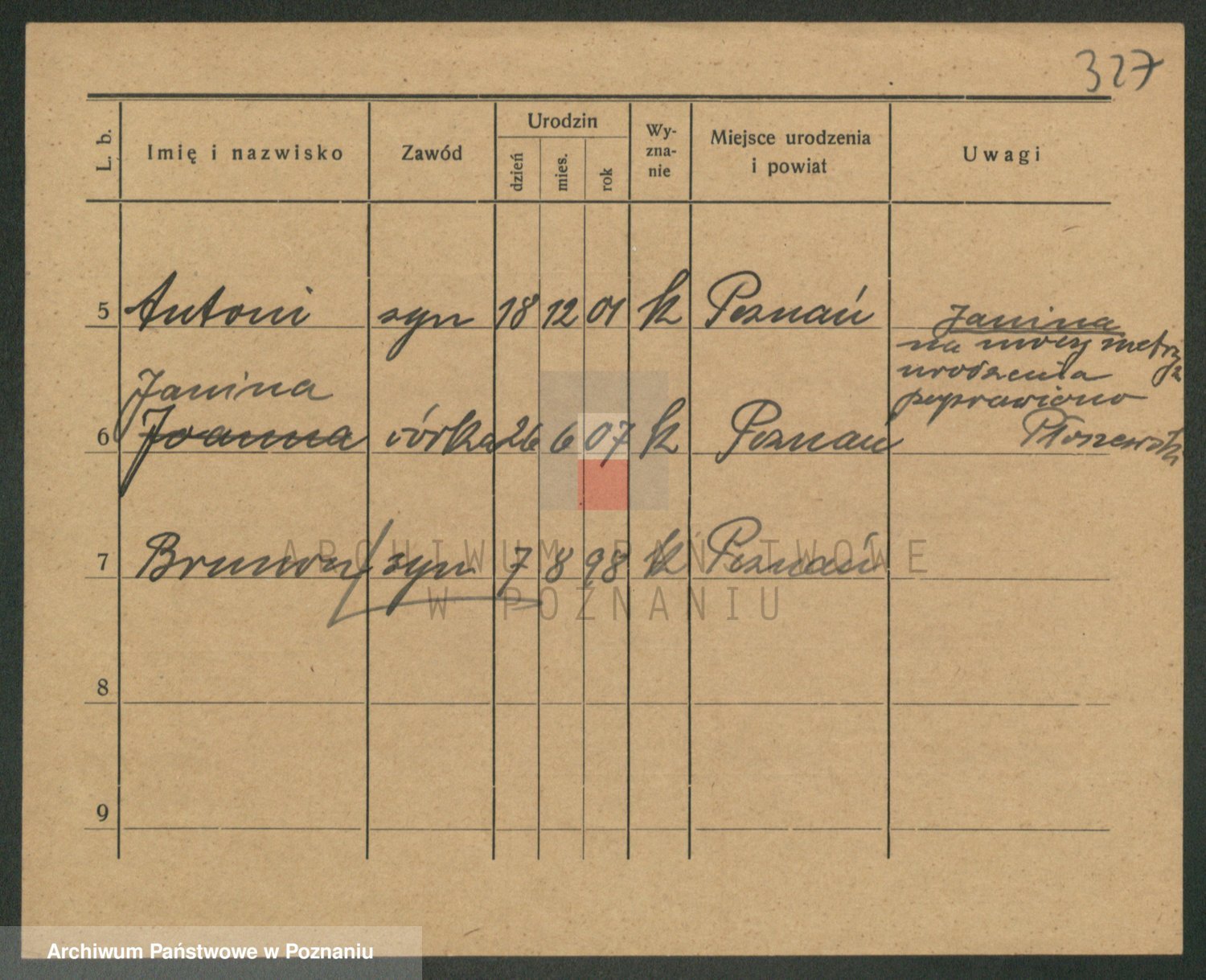 Podgląd karty osobowej dostępny jest po kliknięciu na nazwisko lub ikonkę karty. Można dokonywać powiększenia (ikony na górze) lub przechodzić między kolejnymi skanami (strzałki po bokach).