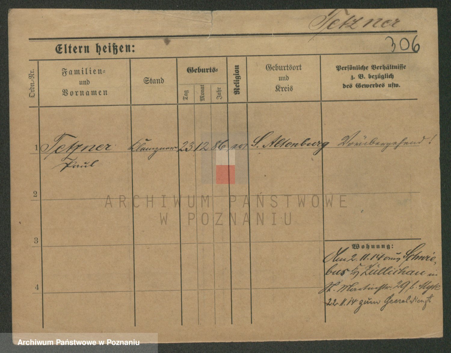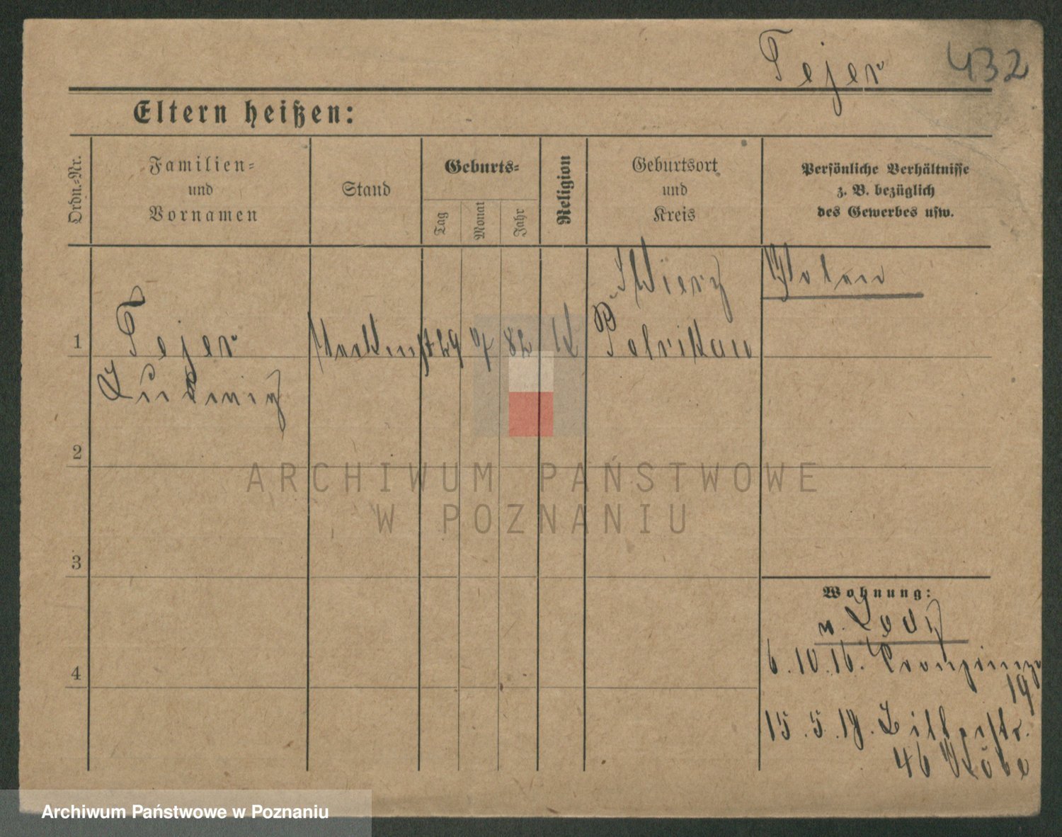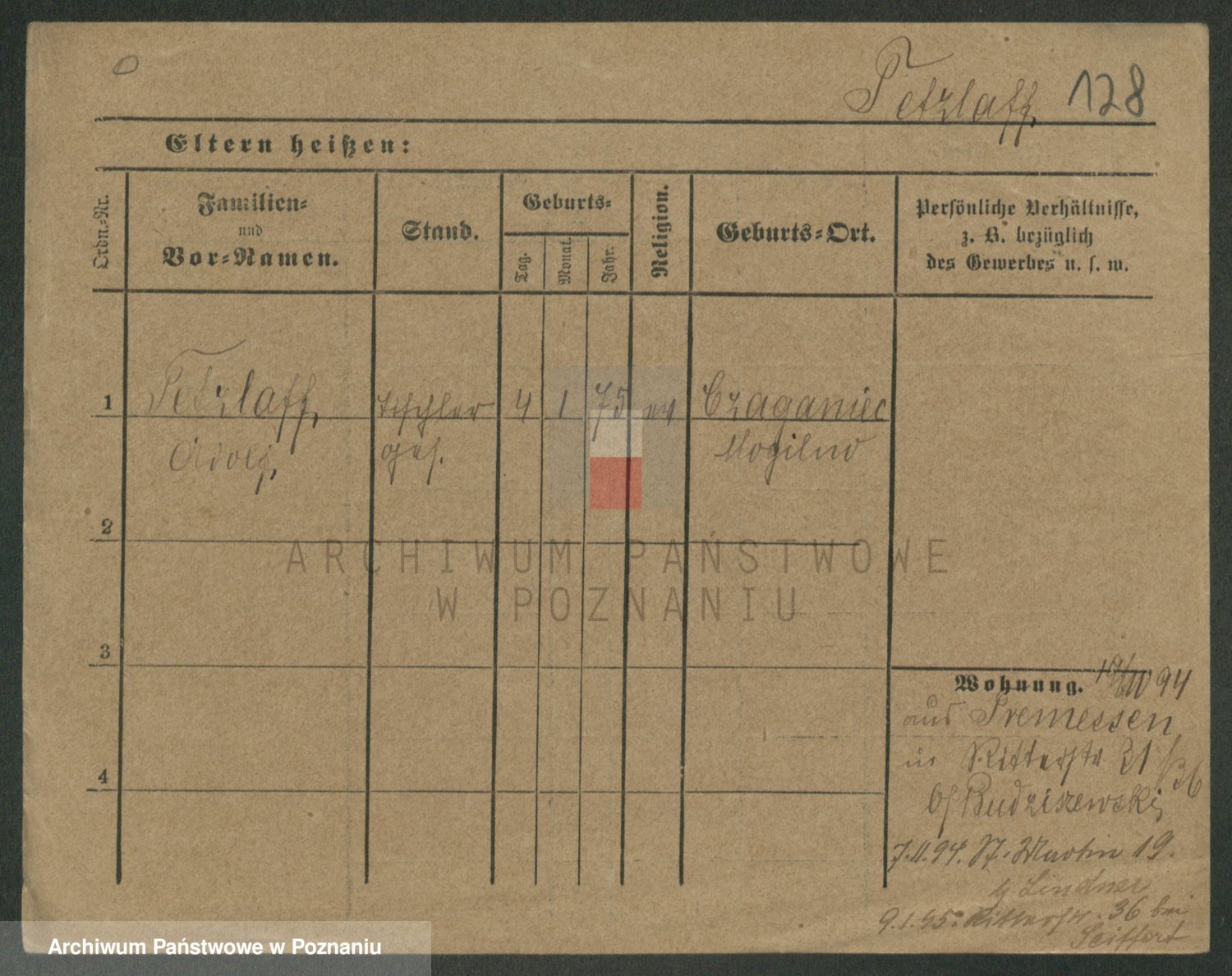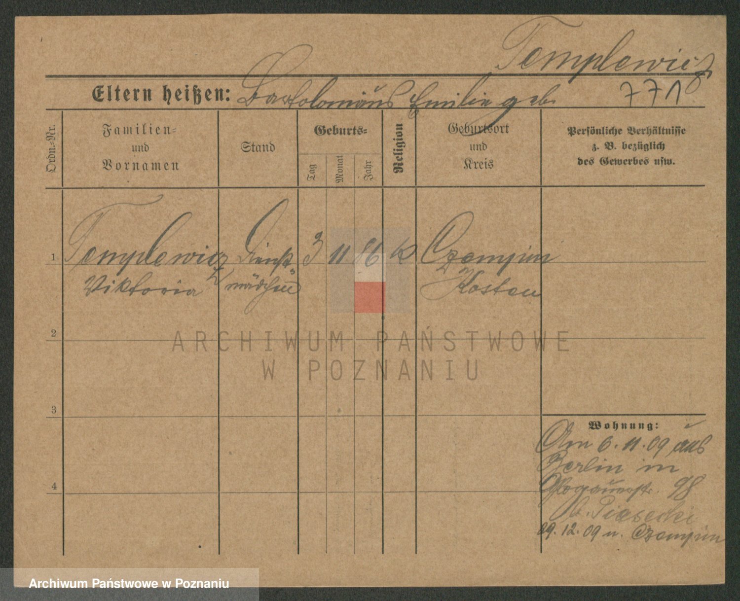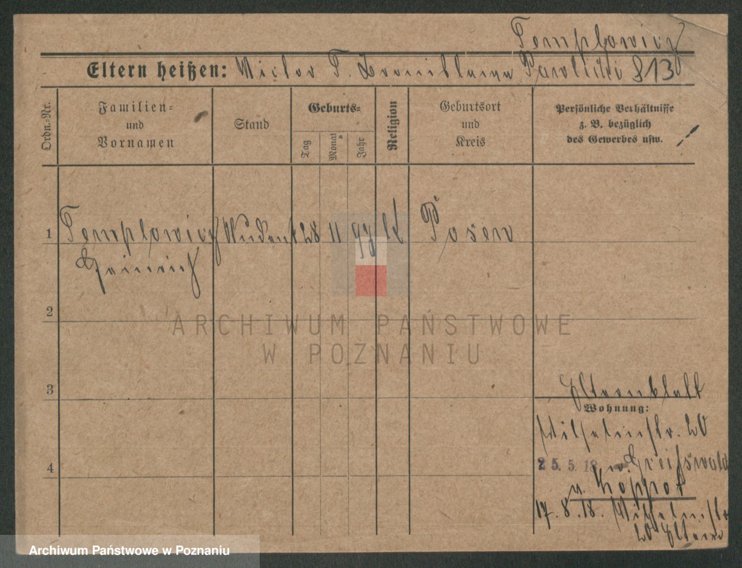 Podgląd karty osobowej dostępny jest po kliknięciu na nazwisko lub ikonkę karty. Można dokonywać powiększenia (ikony na górze) lub przechodzić między kolejnymi skanami (strzałki po bokach).
