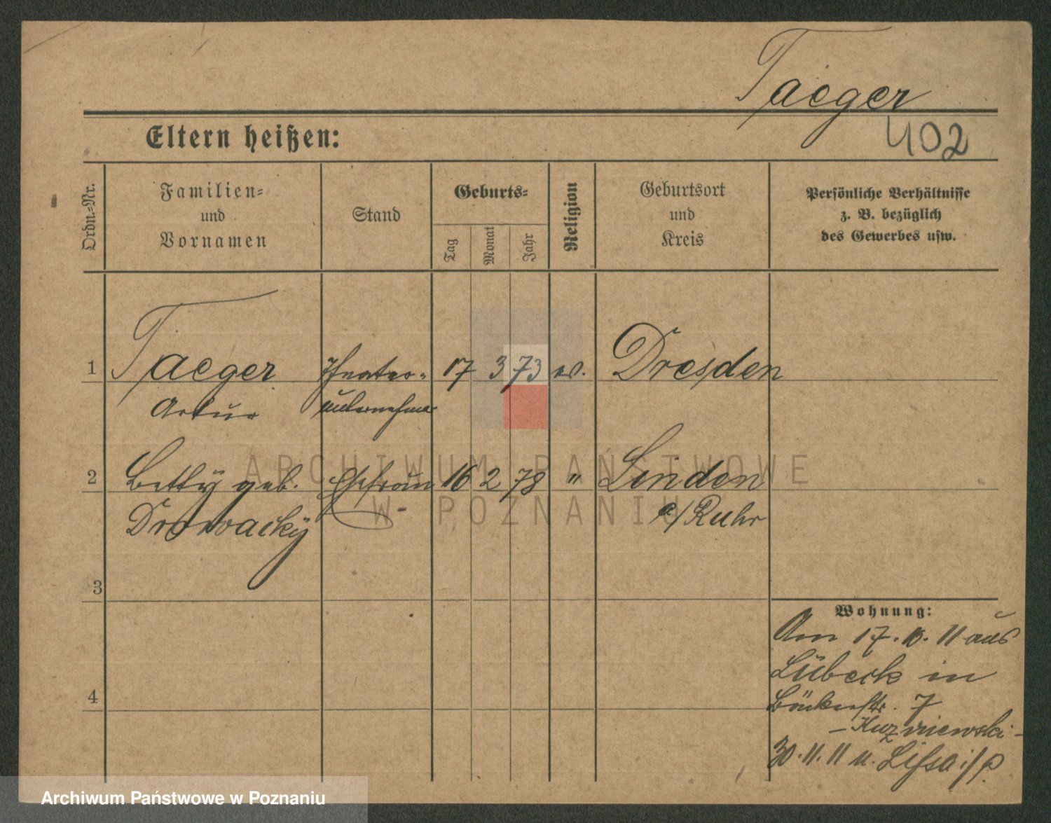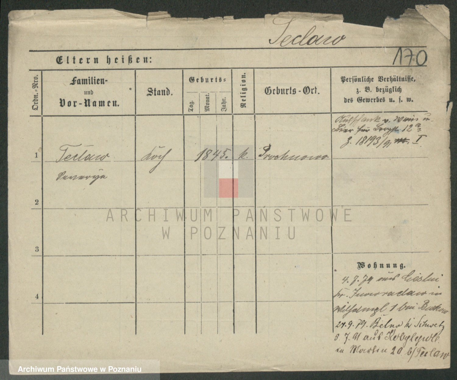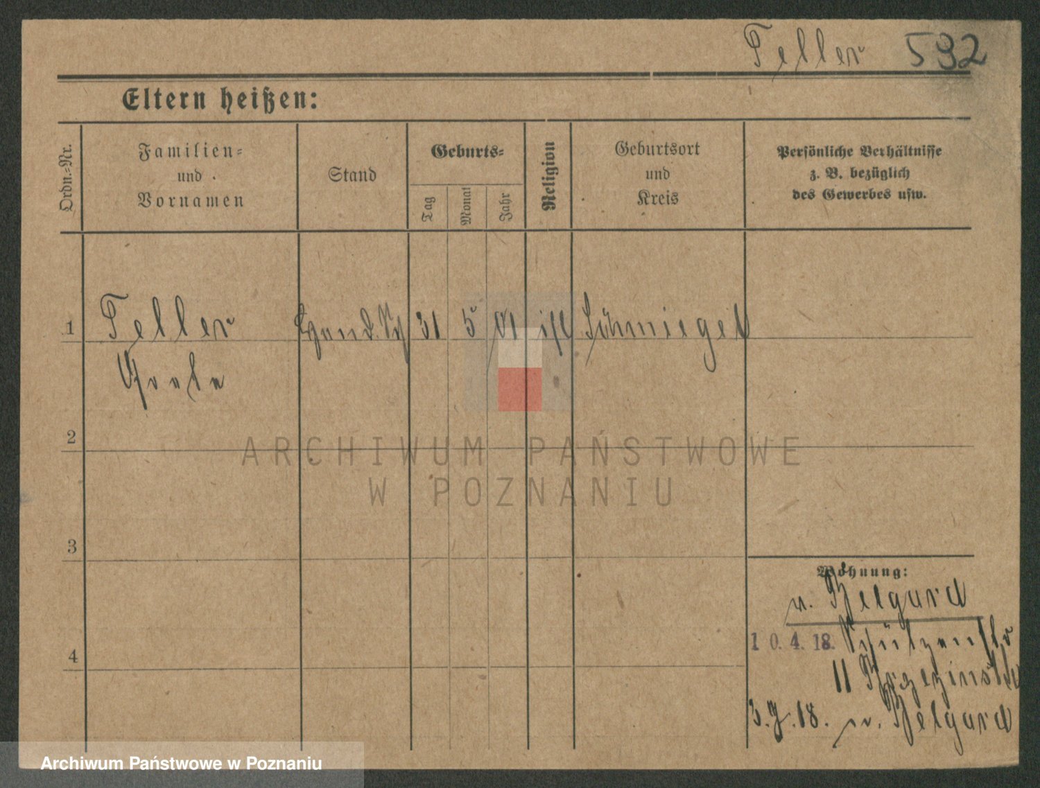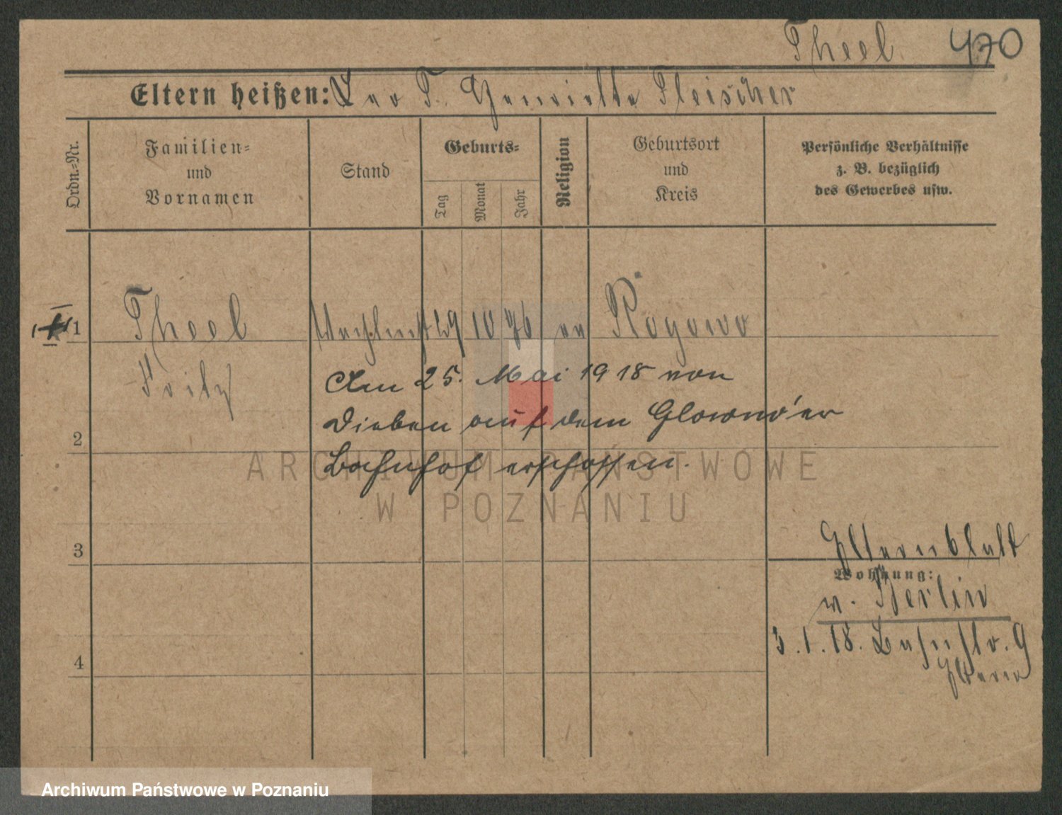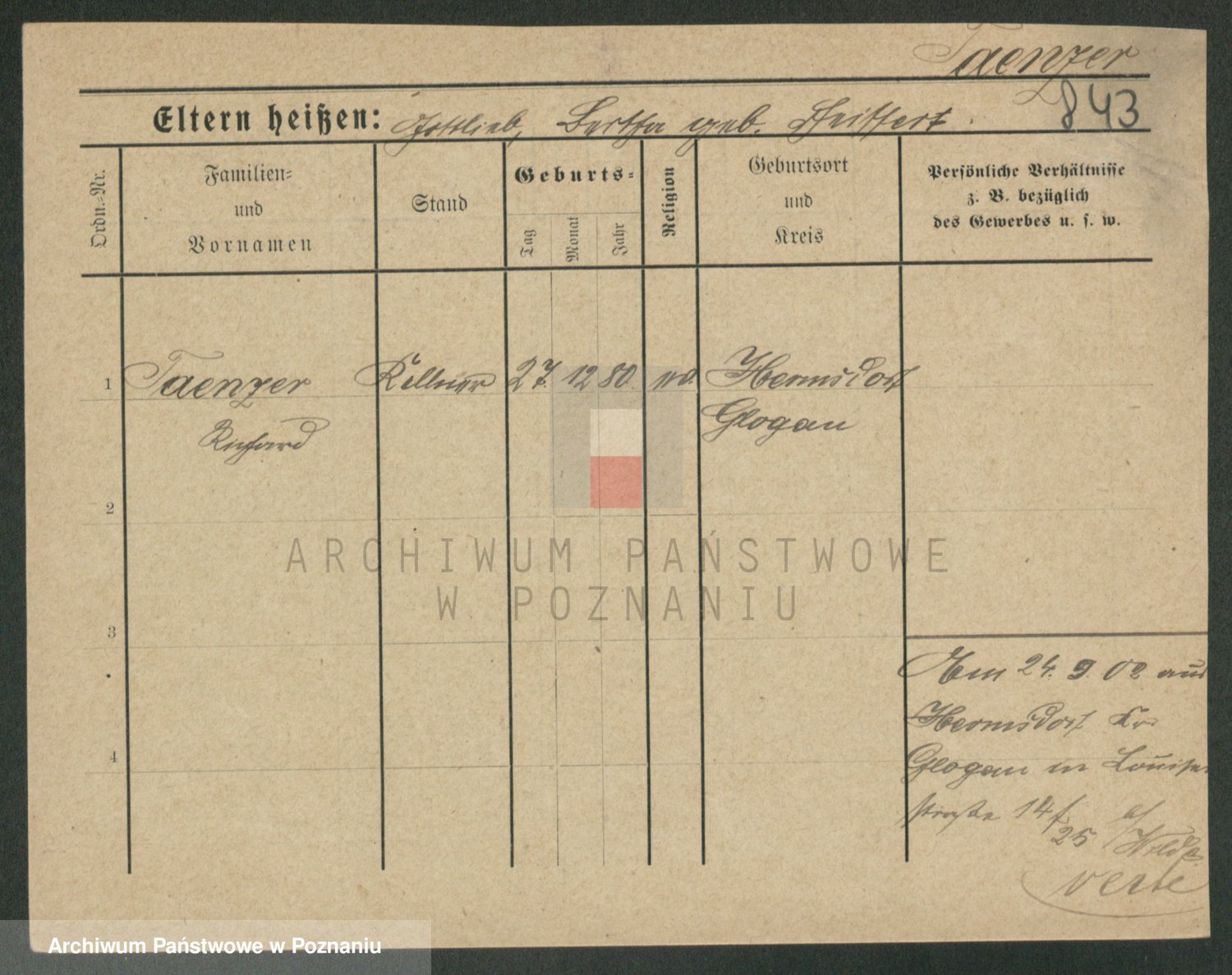 Podgląd karty osobowej dostępny jest po kliknięciu na nazwisko lub ikonkę karty. Można dokonywać powiększenia (ikony na górze) lub przechodzić między kolejnymi skanami (strzałki po bokach).