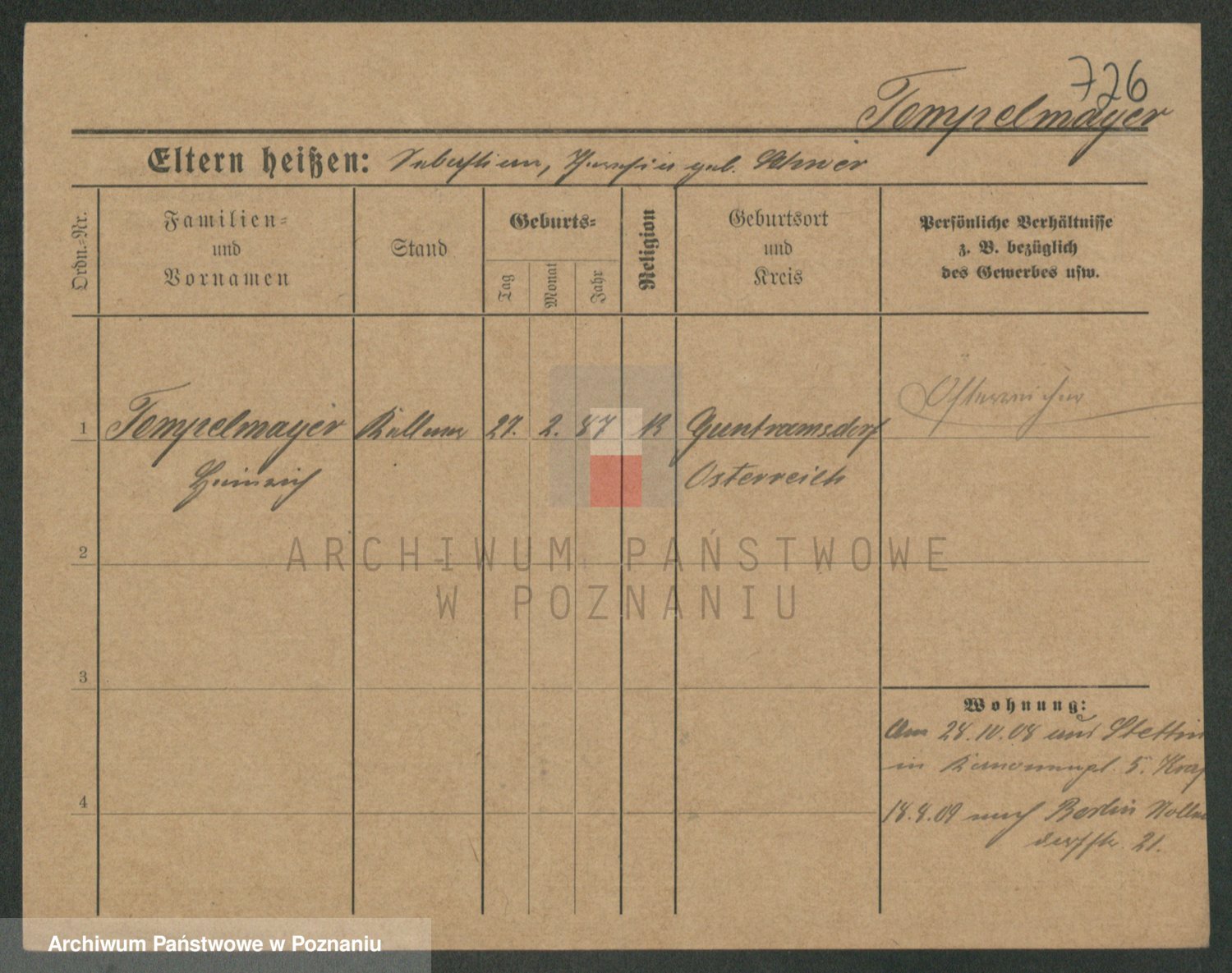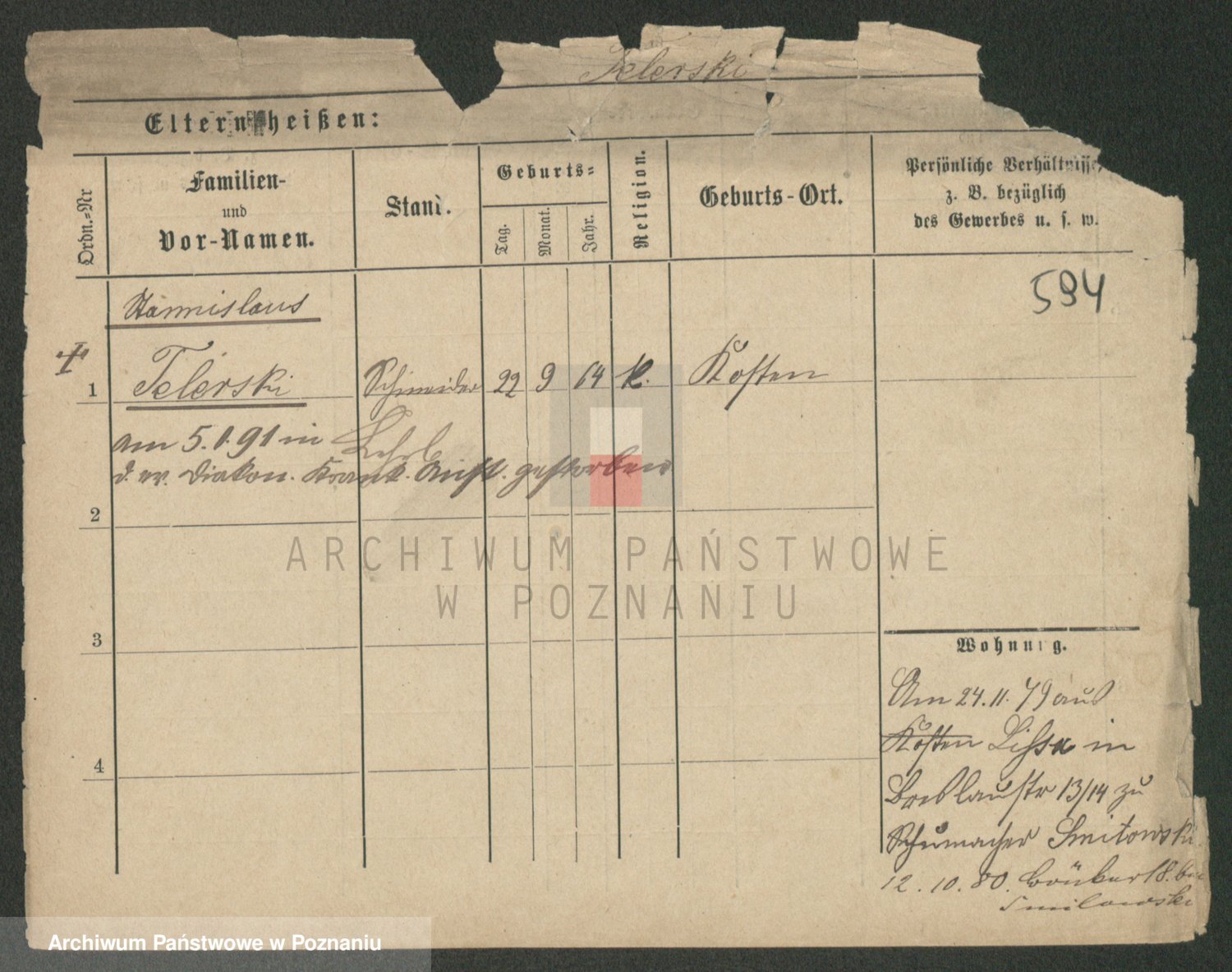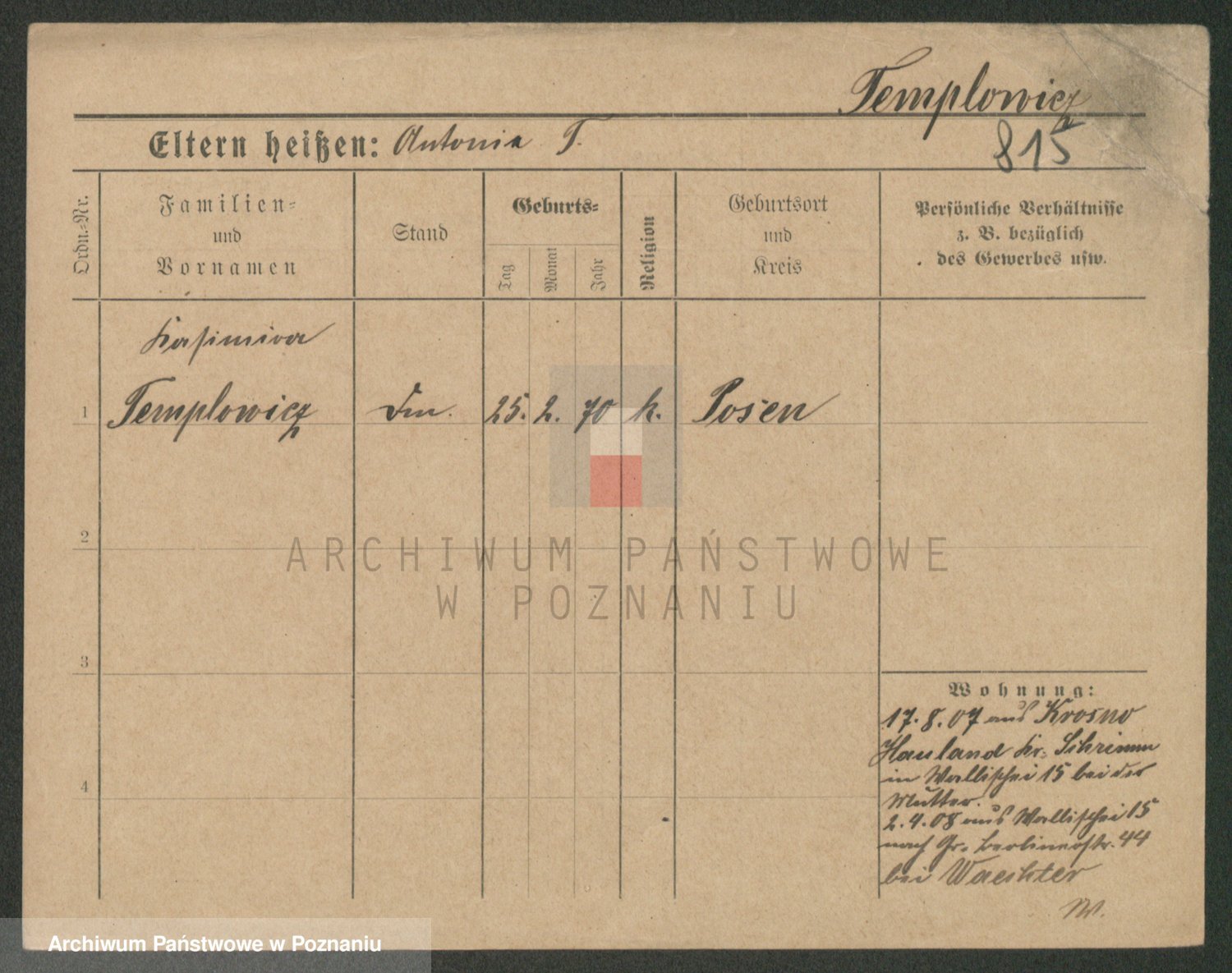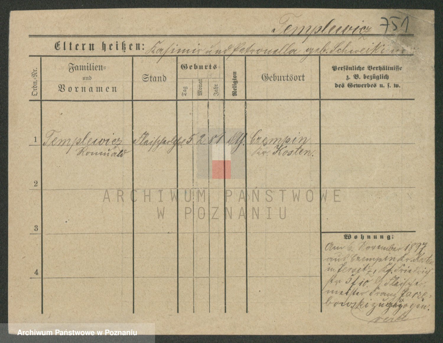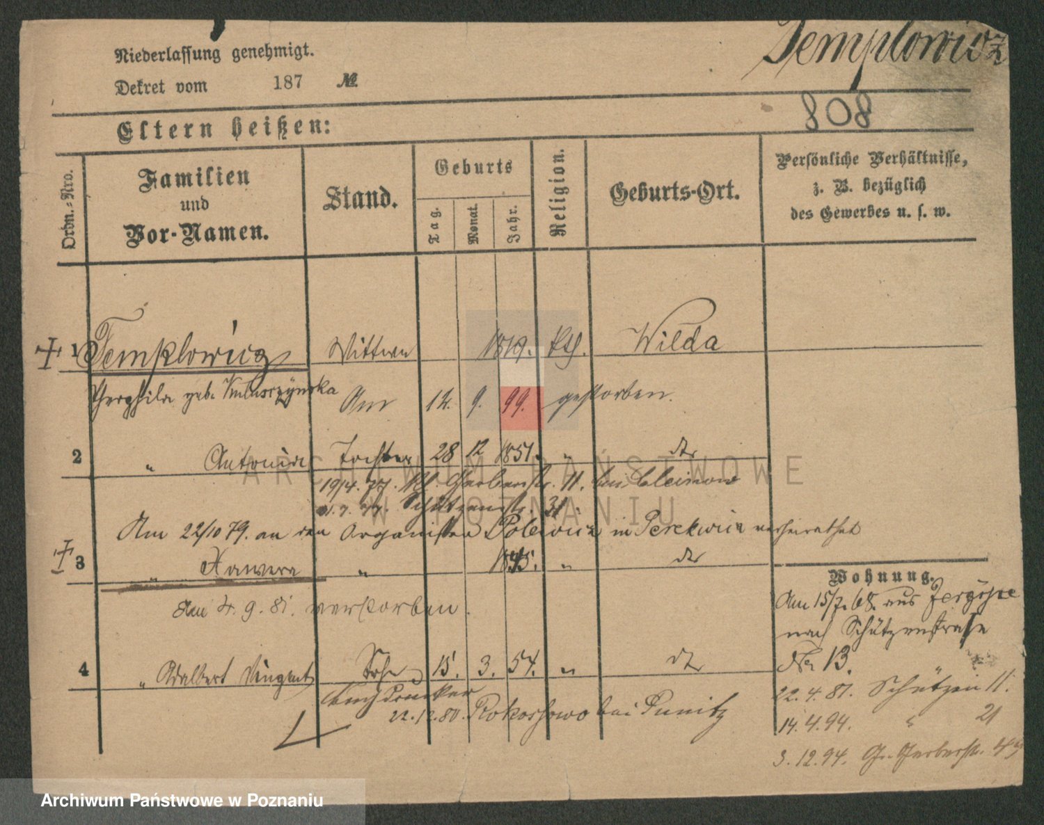 Podgląd karty osobowej dostępny jest po kliknięciu na nazwisko lub ikonkę karty. Można dokonywać powiększenia (ikony na górze) lub przechodzić między kolejnymi skanami (strzałki po bokach).
