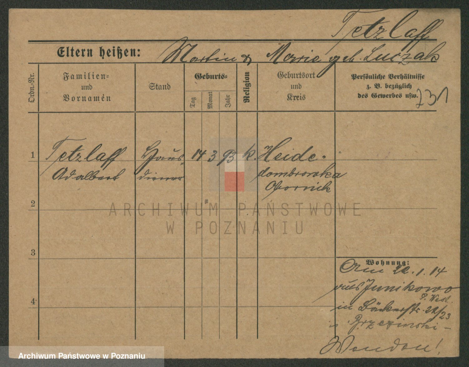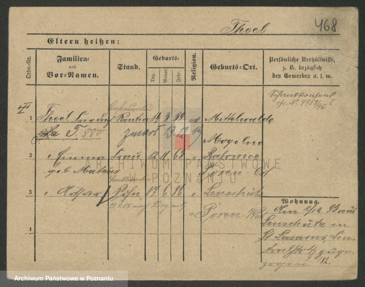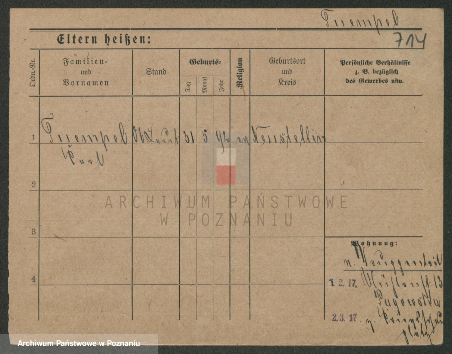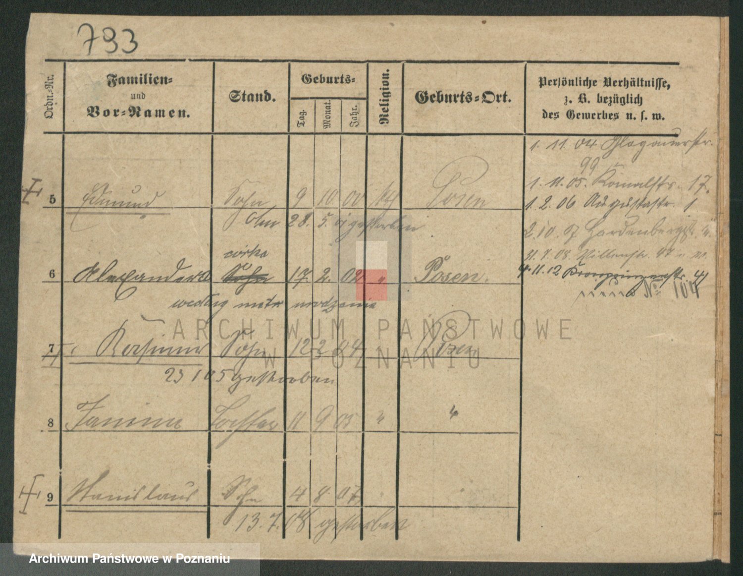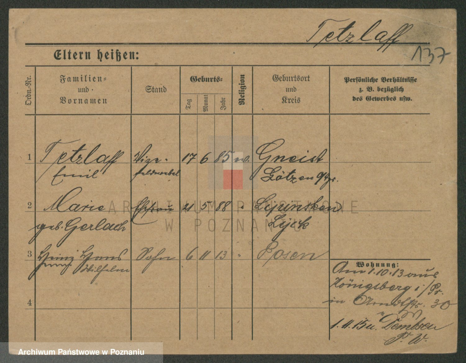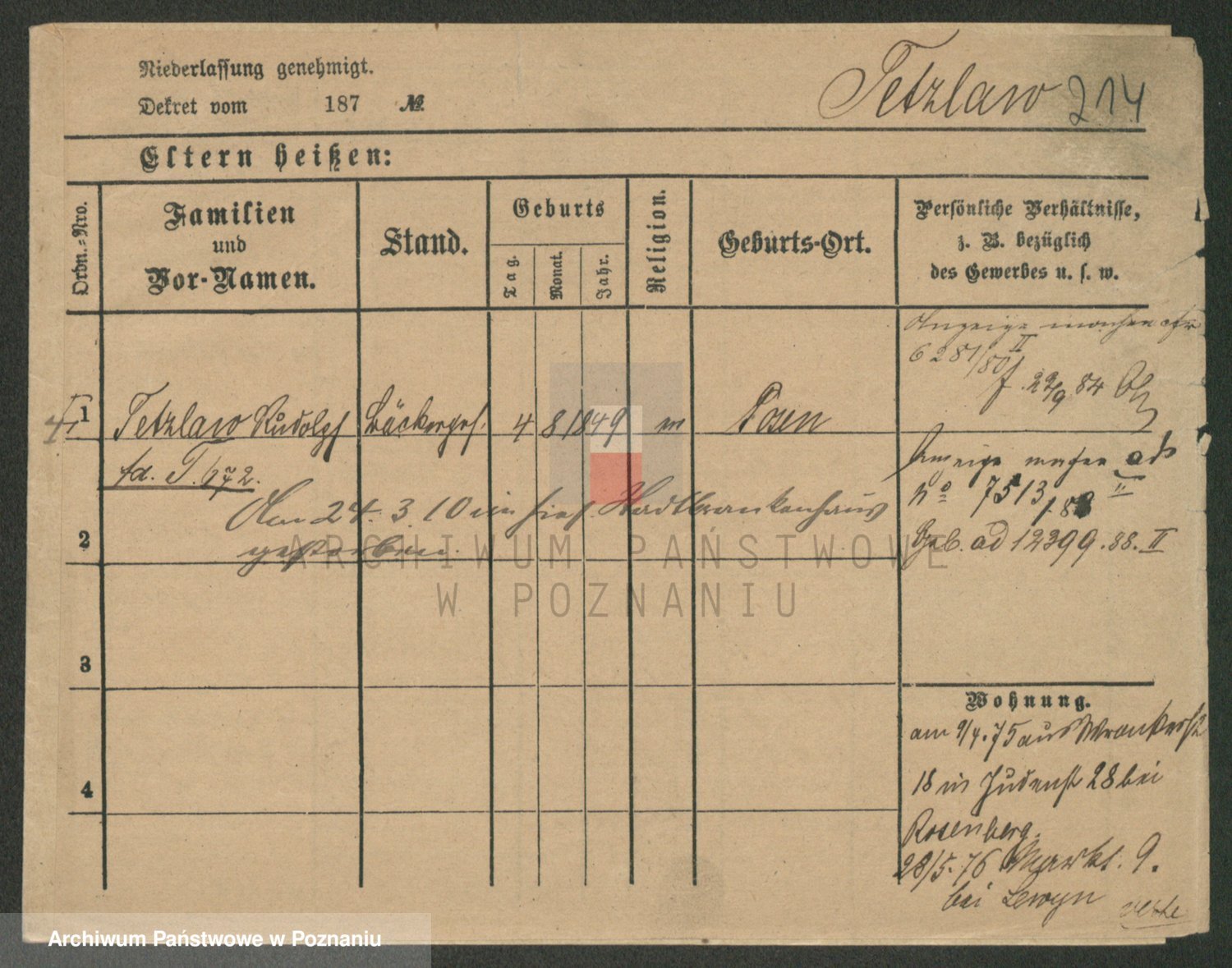Podgląd karty osobowej dostępny jest po kliknięciu na nazwisko lub ikonkę karty. Można dokonywać powiększenia (ikony na górze) lub przechodzić między kolejnymi skanami (strzałki po bokach).