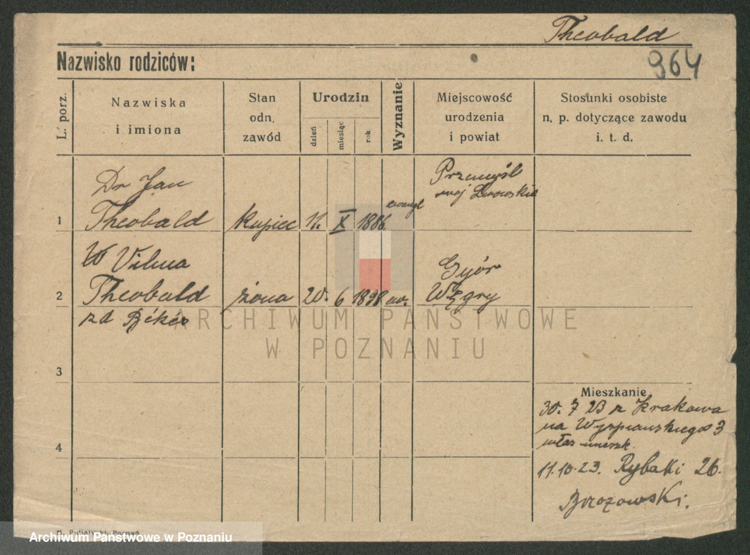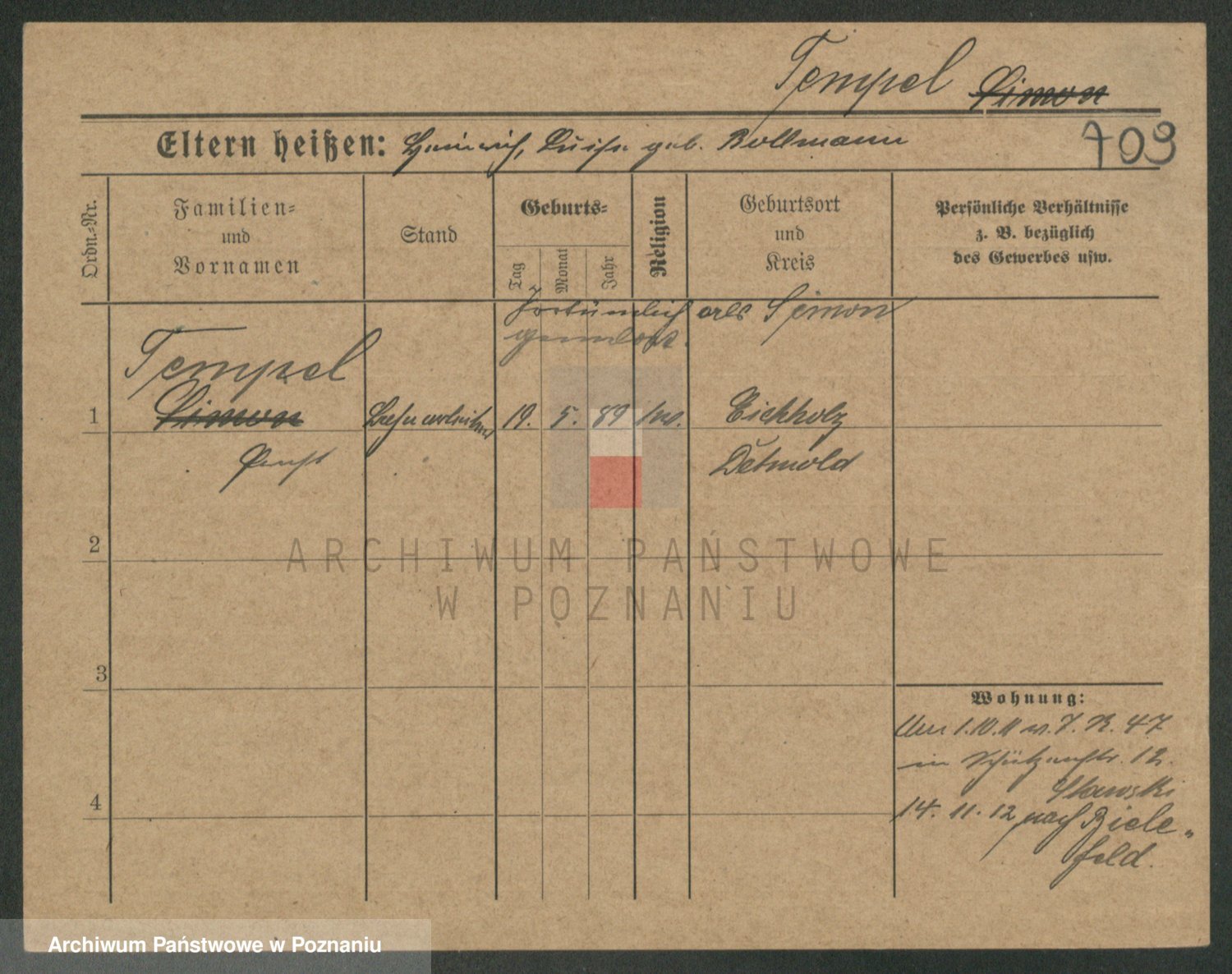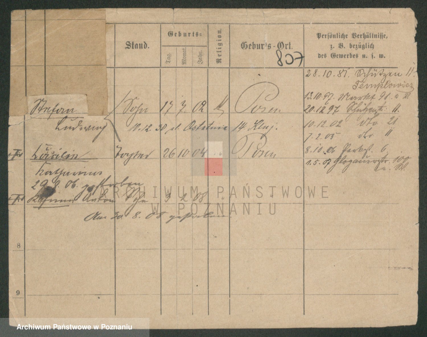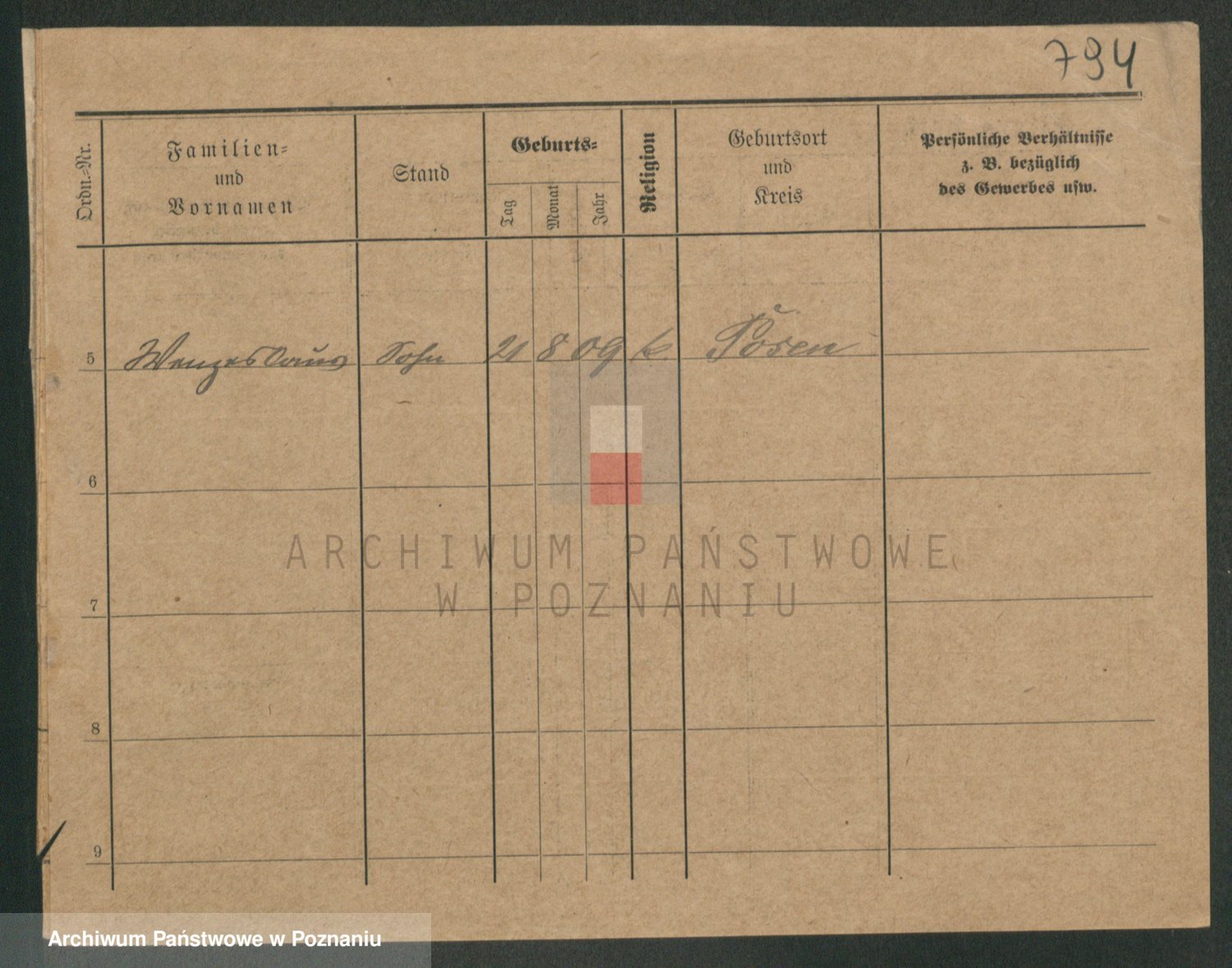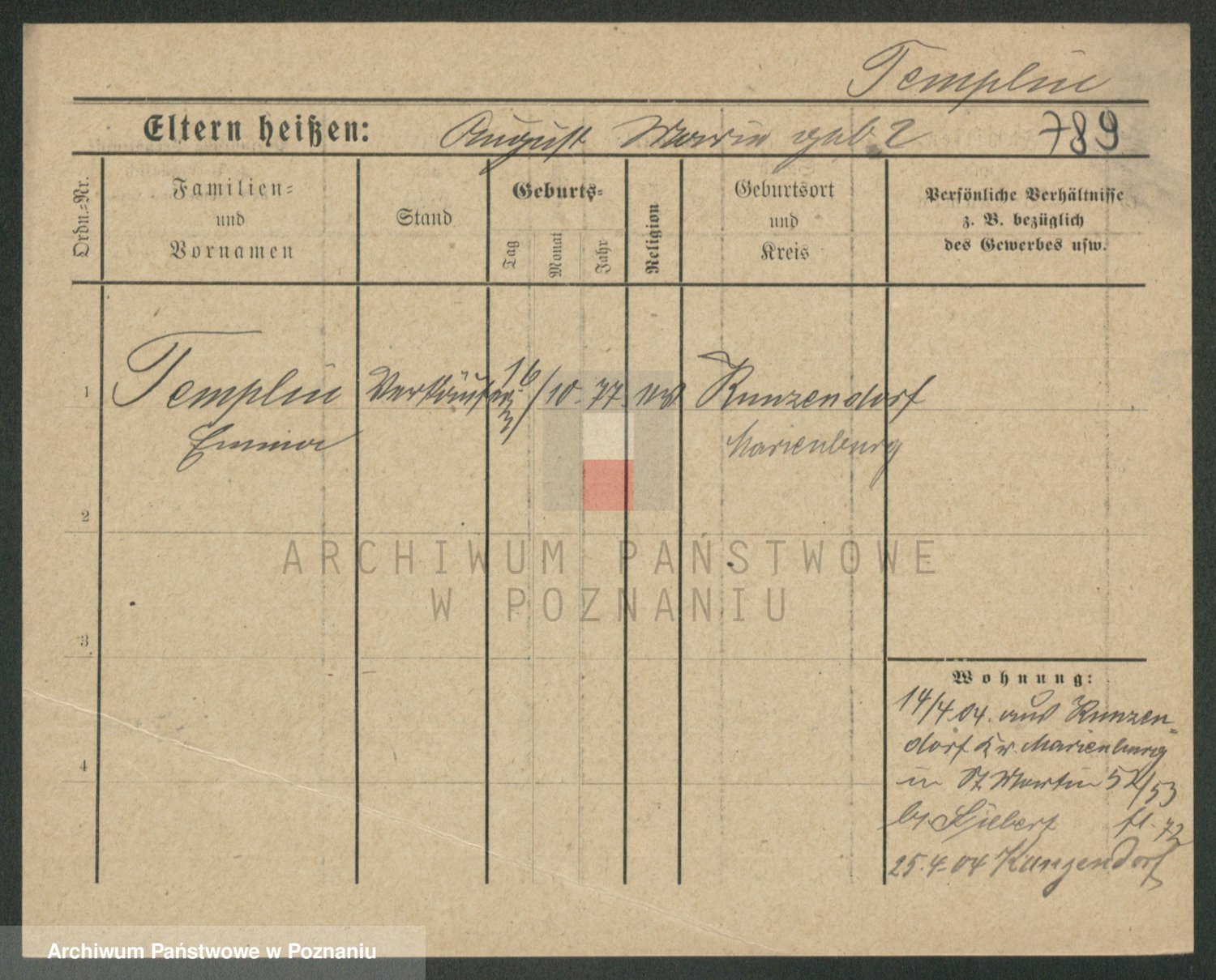 Podgląd karty osobowej dostępny jest po kliknięciu na nazwisko lub ikonkę karty. Można dokonywać powiększenia (ikony na górze) lub przechodzić między kolejnymi skanami (strzałki po bokach).