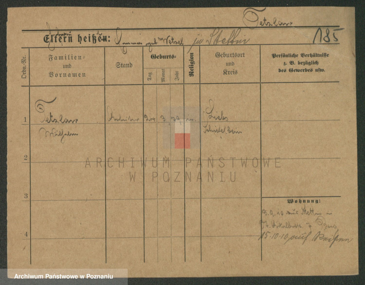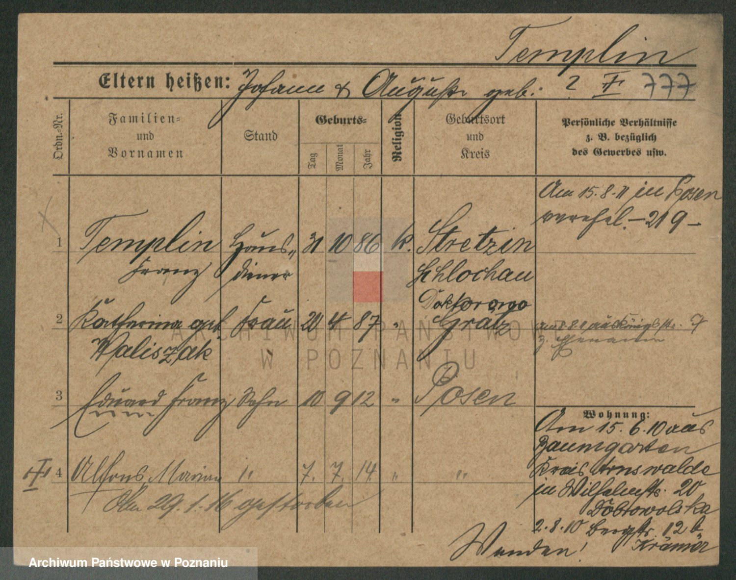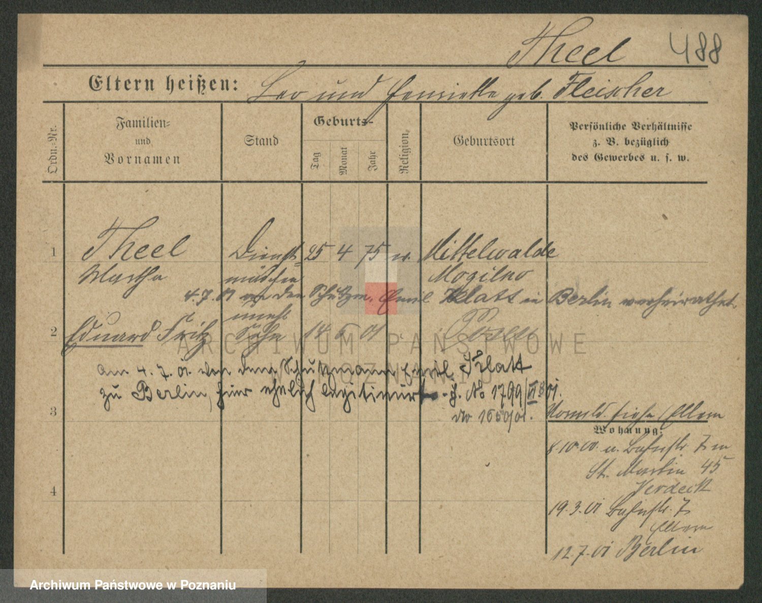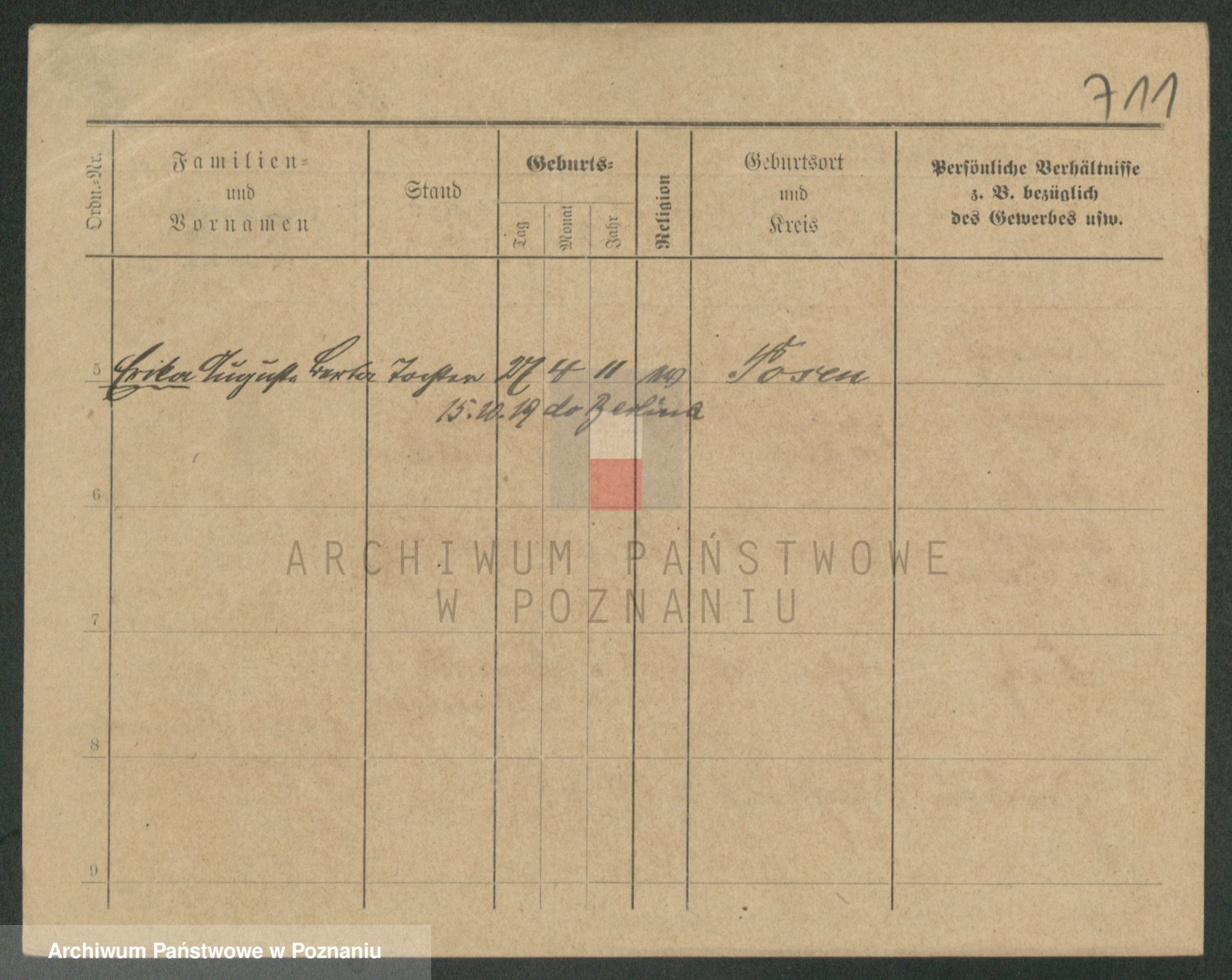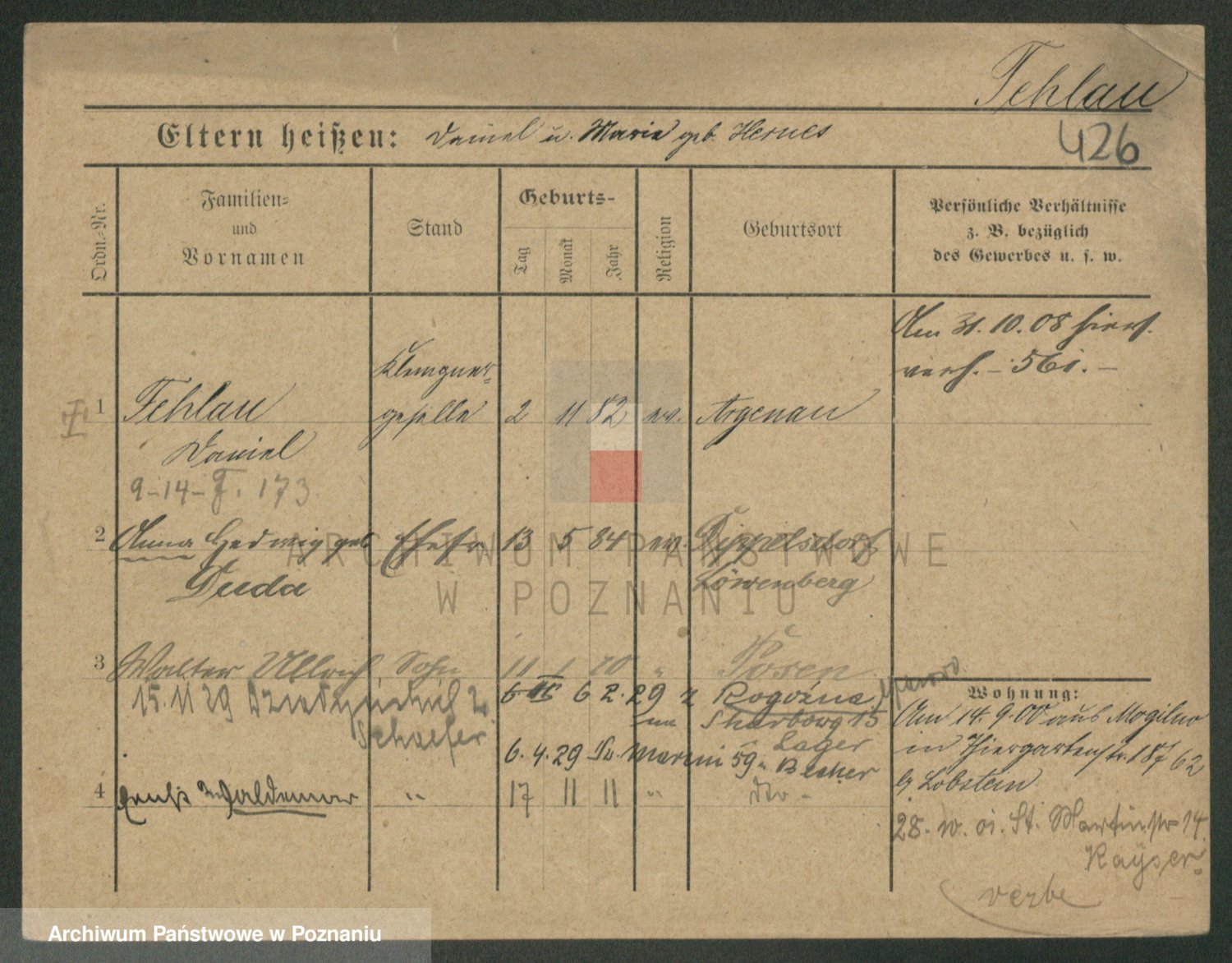 Podgląd karty osobowej dostępny jest po kliknięciu na nazwisko lub ikonkę karty. Można dokonywać powiększenia (ikony na górze) lub przechodzić między kolejnymi skanami (strzałki po bokach).