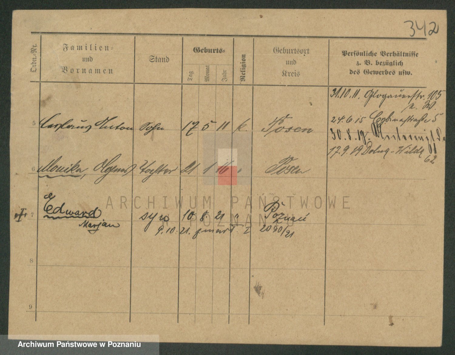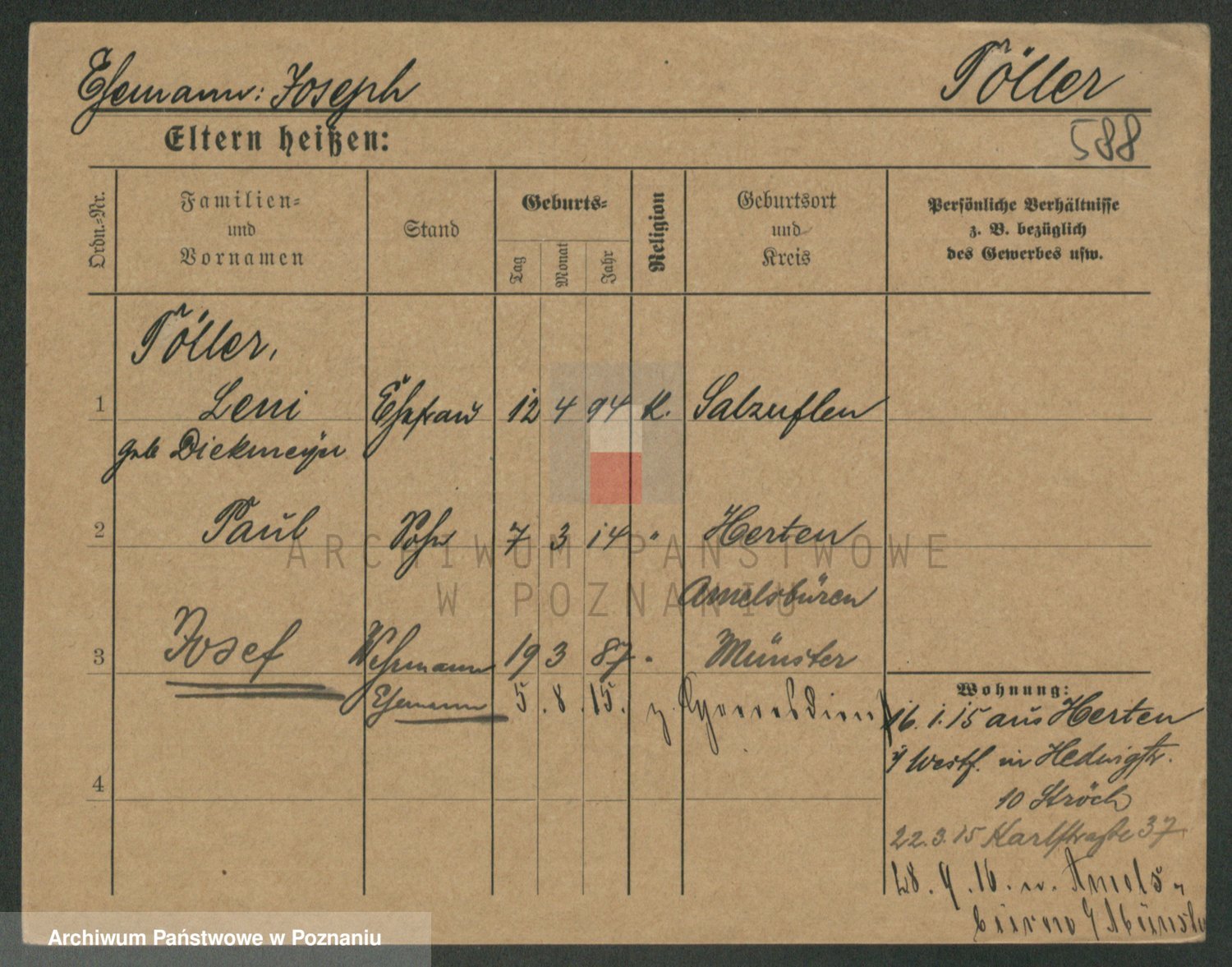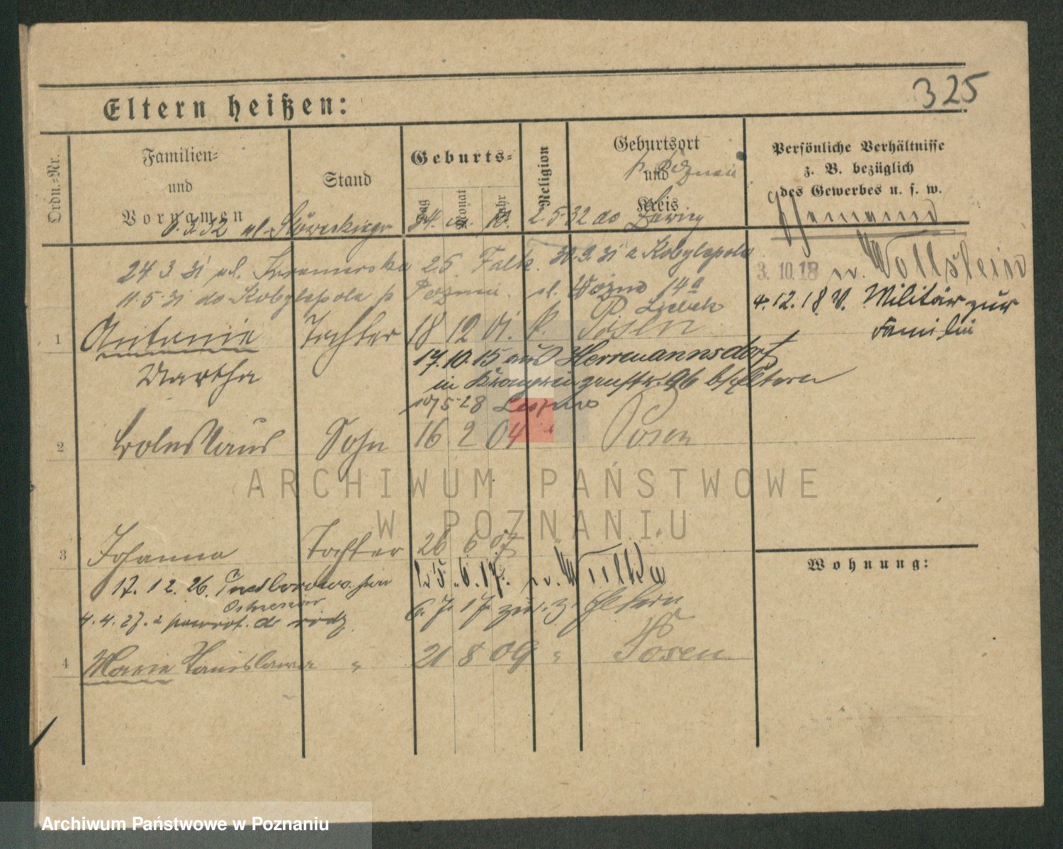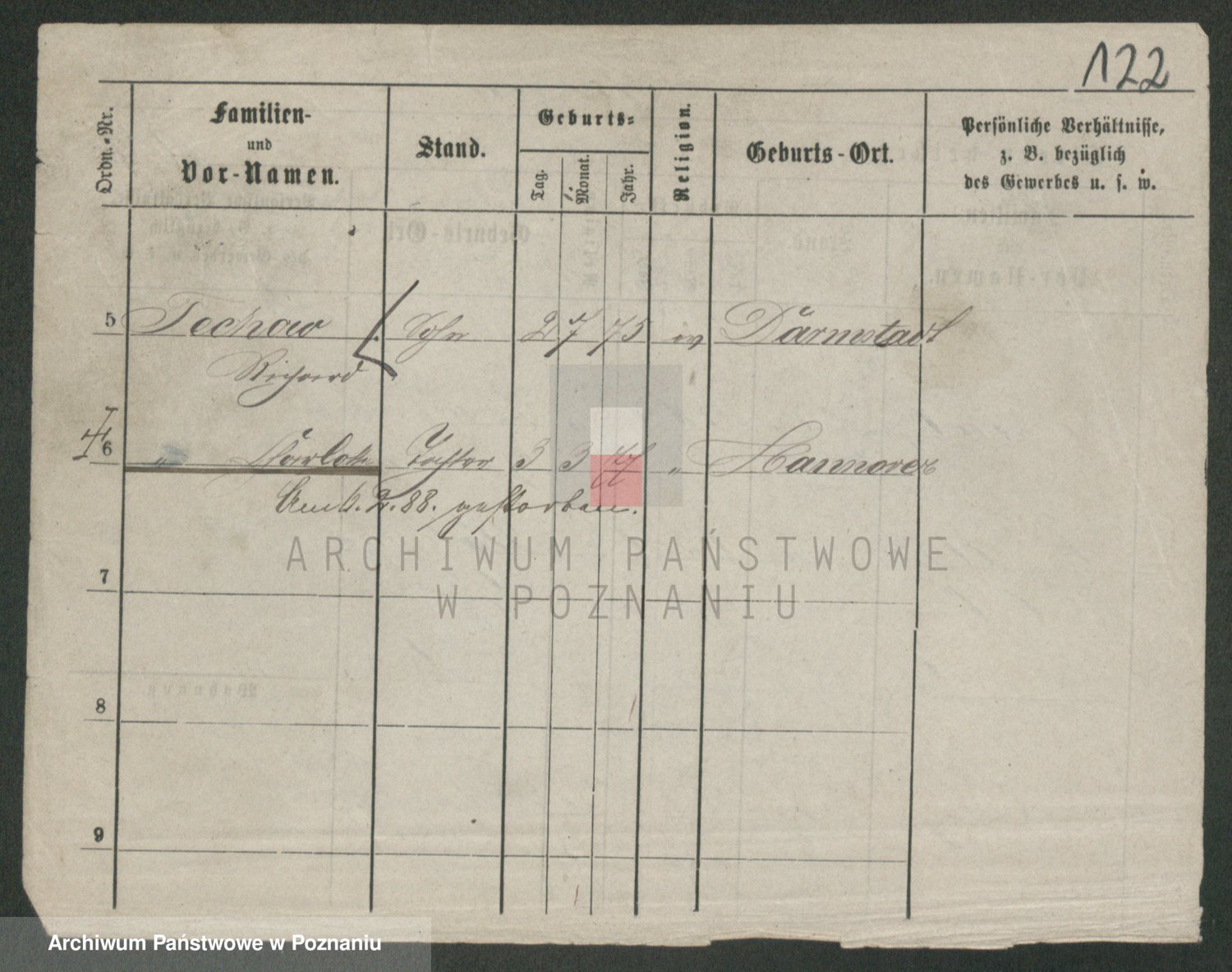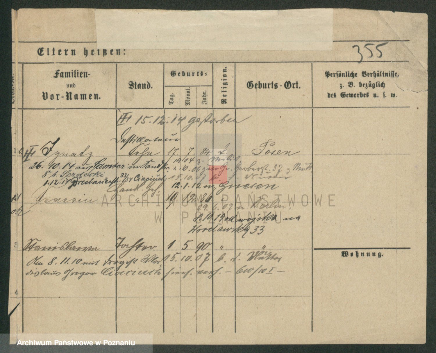Podgląd karty osobowej dostępny jest po kliknięciu na nazwisko lub ikonkę karty. Można dokonywać powiększenia (ikony na górze) lub przechodzić między kolejnymi skanami (strzałki po bokach).