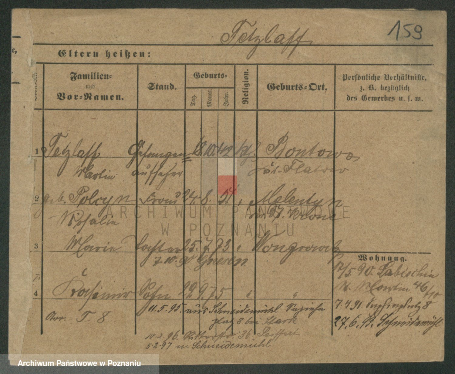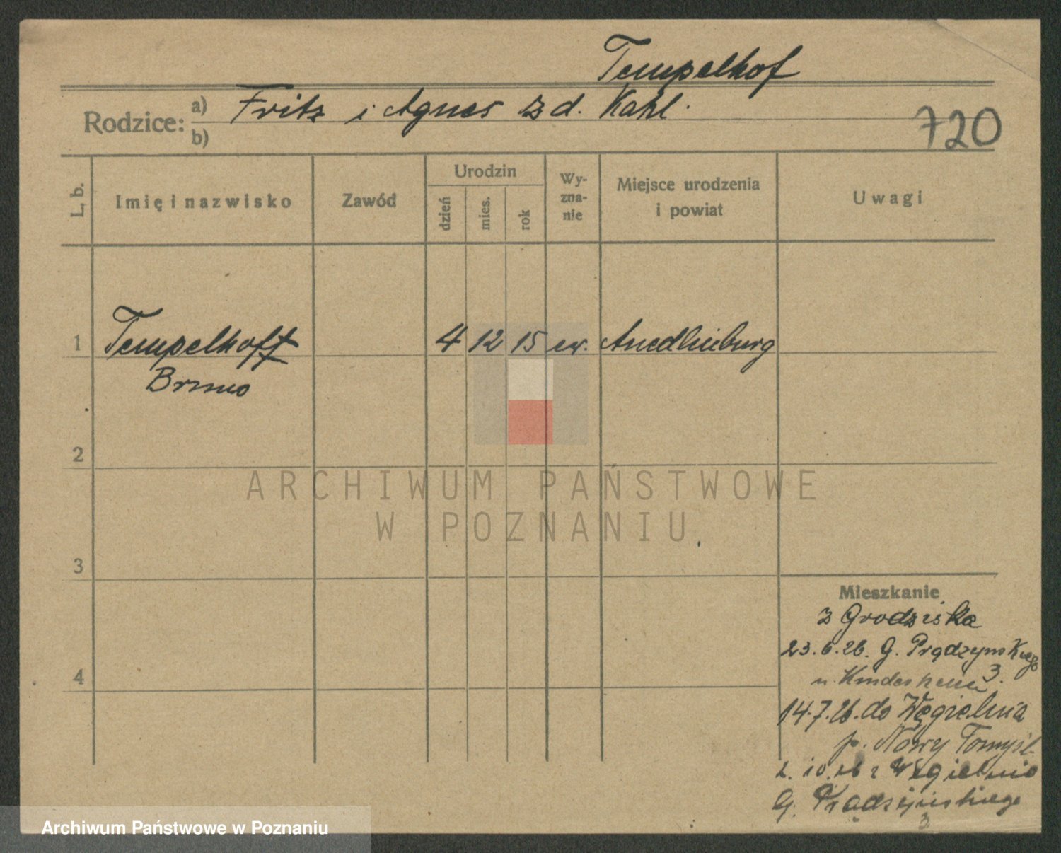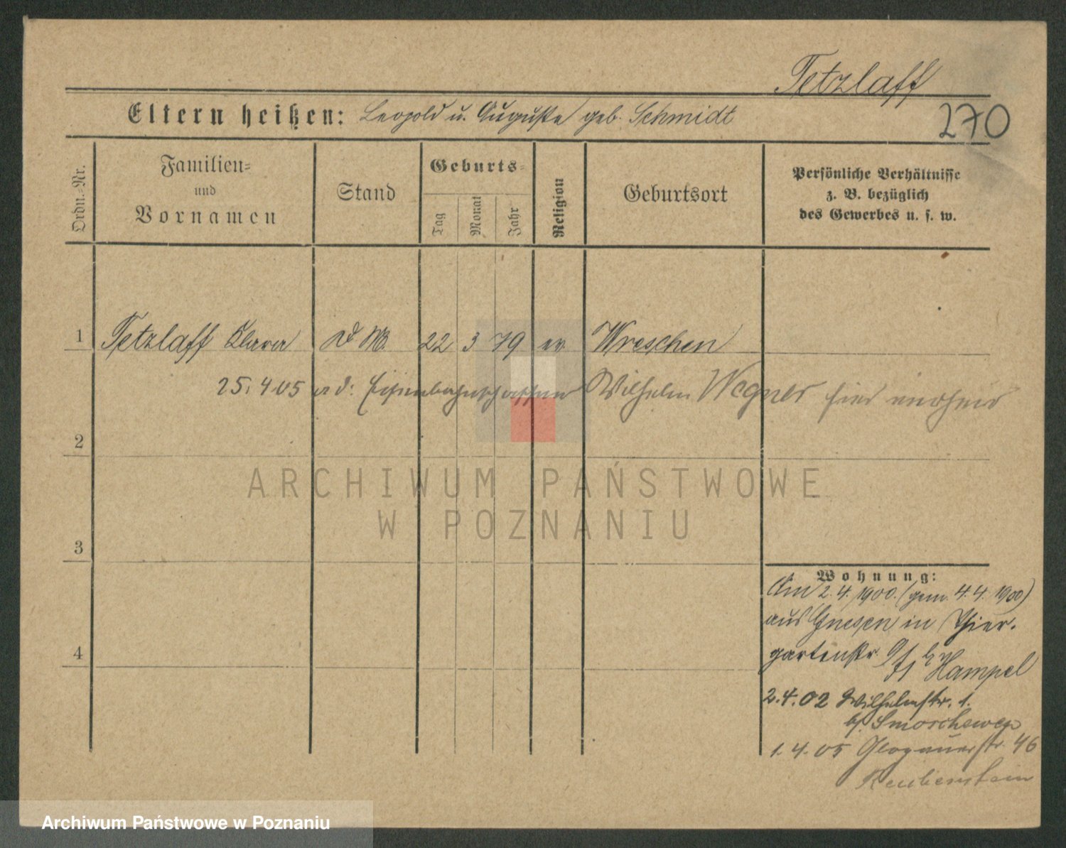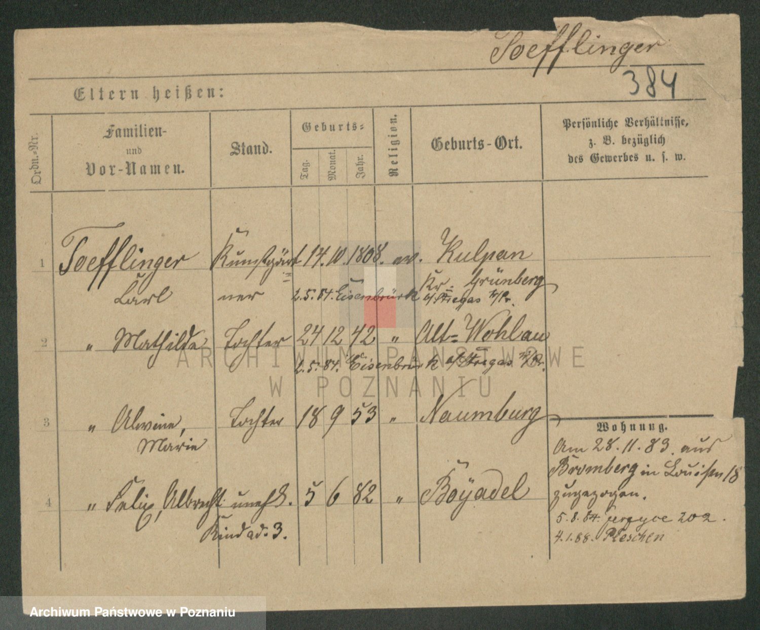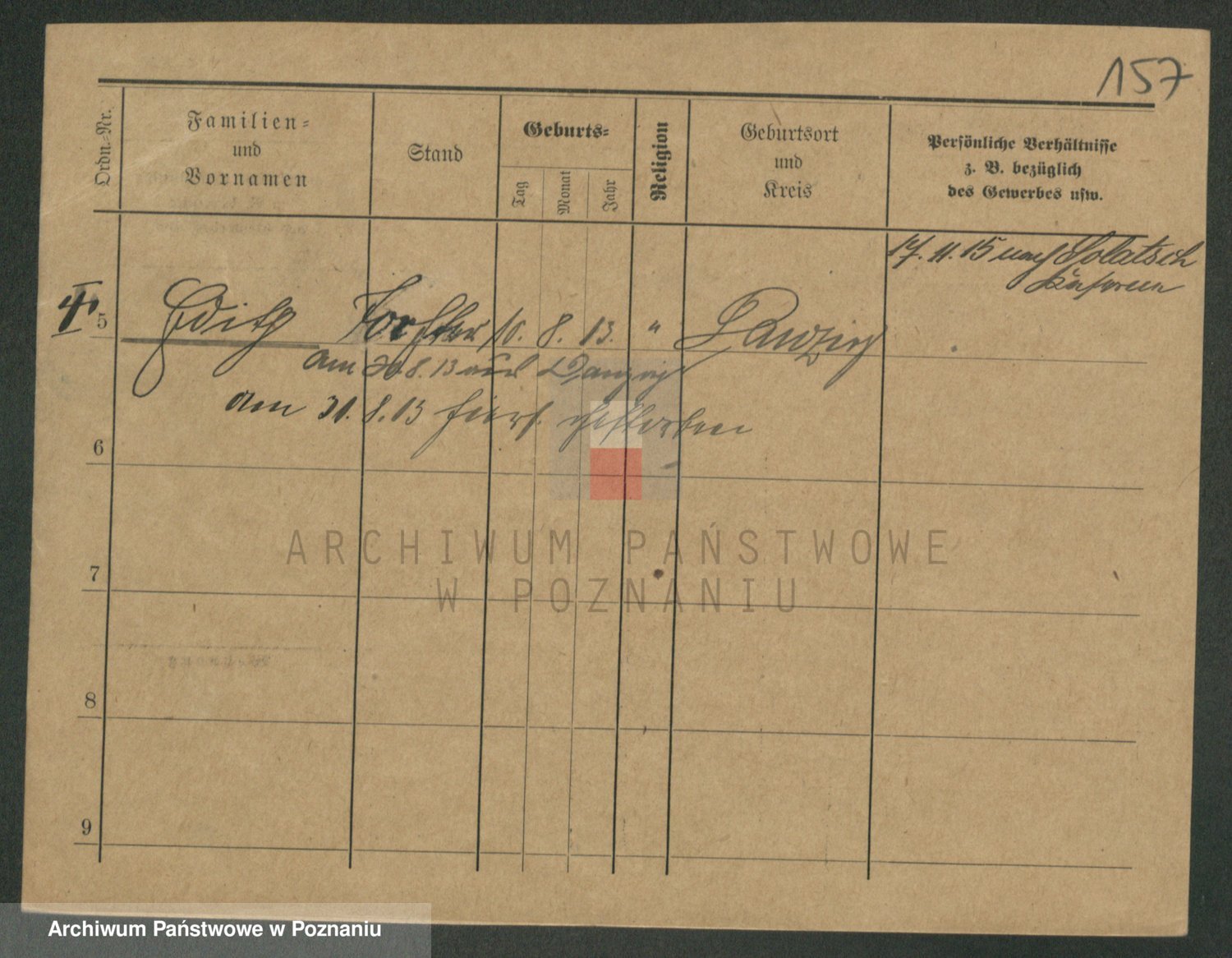 Podgląd karty osobowej dostępny jest po kliknięciu na nazwisko lub ikonkę karty. Można dokonywać powiększenia (ikony na górze) lub przechodzić między kolejnymi skanami (strzałki po bokach).