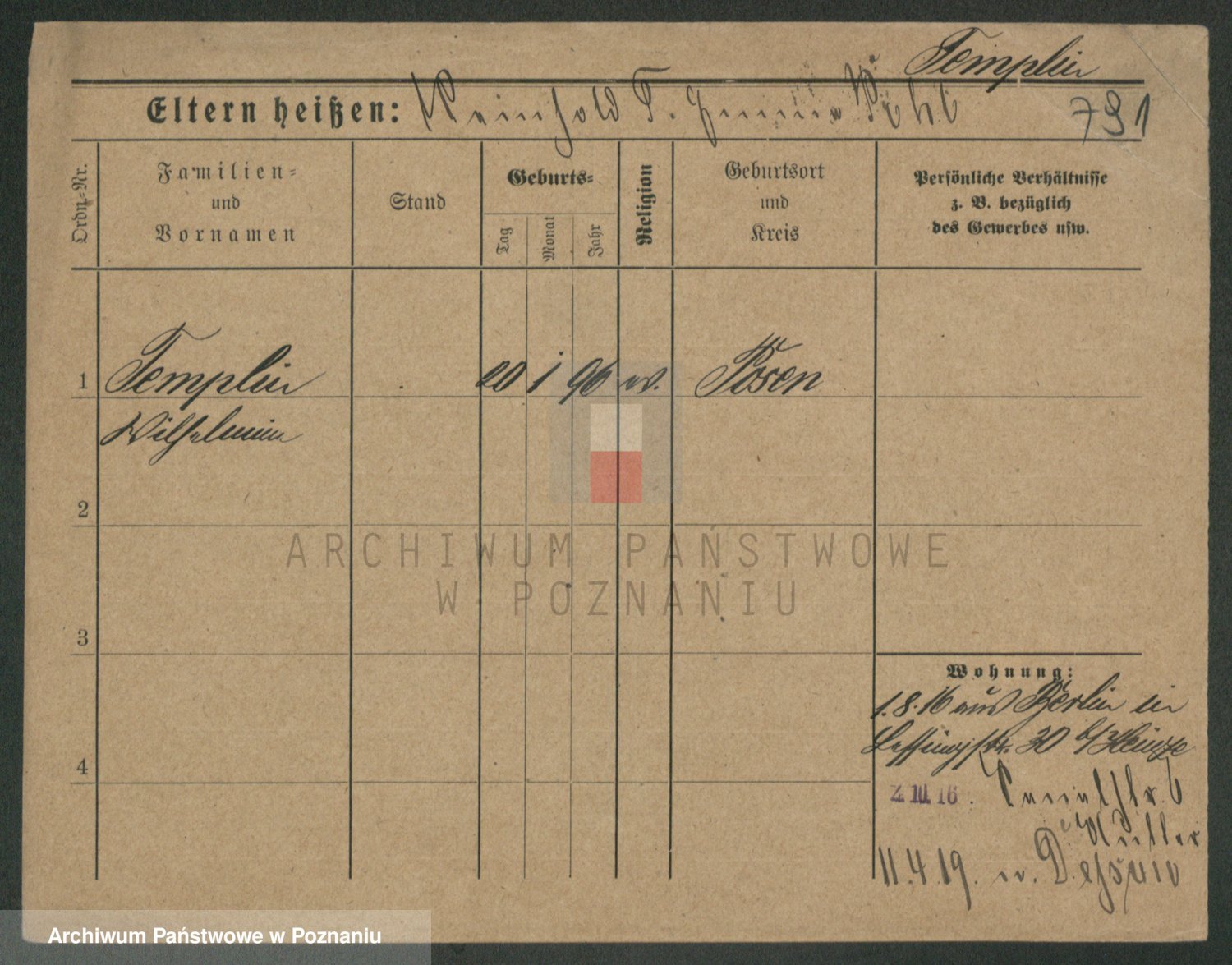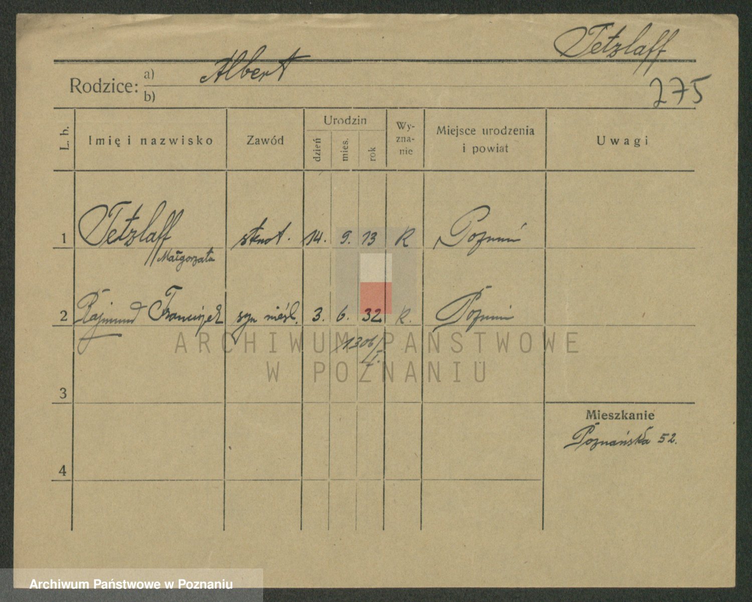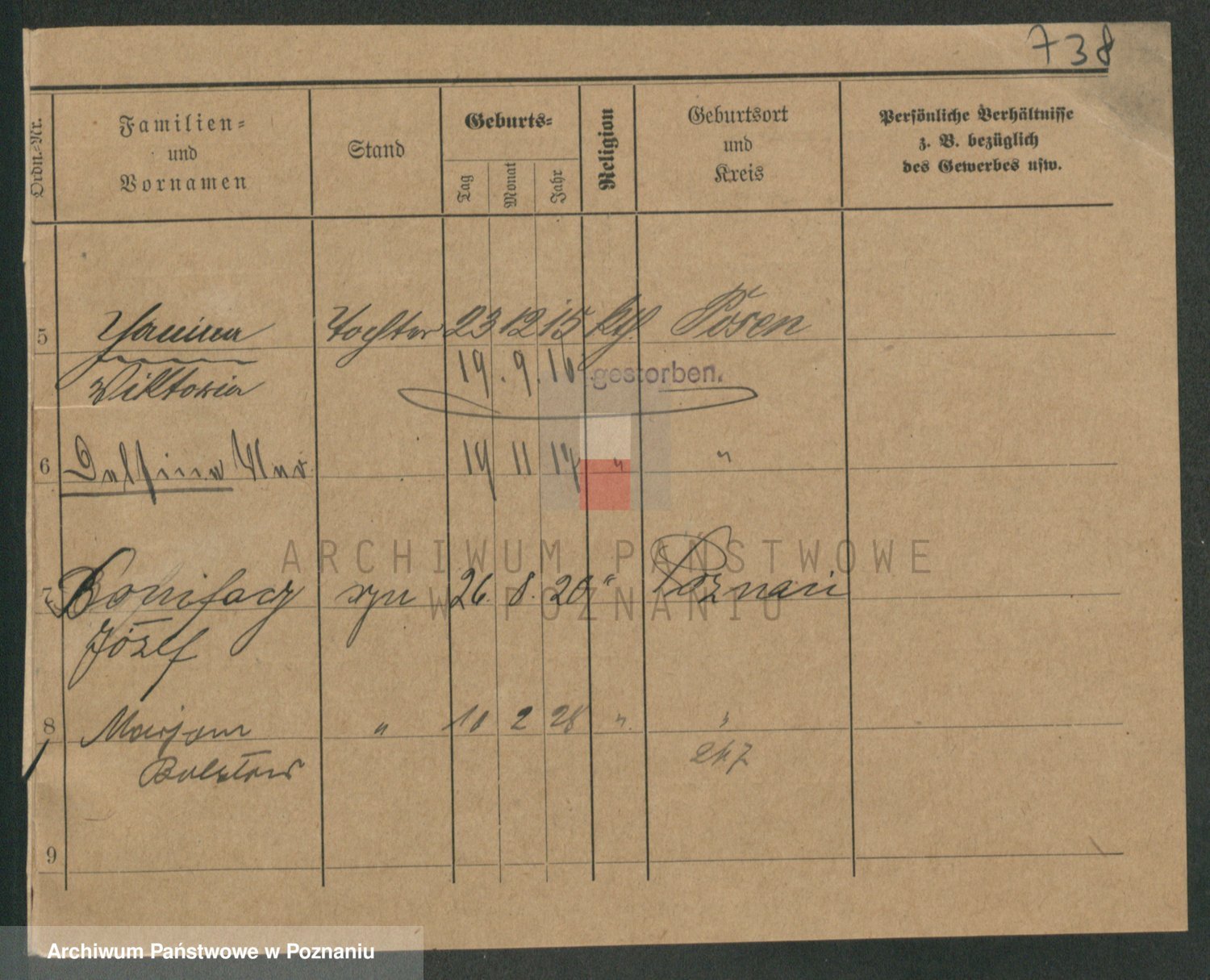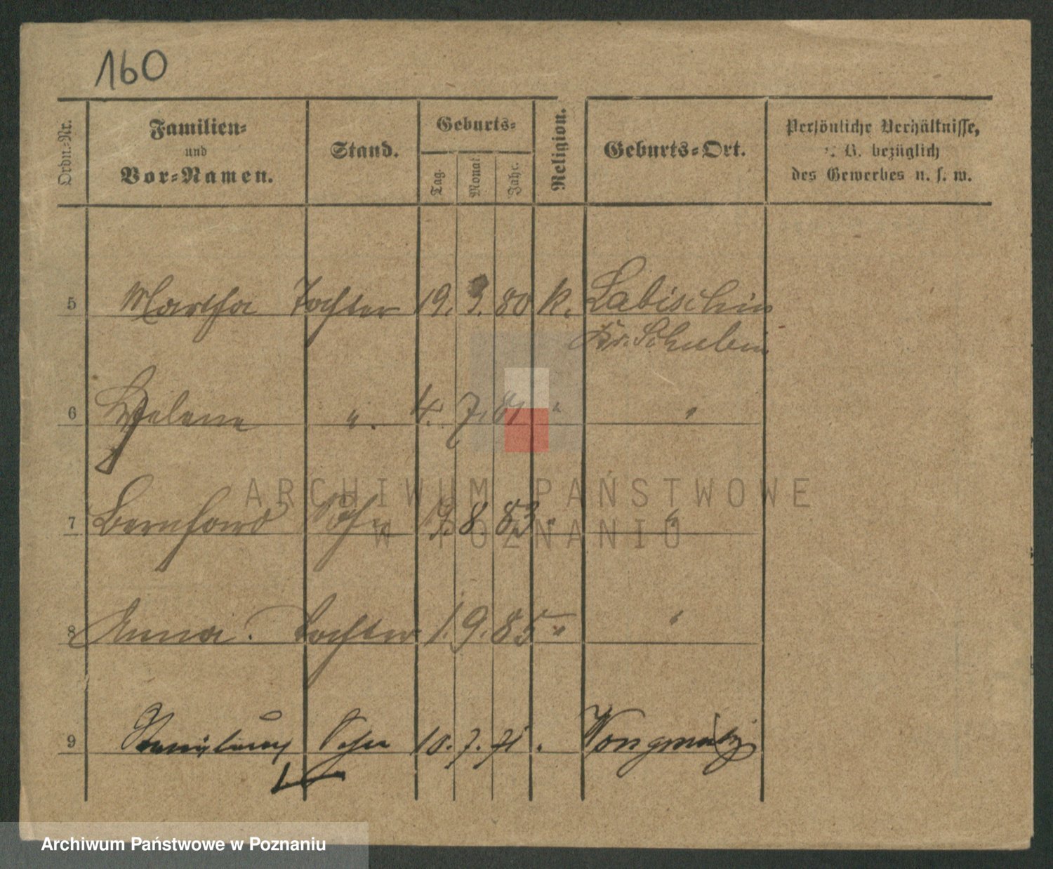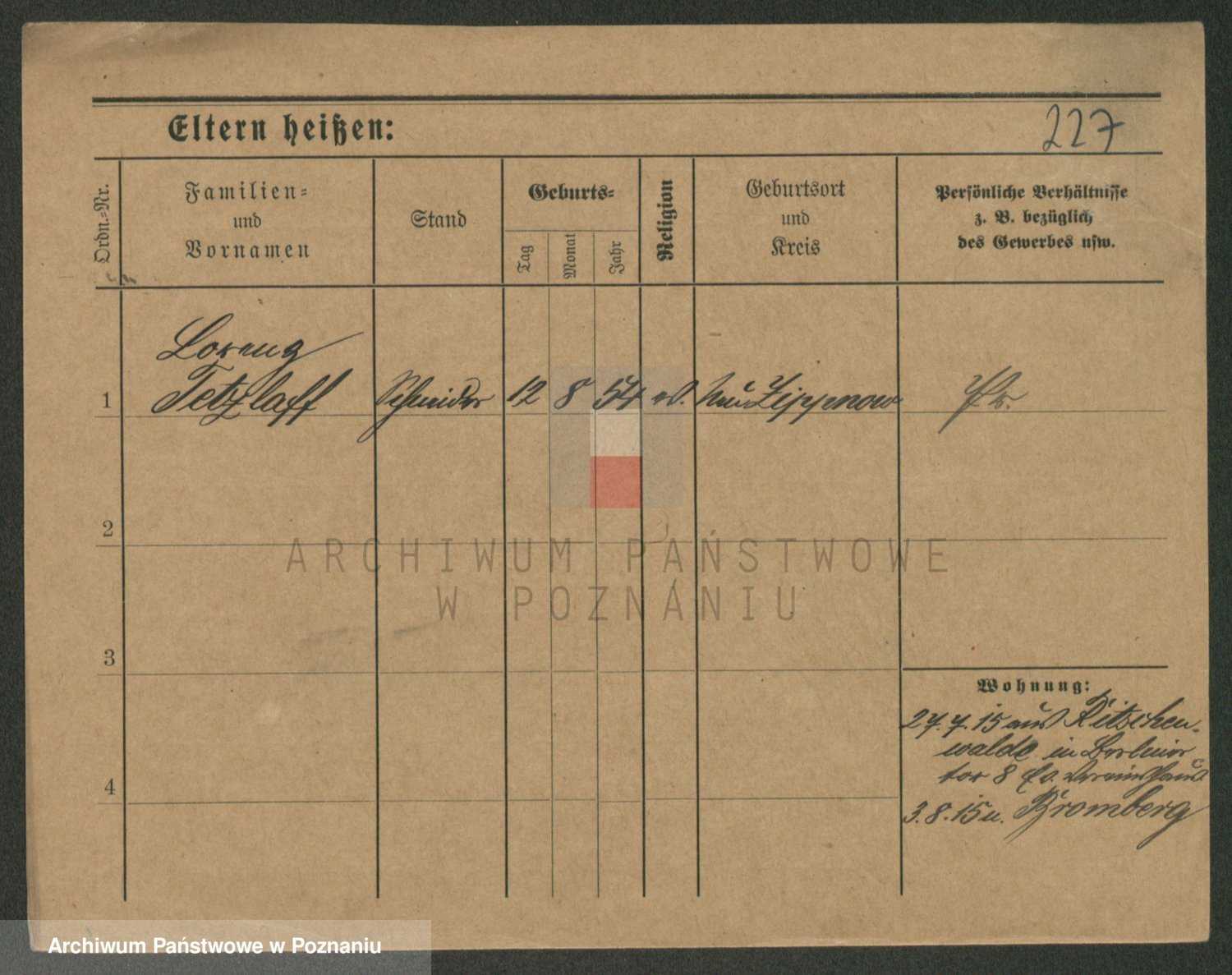 Podgląd karty osobowej dostępny jest po kliknięciu na nazwisko lub ikonkę karty. Można dokonywać powiększenia (ikony na górze) lub przechodzić między kolejnymi skanami (strzałki po bokach).