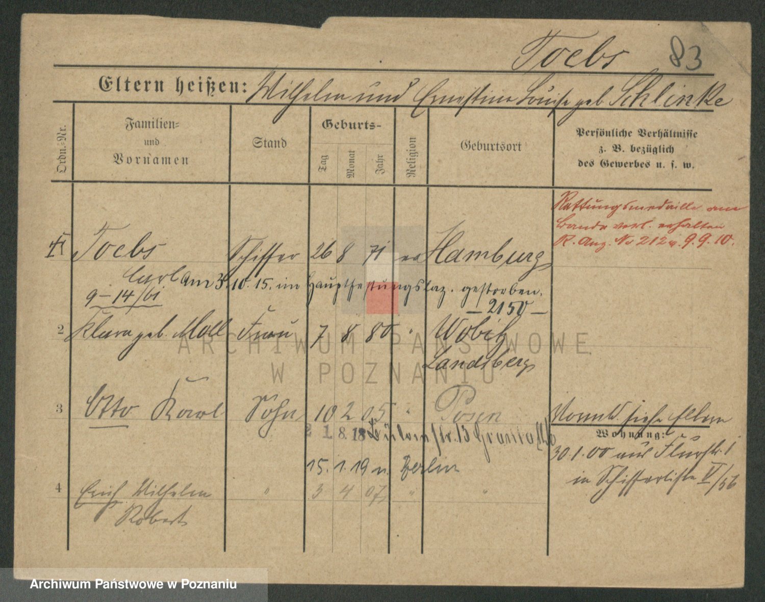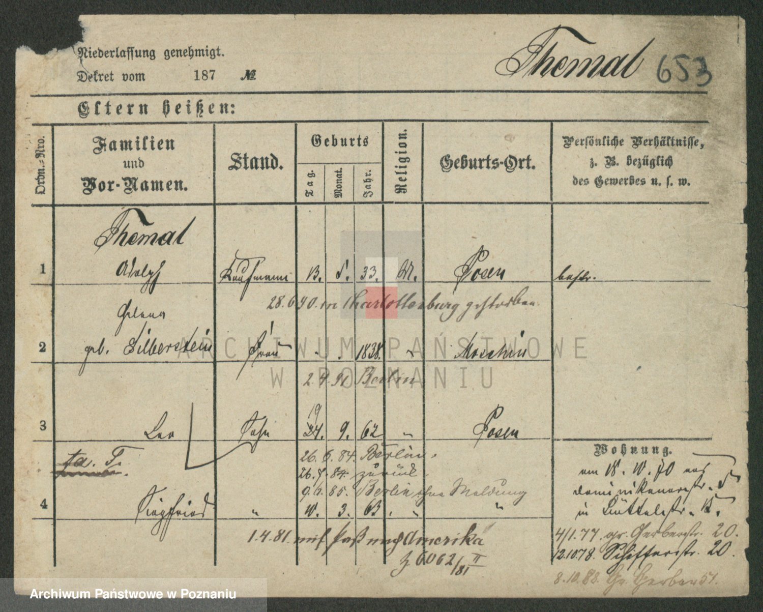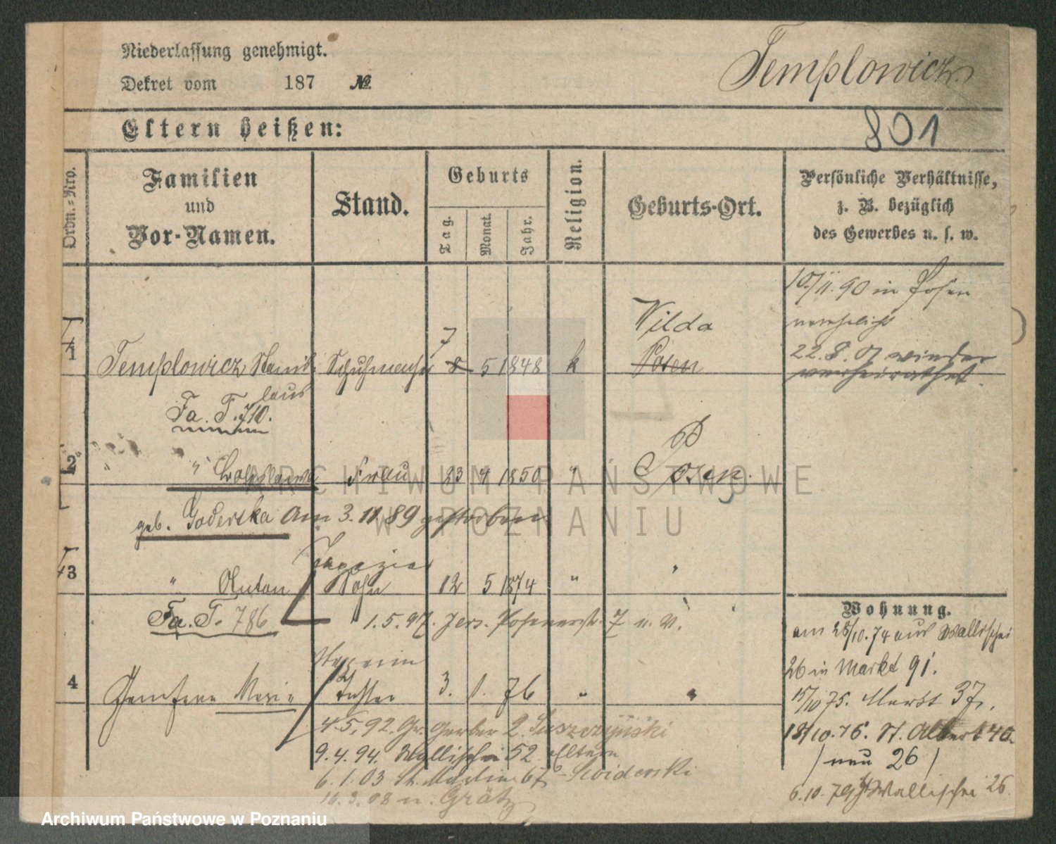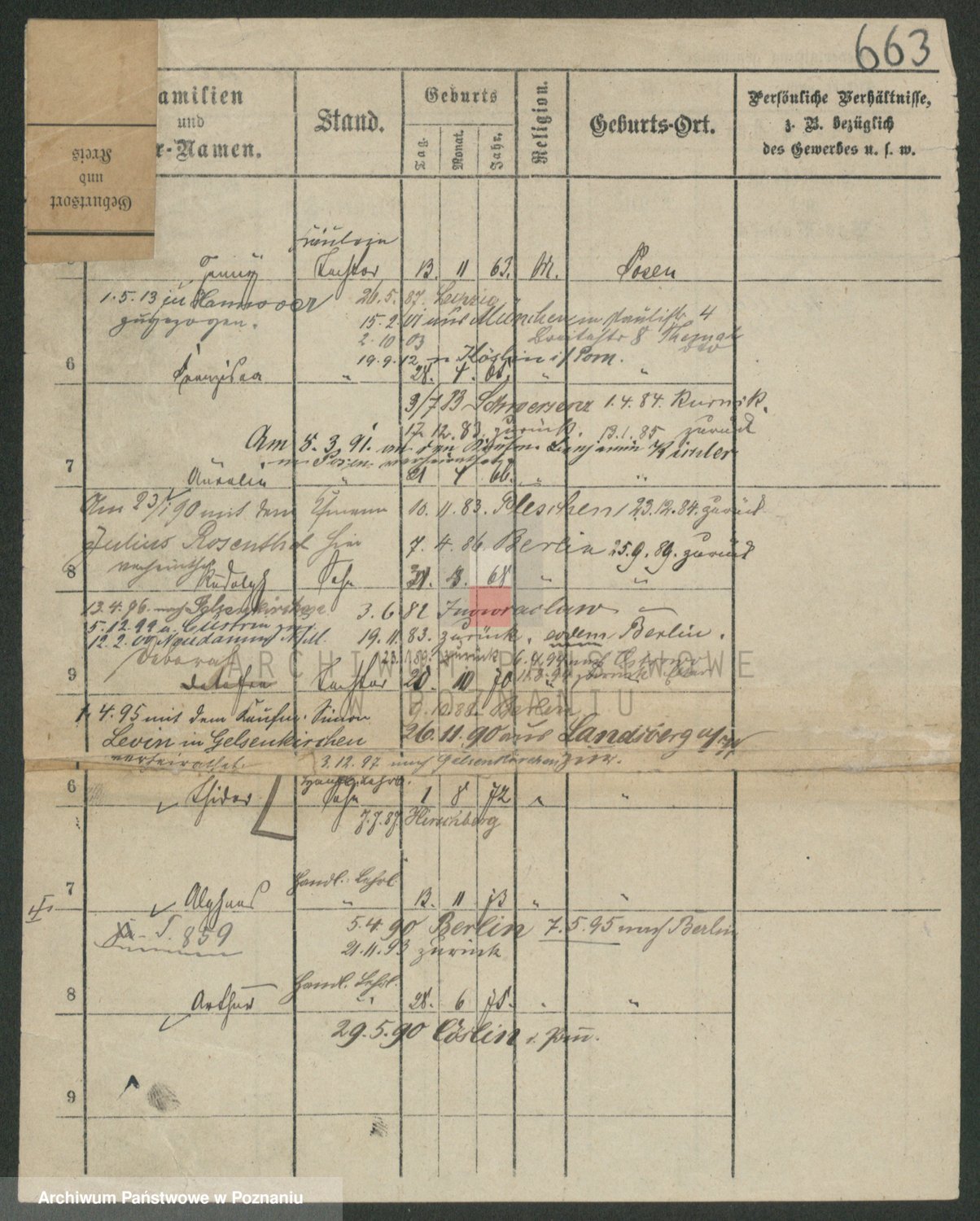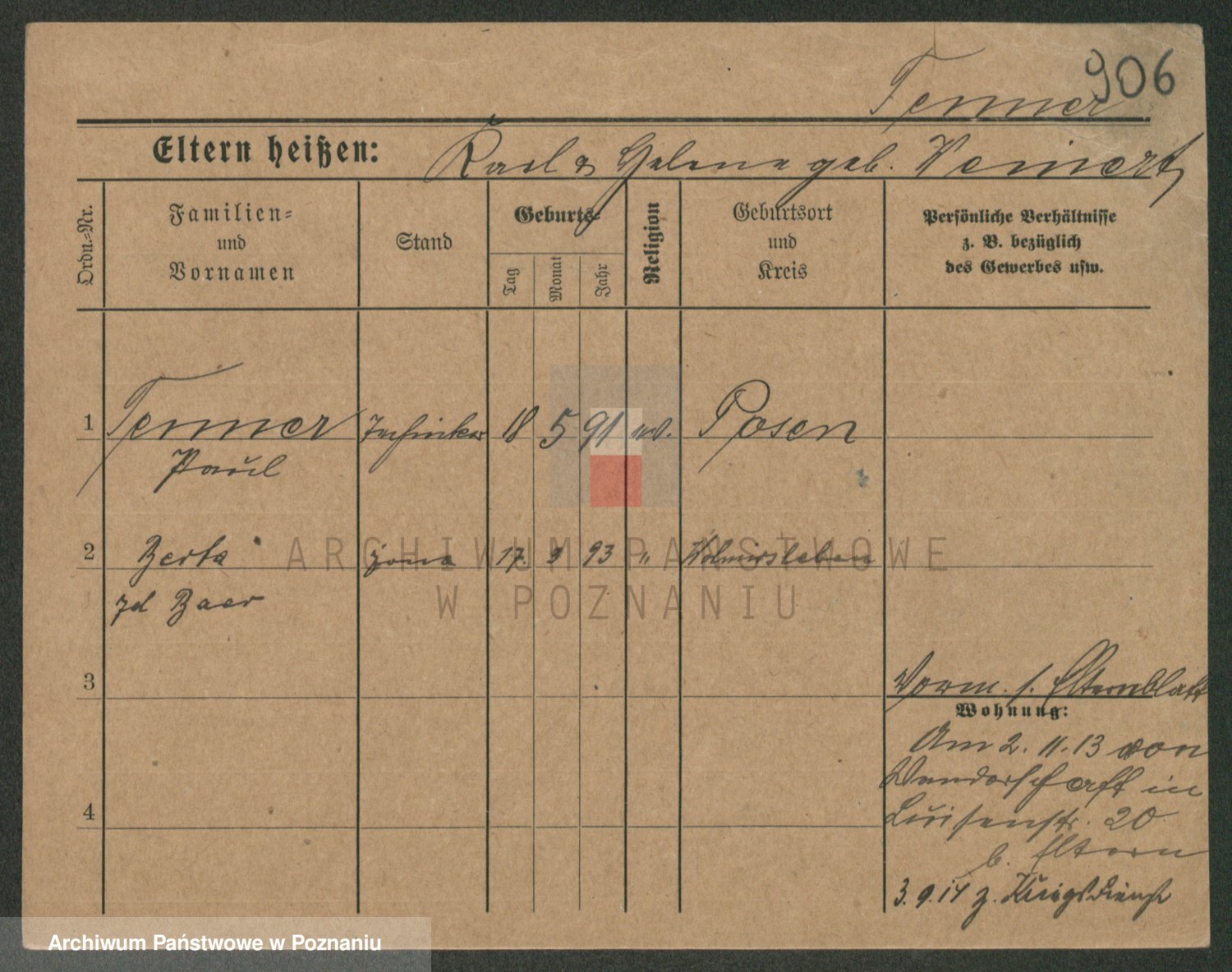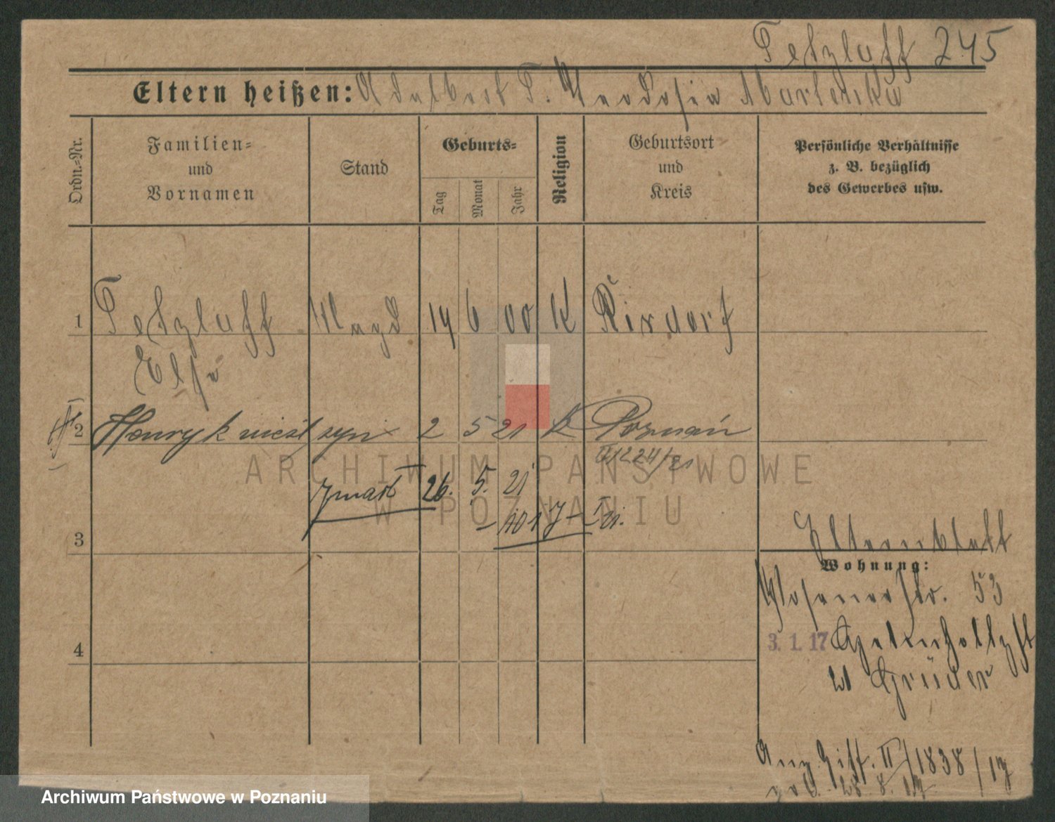 Podgląd karty osobowej dostępny jest po kliknięciu na nazwisko lub ikonkę karty. Można dokonywać powiększenia (ikony na górze) lub przechodzić między kolejnymi skanami (strzałki po bokach).