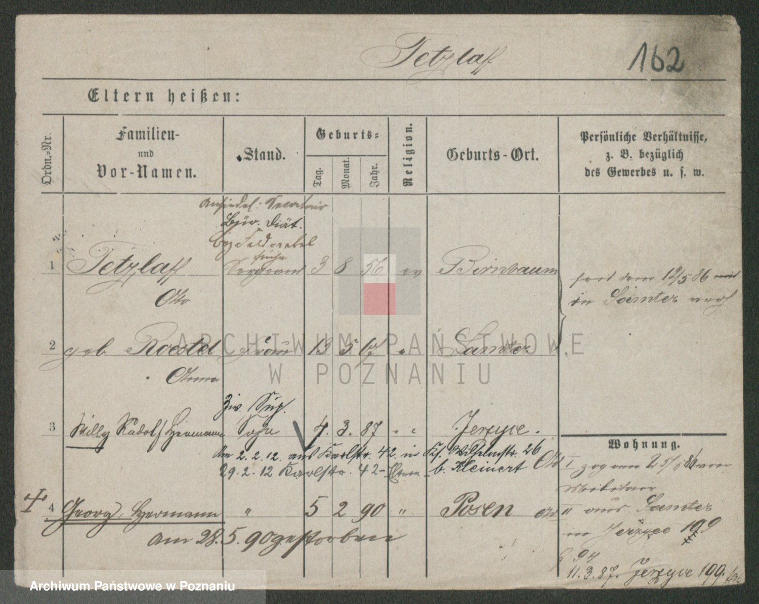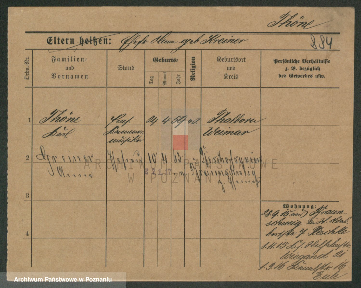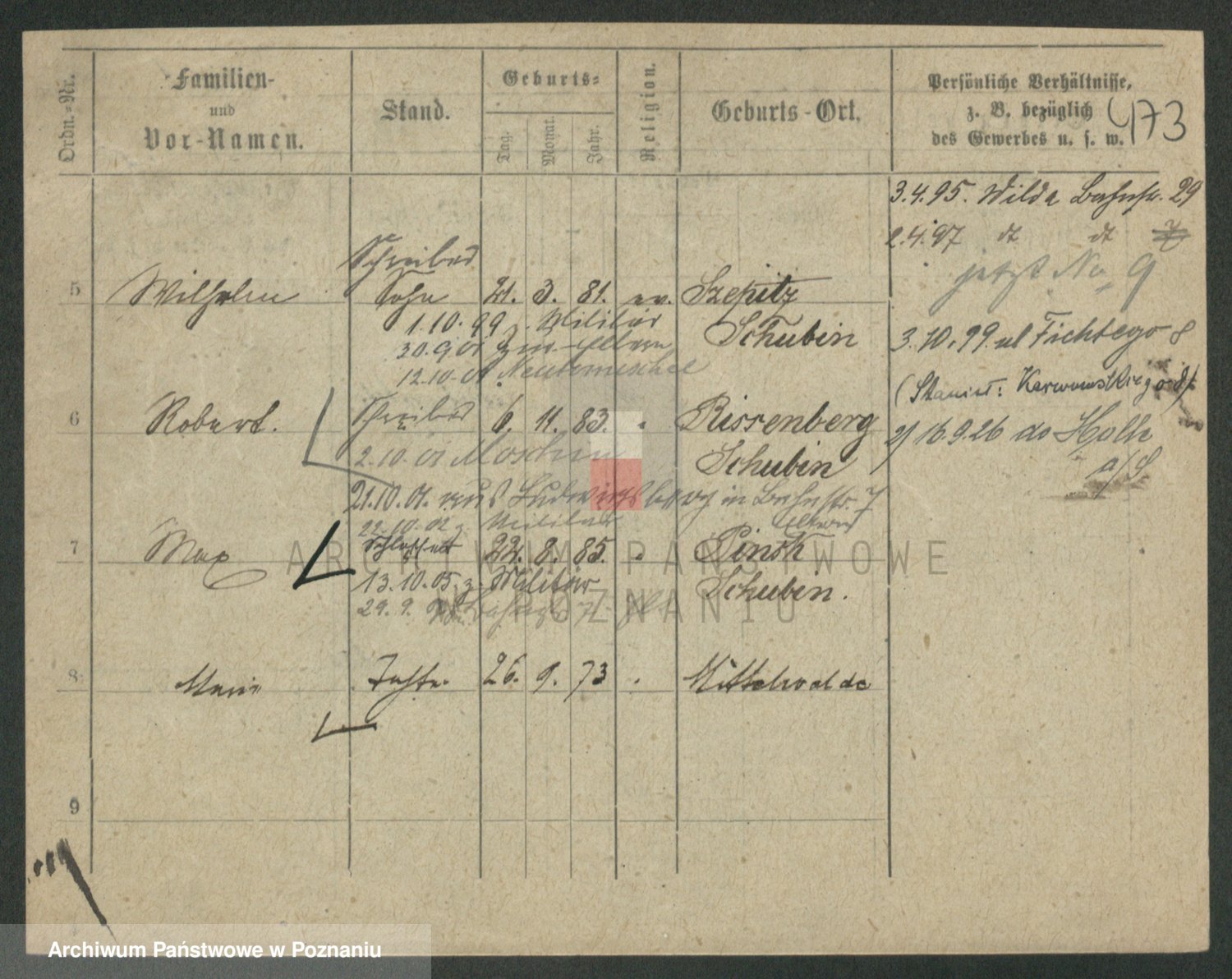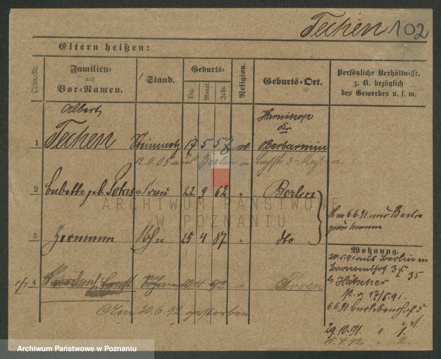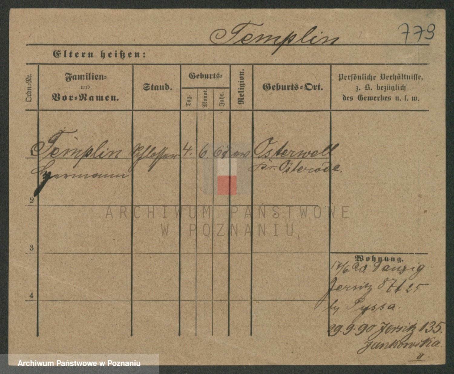 Podgląd karty osobowej dostępny jest po kliknięciu na nazwisko lub ikonkę karty. Można dokonywać powiększenia (ikony na górze) lub przechodzić między kolejnymi skanami (strzałki po bokach).