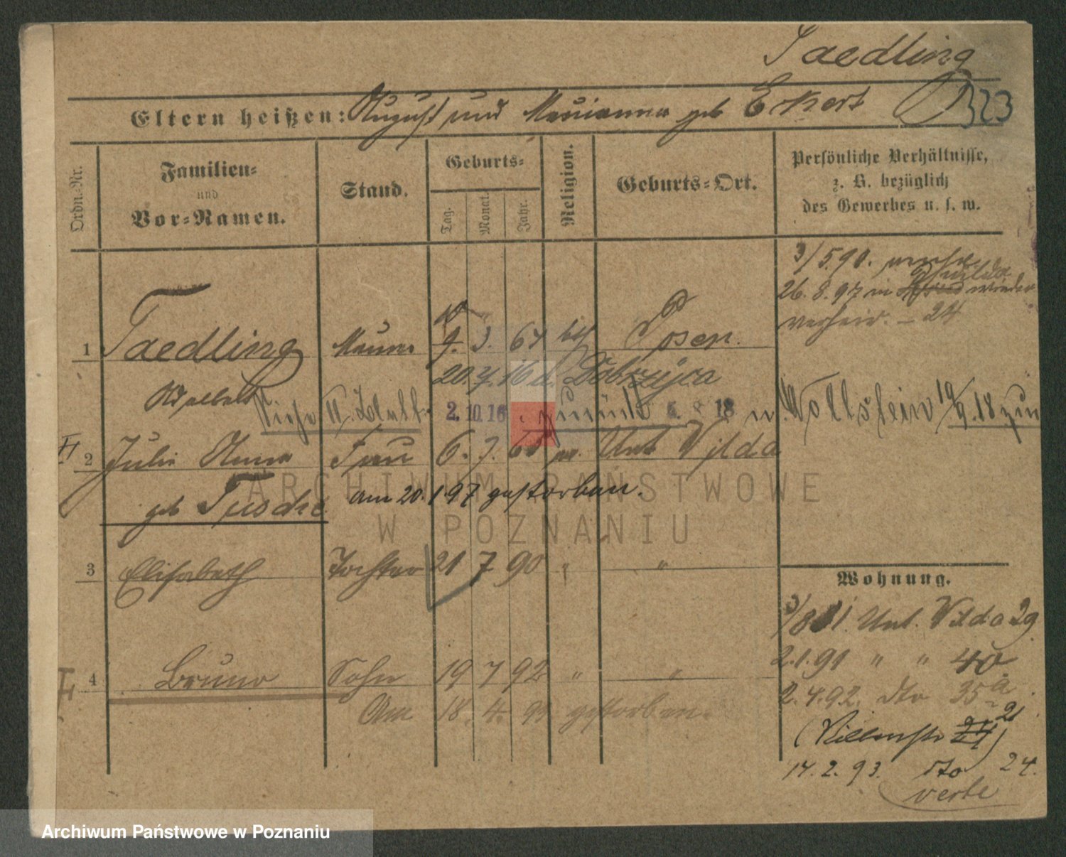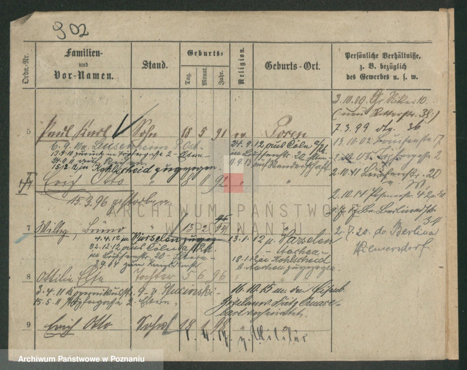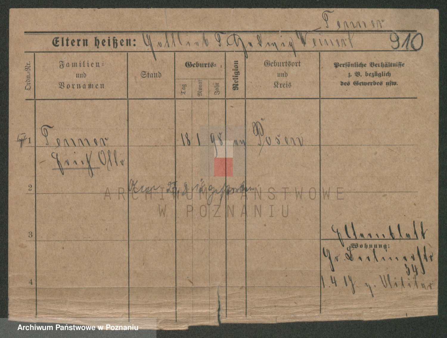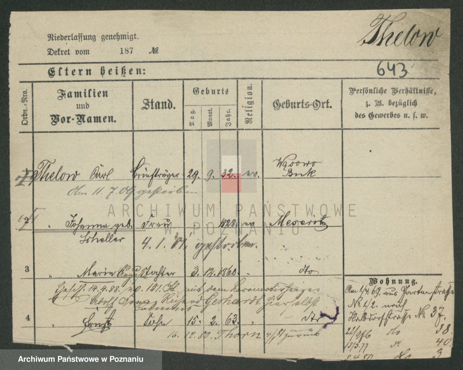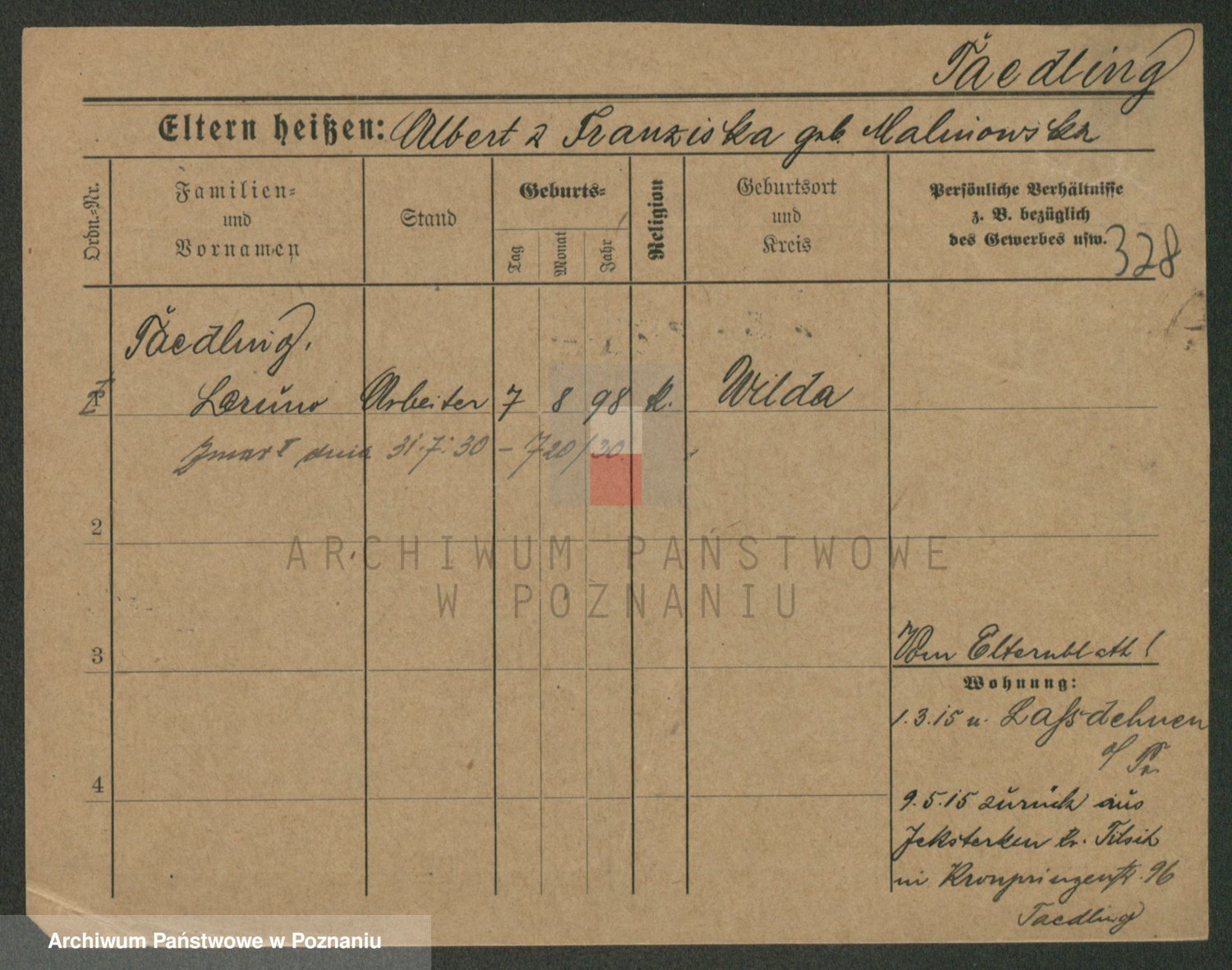 Podgląd karty osobowej dostępny jest po kliknięciu na nazwisko lub ikonkę karty. Można dokonywać powiększenia (ikony na górze) lub przechodzić między kolejnymi skanami (strzałki po bokach).