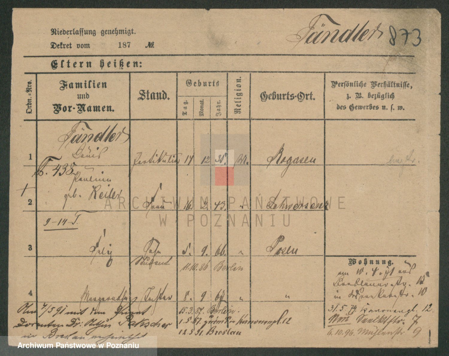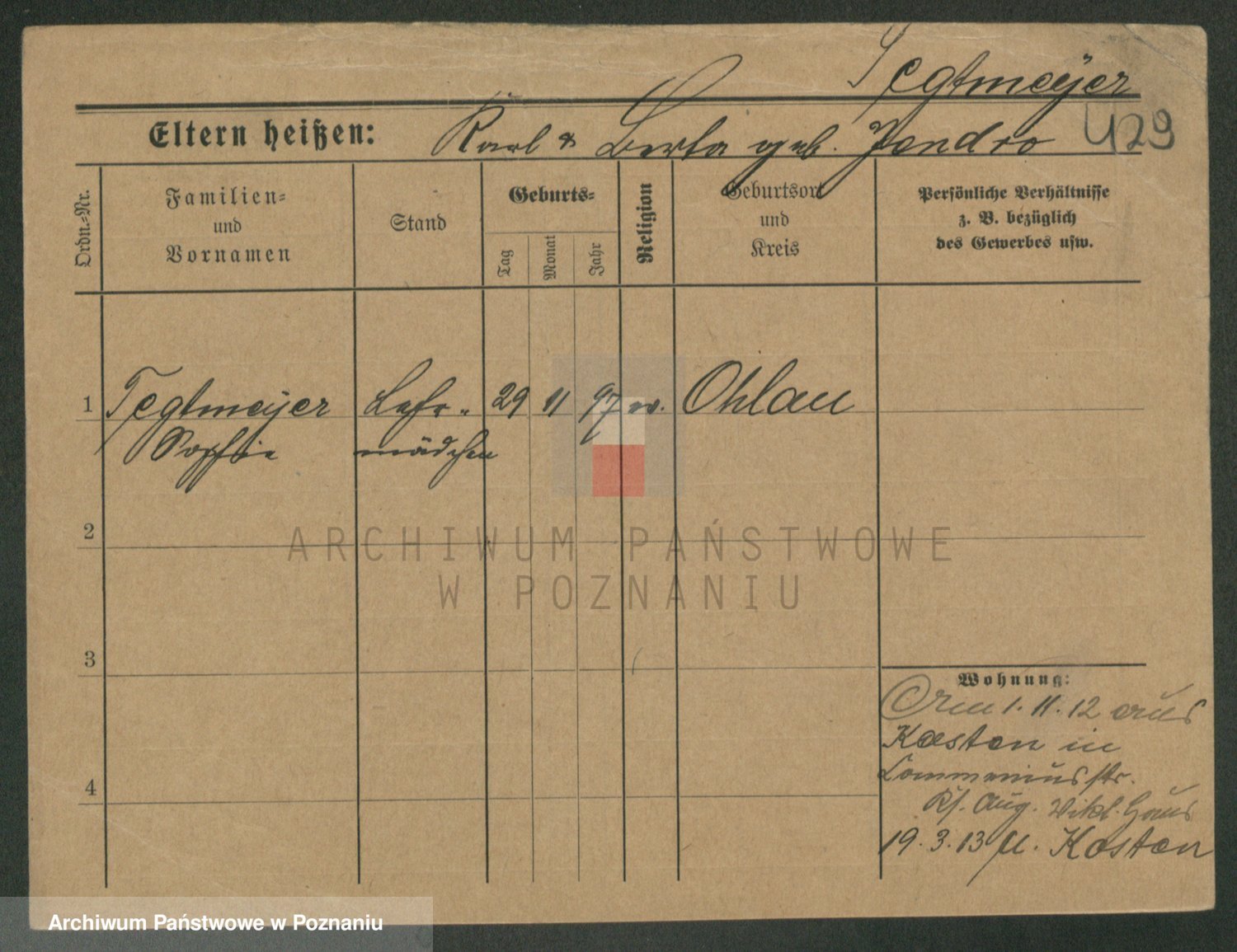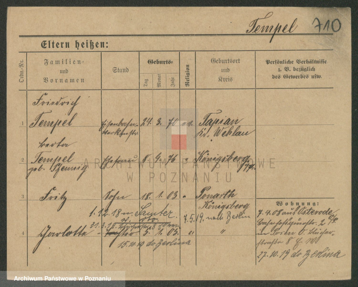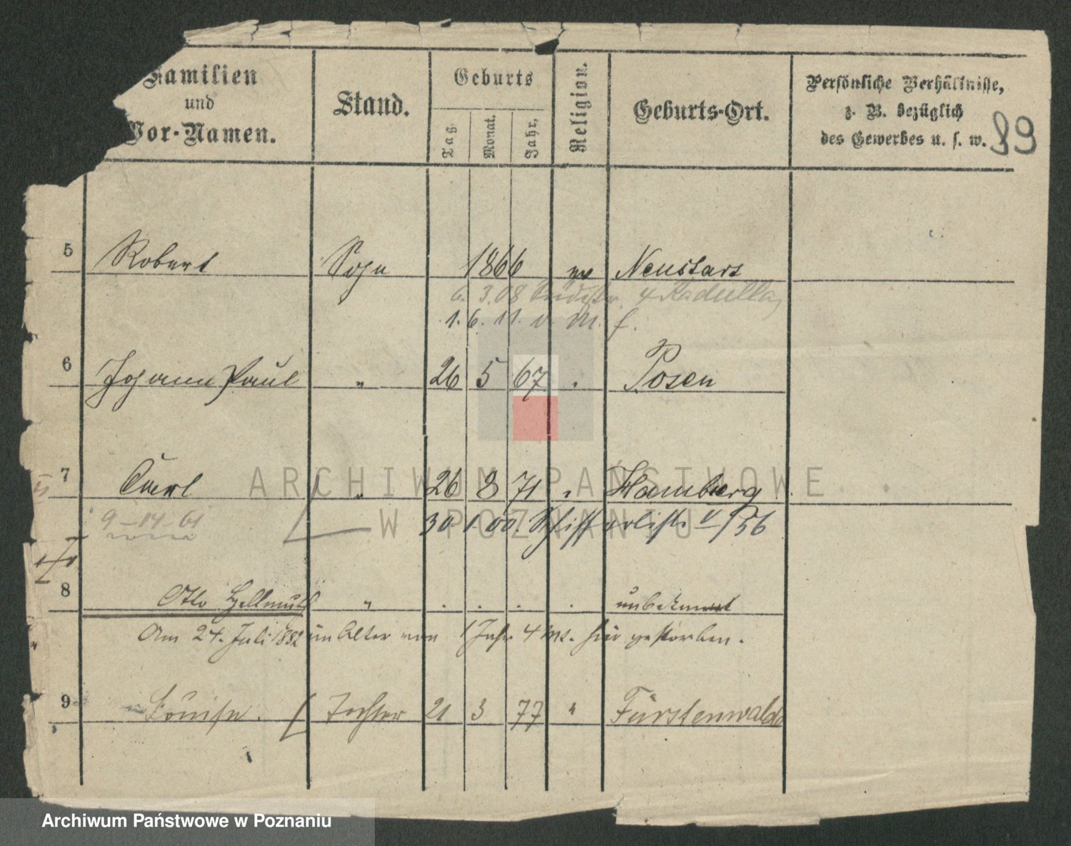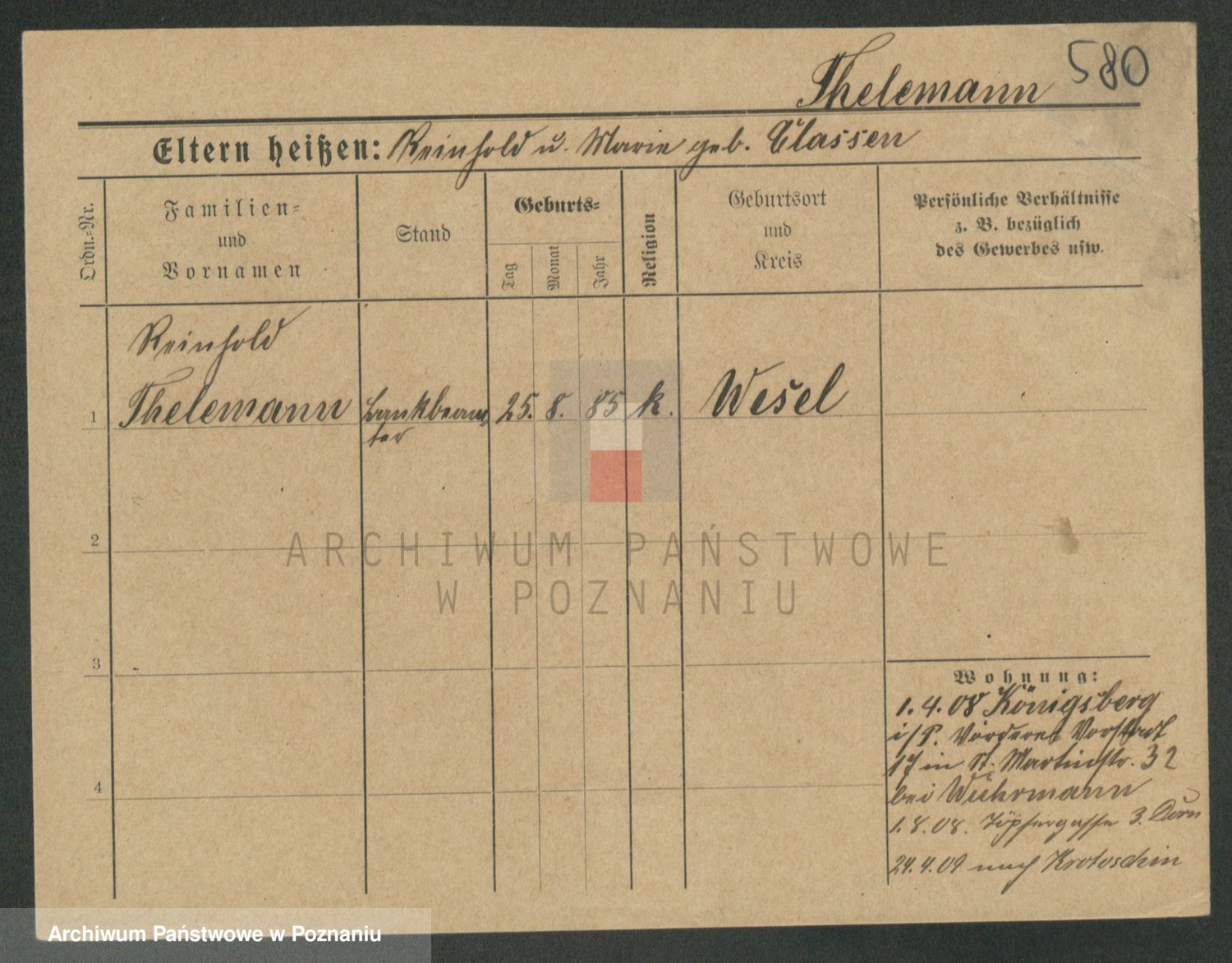 Podgląd karty osobowej dostępny jest po kliknięciu na nazwisko lub ikonkę karty. Można dokonywać powiększenia (ikony na górze) lub przechodzić między kolejnymi skanami (strzałki po bokach).