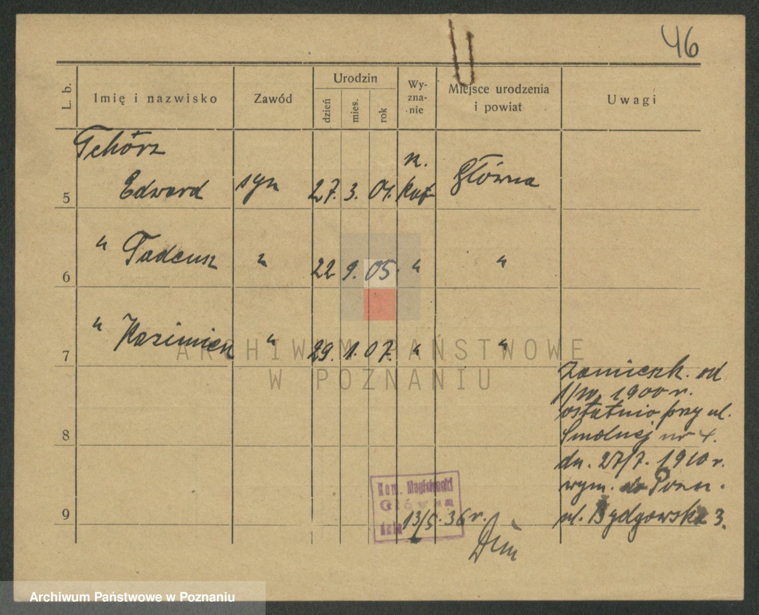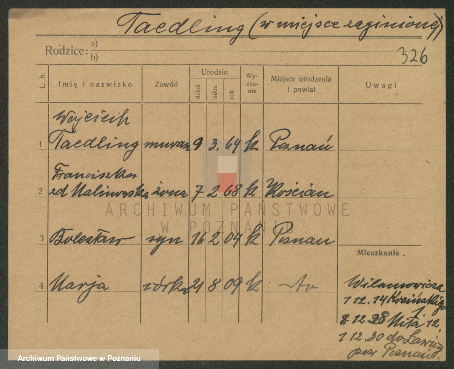 Tchorz, Taddäus