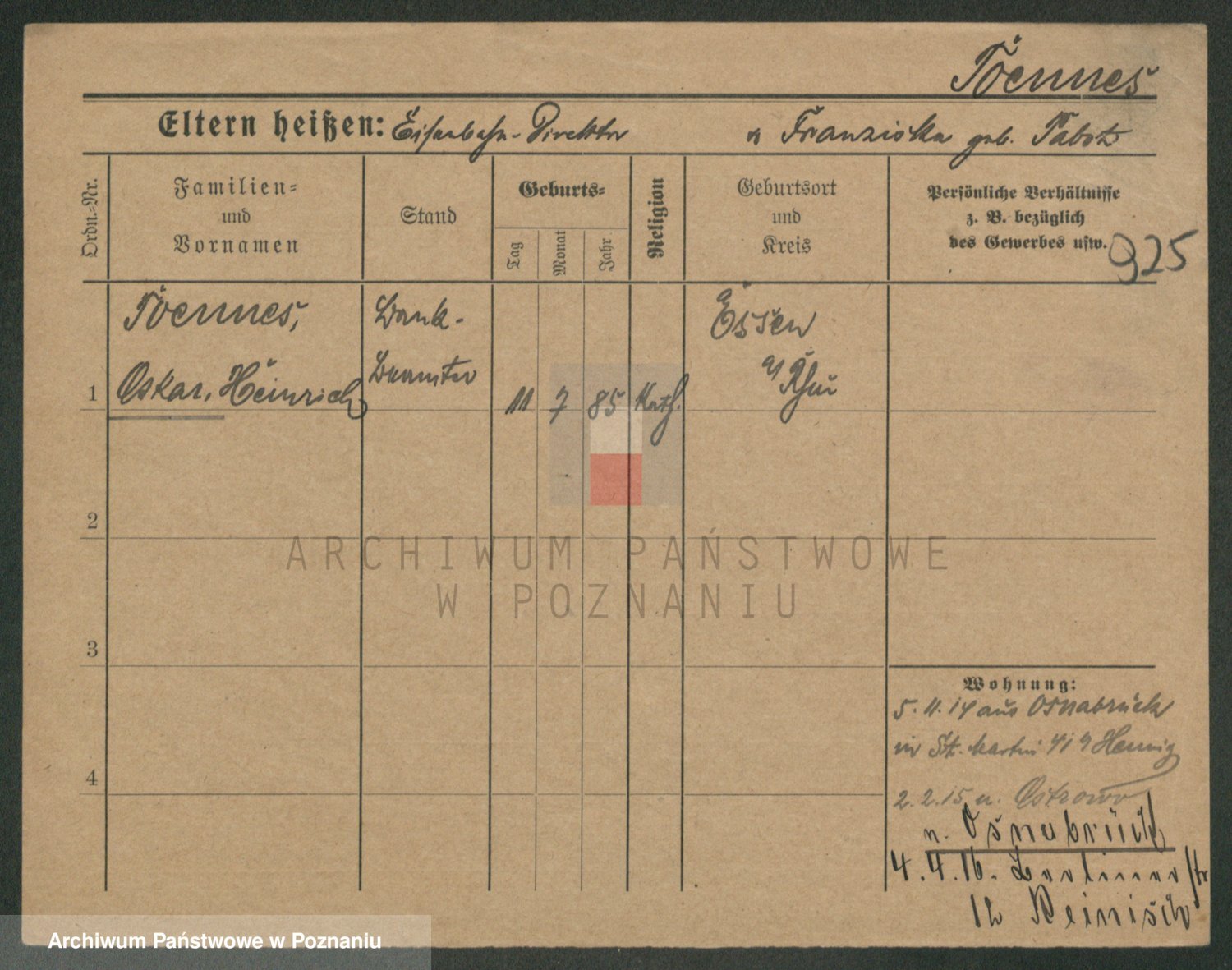 Toennes, Oskar Heinrich