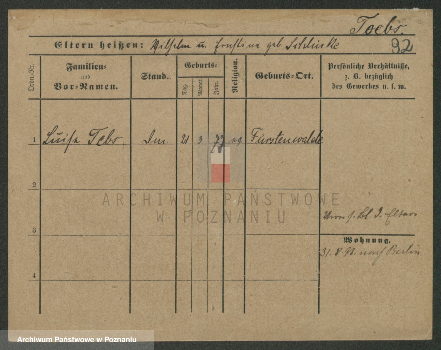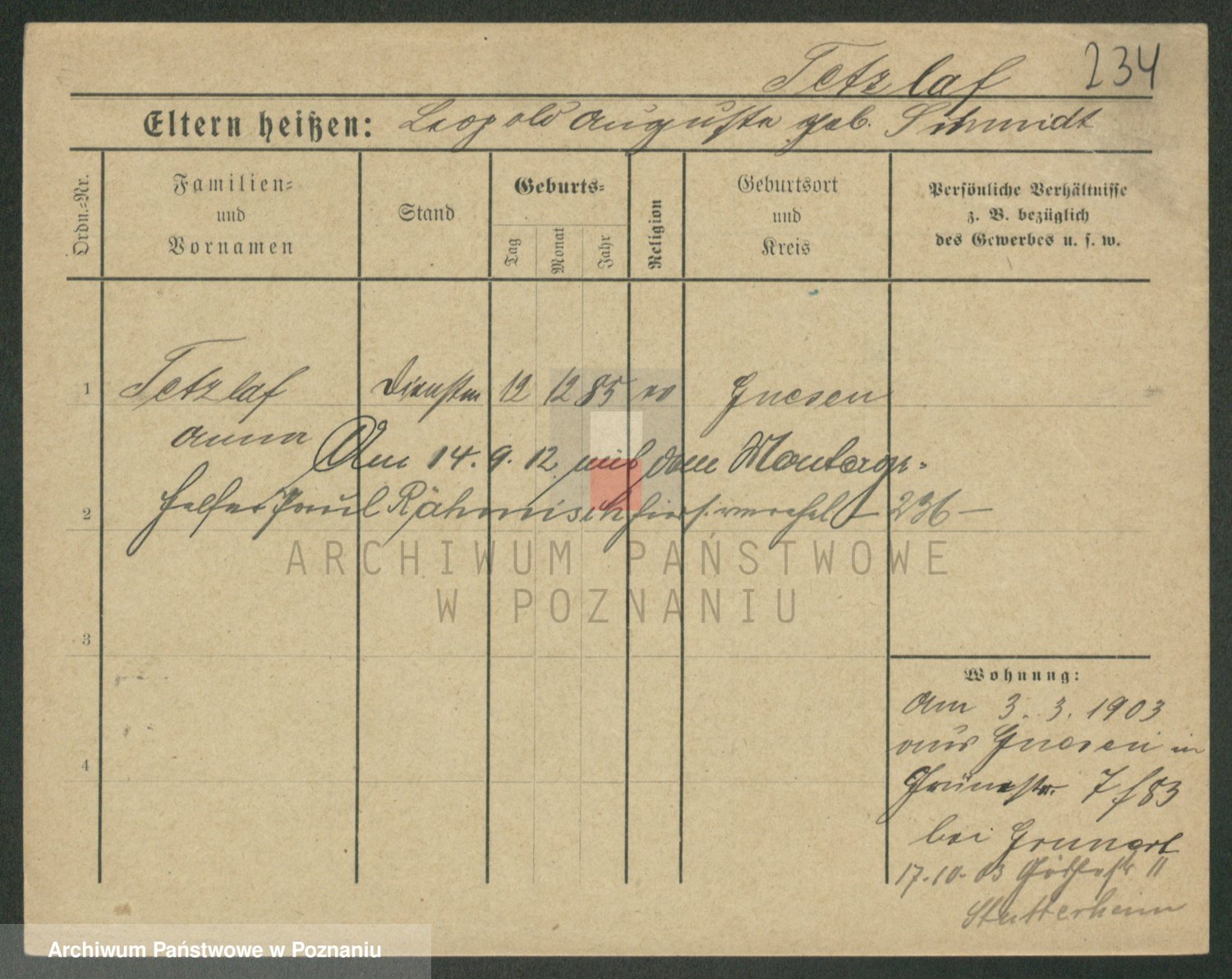 Tauwitz z.d. Schlodnitzka, Johanna