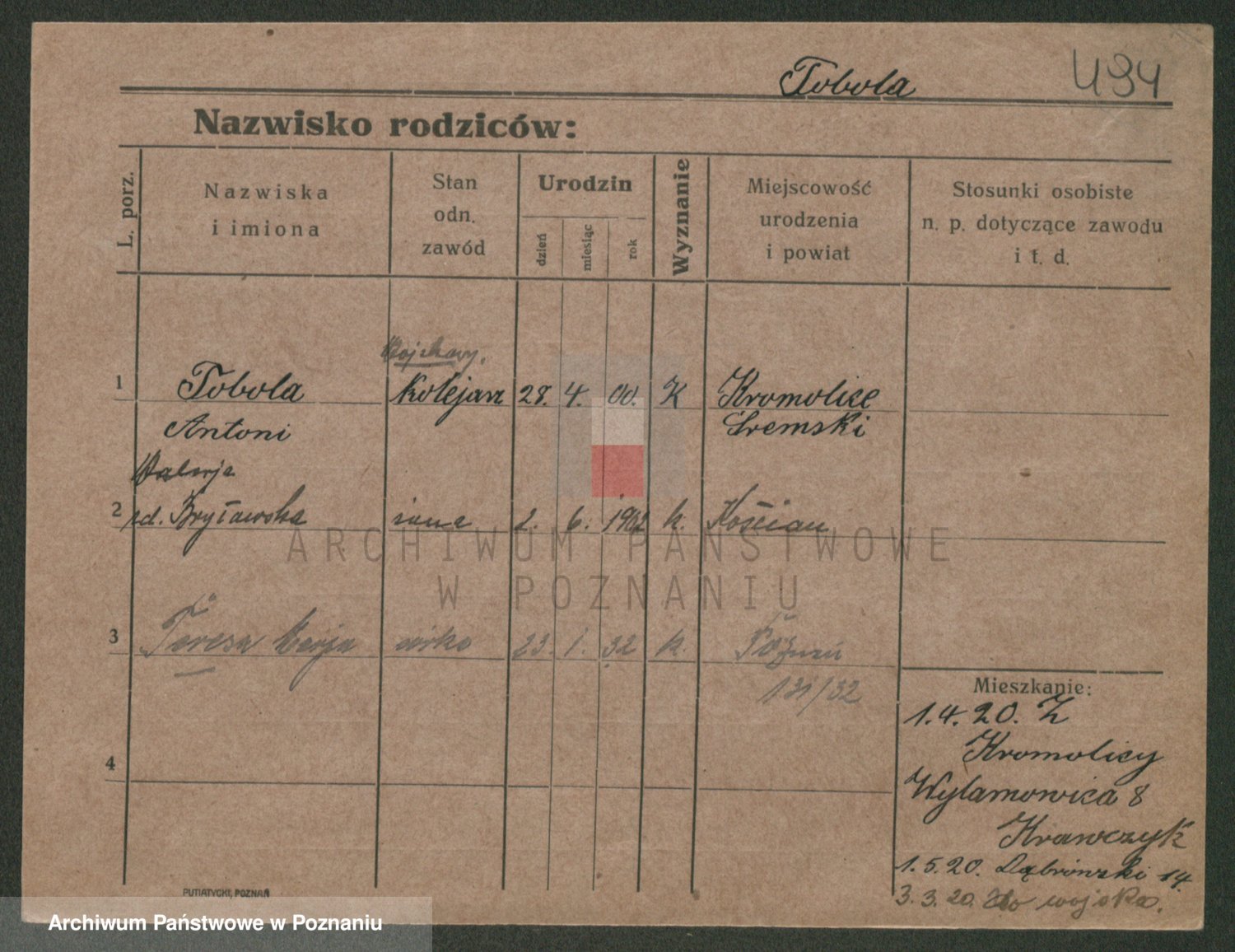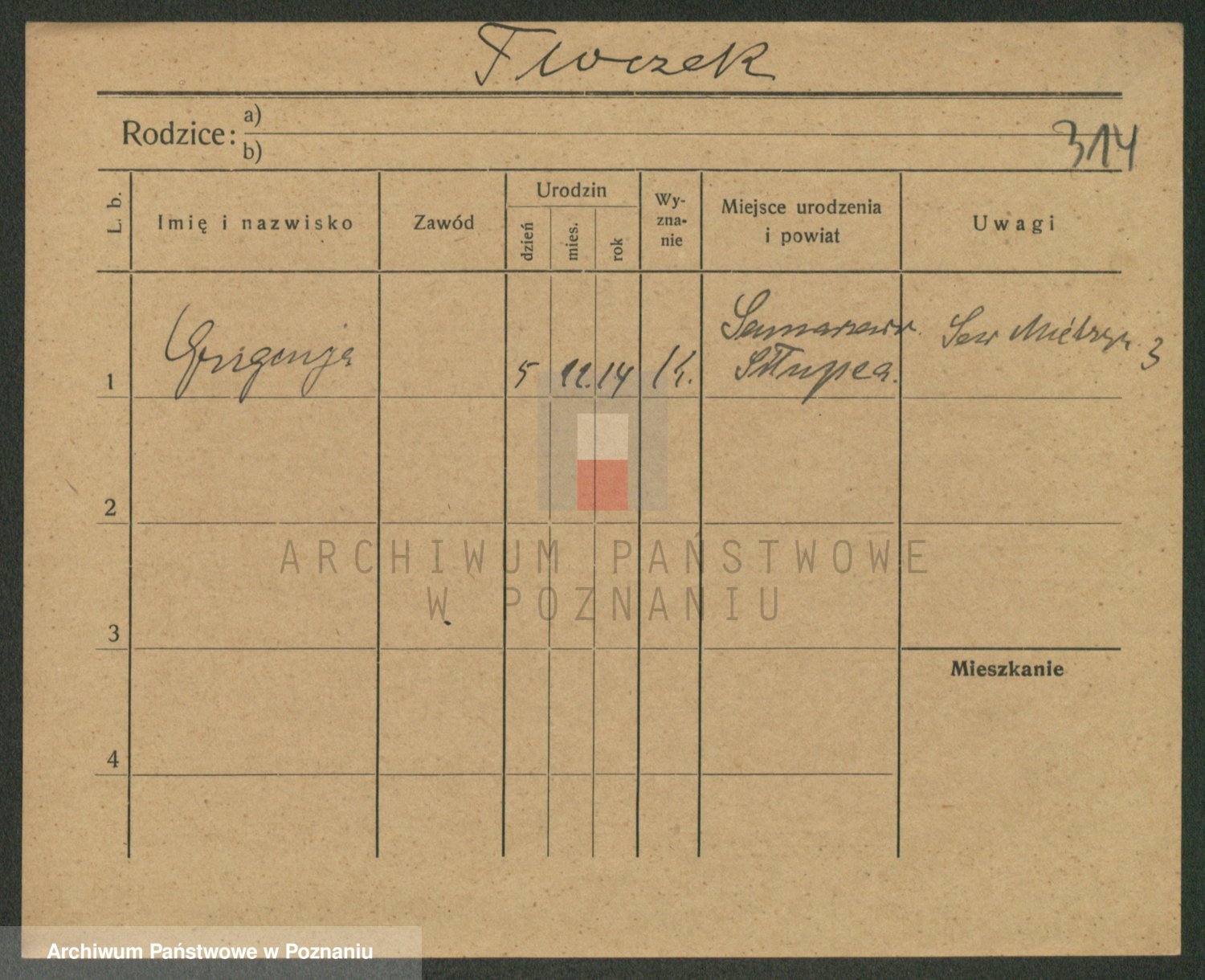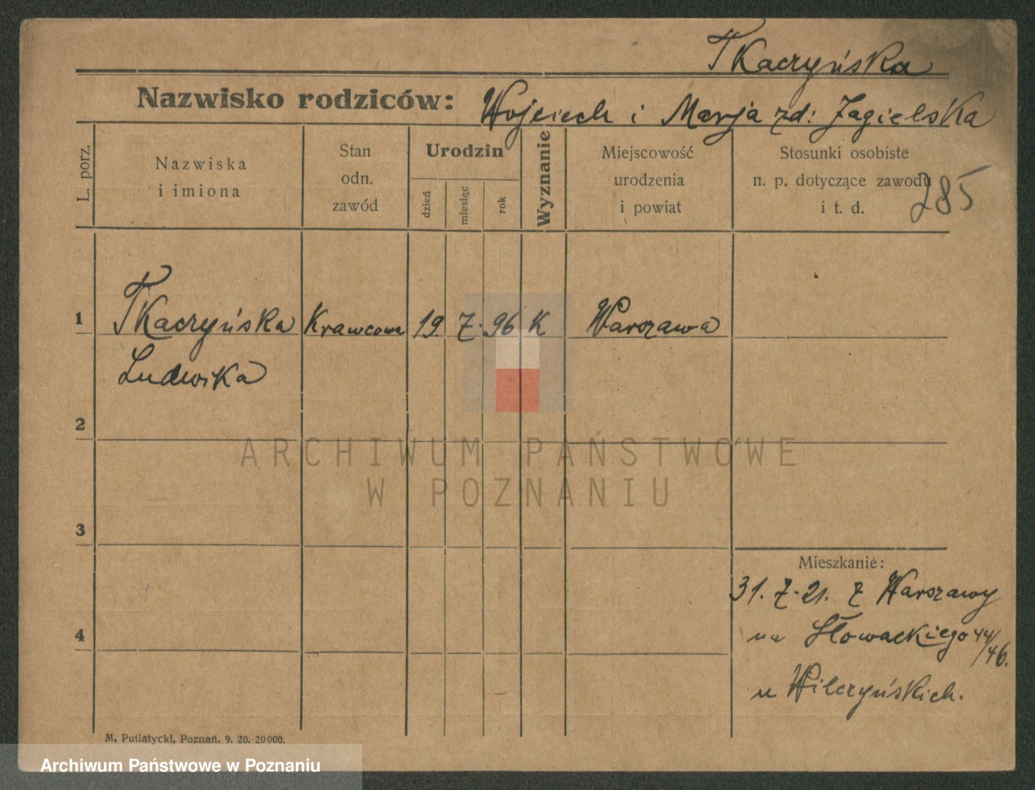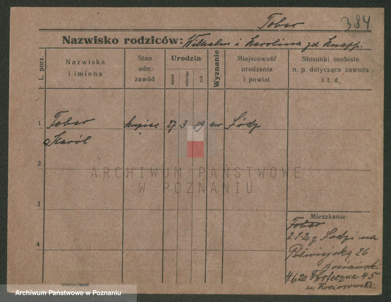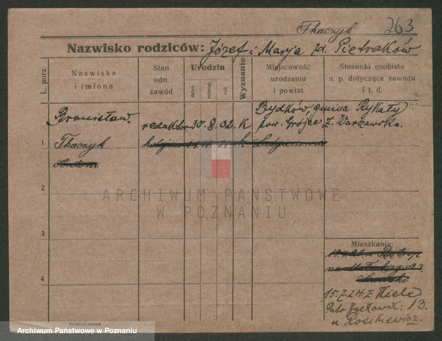 Podgląd karty osobowej dostępny jest po kliknięciu na nazwisko lub ikonkę karty. Można dokonywać powiększenia (ikony na górze) lub przechodzić między kolejnymi skanami (strzałki po bokach).