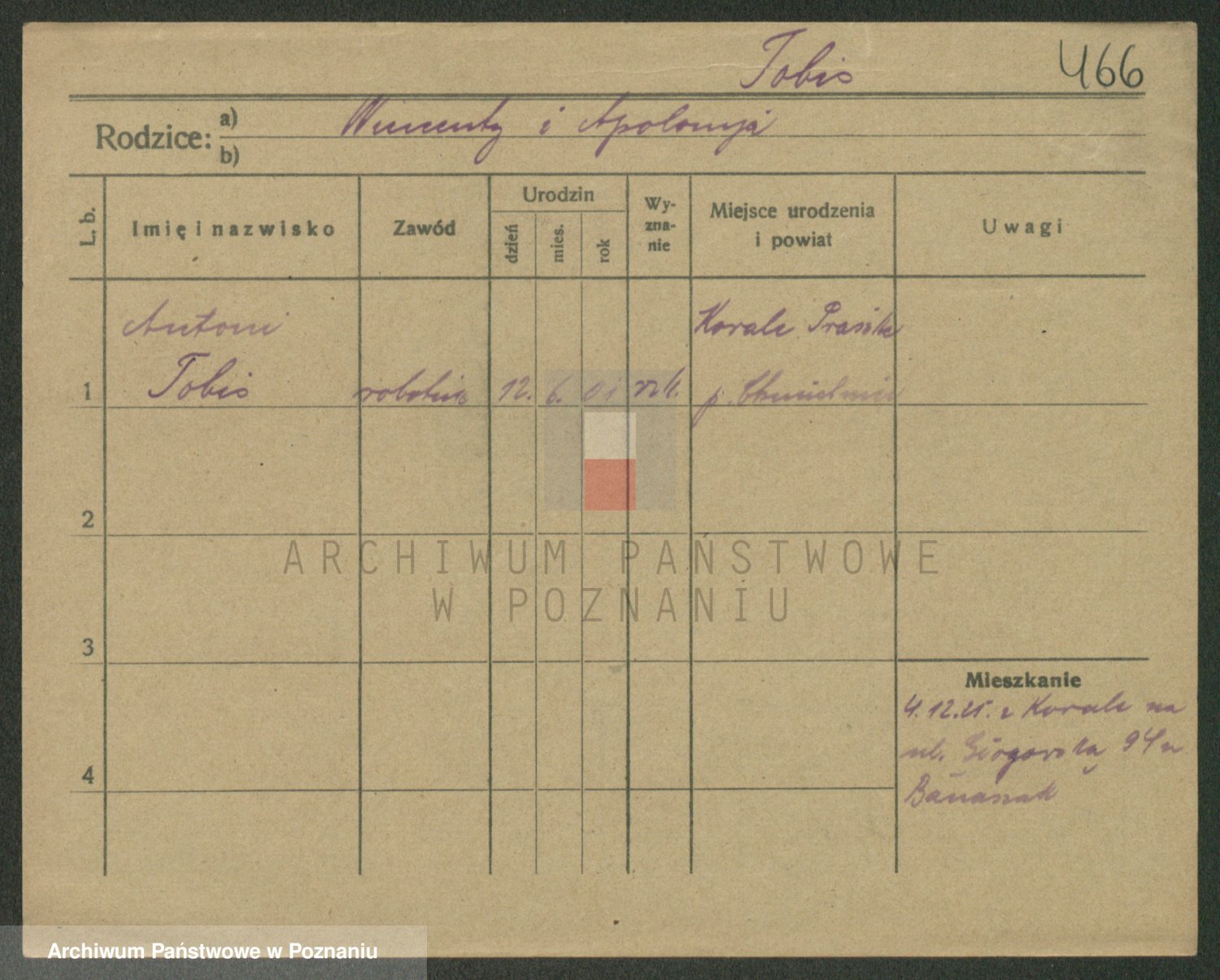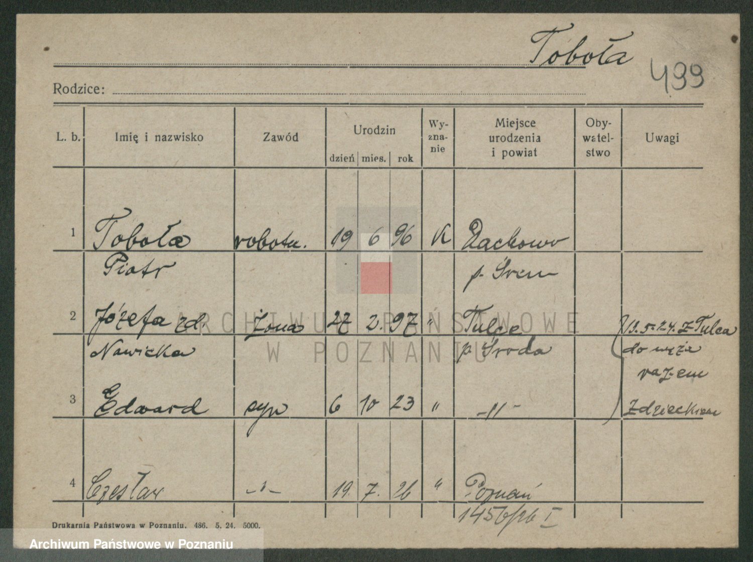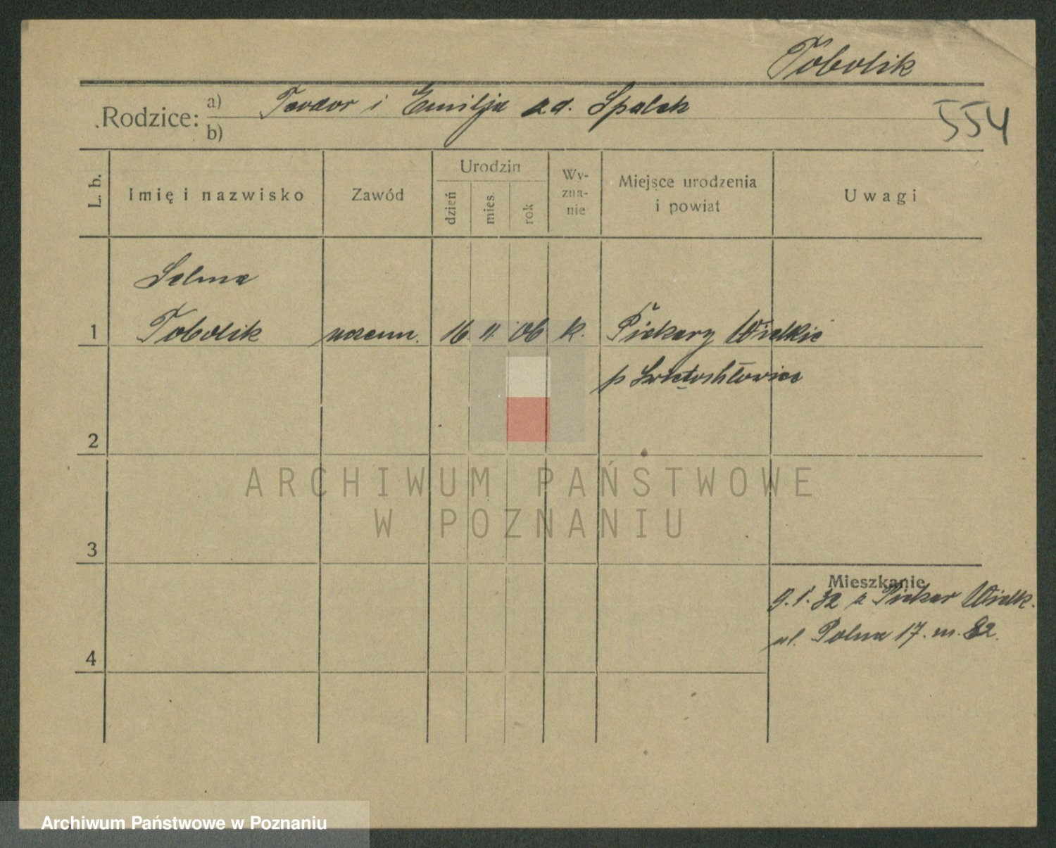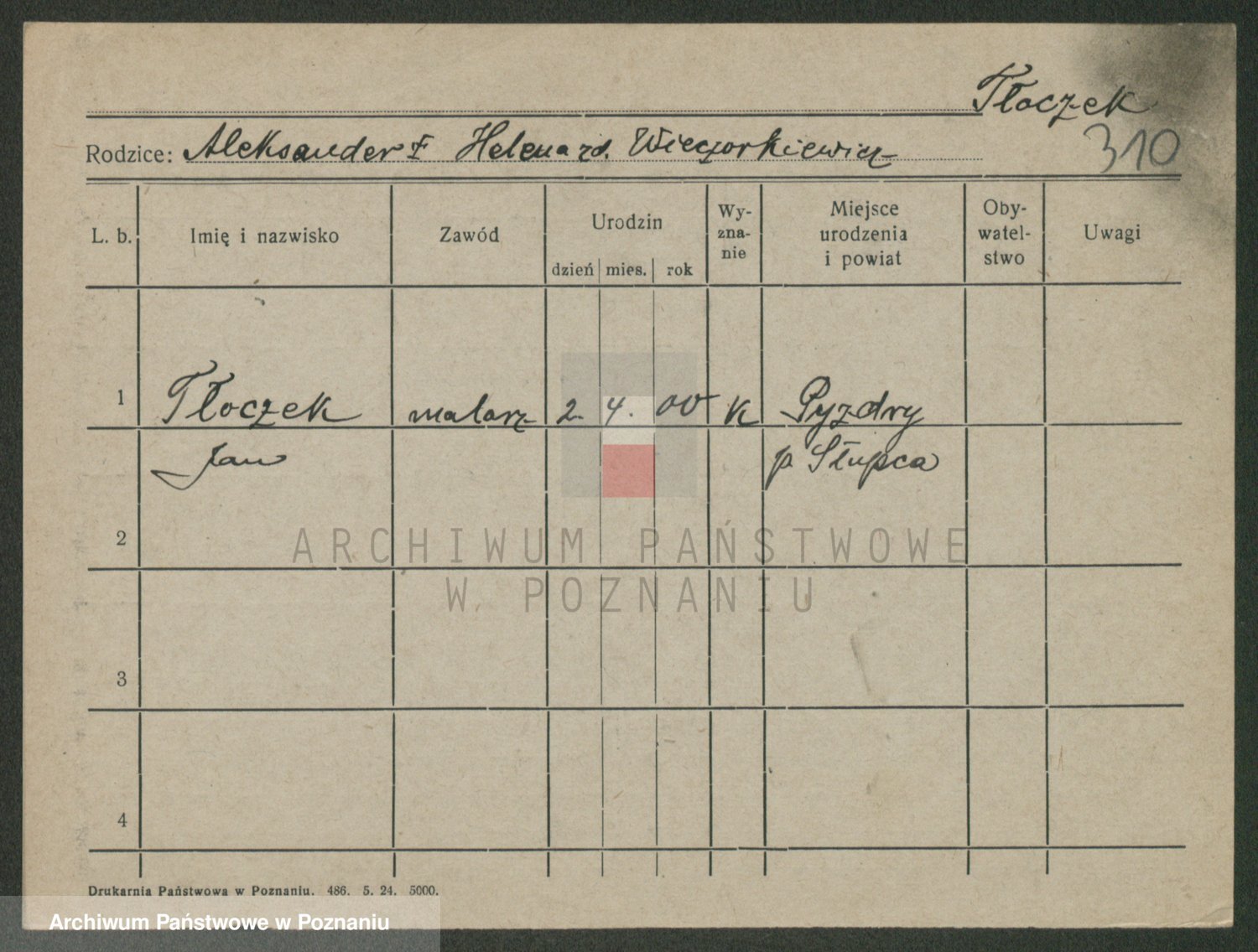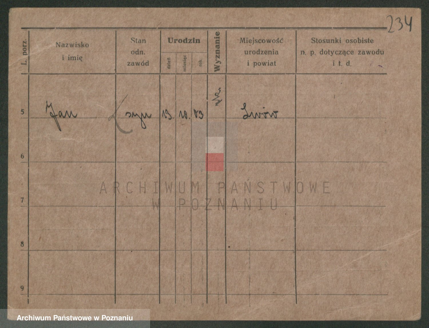 Podgląd karty osobowej dostępny jest po kliknięciu na nazwisko lub ikonkę karty. Można dokonywać powiększenia (ikony na górze) lub przechodzić między kolejnymi skanami (strzałki po bokach).