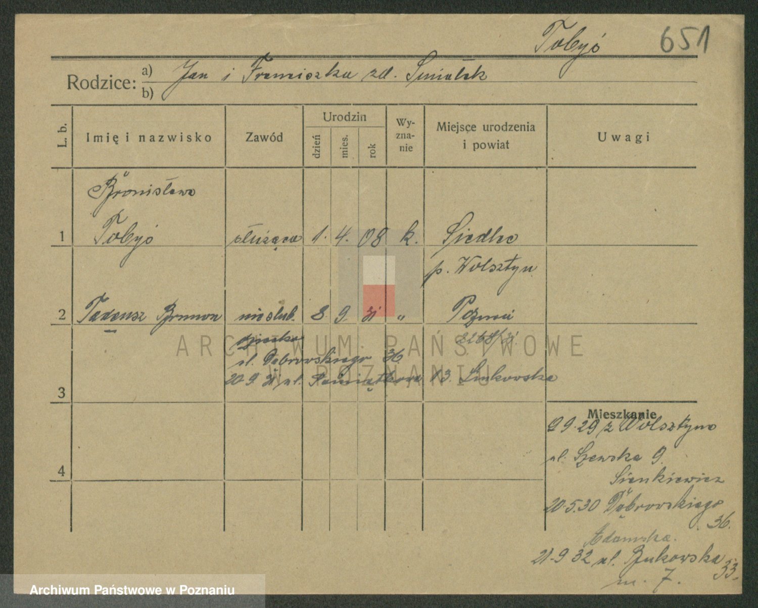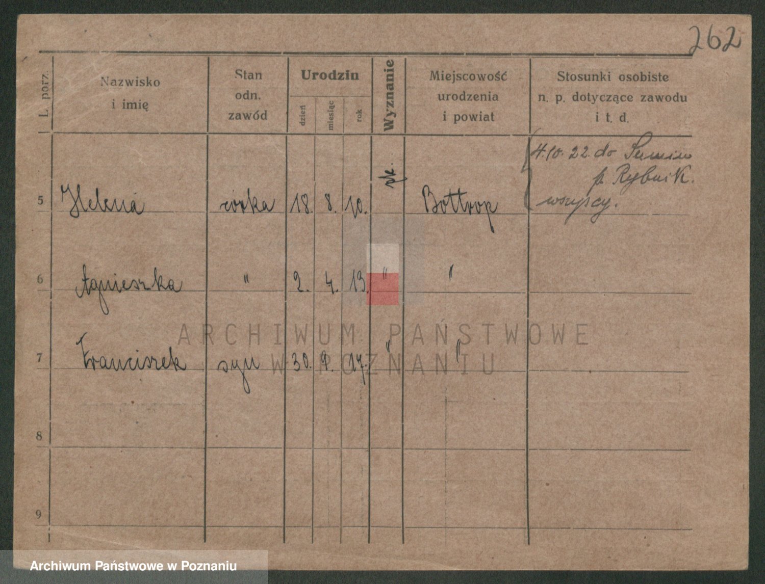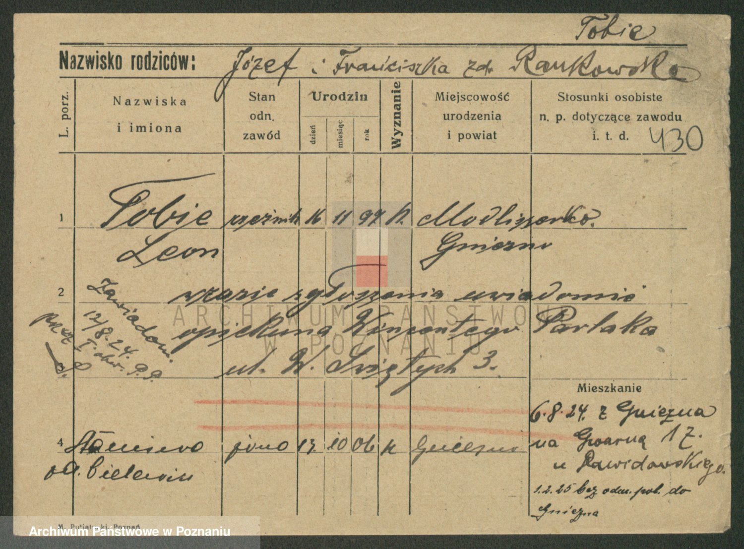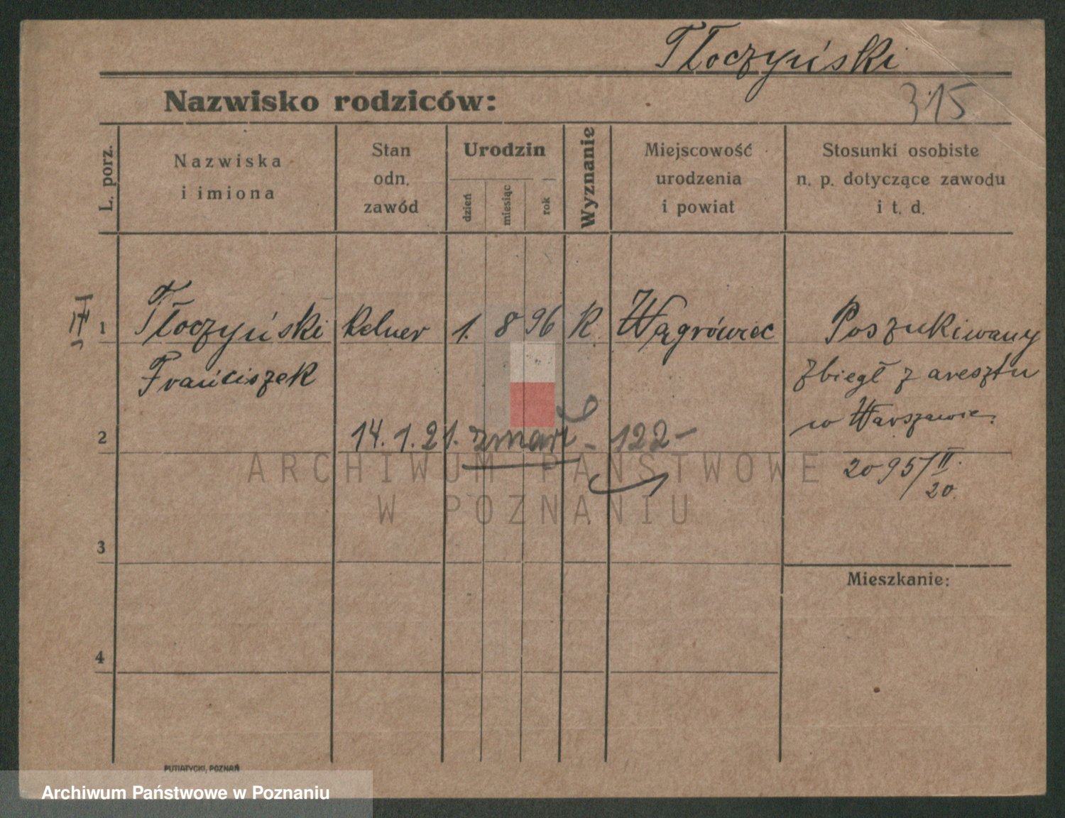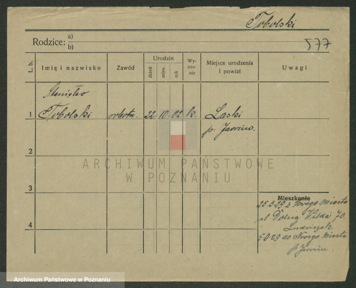 Podgląd karty osobowej dostępny jest po kliknięciu na nazwisko lub ikonkę karty. Można dokonywać powiększenia (ikony na górze) lub przechodzić między kolejnymi skanami (strzałki po bokach).