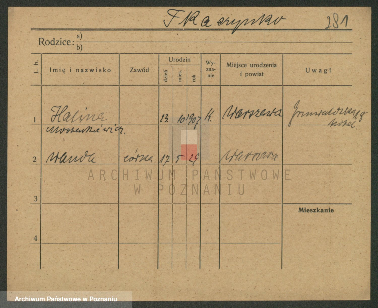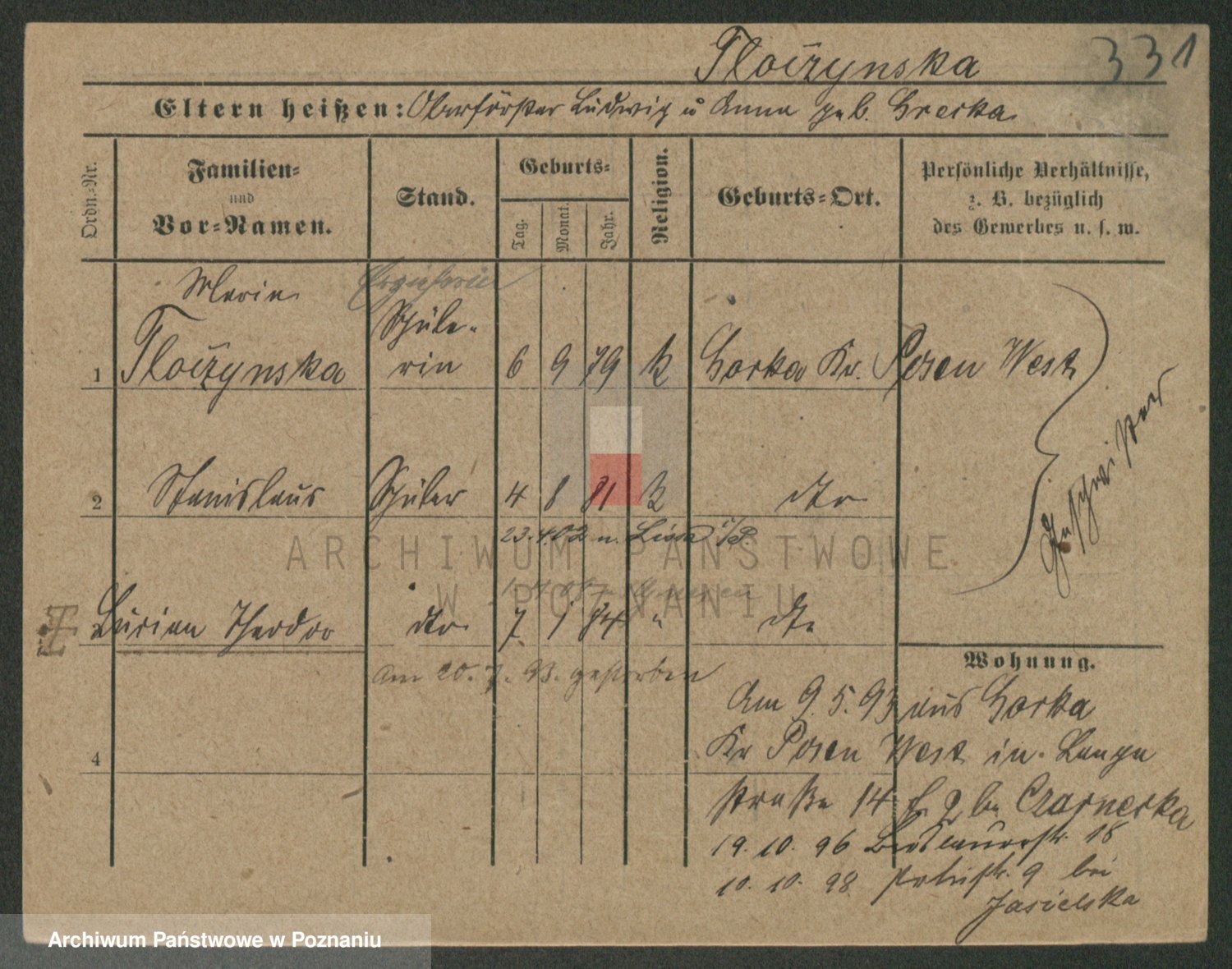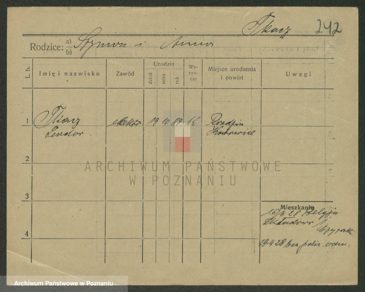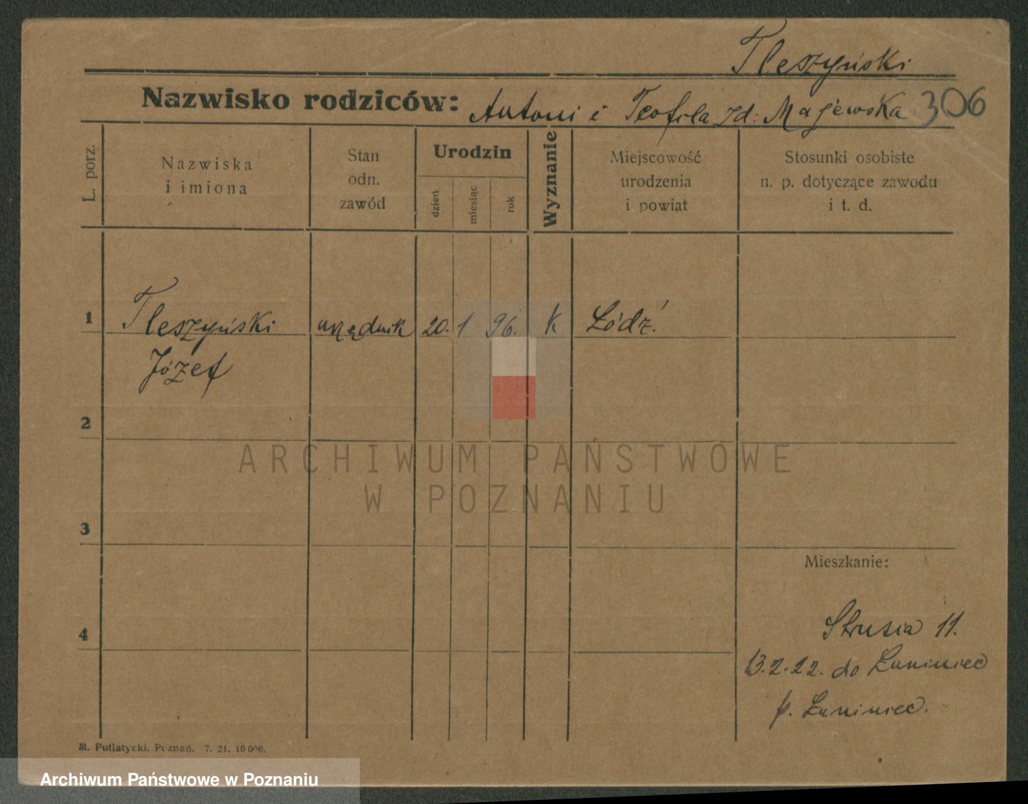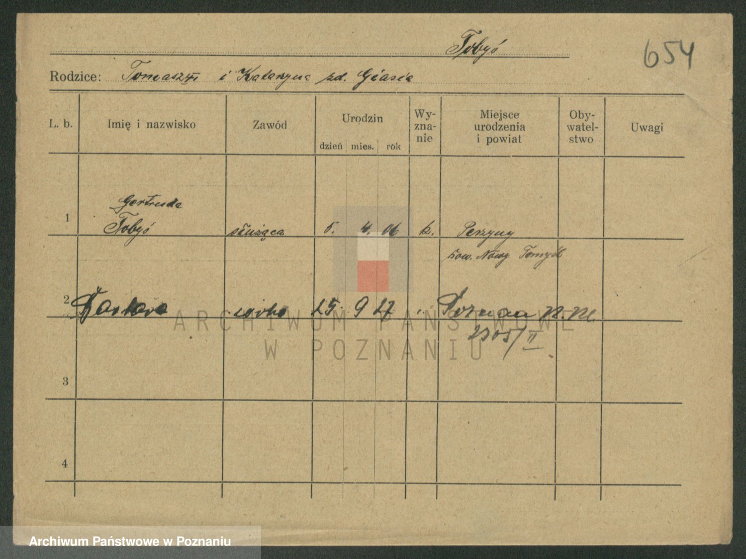 Podgląd karty osobowej dostępny jest po kliknięciu na nazwisko lub ikonkę karty. Można dokonywać powiększenia (ikony na górze) lub przechodzić między kolejnymi skanami (strzałki po bokach).