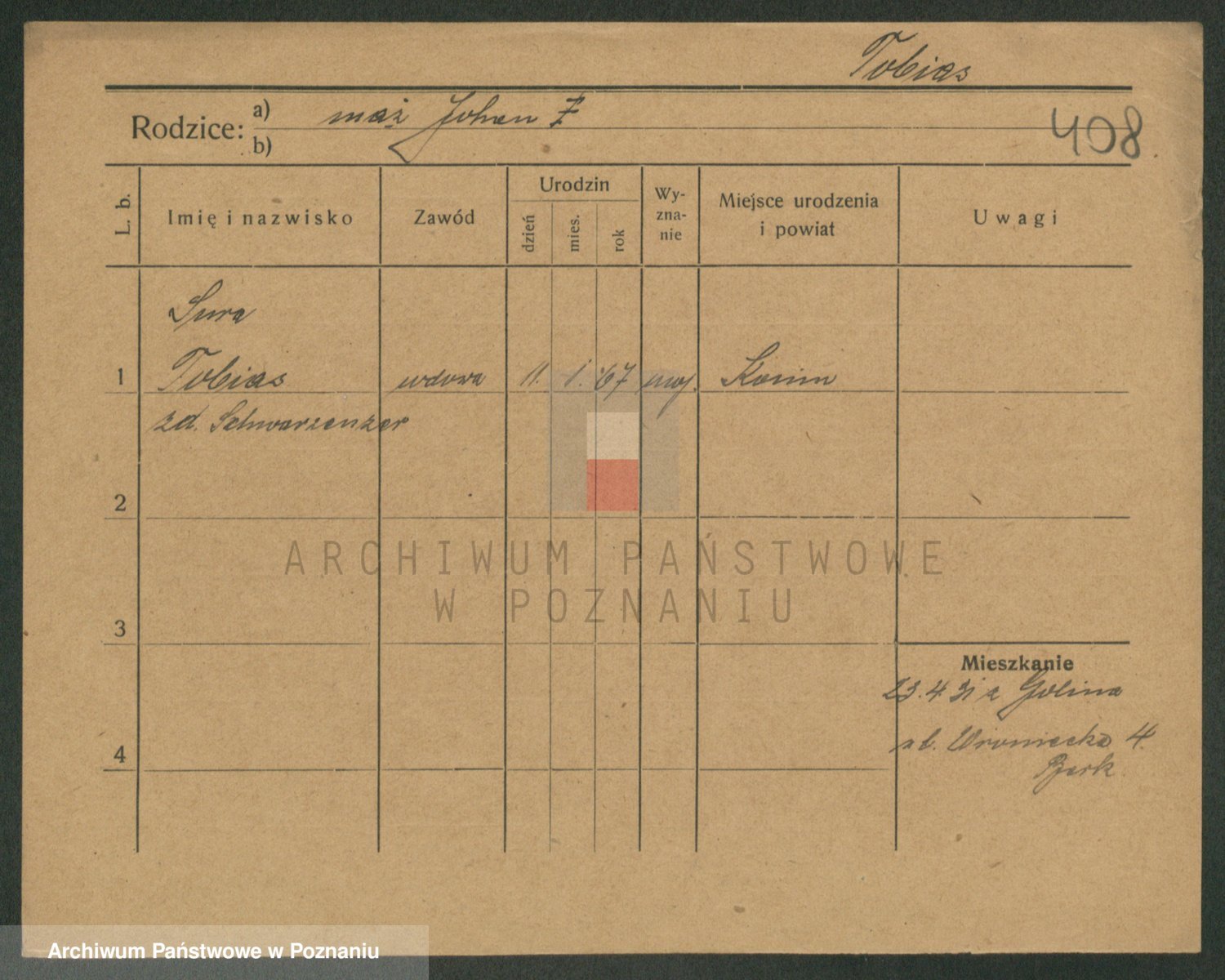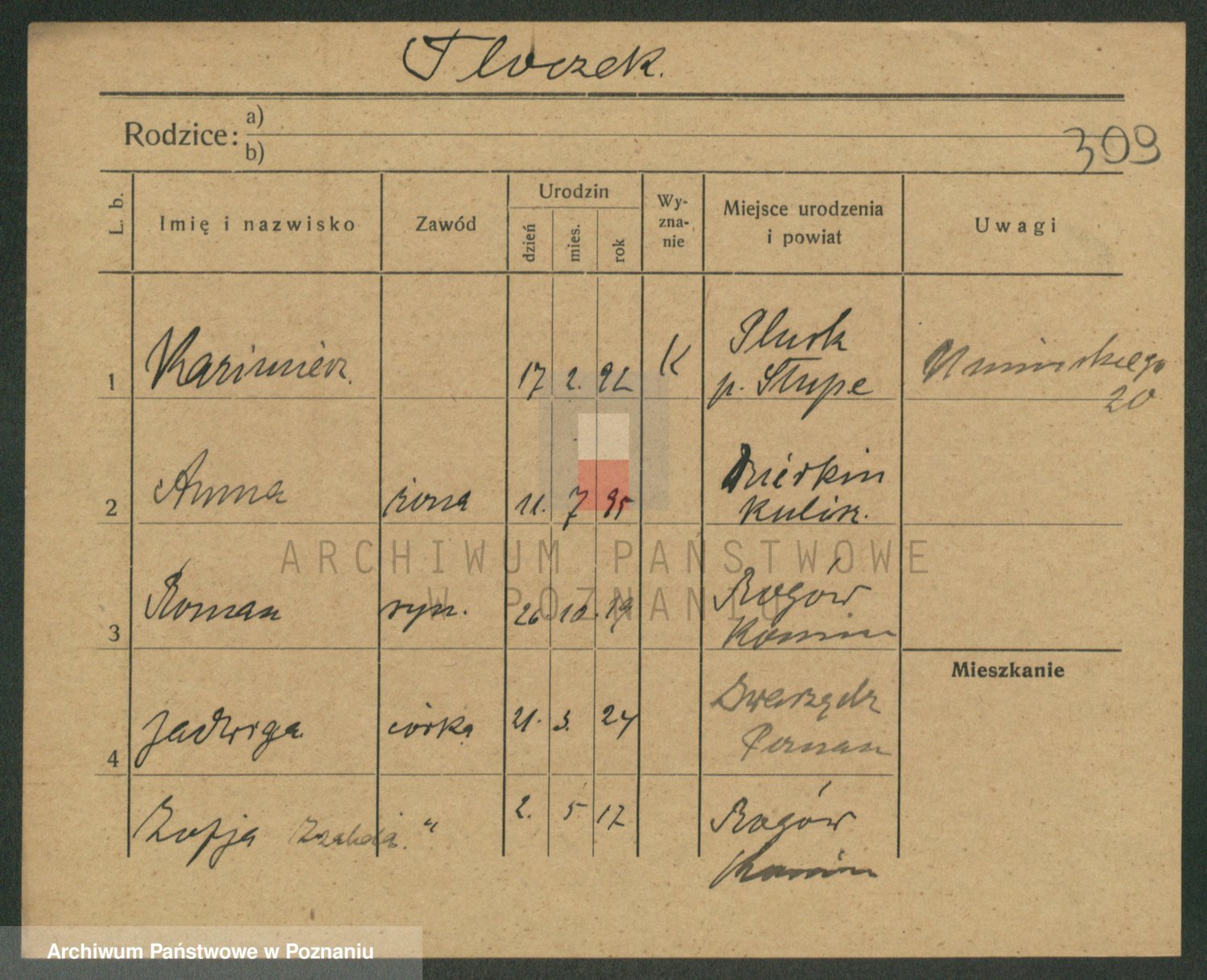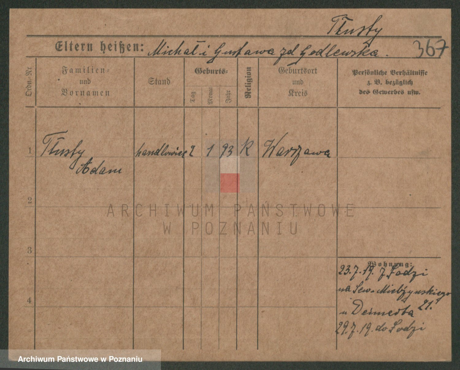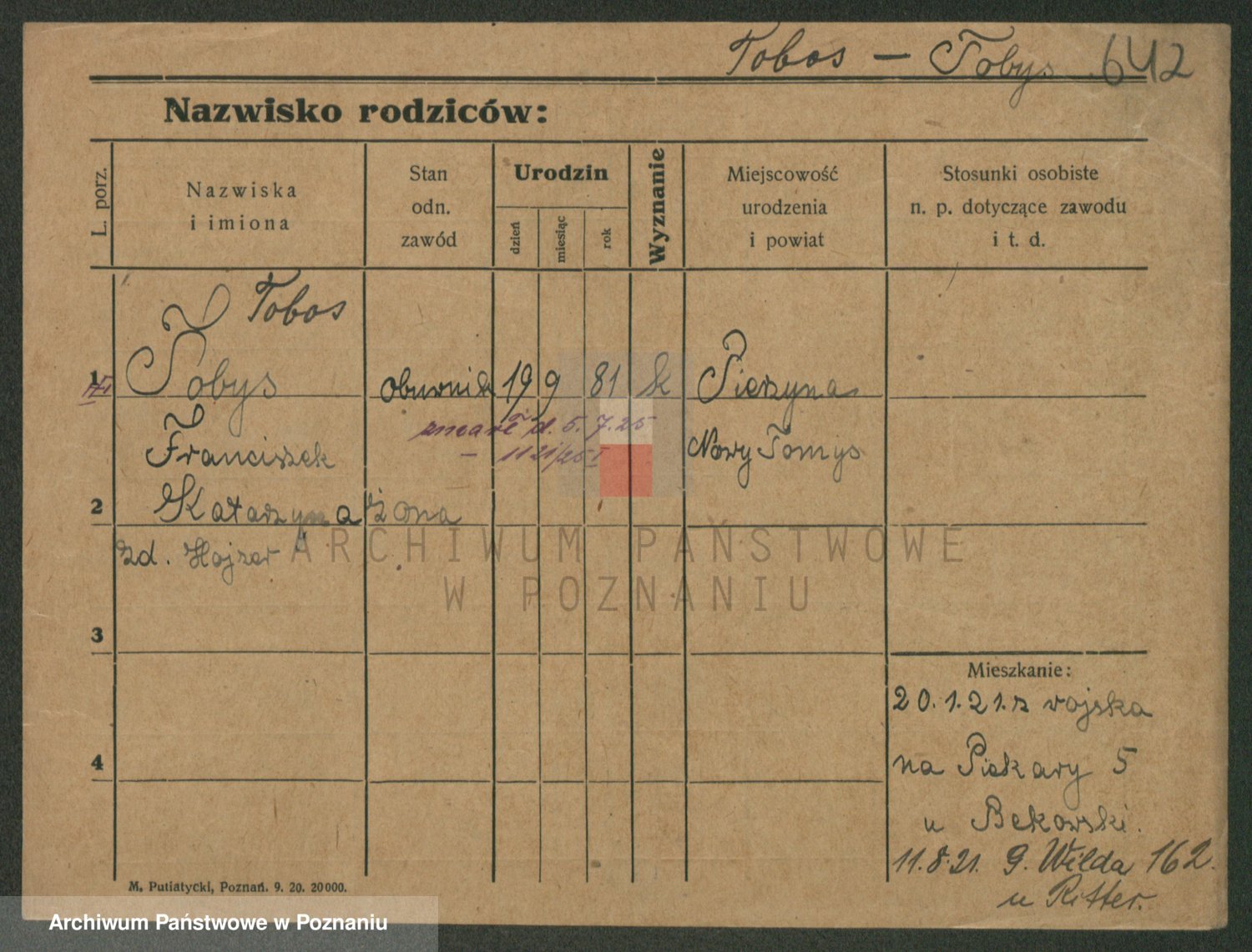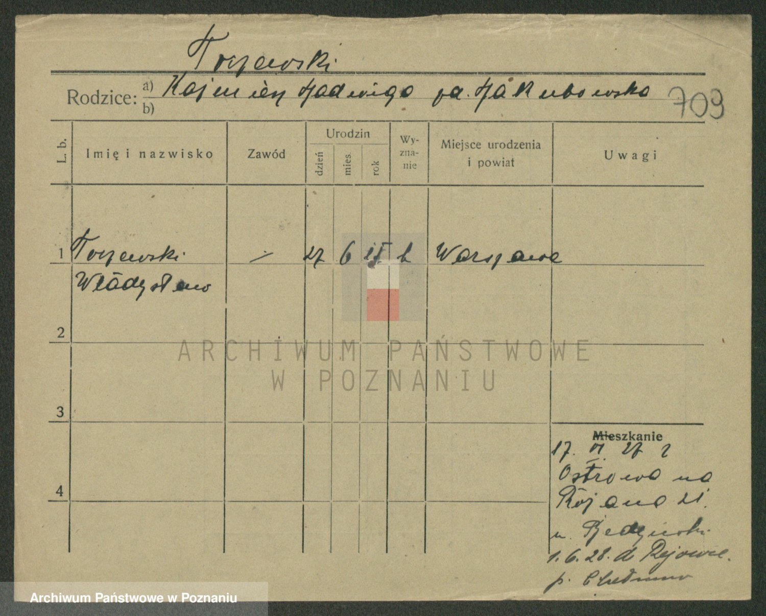 Podgląd karty osobowej dostępny jest po kliknięciu na nazwisko lub ikonkę karty. Można dokonywać powiększenia (ikony na górze) lub przechodzić między kolejnymi skanami (strzałki po bokach).