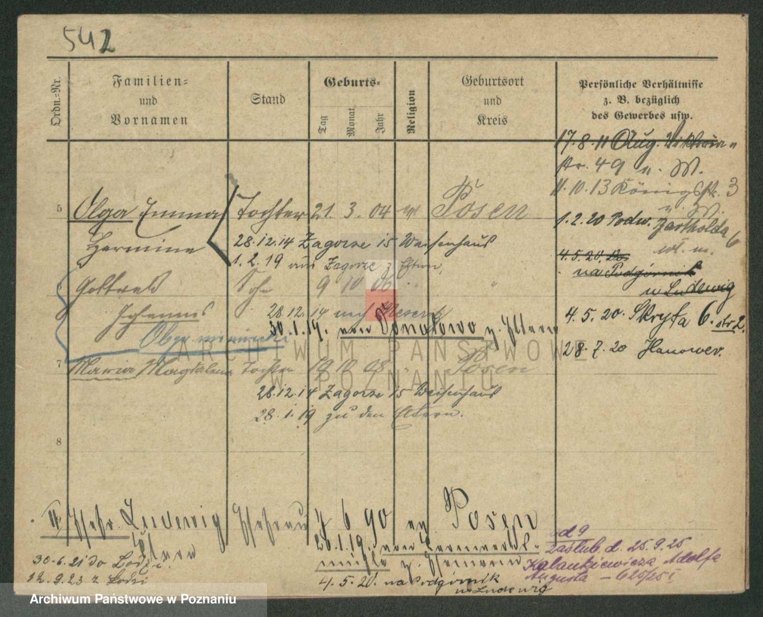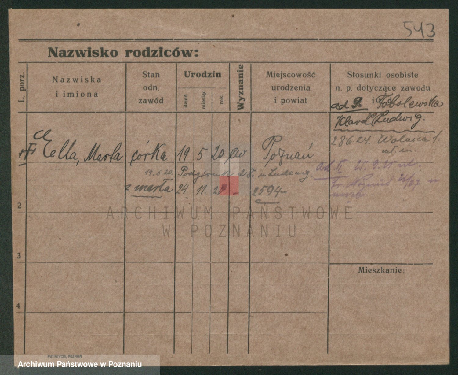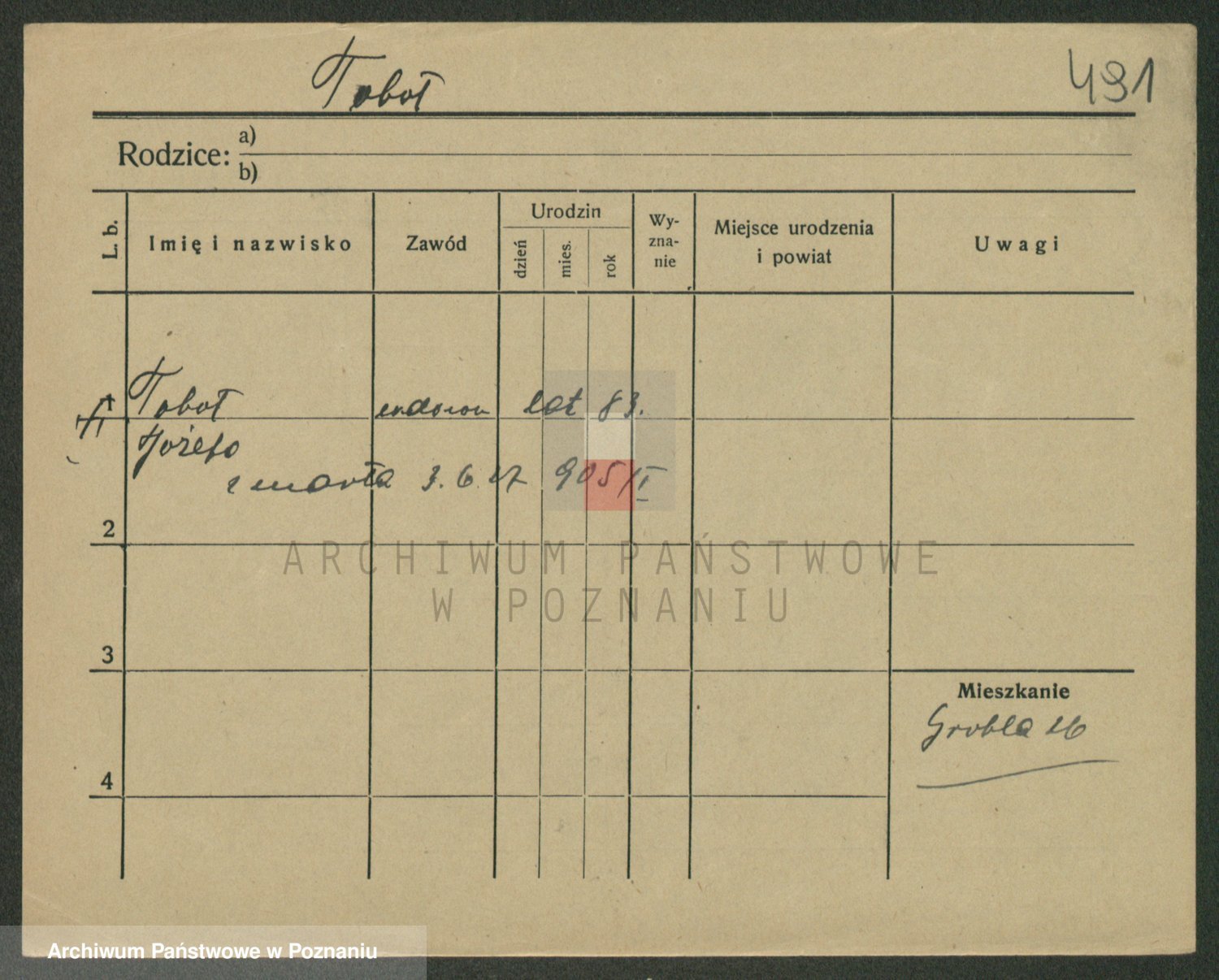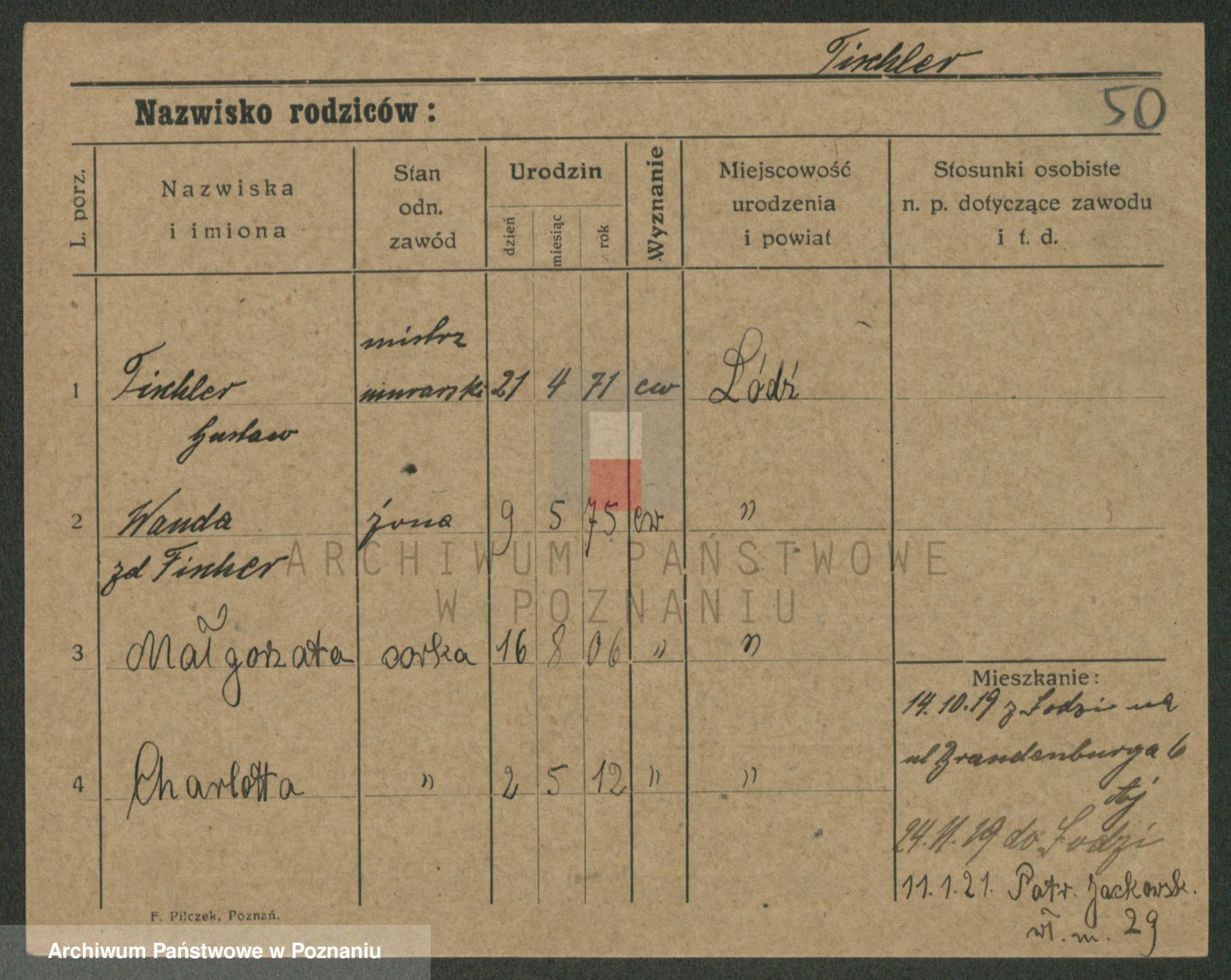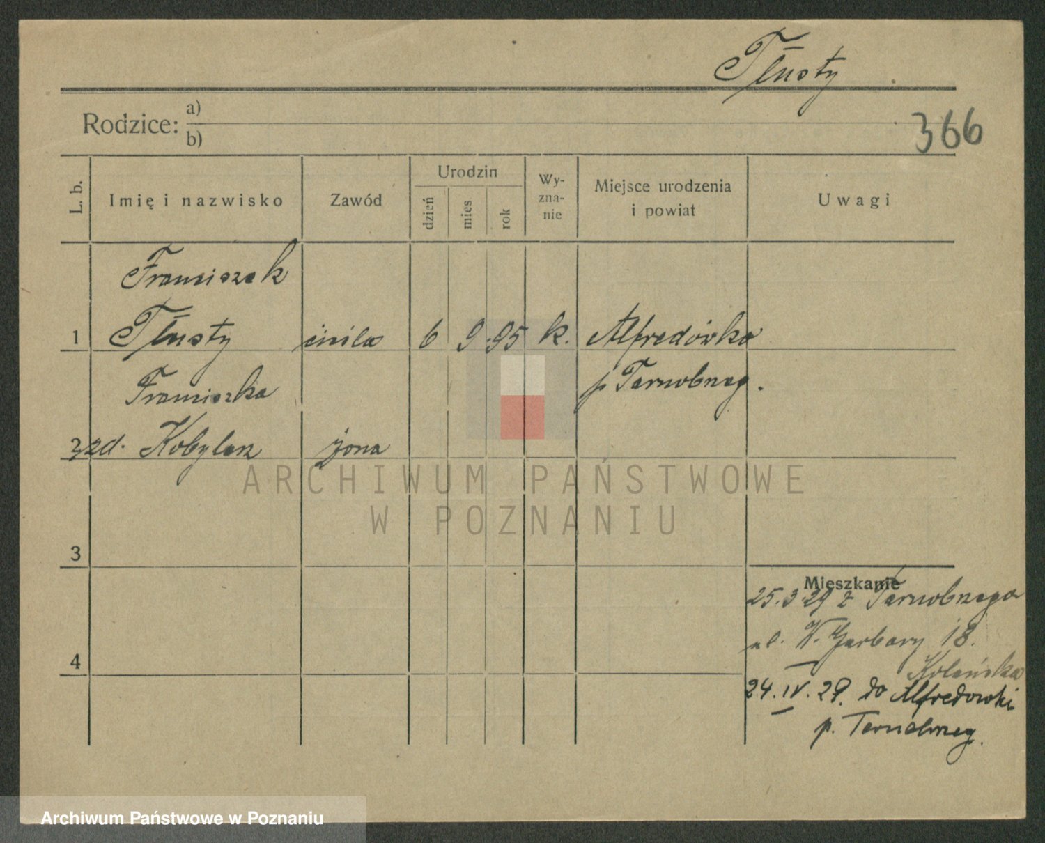 Podgląd karty osobowej dostępny jest po kliknięciu na nazwisko lub ikonkę karty. Można dokonywać powiększenia (ikony na górze) lub przechodzić między kolejnymi skanami (strzałki po bokach).