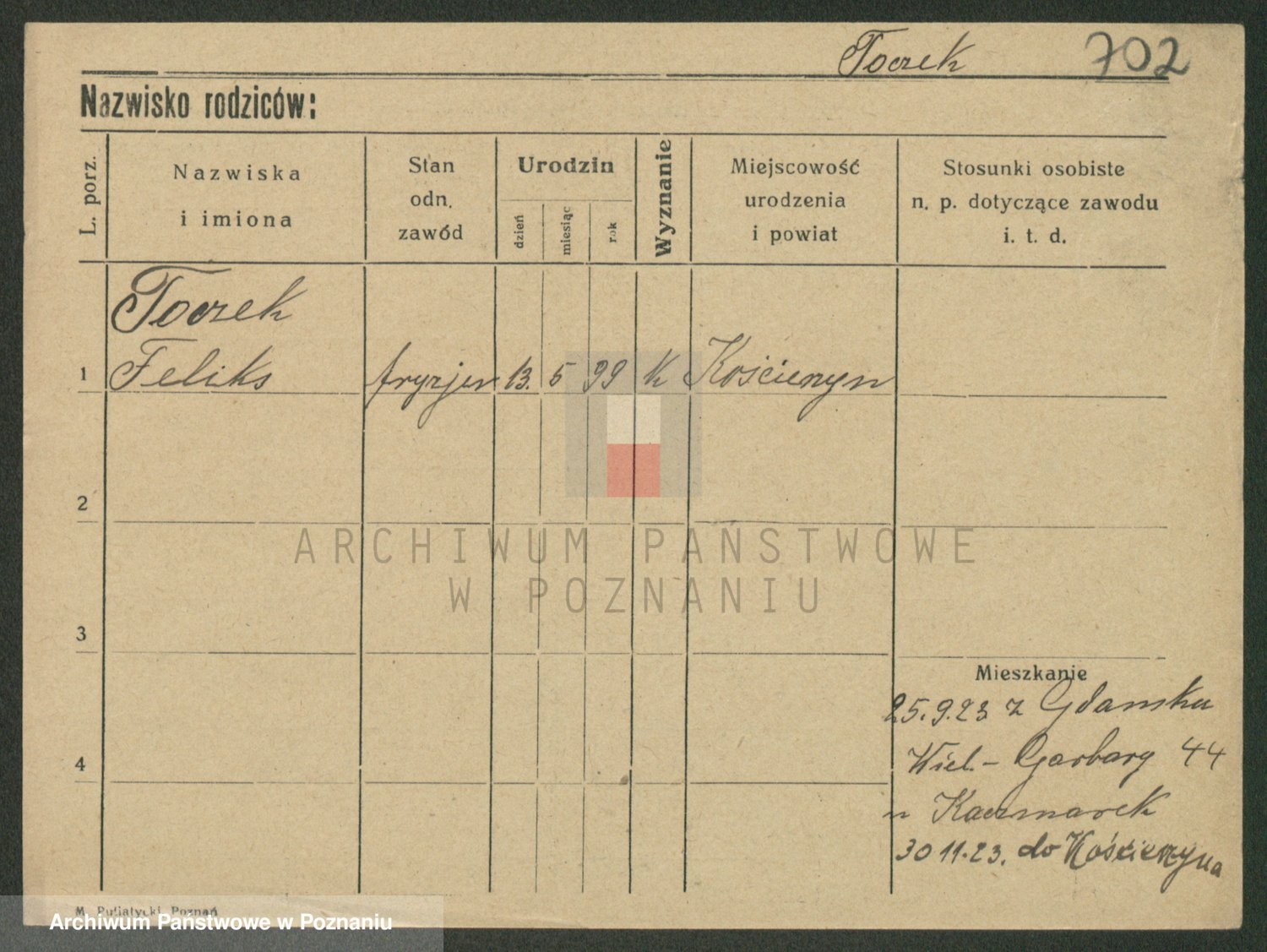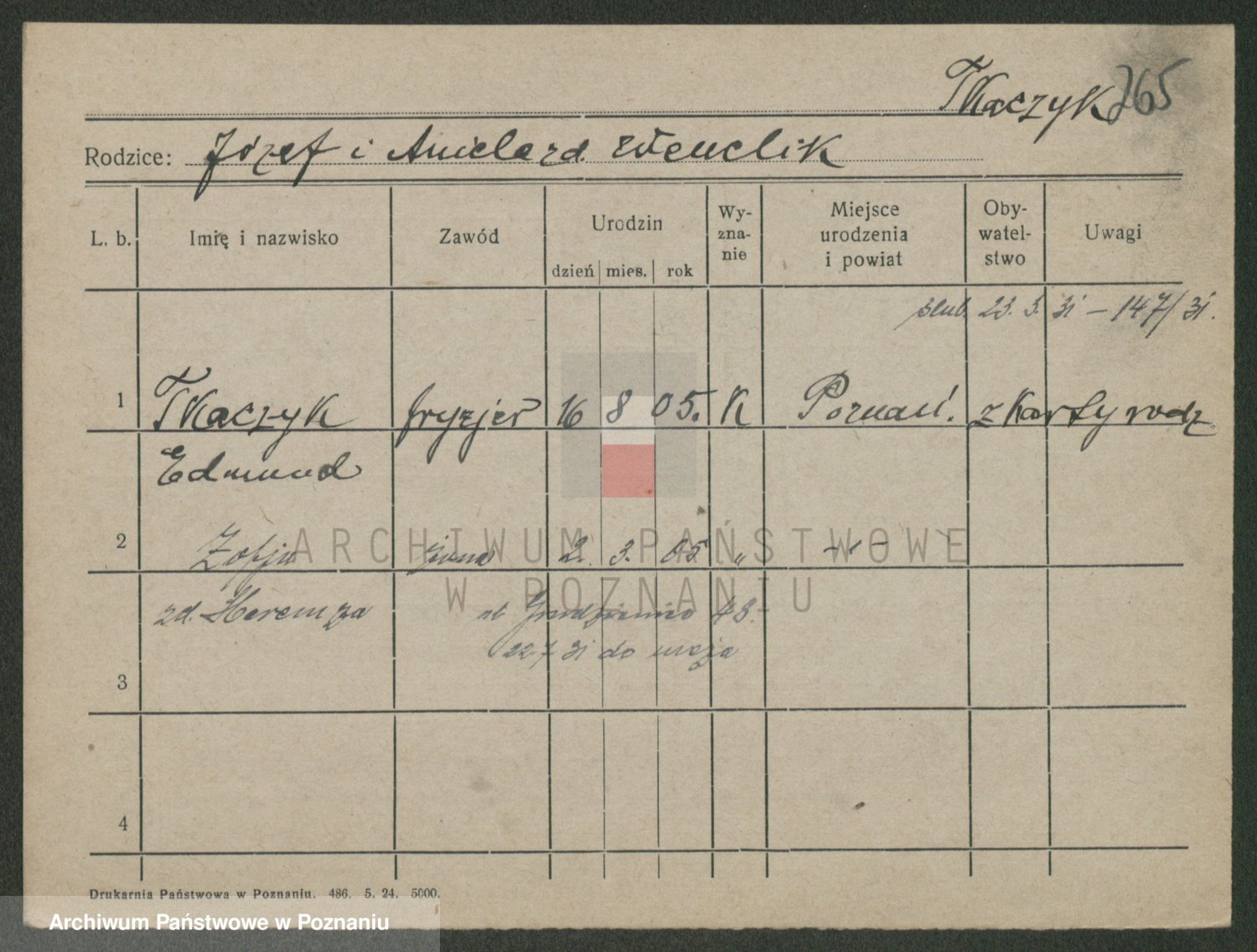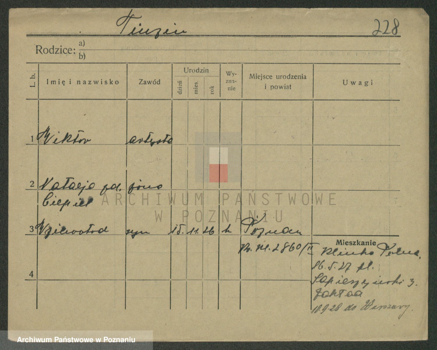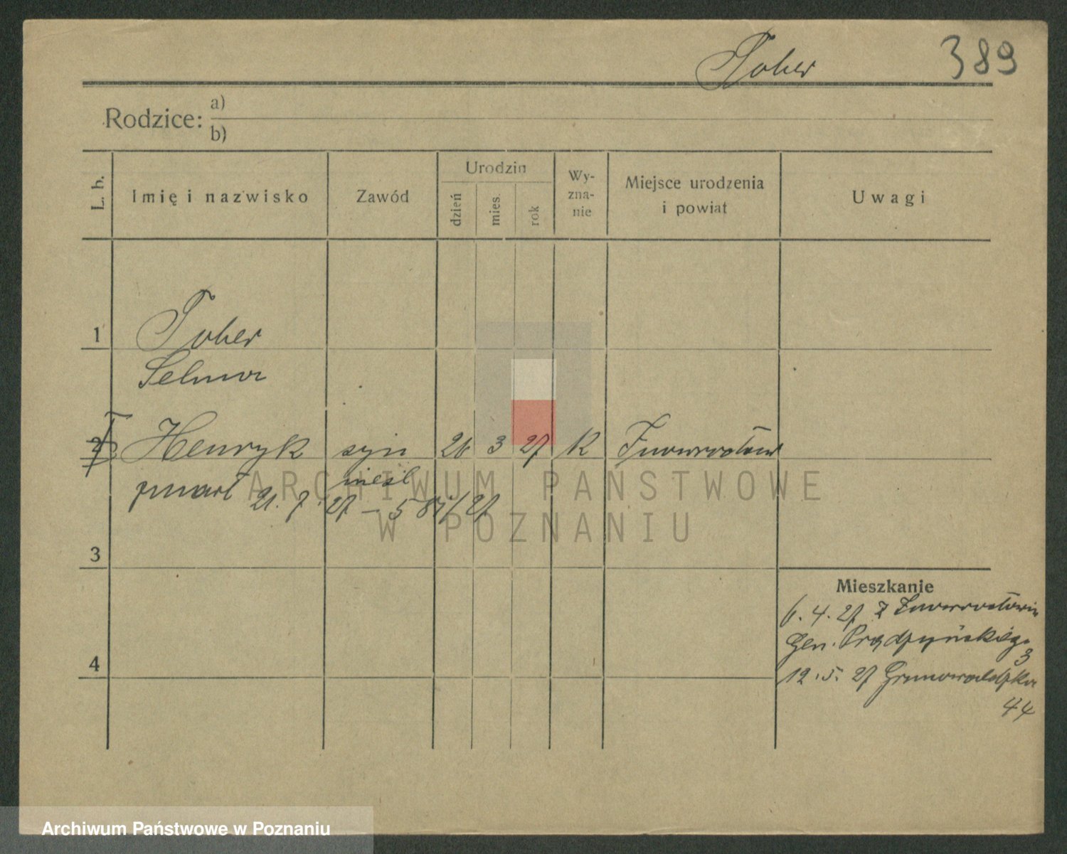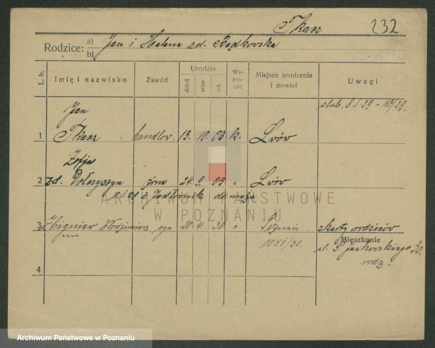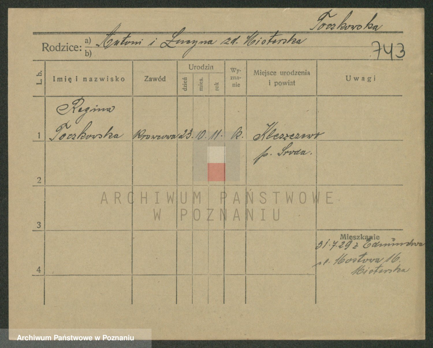 Podgląd karty osobowej dostępny jest po kliknięciu na nazwisko lub ikonkę karty. Można dokonywać powiększenia (ikony na górze) lub przechodzić między kolejnymi skanami (strzałki po bokach).
