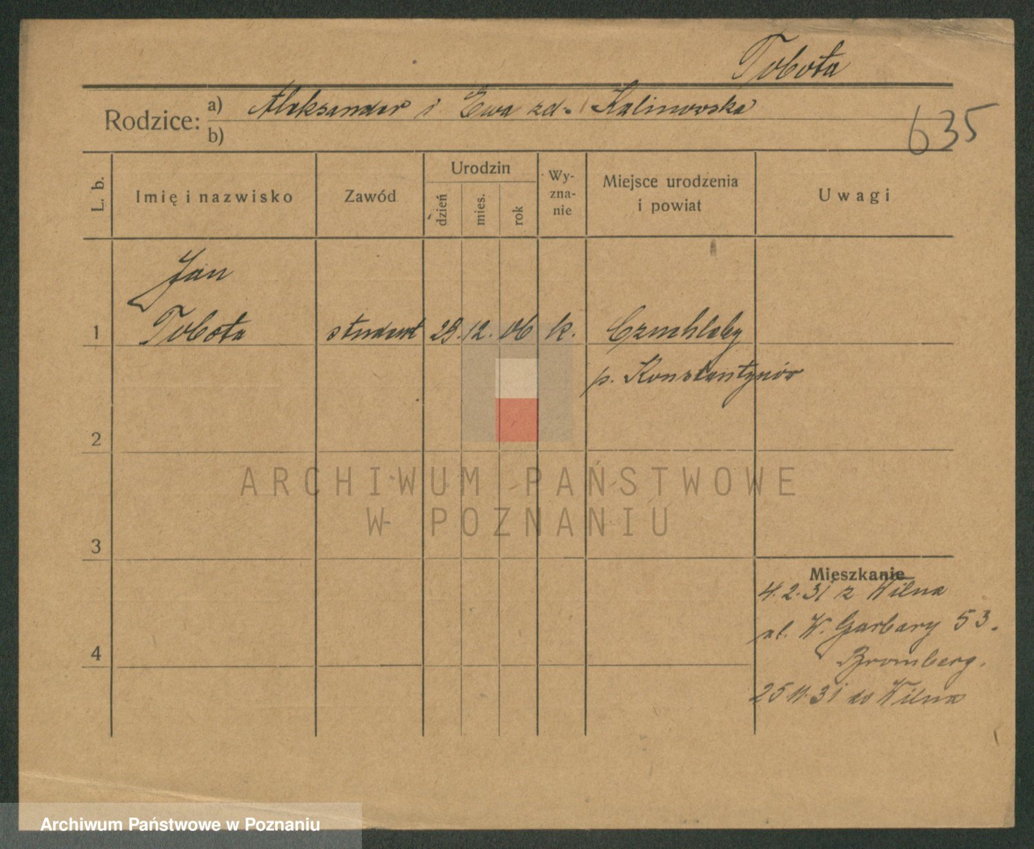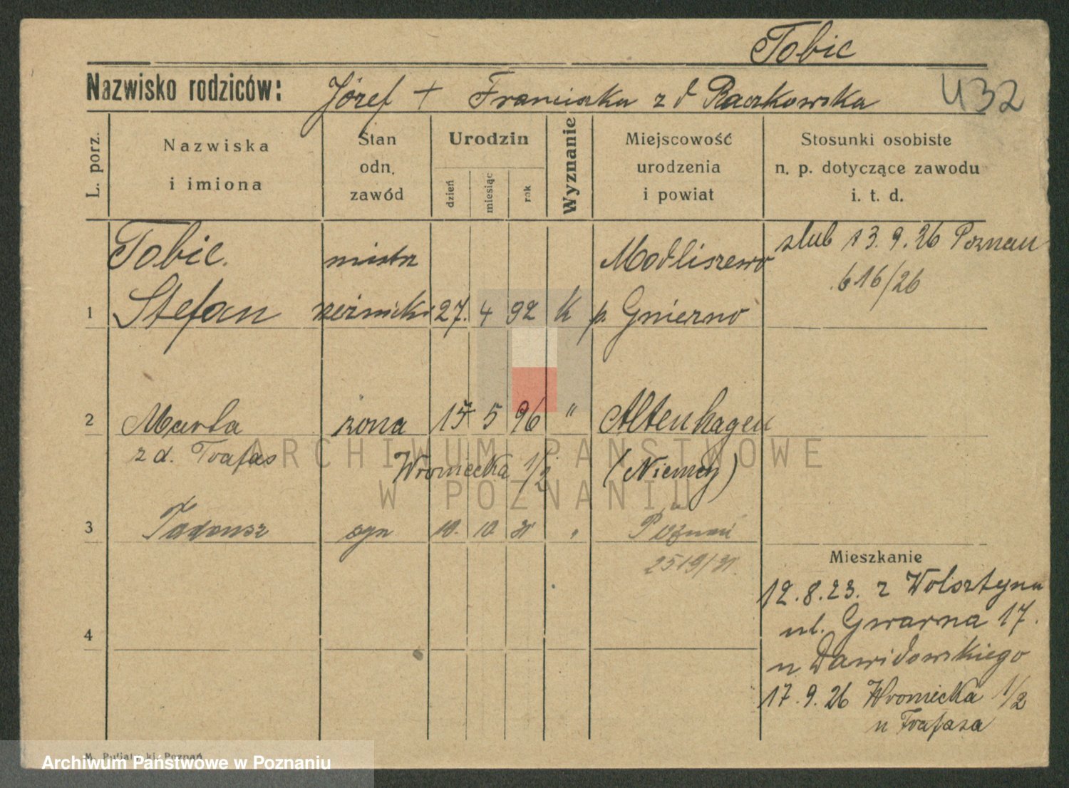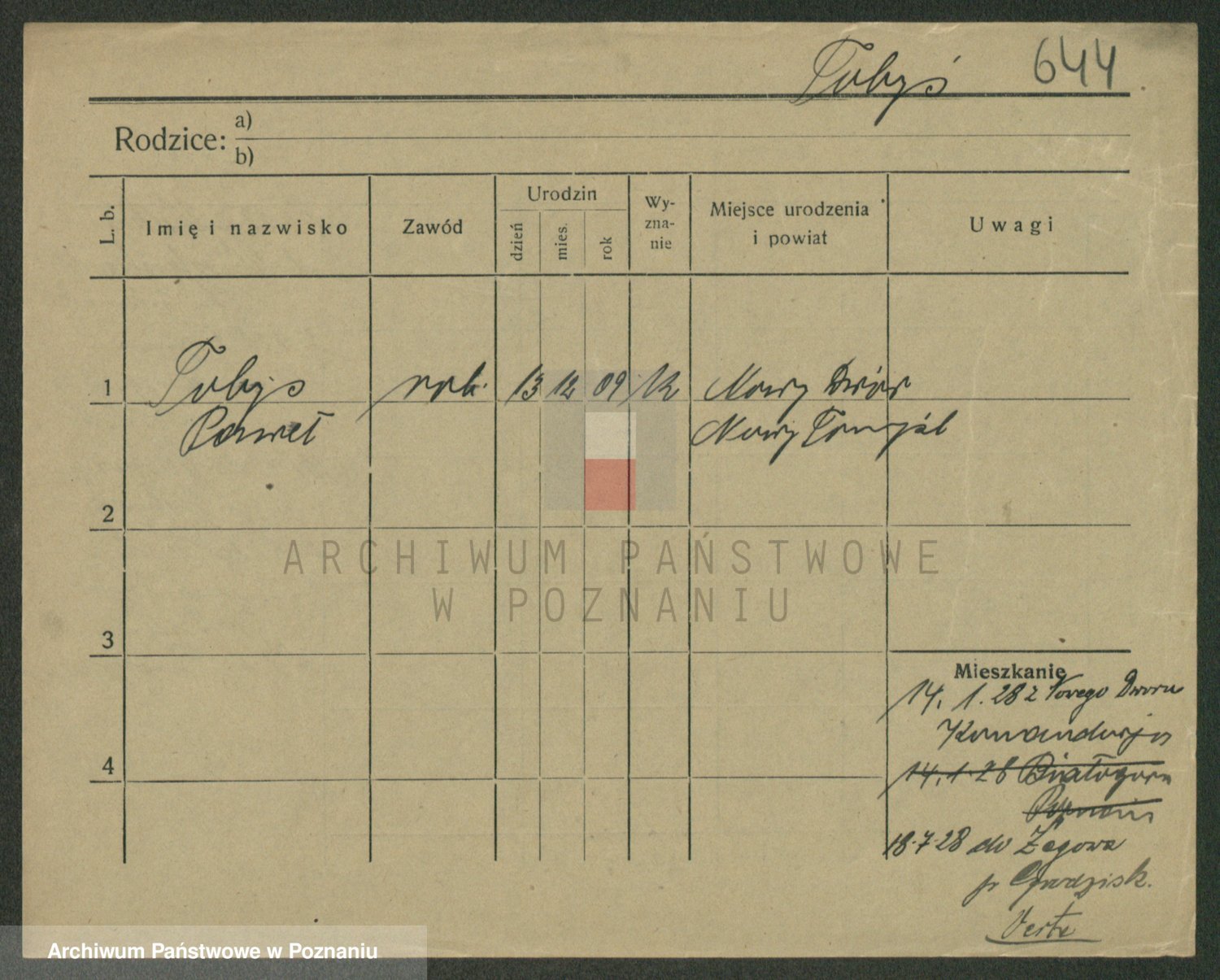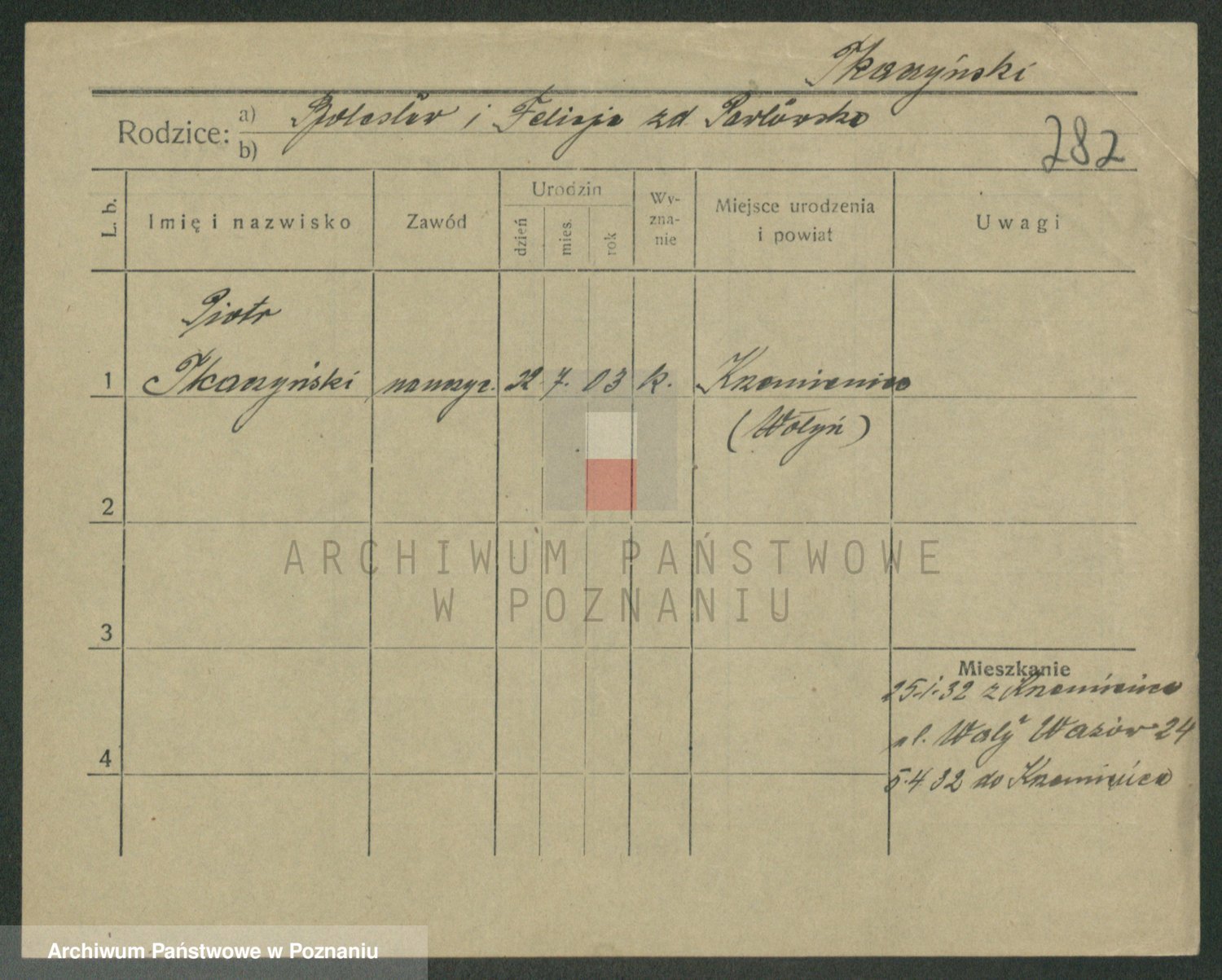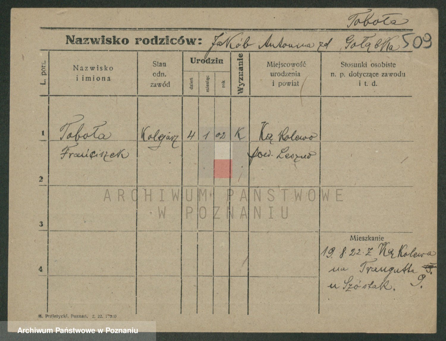 Podgląd karty osobowej dostępny jest po kliknięciu na nazwisko lub ikonkę karty. Można dokonywać powiększenia (ikony na górze) lub przechodzić między kolejnymi skanami (strzałki po bokach).