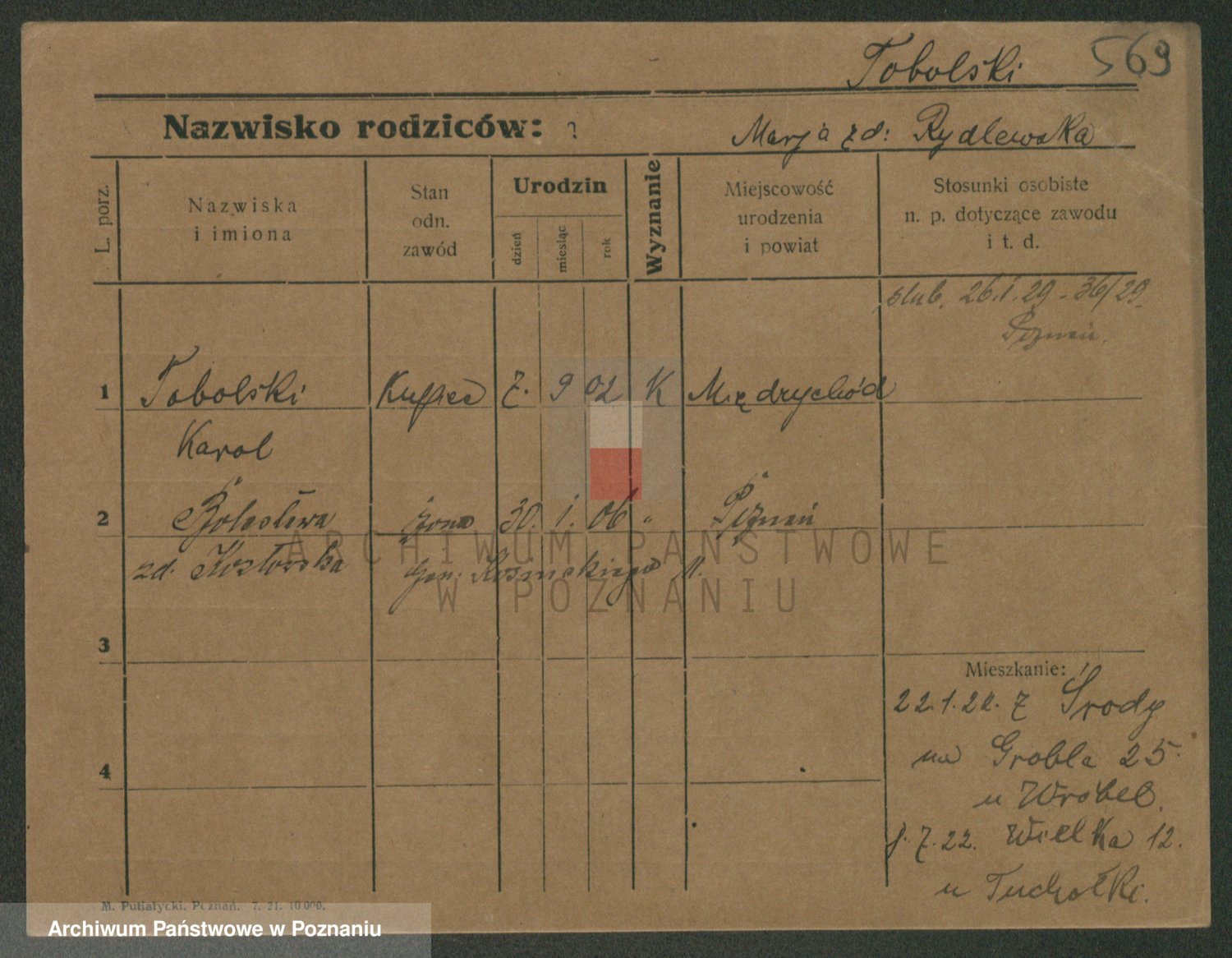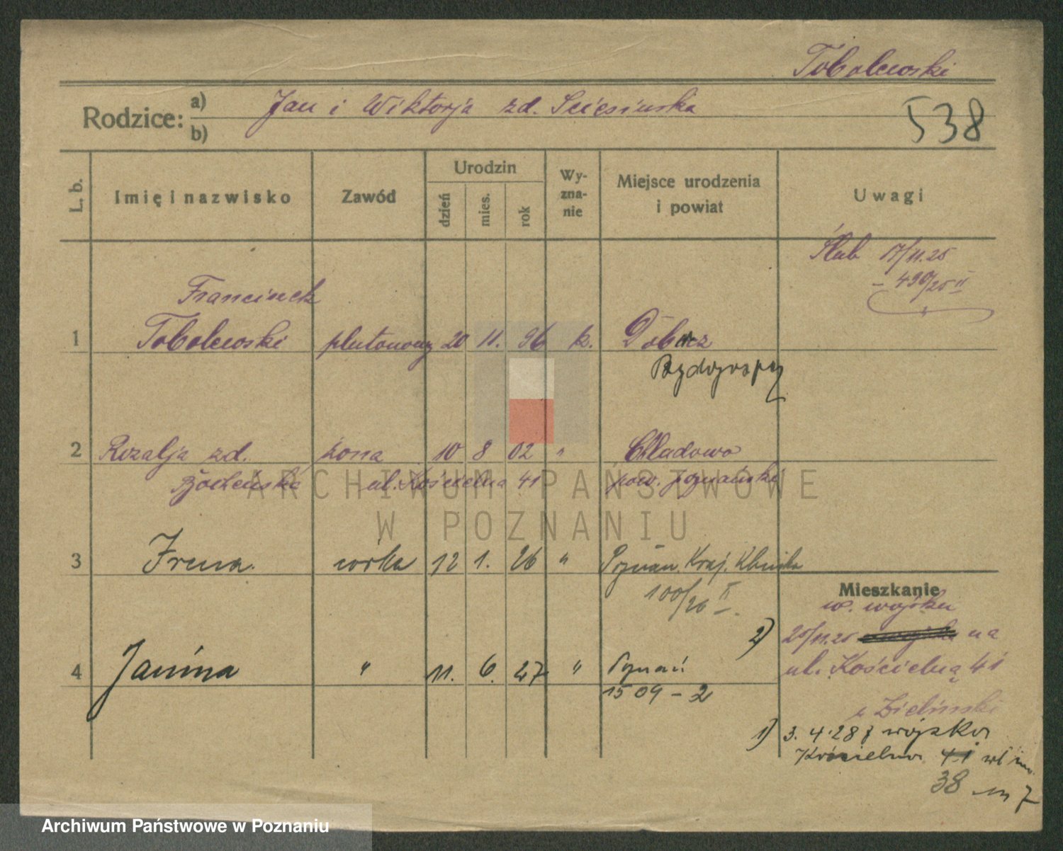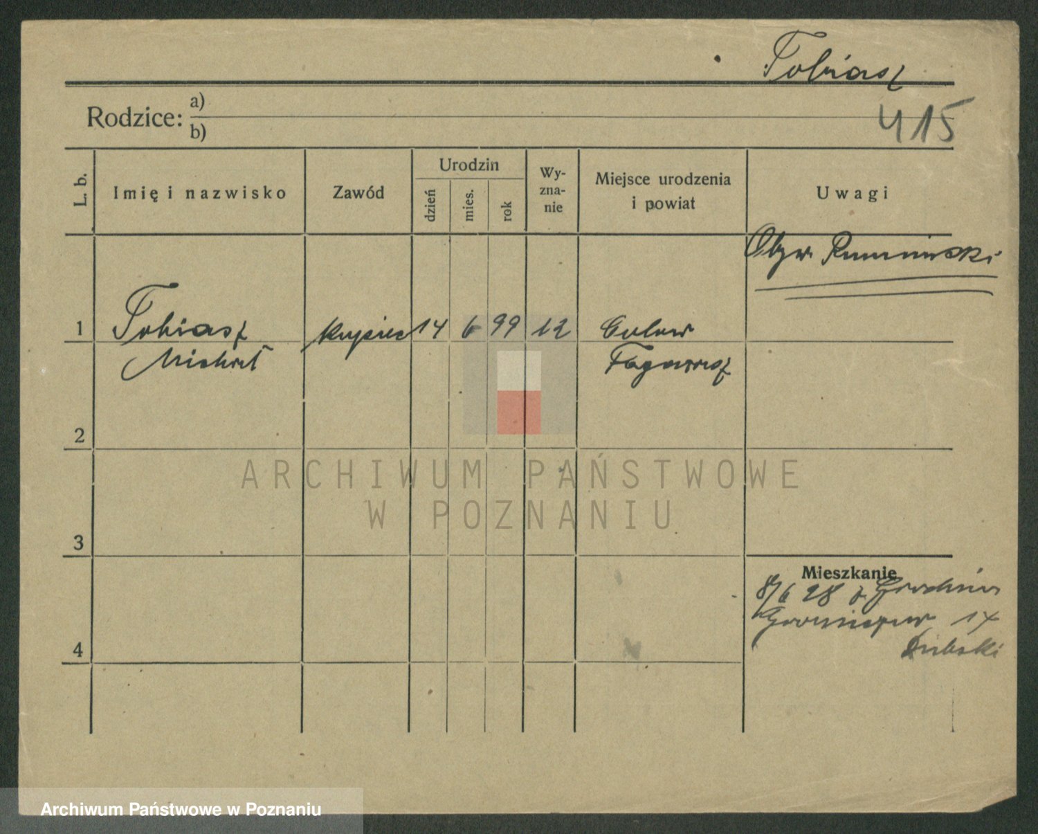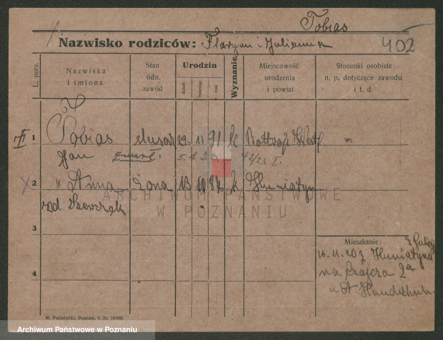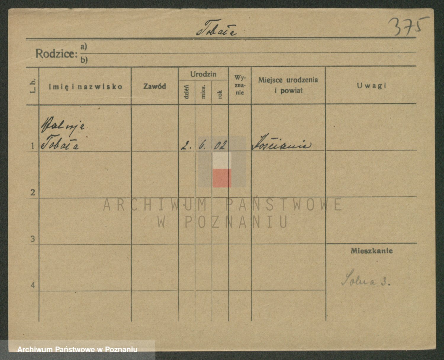 Podgląd karty osobowej dostępny jest po kliknięciu na nazwisko lub ikonkę karty. Można dokonywać powiększenia (ikony na górze) lub przechodzić między kolejnymi skanami (strzałki po bokach).