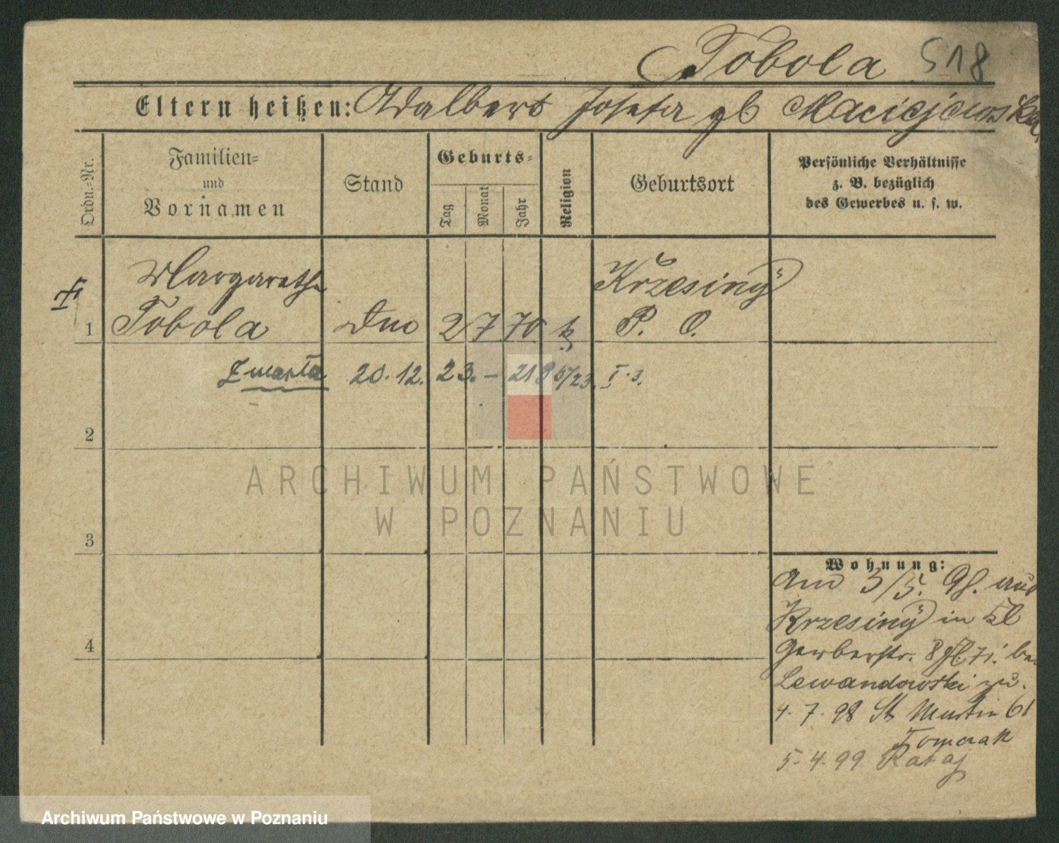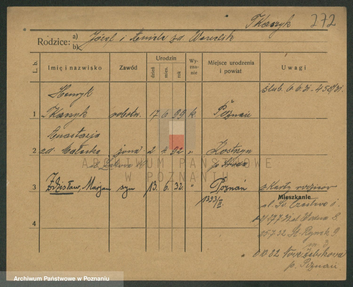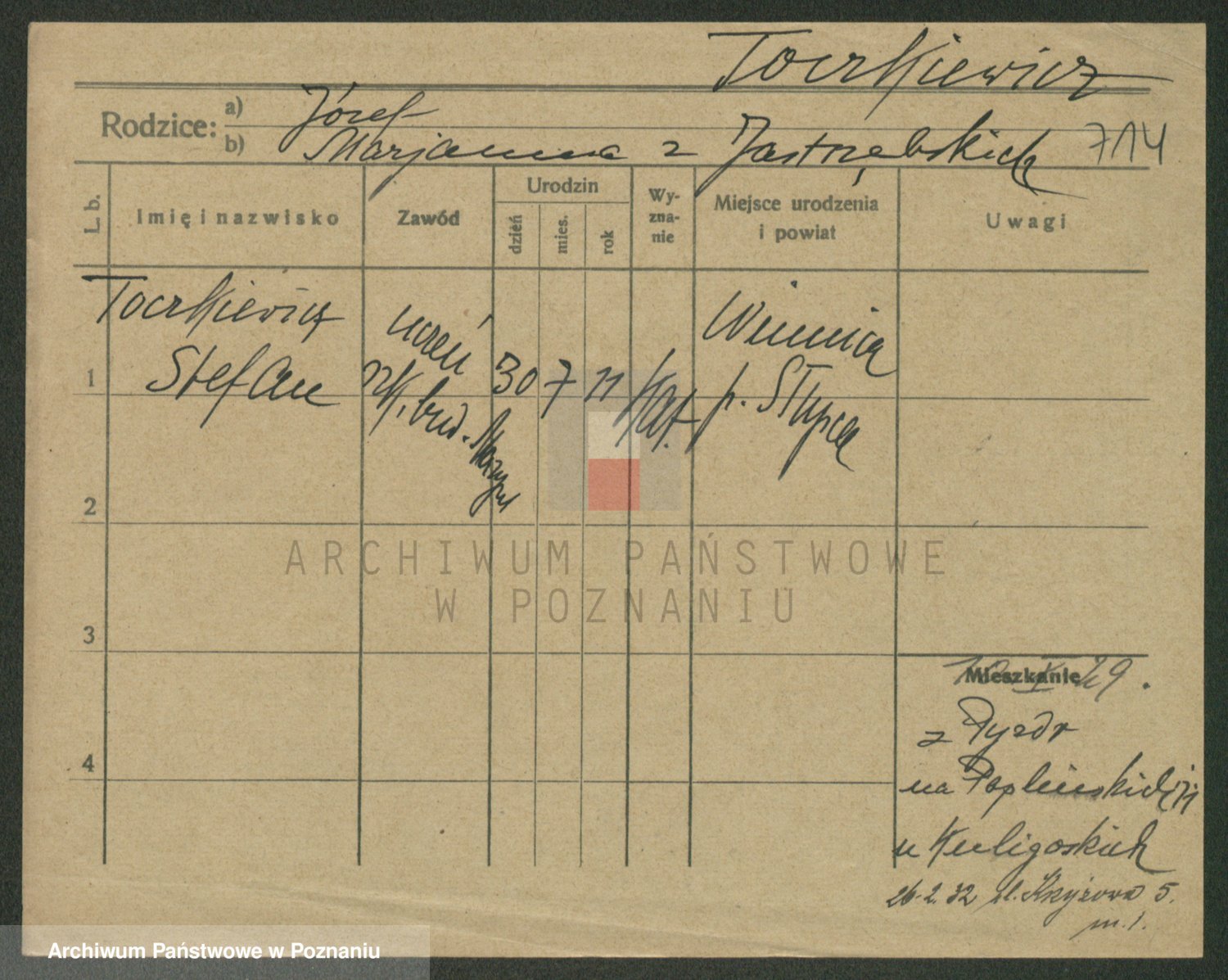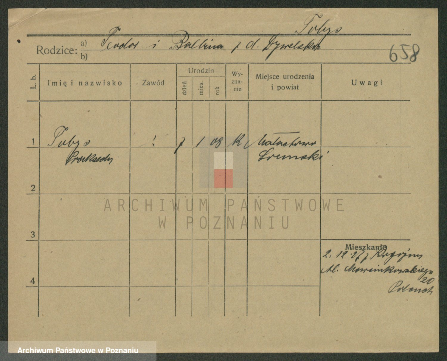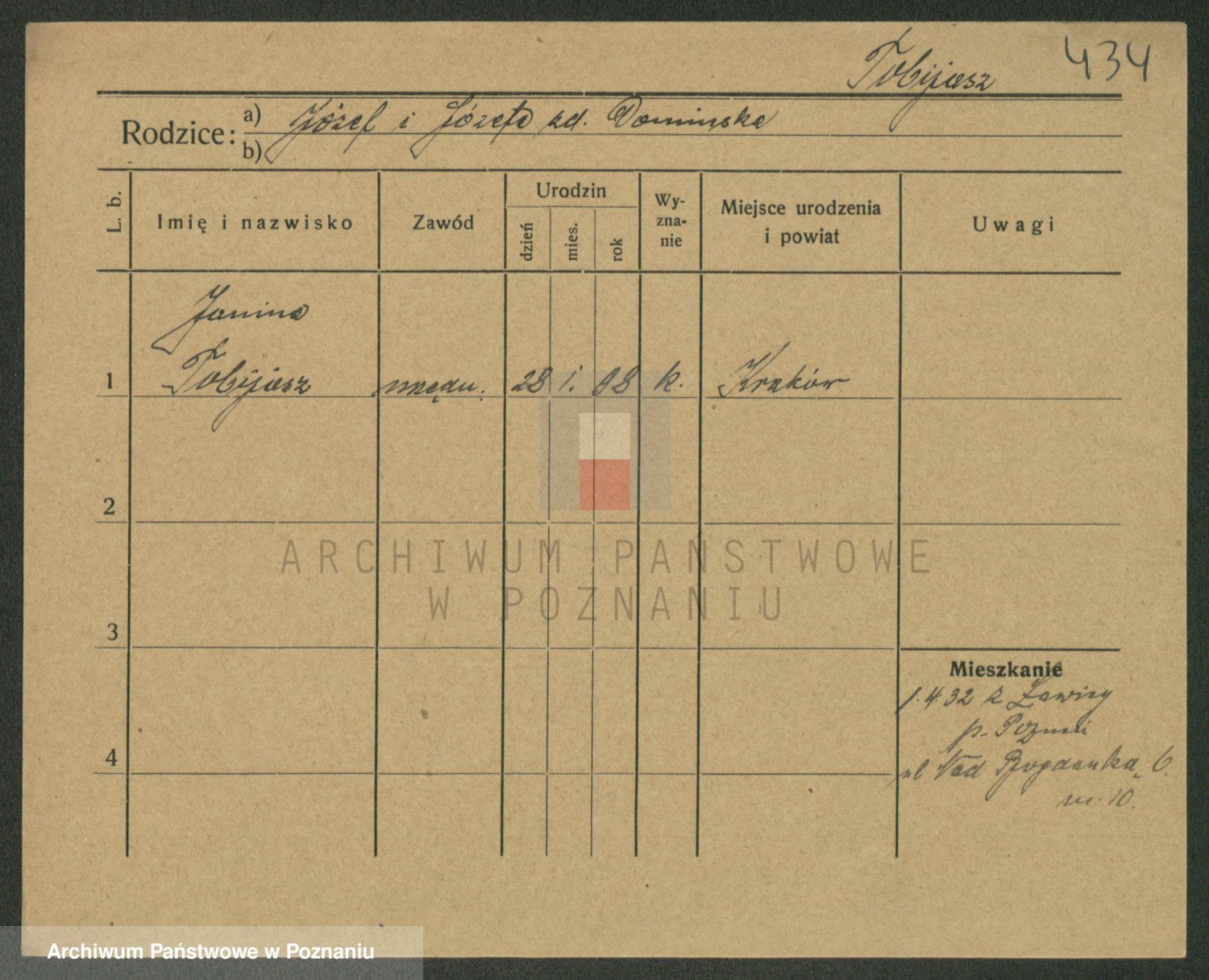 Podgląd karty osobowej dostępny jest po kliknięciu na nazwisko lub ikonkę karty. Można dokonywać powiększenia (ikony na górze) lub przechodzić między kolejnymi skanami (strzałki po bokach).