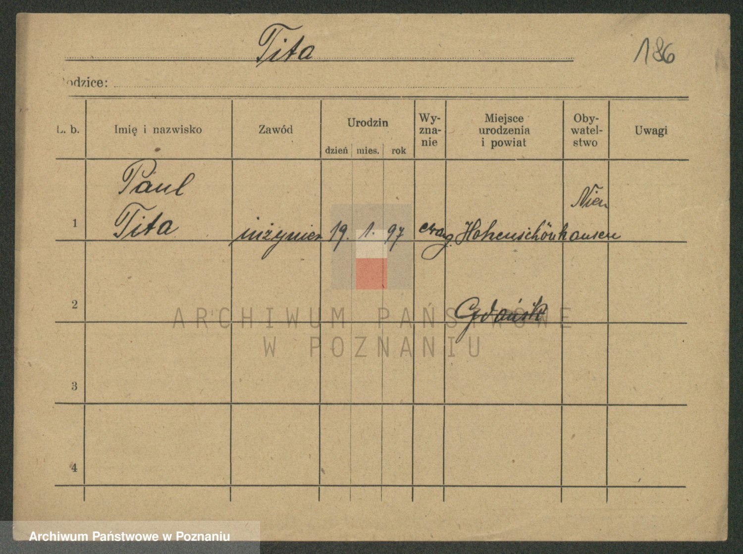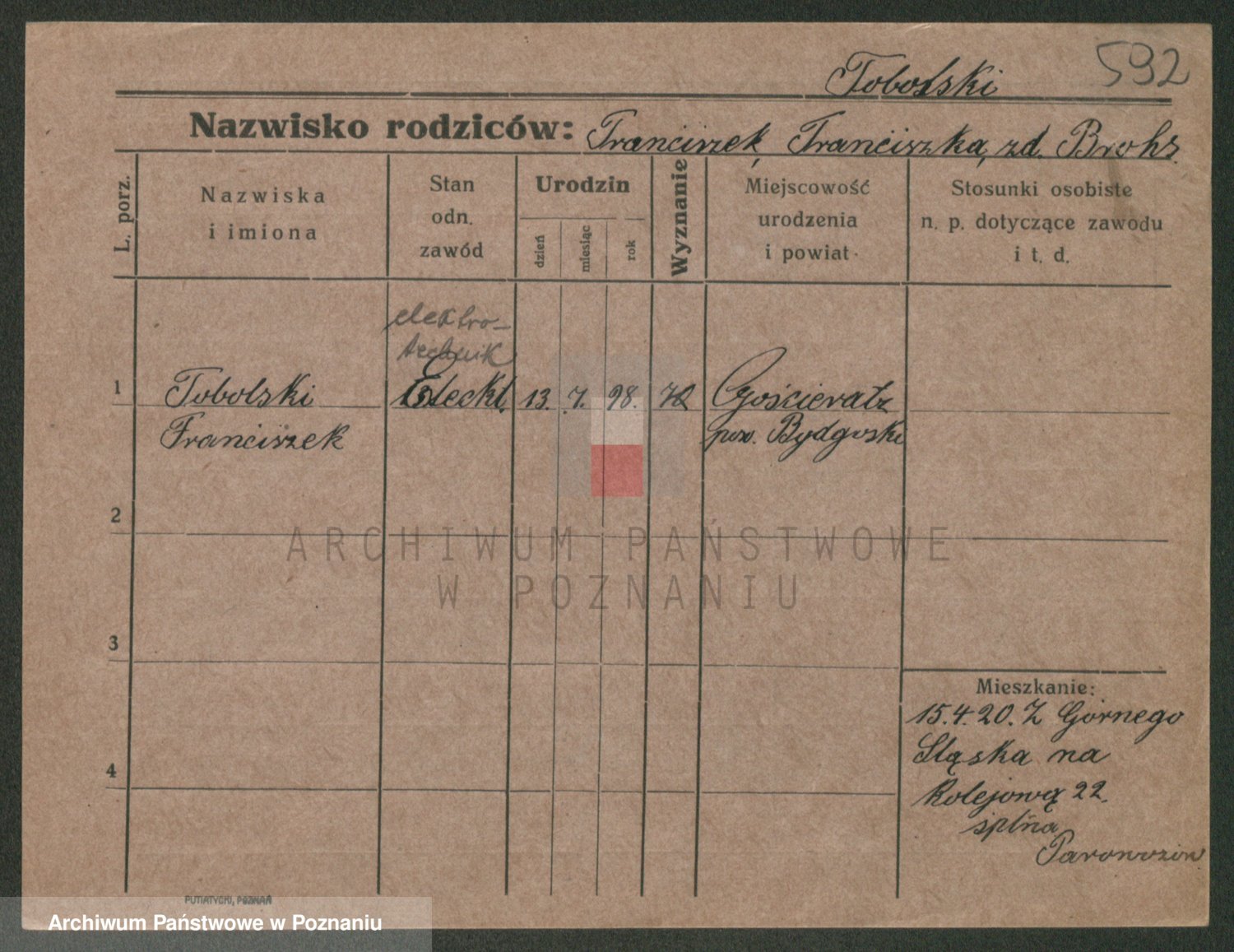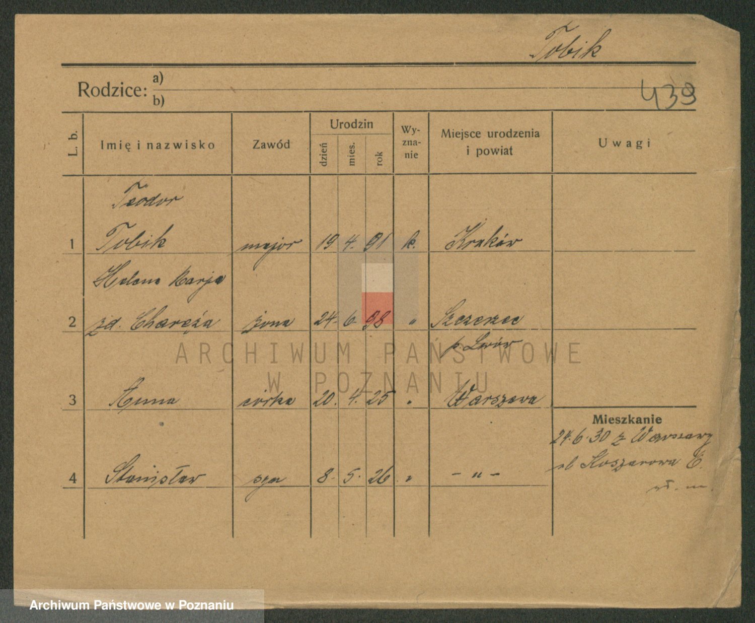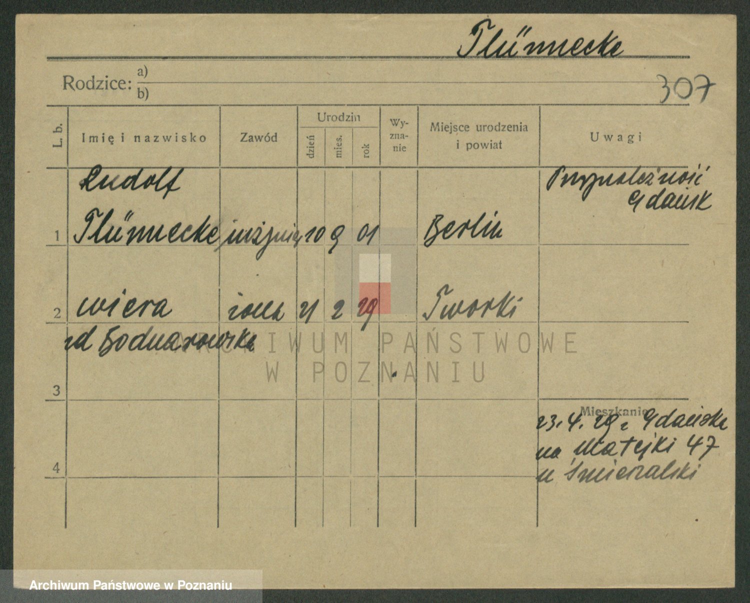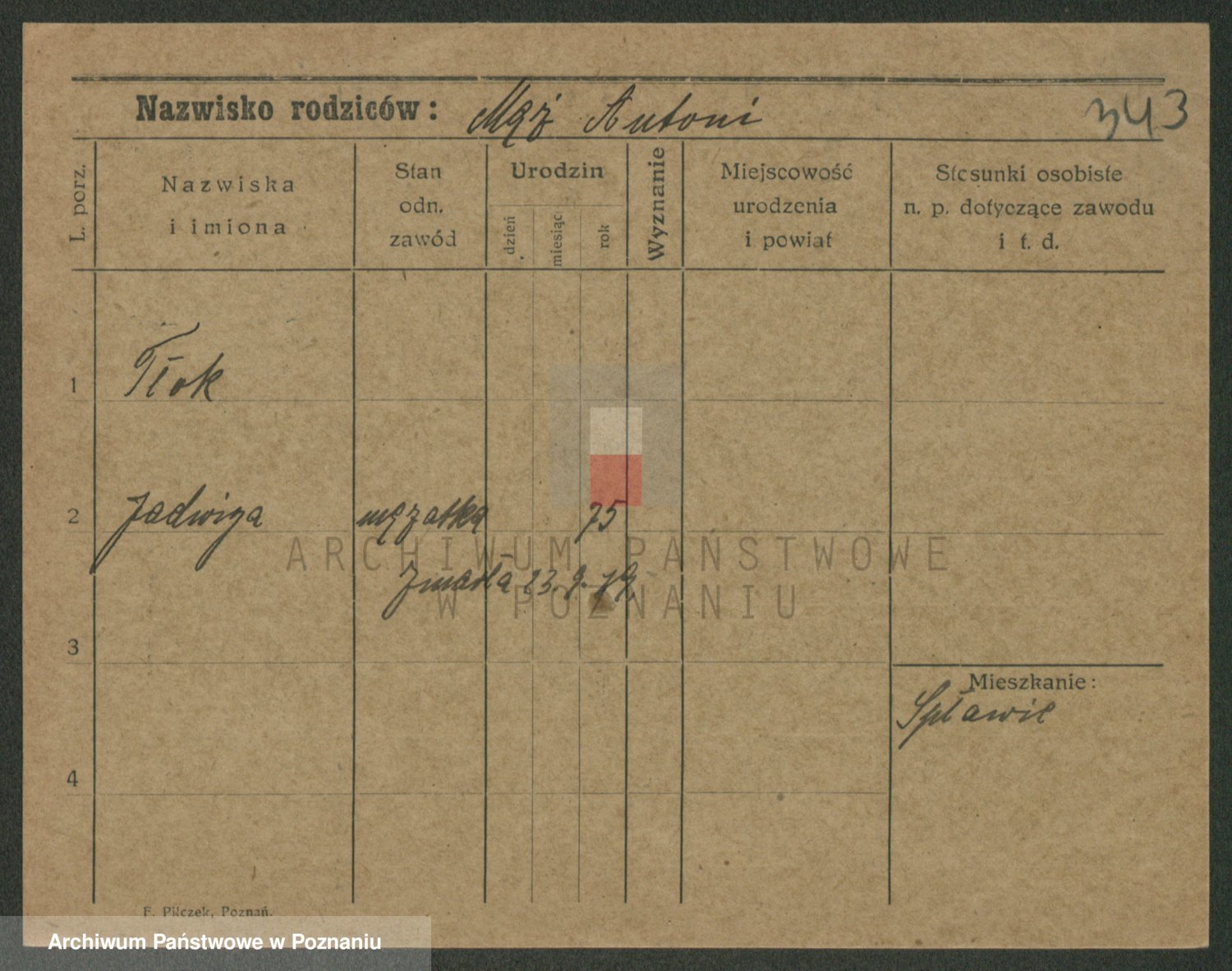 Podgląd karty osobowej dostępny jest po kliknięciu na nazwisko lub ikonkę karty. Można dokonywać powiększenia (ikony na górze) lub przechodzić między kolejnymi skanami (strzałki po bokach).