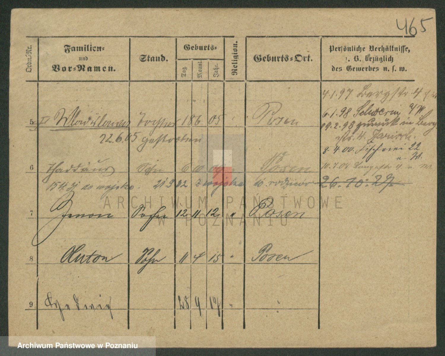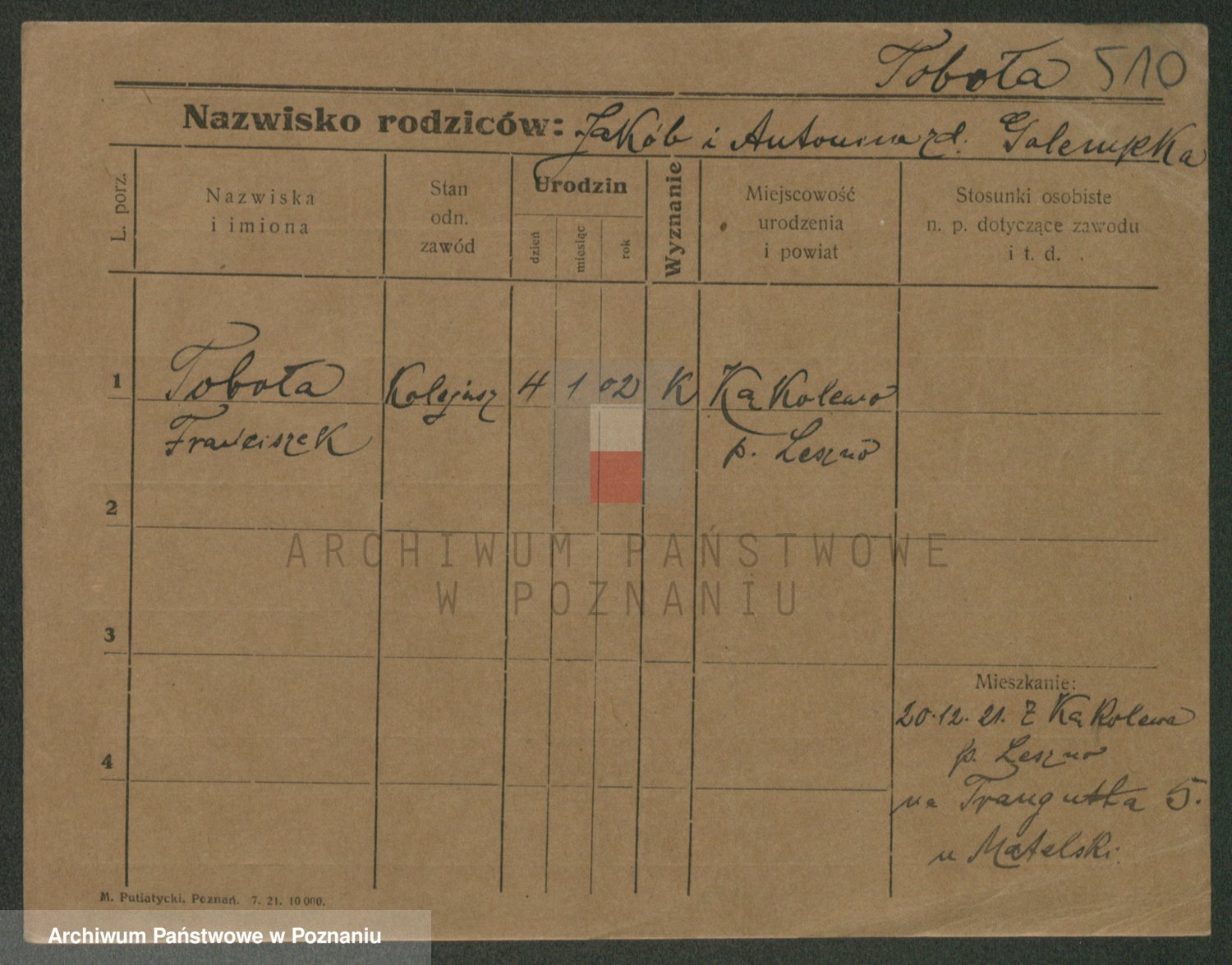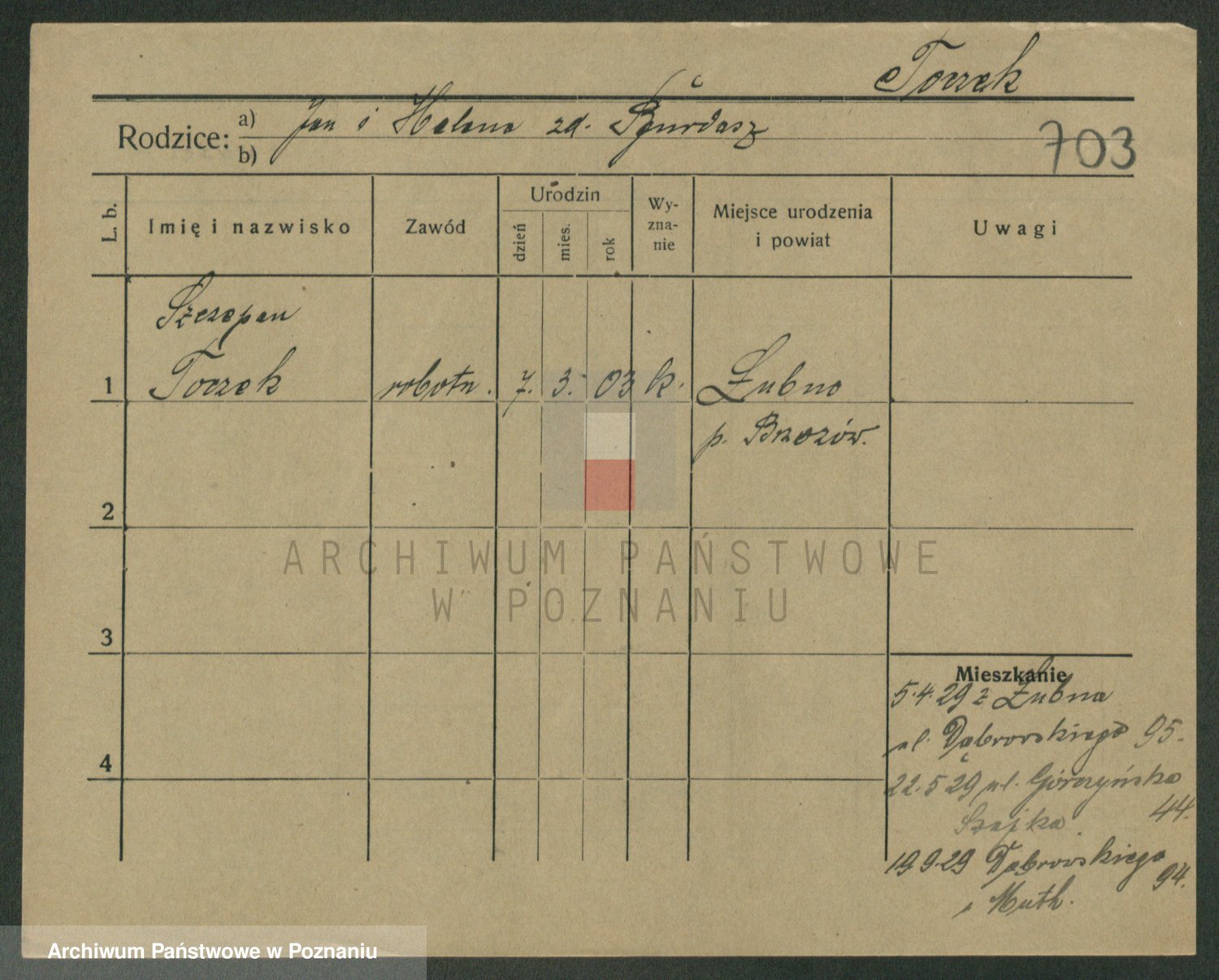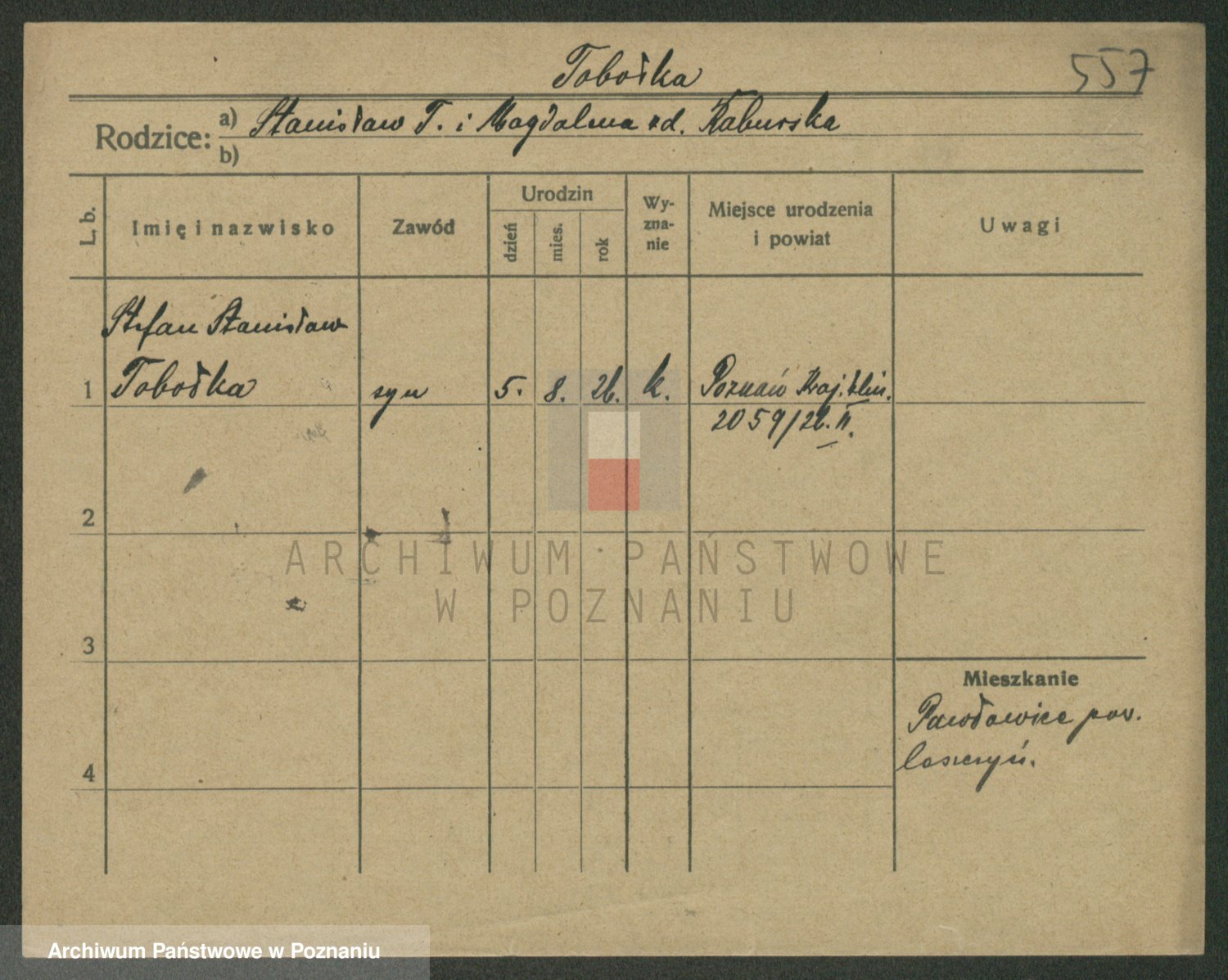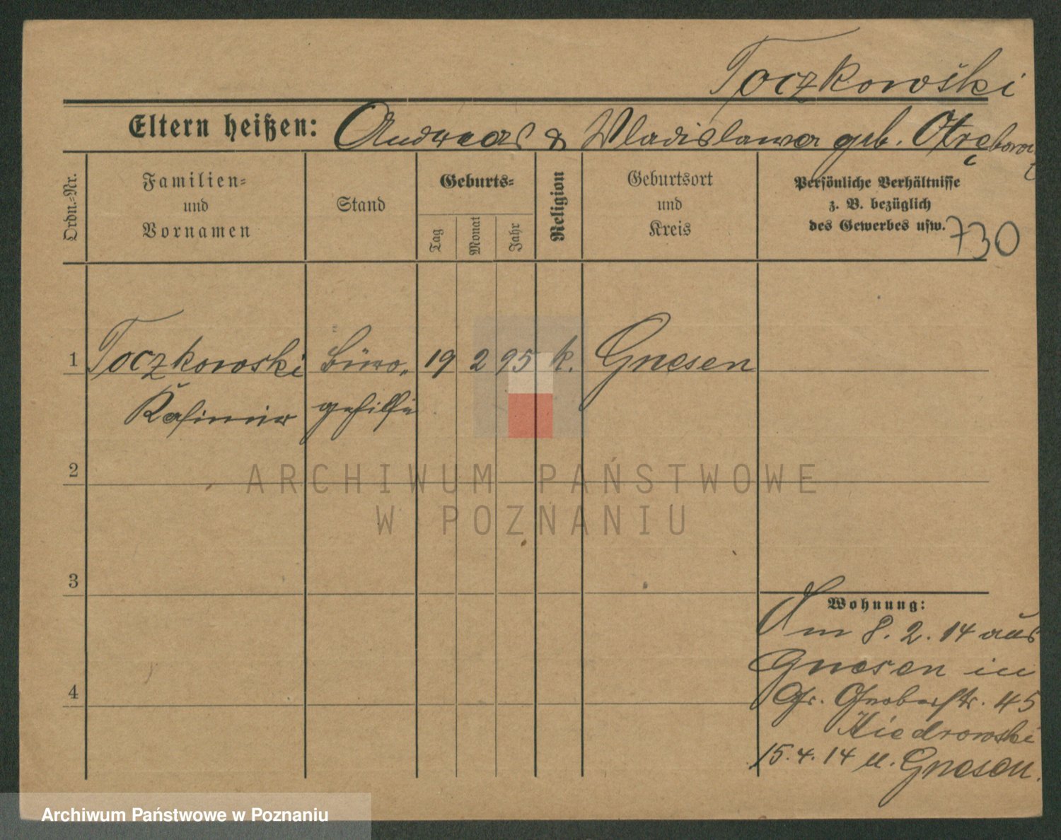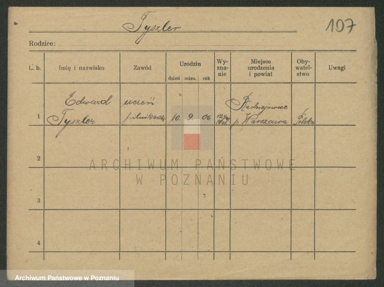 Podgląd karty osobowej dostępny jest po kliknięciu na nazwisko lub ikonkę karty. Można dokonywać powiększenia (ikony na górze) lub przechodzić między kolejnymi skanami (strzałki po bokach).