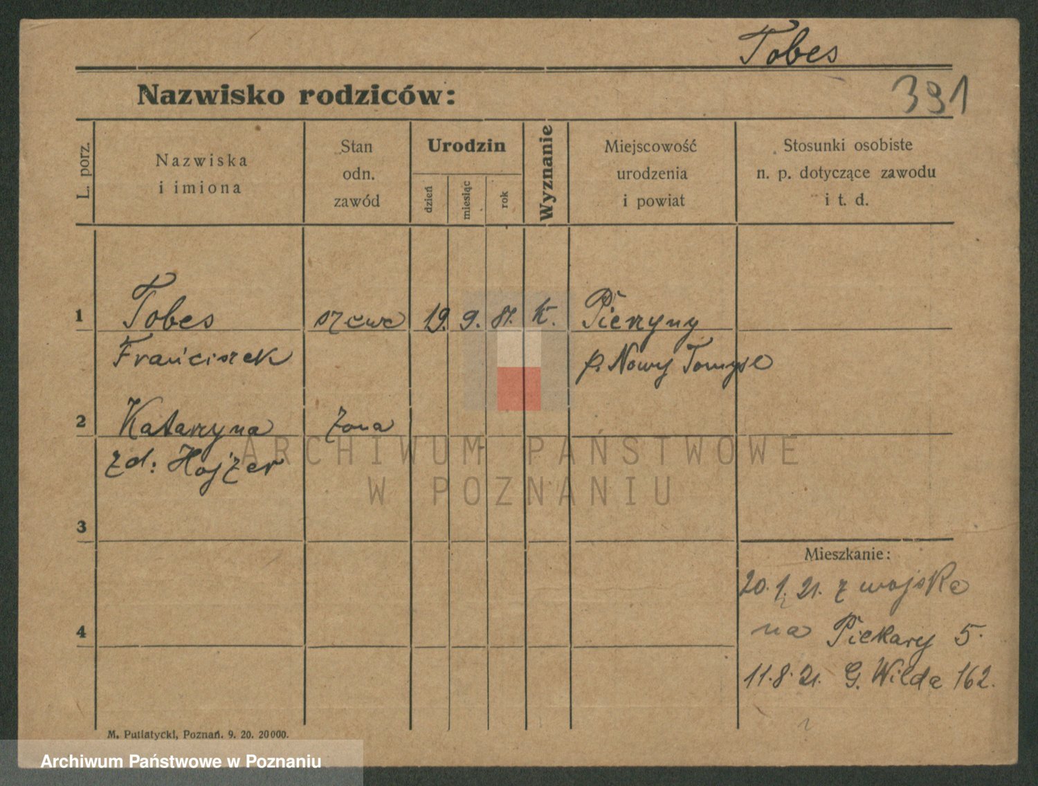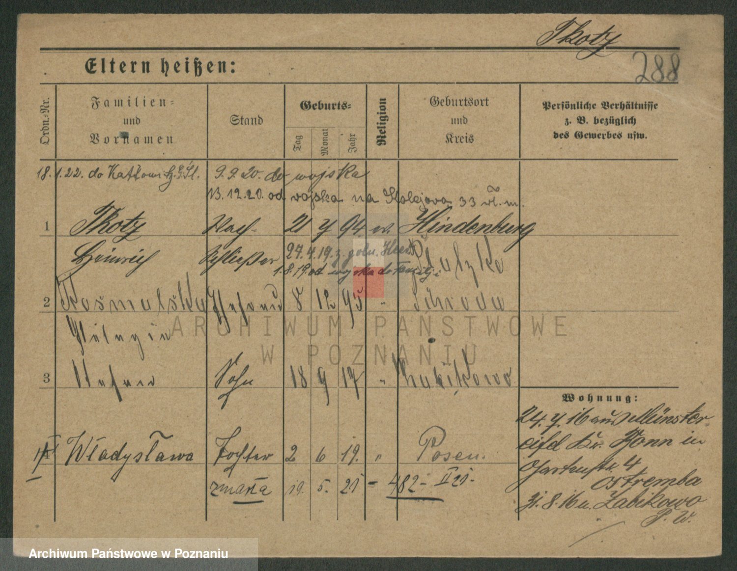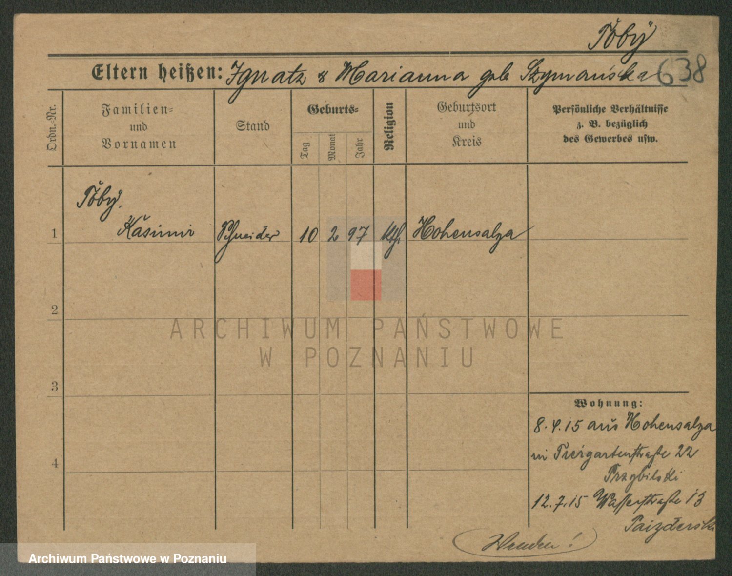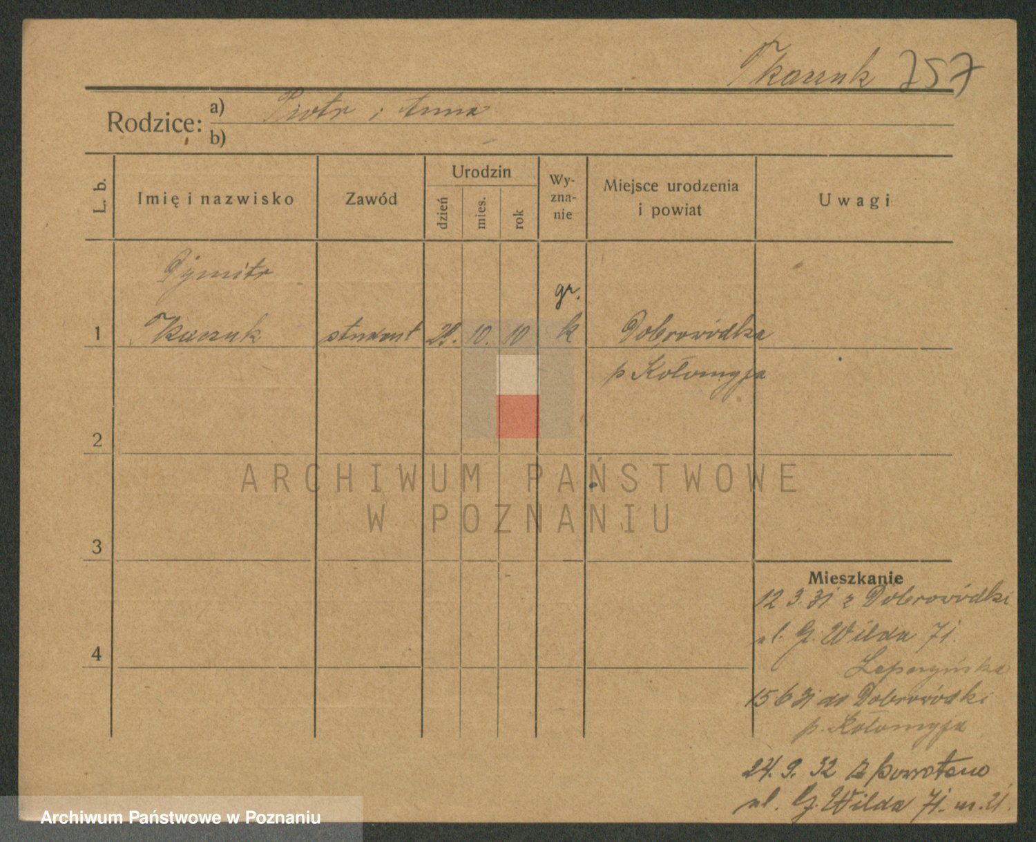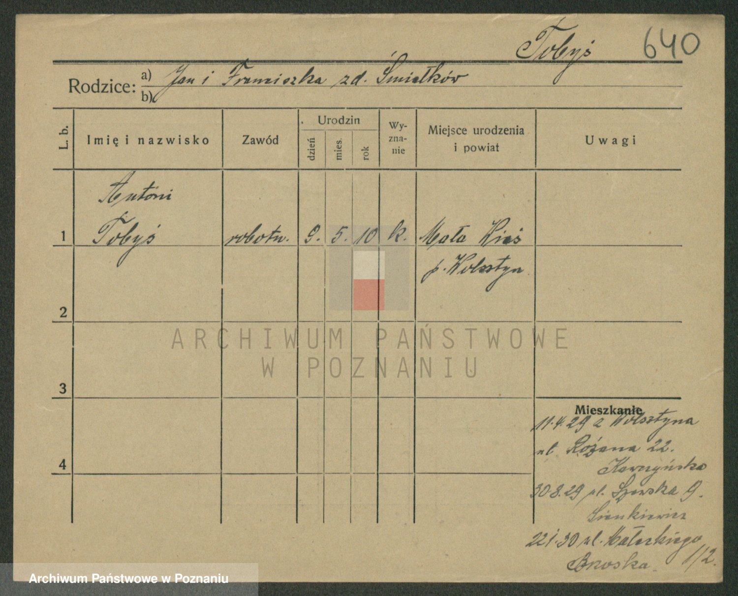 Podgląd karty osobowej dostępny jest po kliknięciu na nazwisko lub ikonkę karty. Można dokonywać powiększenia (ikony na górze) lub przechodzić między kolejnymi skanami (strzałki po bokach).