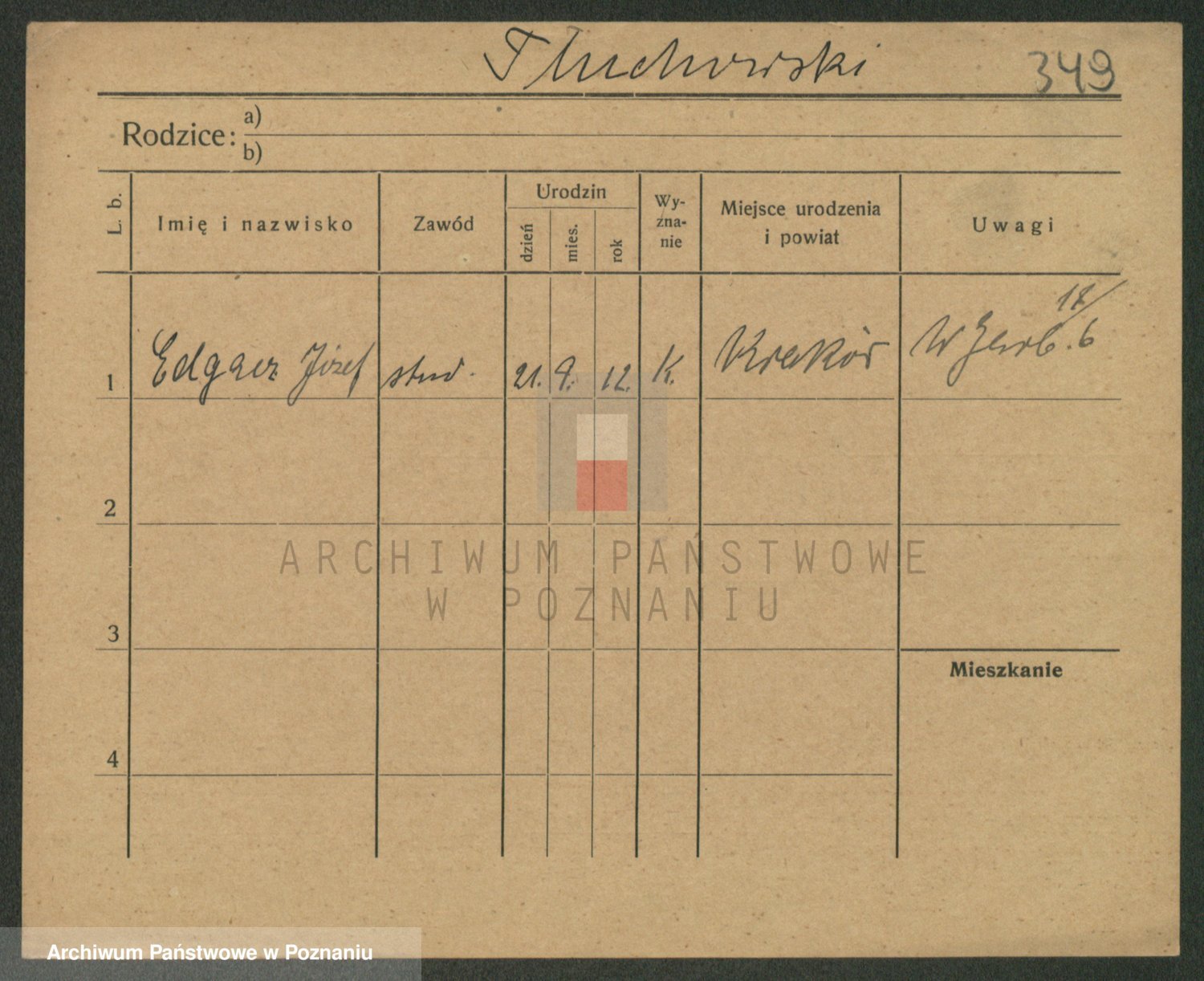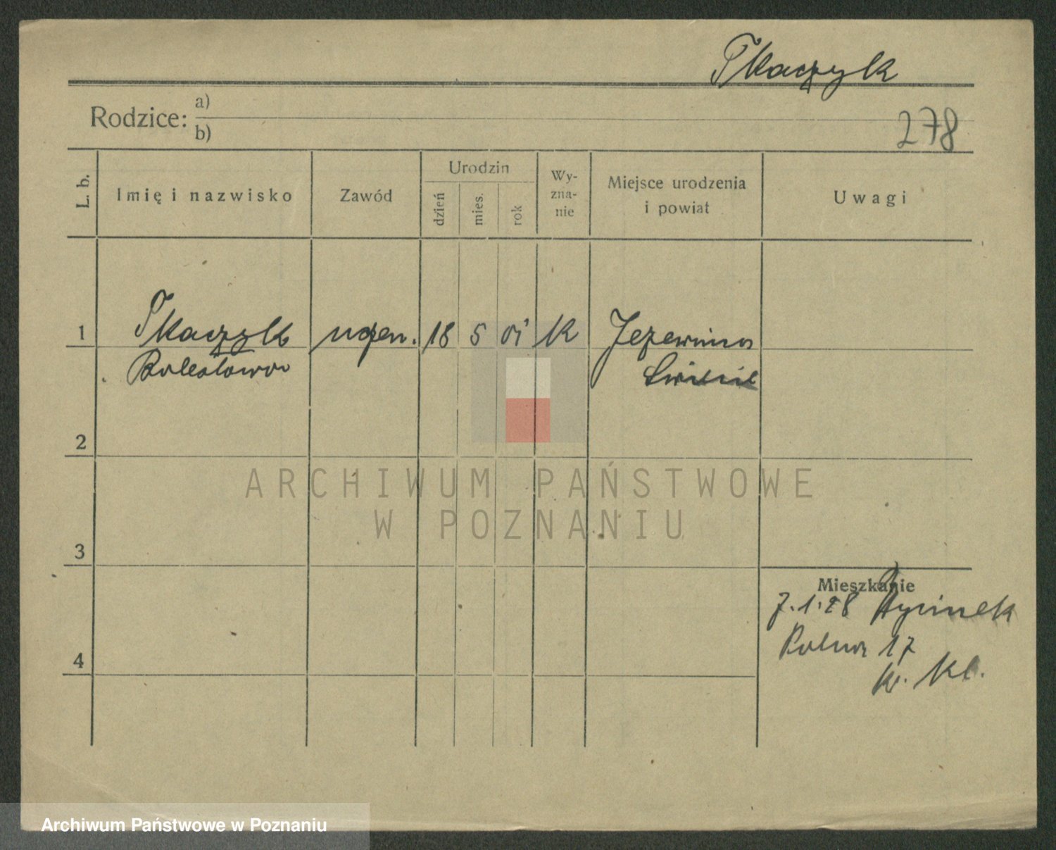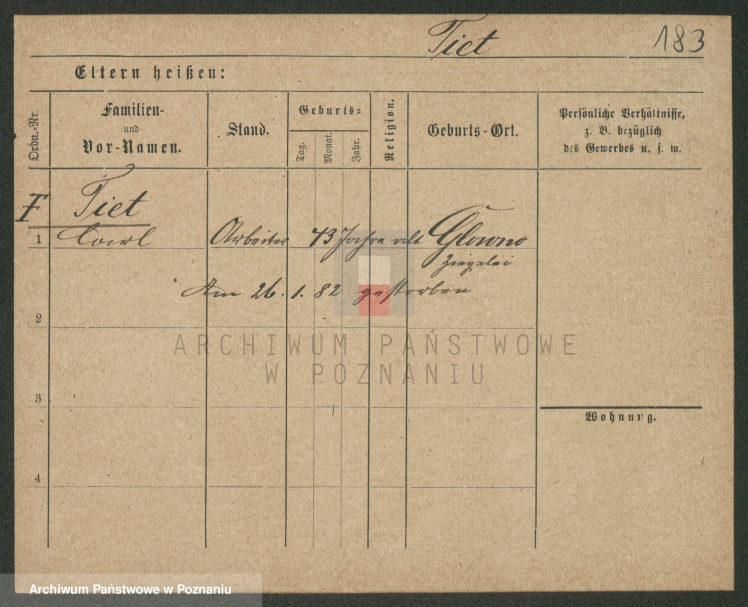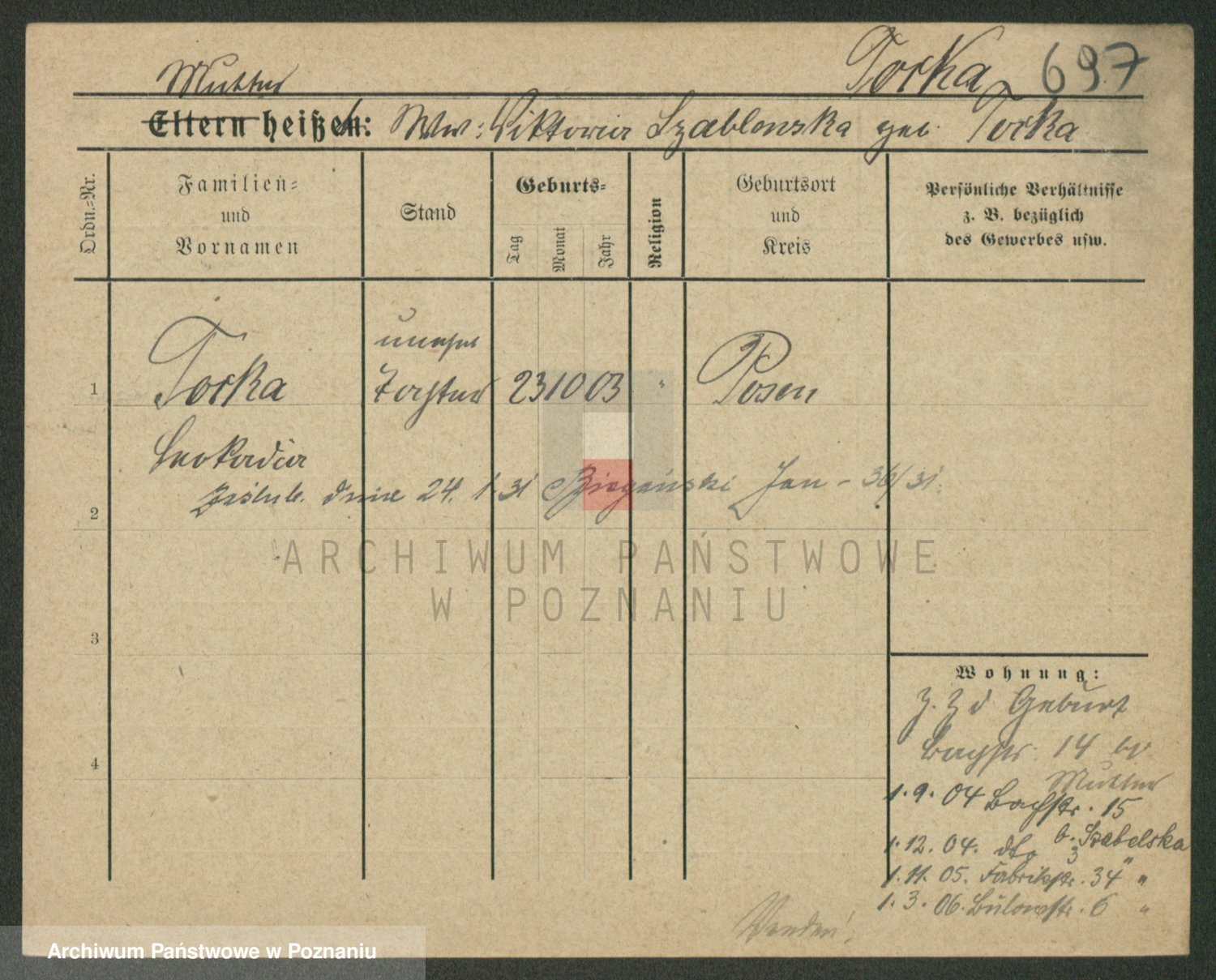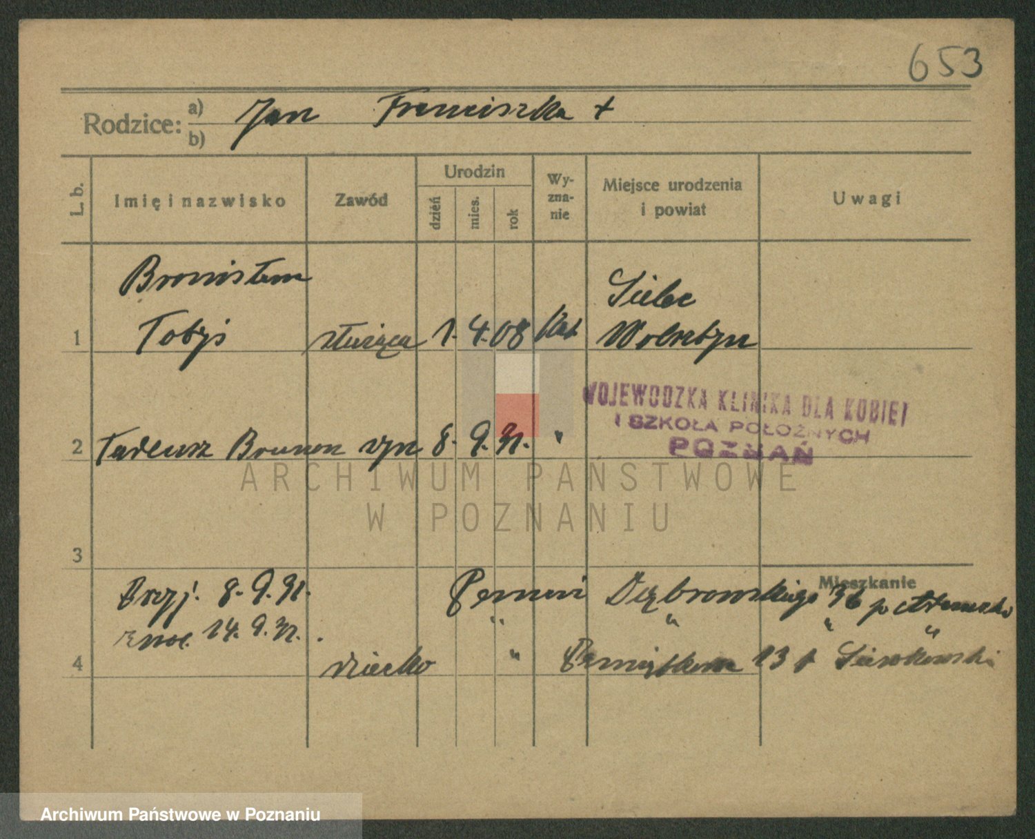 Podgląd karty osobowej dostępny jest po kliknięciu na nazwisko lub ikonkę karty. Można dokonywać powiększenia (ikony na górze) lub przechodzić między kolejnymi skanami (strzałki po bokach).