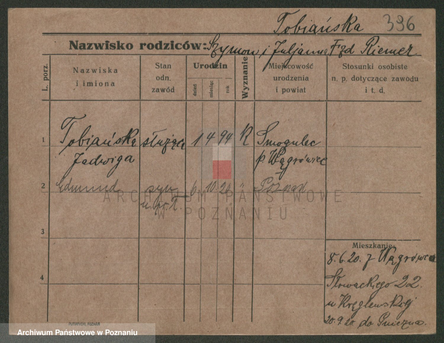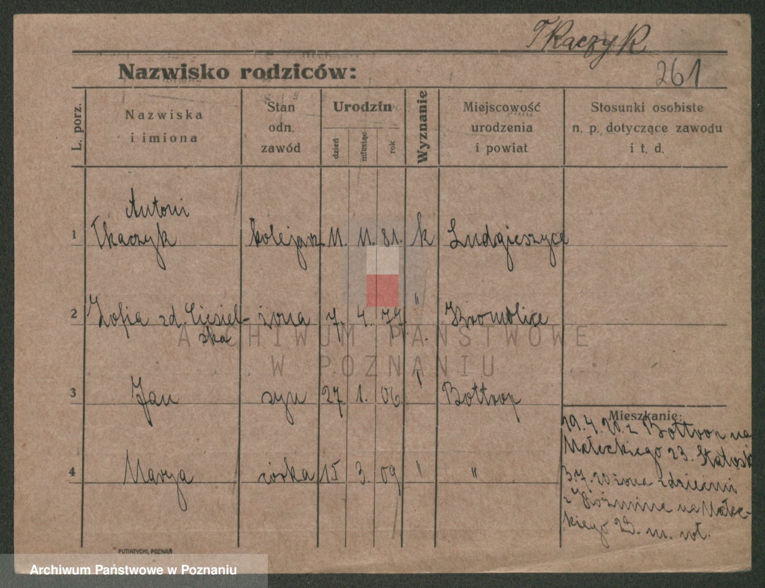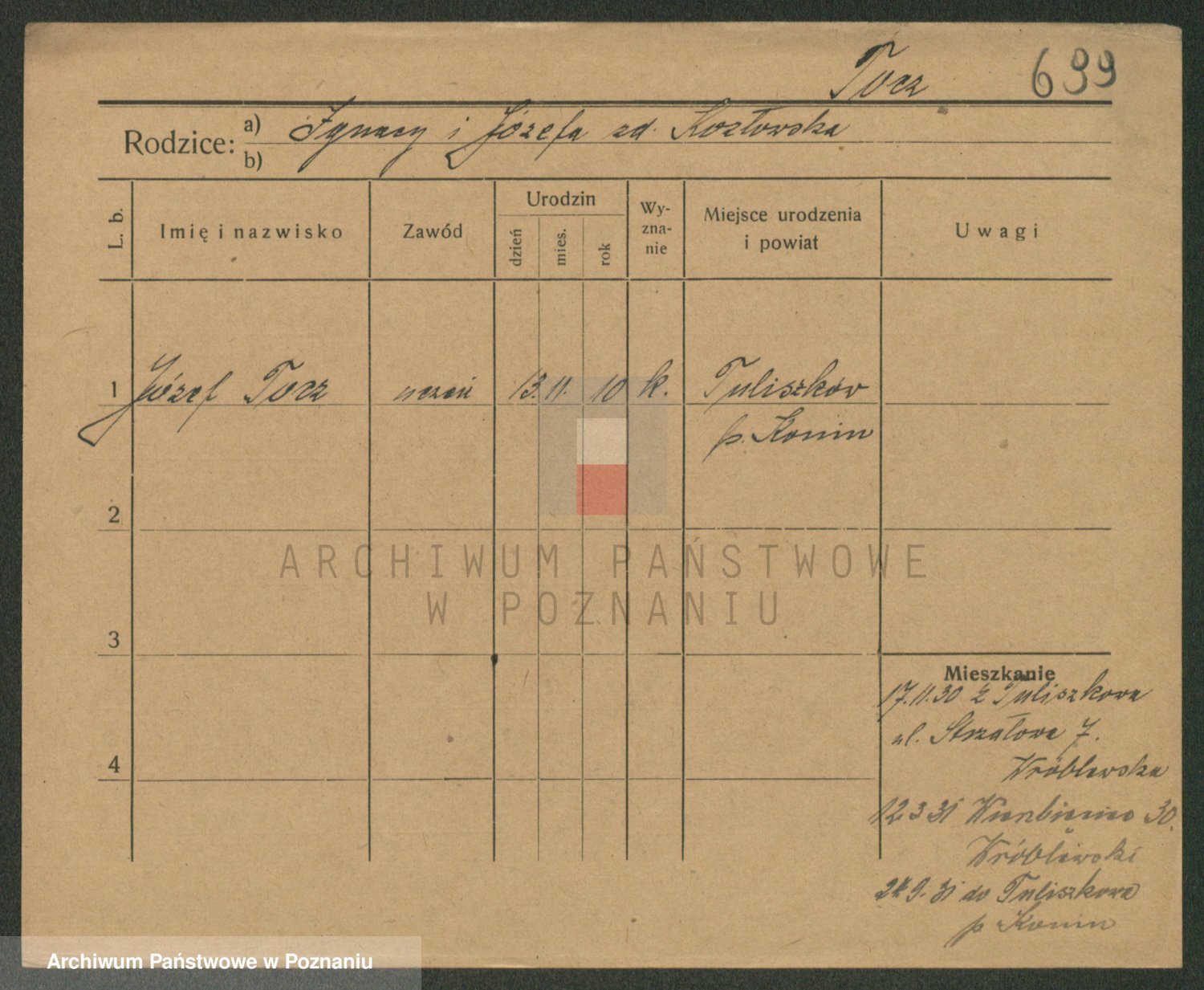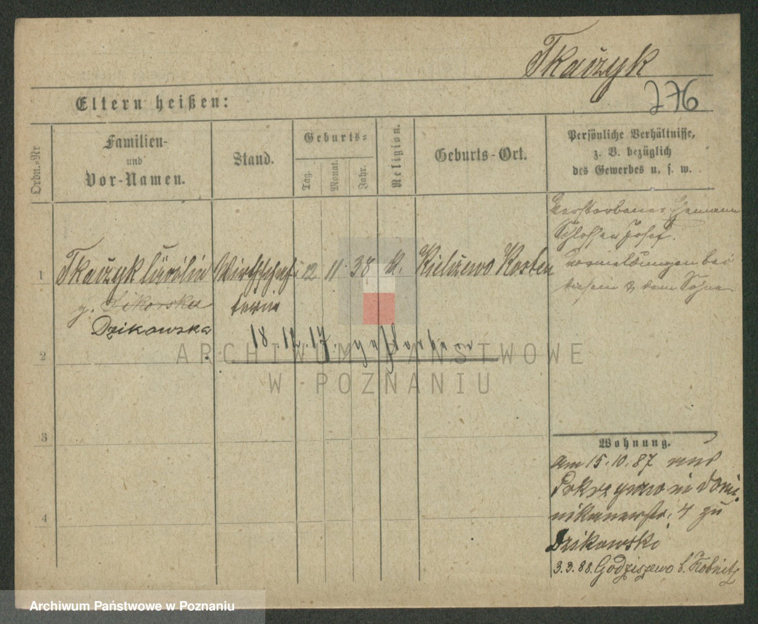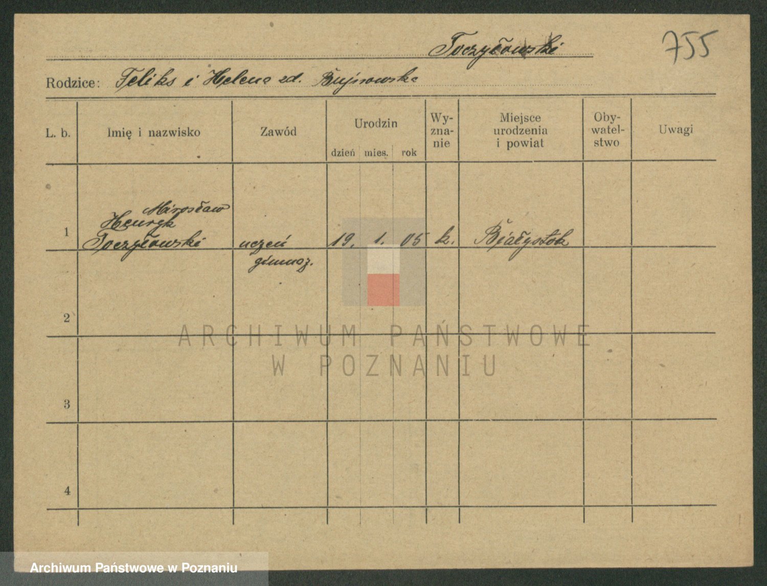 Podgląd karty osobowej dostępny jest po kliknięciu na nazwisko lub ikonkę karty. Można dokonywać powiększenia (ikony na górze) lub przechodzić między kolejnymi skanami (strzałki po bokach).