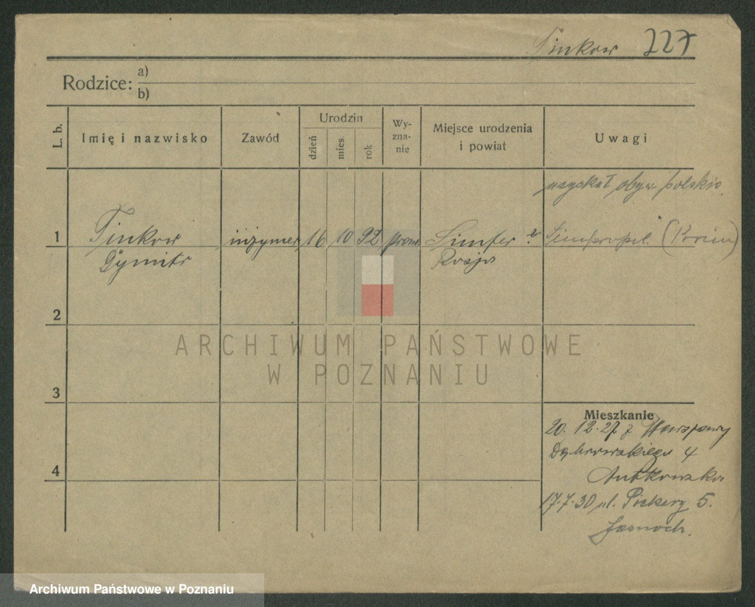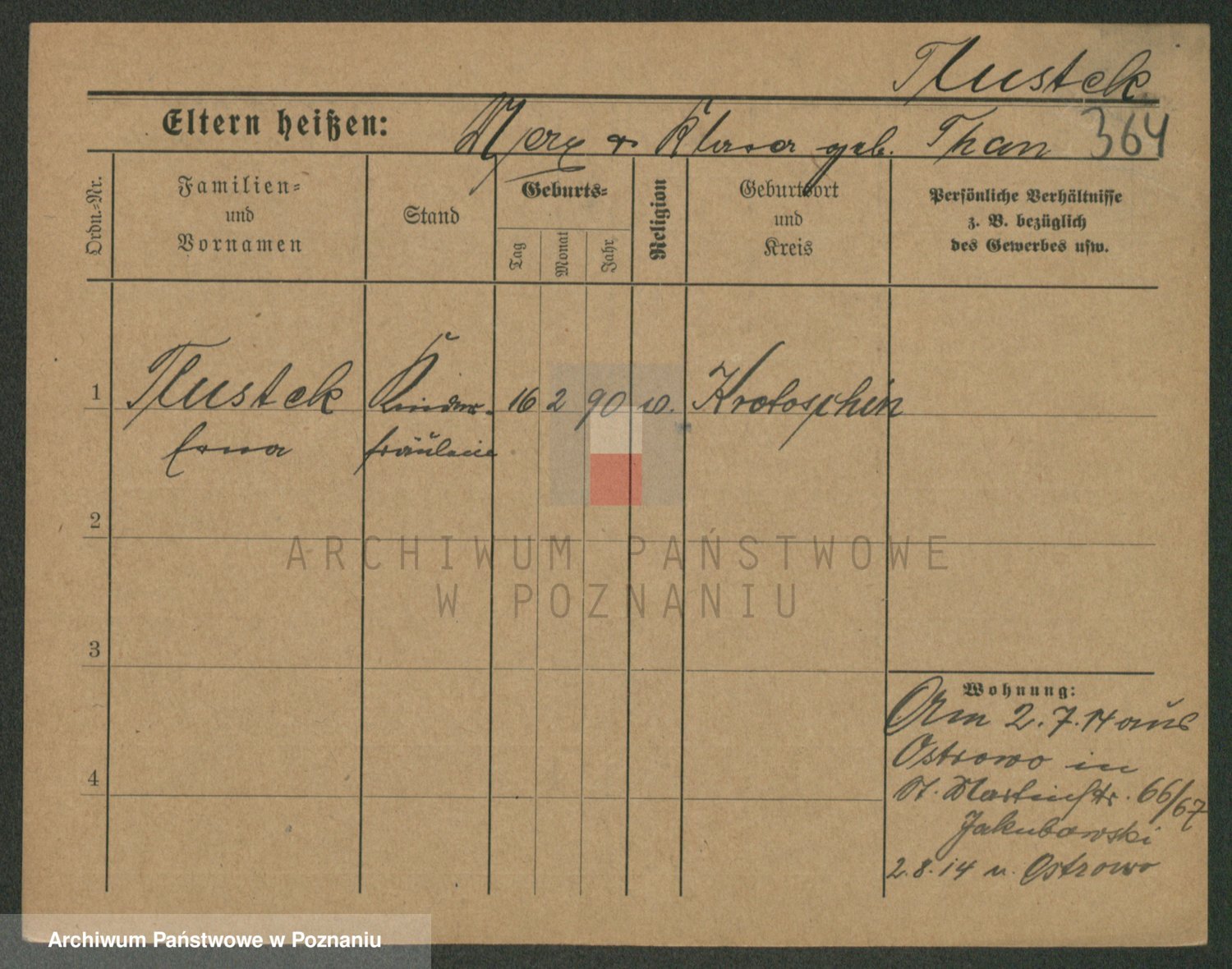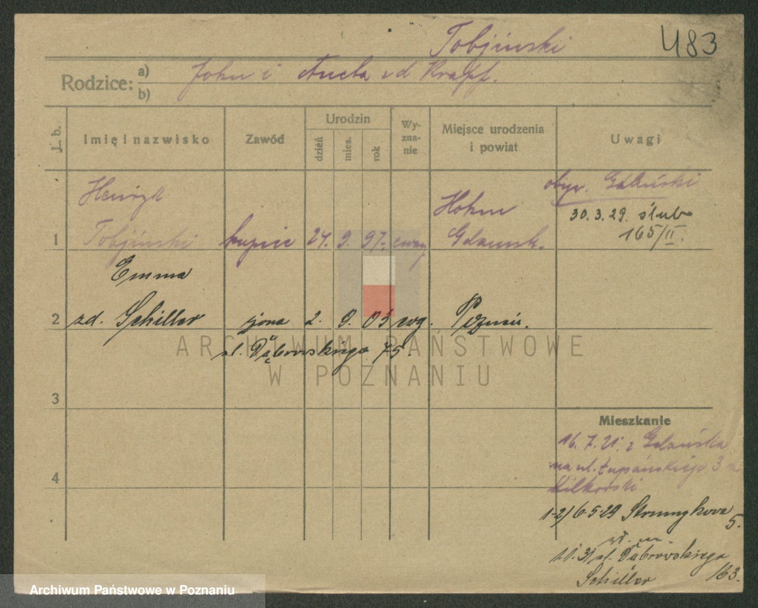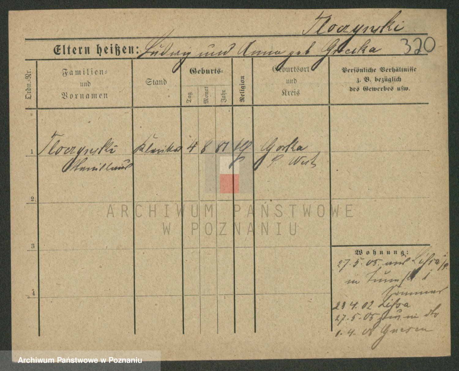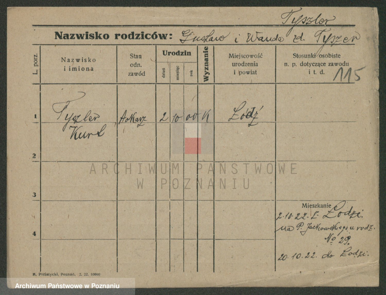 Podgląd karty osobowej dostępny jest po kliknięciu na nazwisko lub ikonkę karty. Można dokonywać powiększenia (ikony na górze) lub przechodzić między kolejnymi skanami (strzałki po bokach).