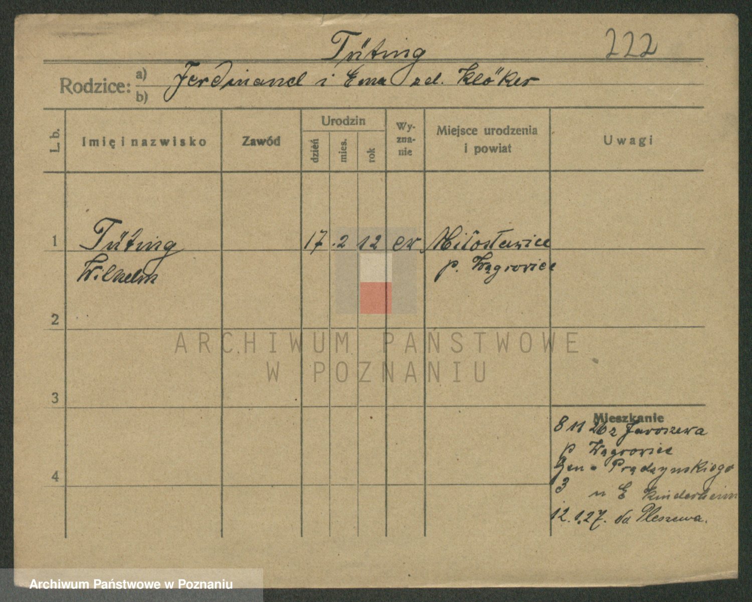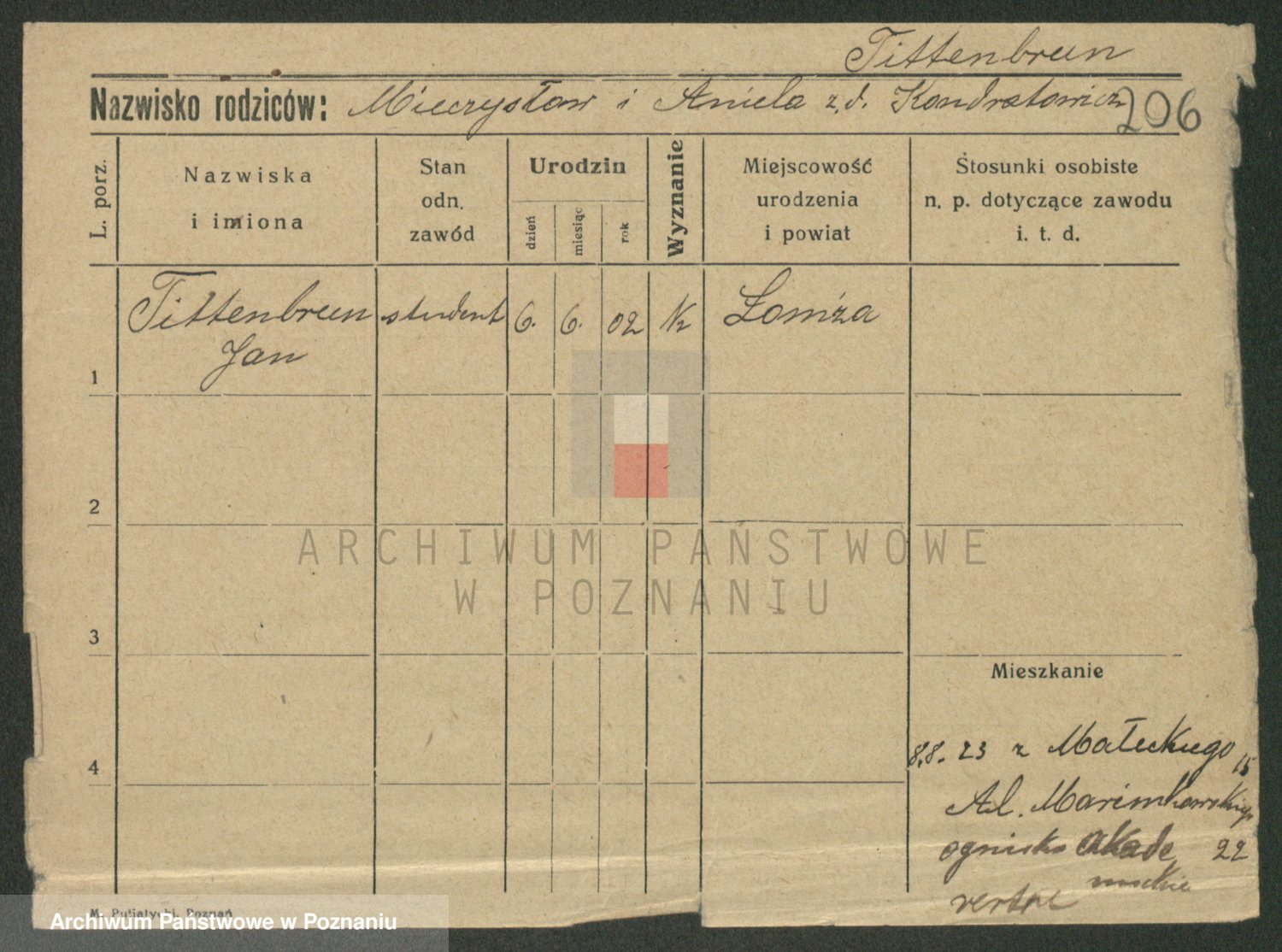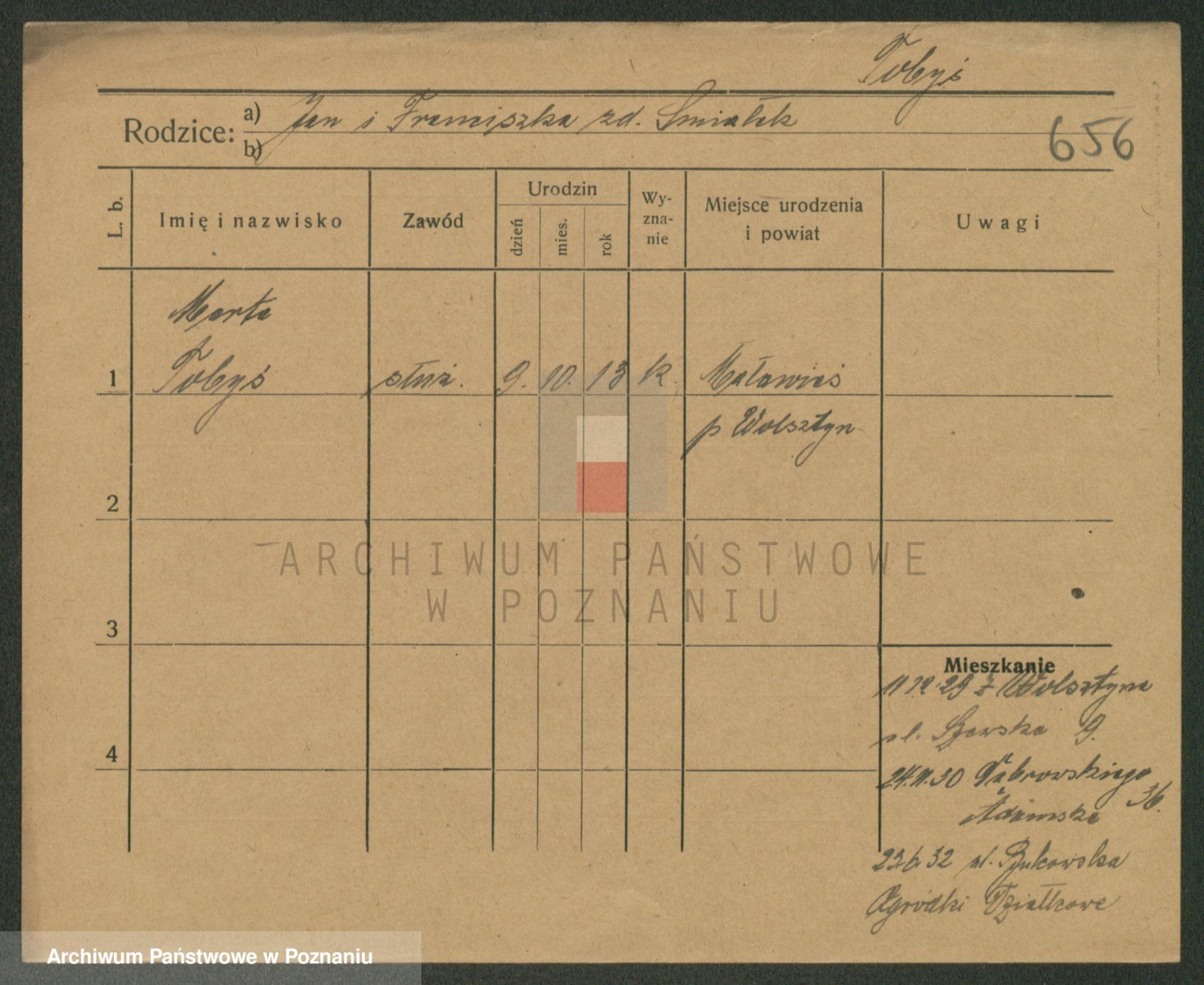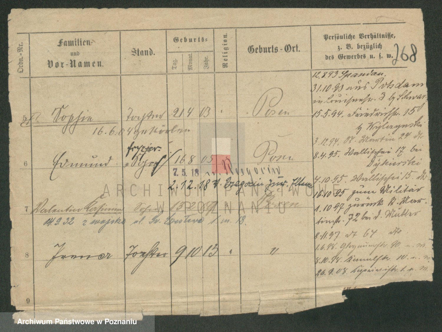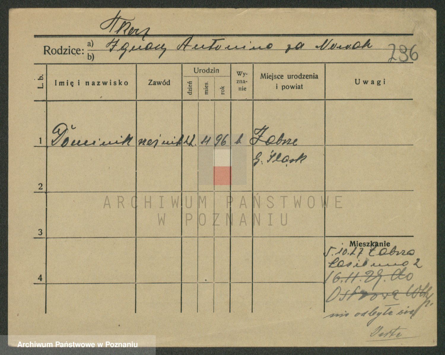Podgląd karty osobowej dostępny jest po kliknięciu na nazwisko lub ikonkę karty. Można dokonywać powiększenia (ikony na górze) lub przechodzić między kolejnymi skanami (strzałki po bokach).