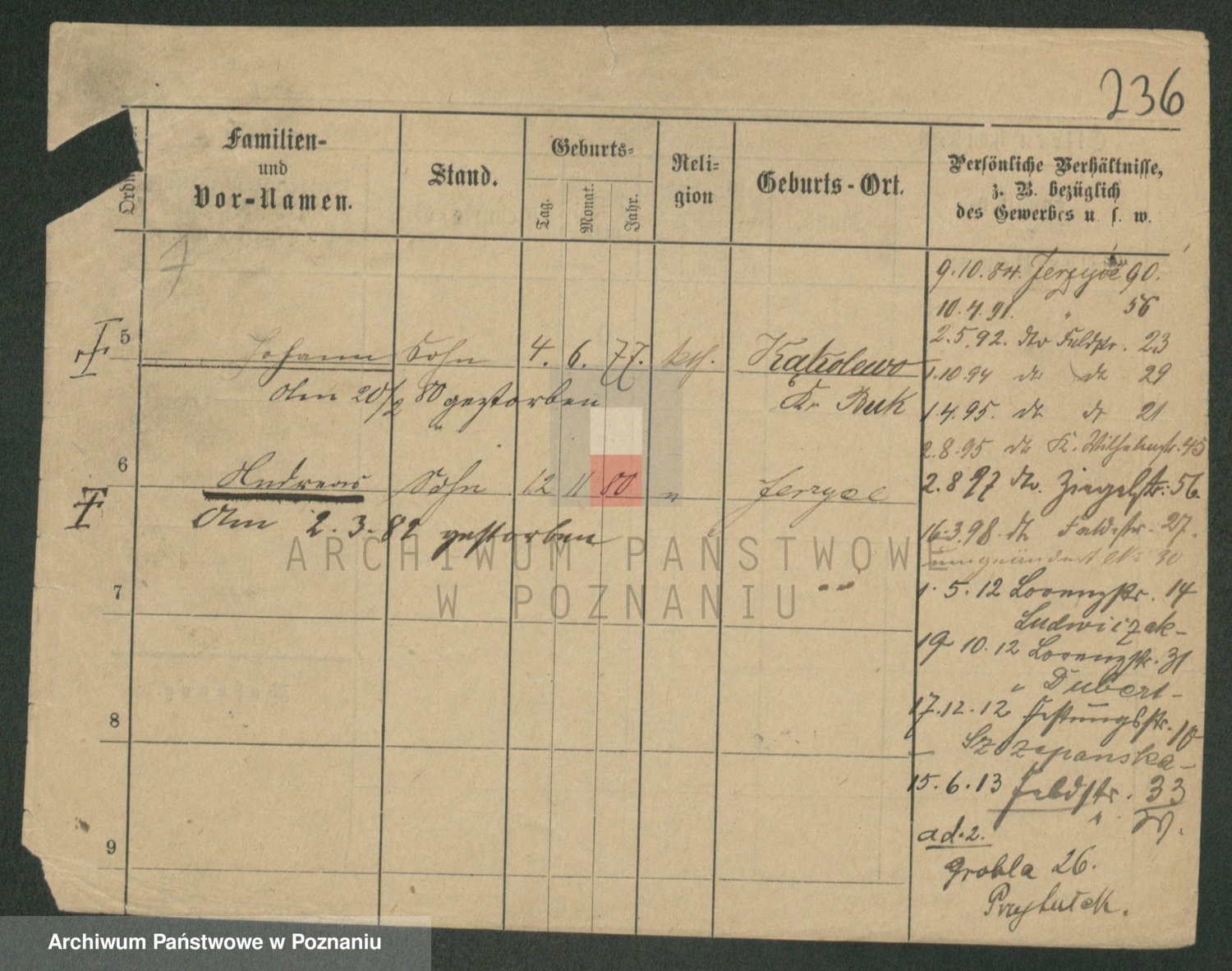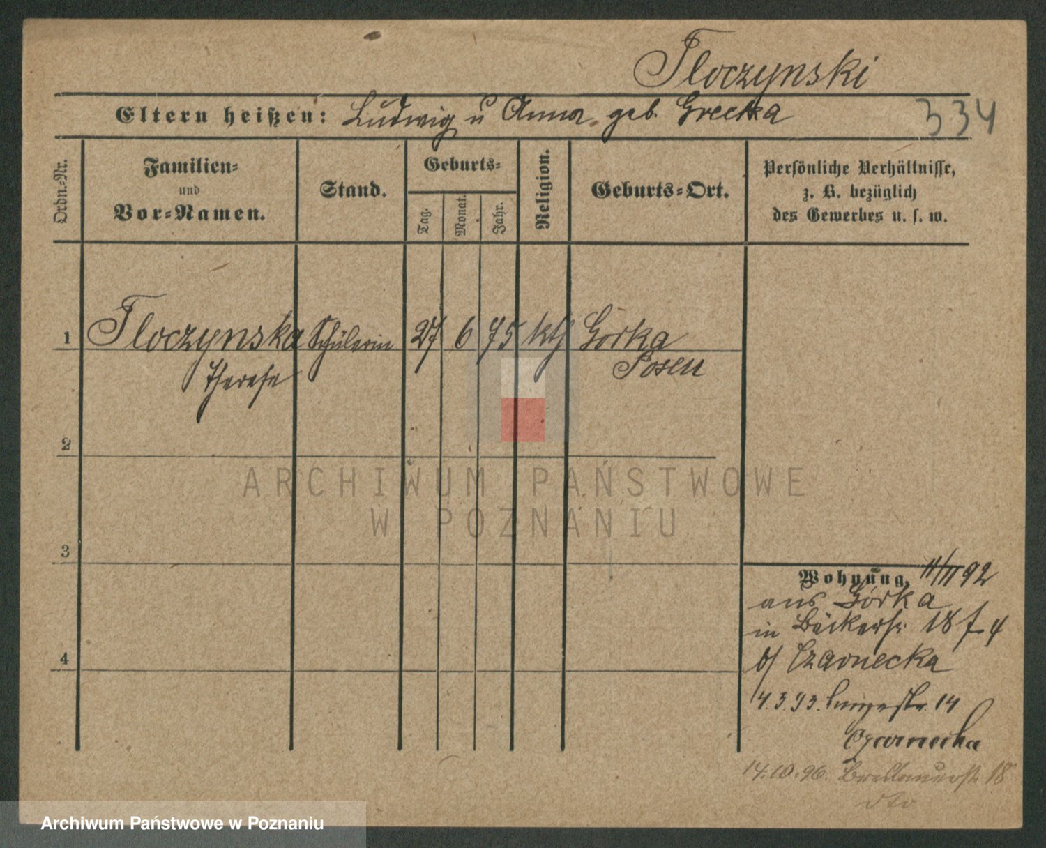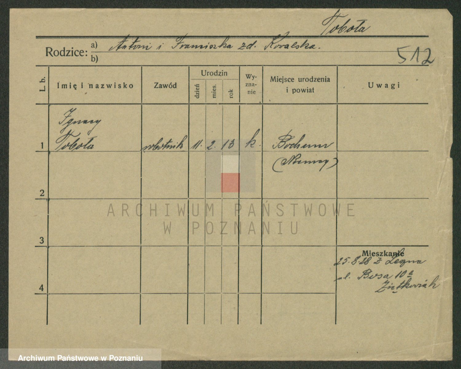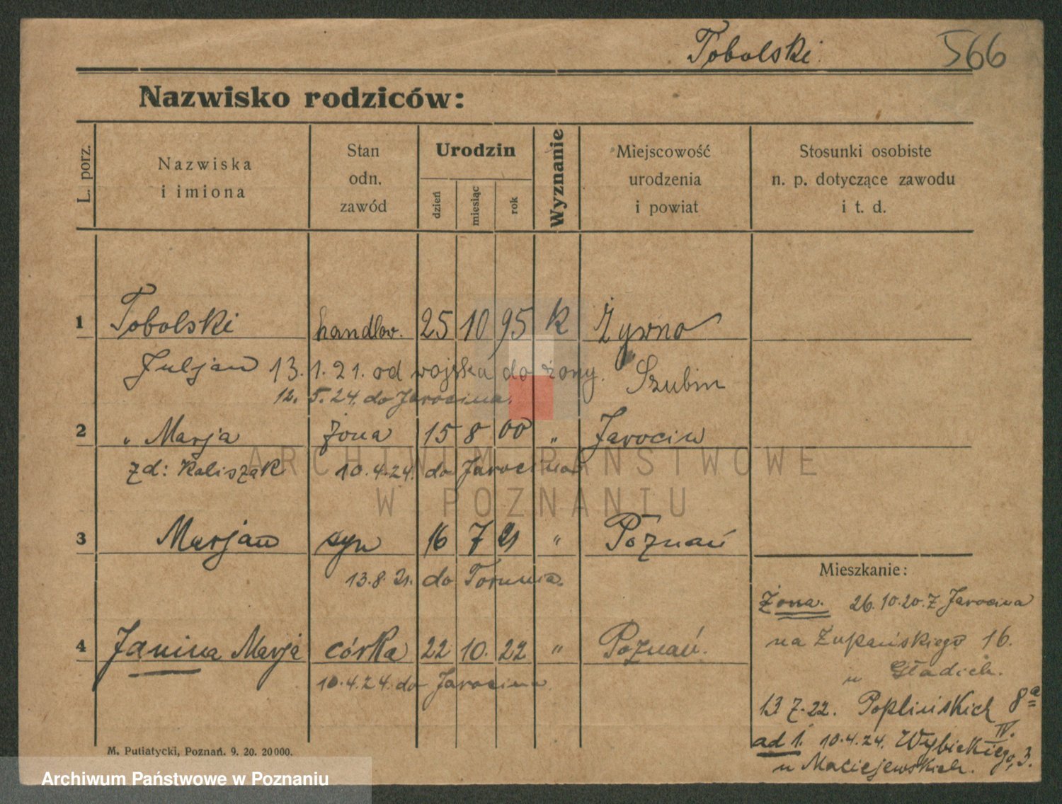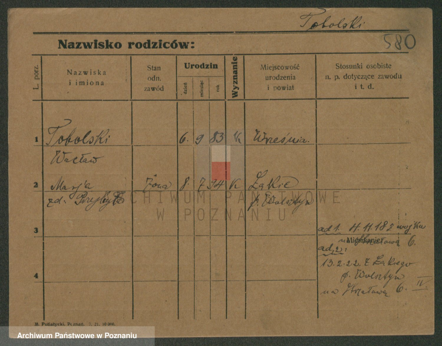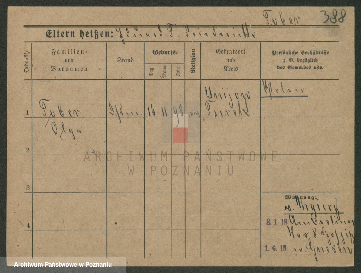 Podgląd karty osobowej dostępny jest po kliknięciu na nazwisko lub ikonkę karty. Można dokonywać powiększenia (ikony na górze) lub przechodzić między kolejnymi skanami (strzałki po bokach).