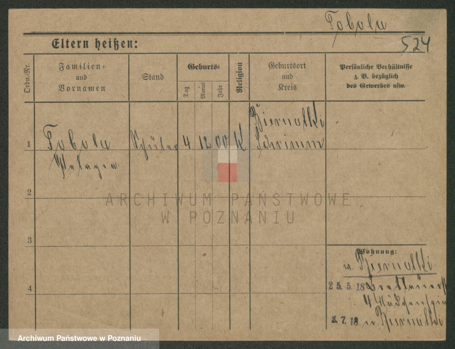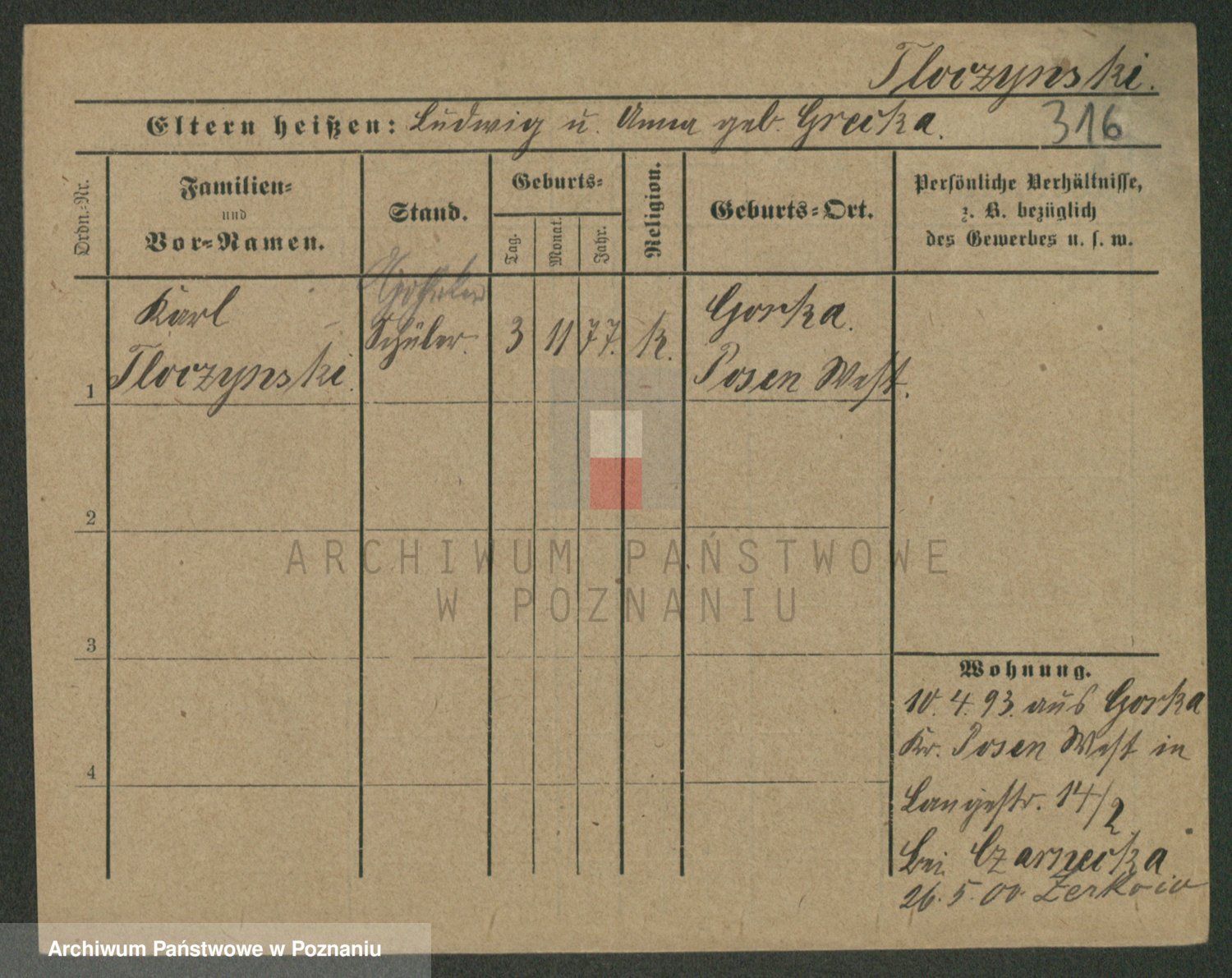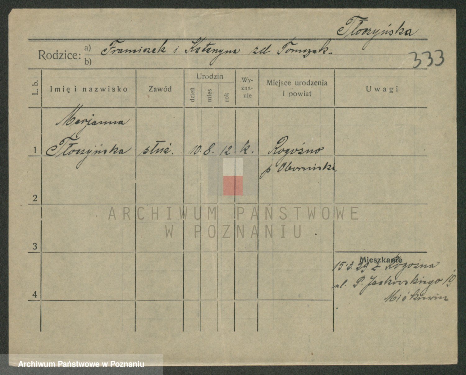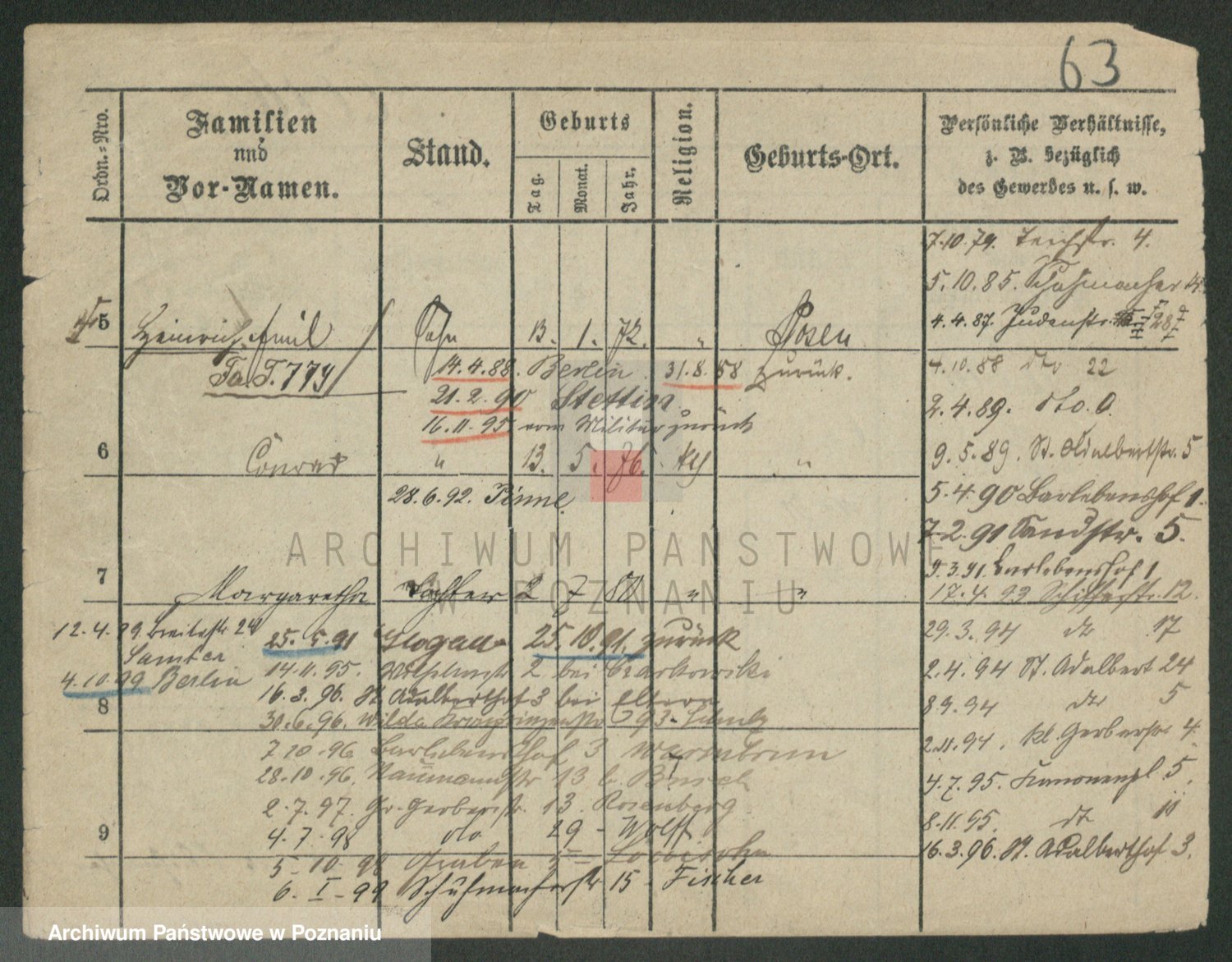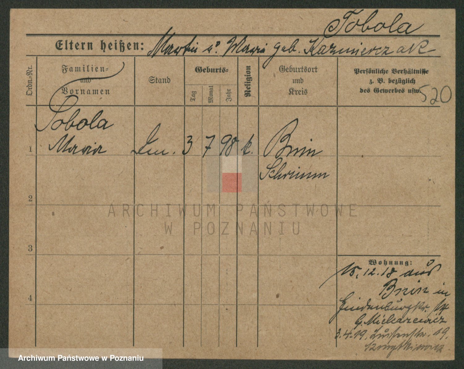 Podgląd karty osobowej dostępny jest po kliknięciu na nazwisko lub ikonkę karty. Można dokonywać powiększenia (ikony na górze) lub przechodzić między kolejnymi skanami (strzałki po bokach).