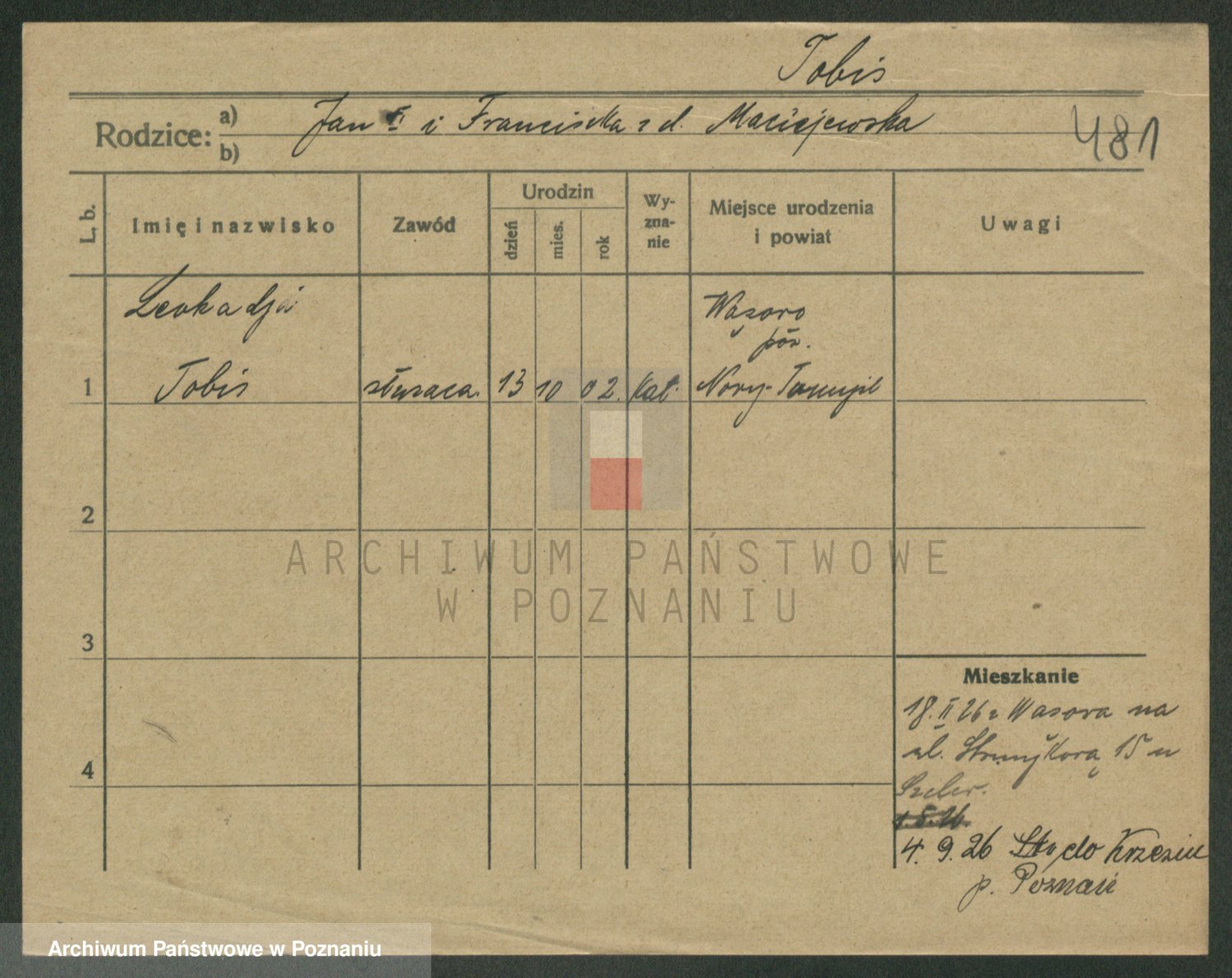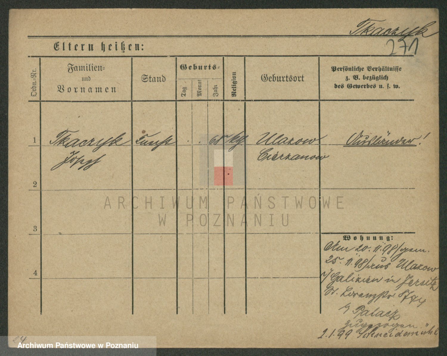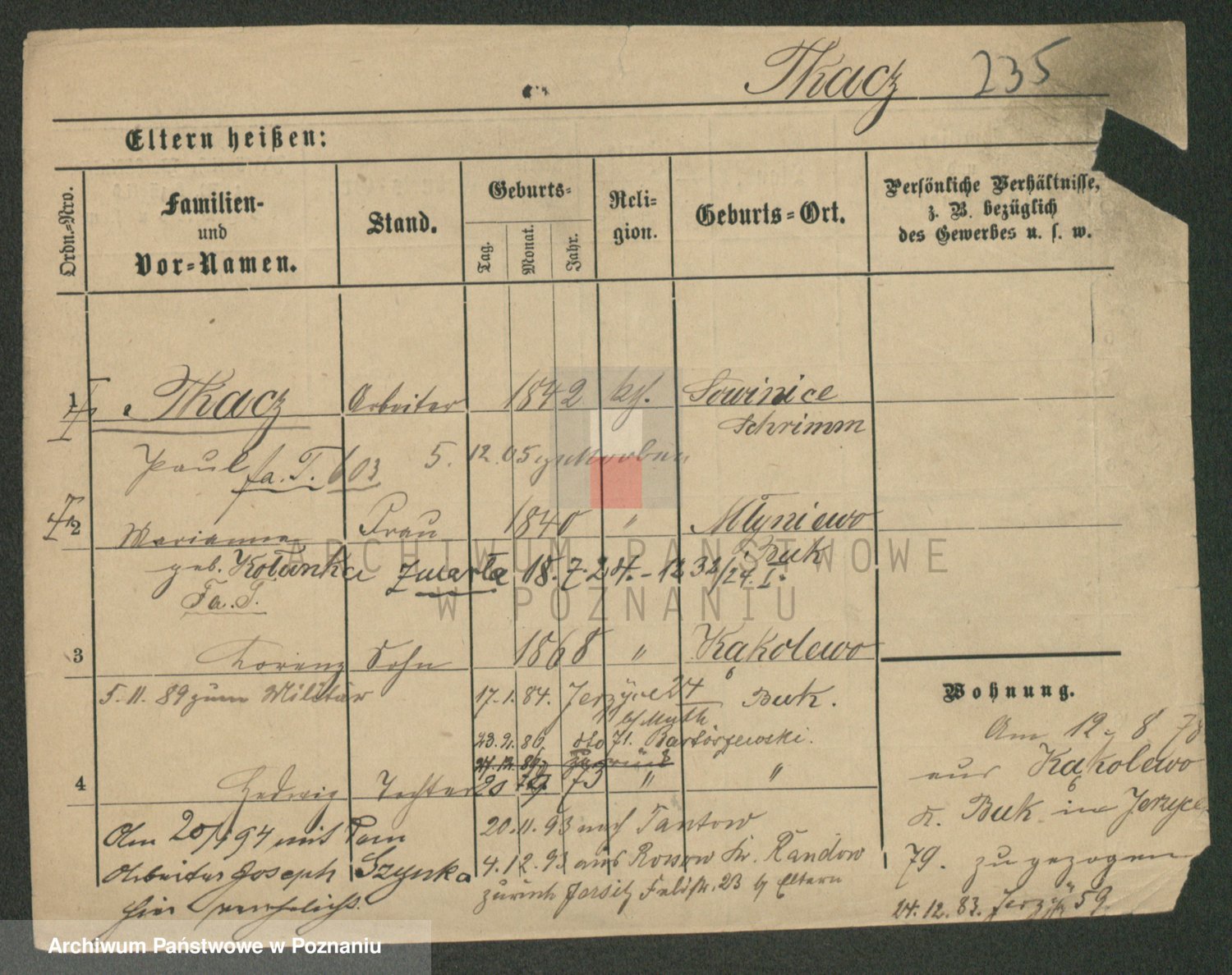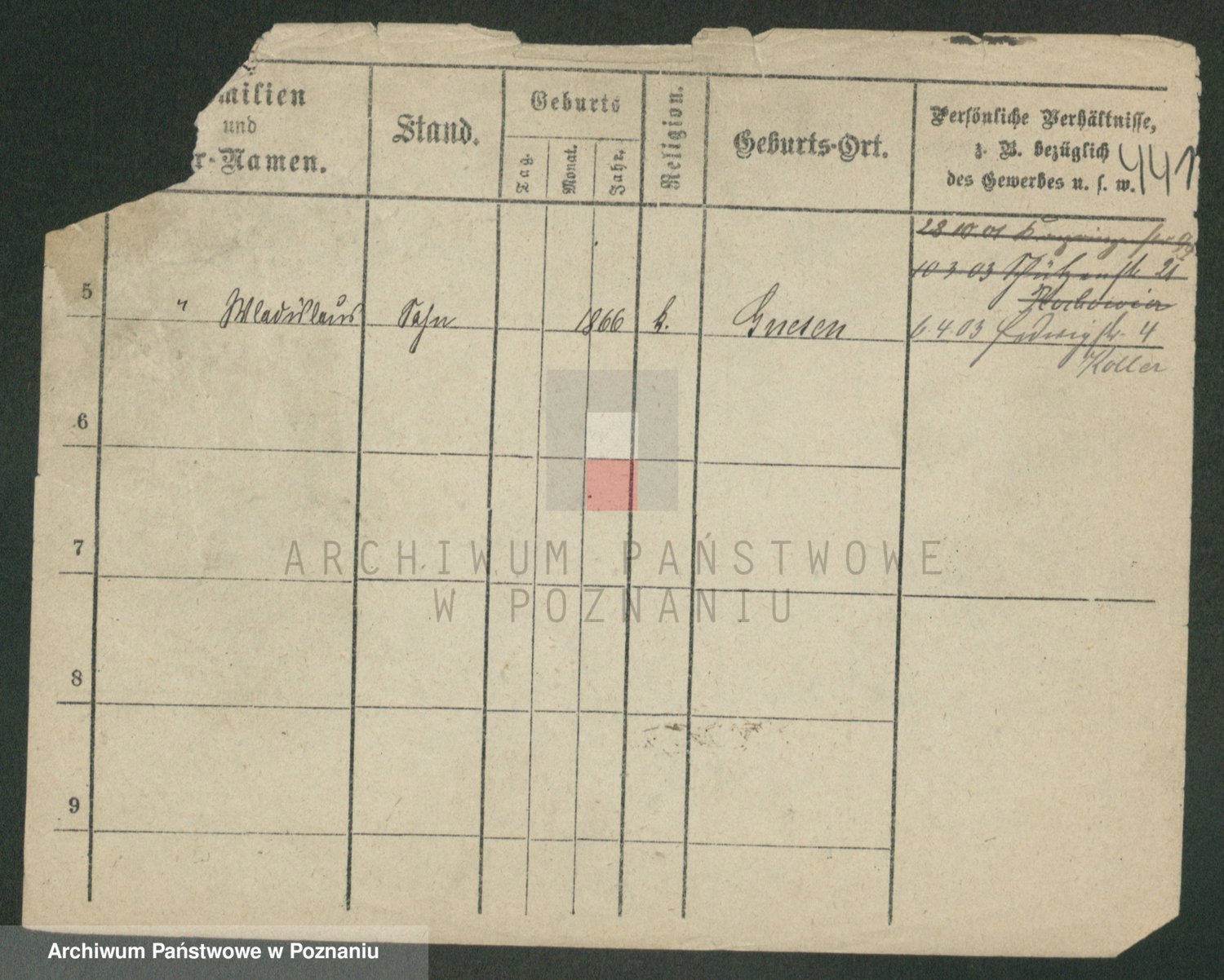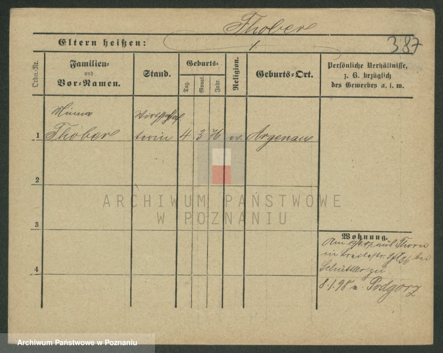 Podgląd karty osobowej dostępny jest po kliknięciu na nazwisko lub ikonkę karty. Można dokonywać powiększenia (ikony na górze) lub przechodzić między kolejnymi skanami (strzałki po bokach).