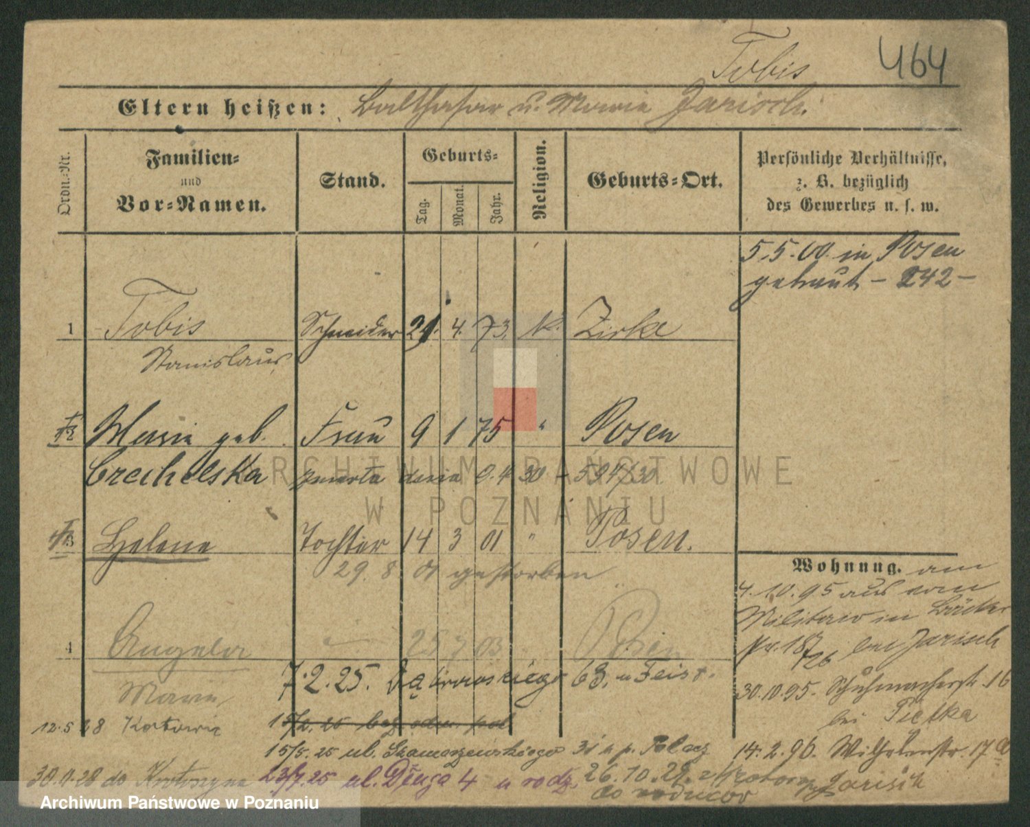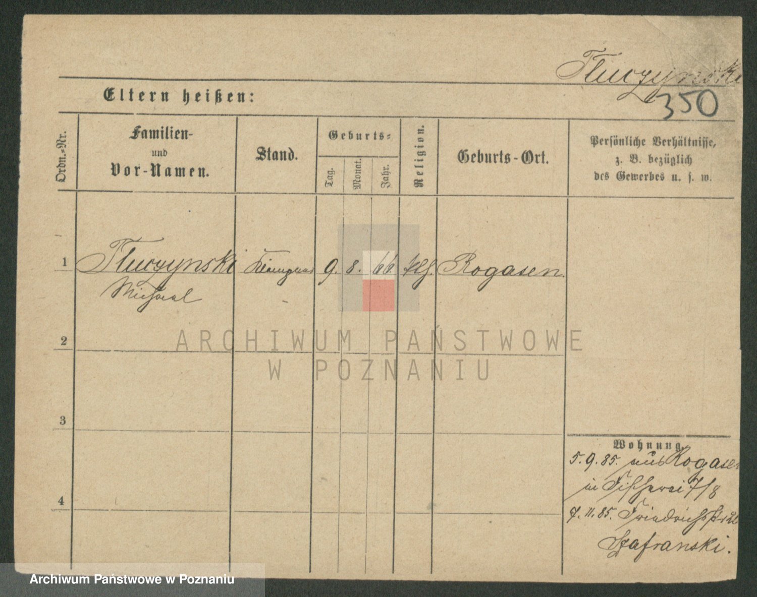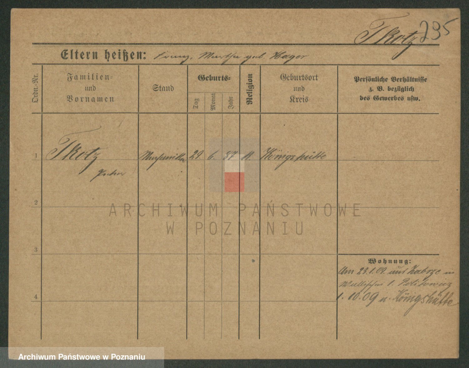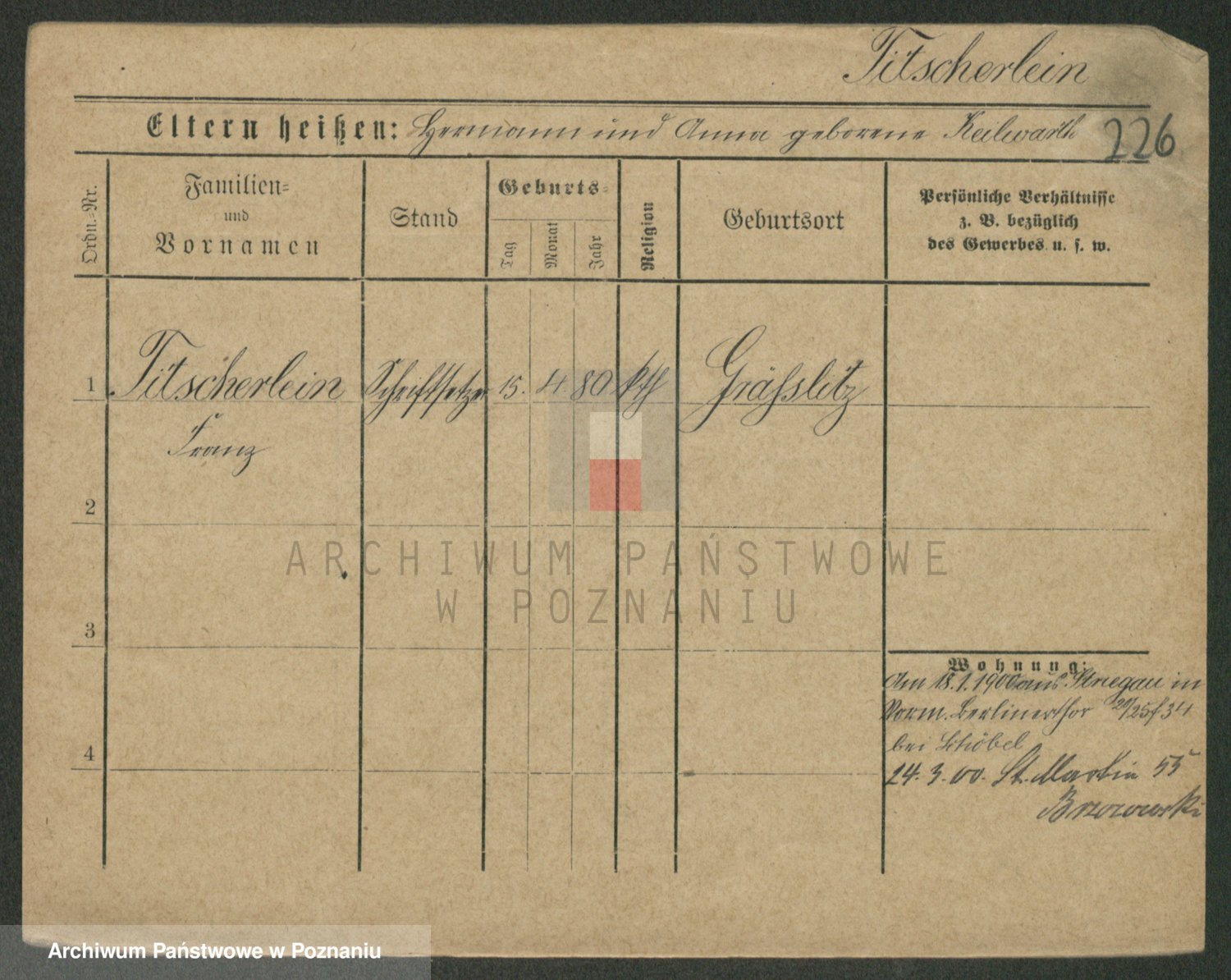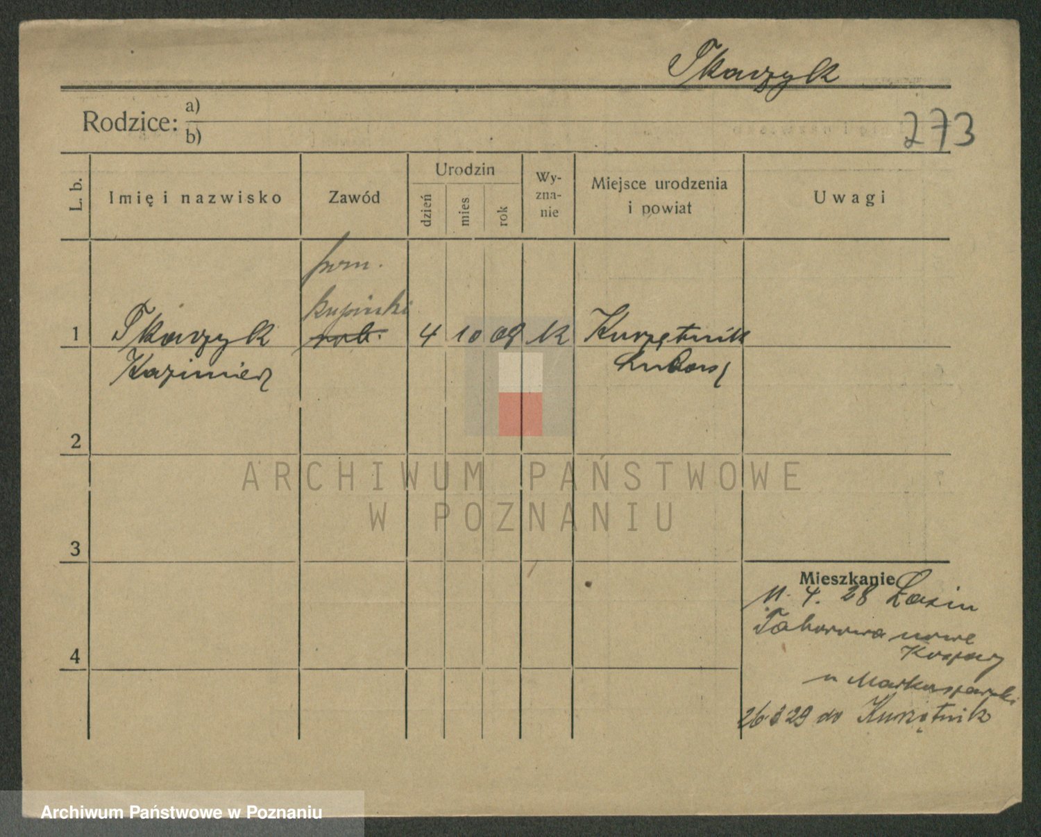 Podgląd karty osobowej dostępny jest po kliknięciu na nazwisko lub ikonkę karty. Można dokonywać powiększenia (ikony na górze) lub przechodzić między kolejnymi skanami (strzałki po bokach).