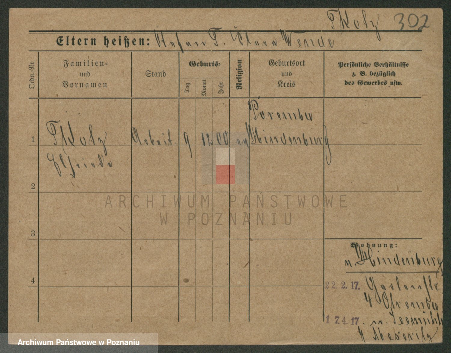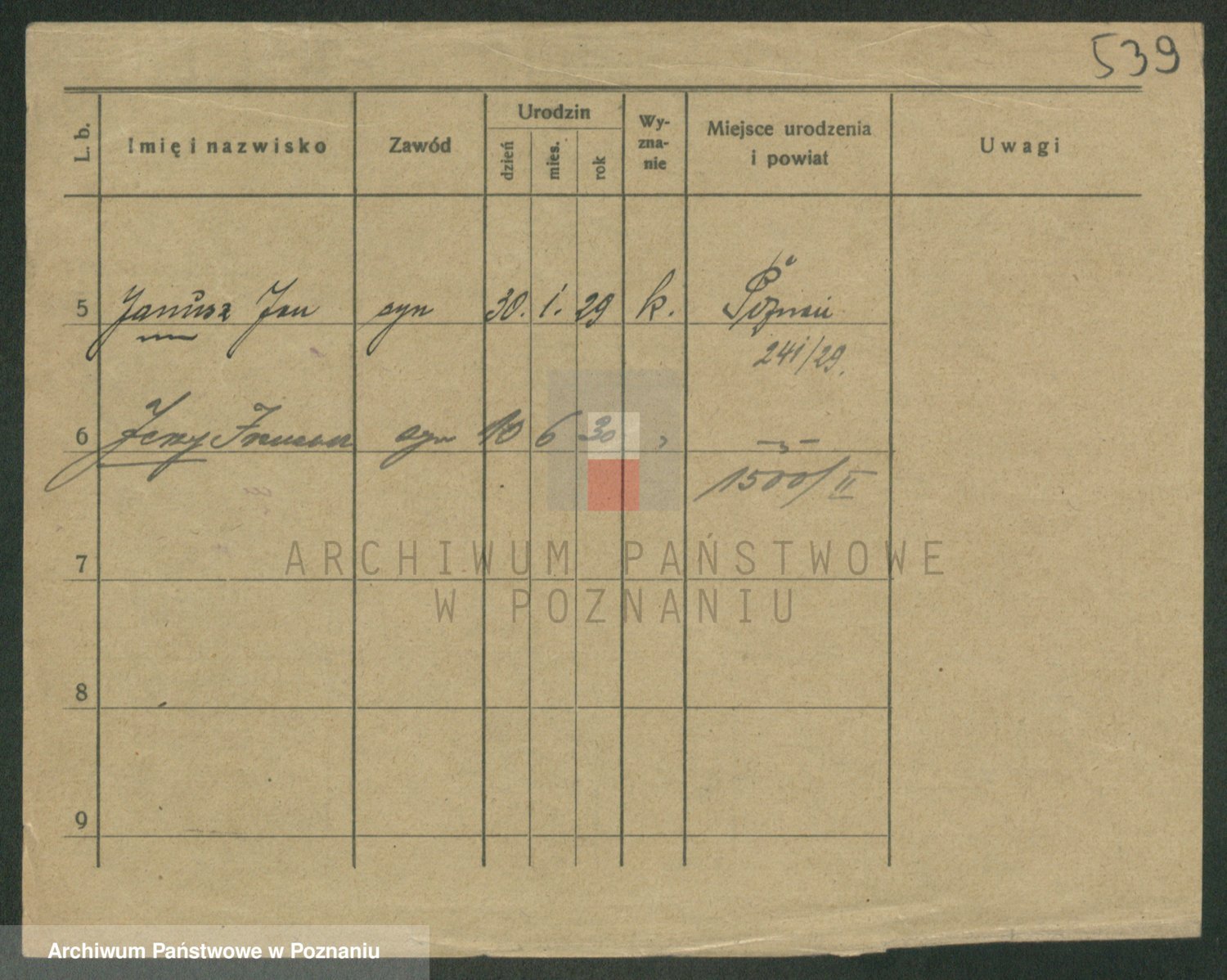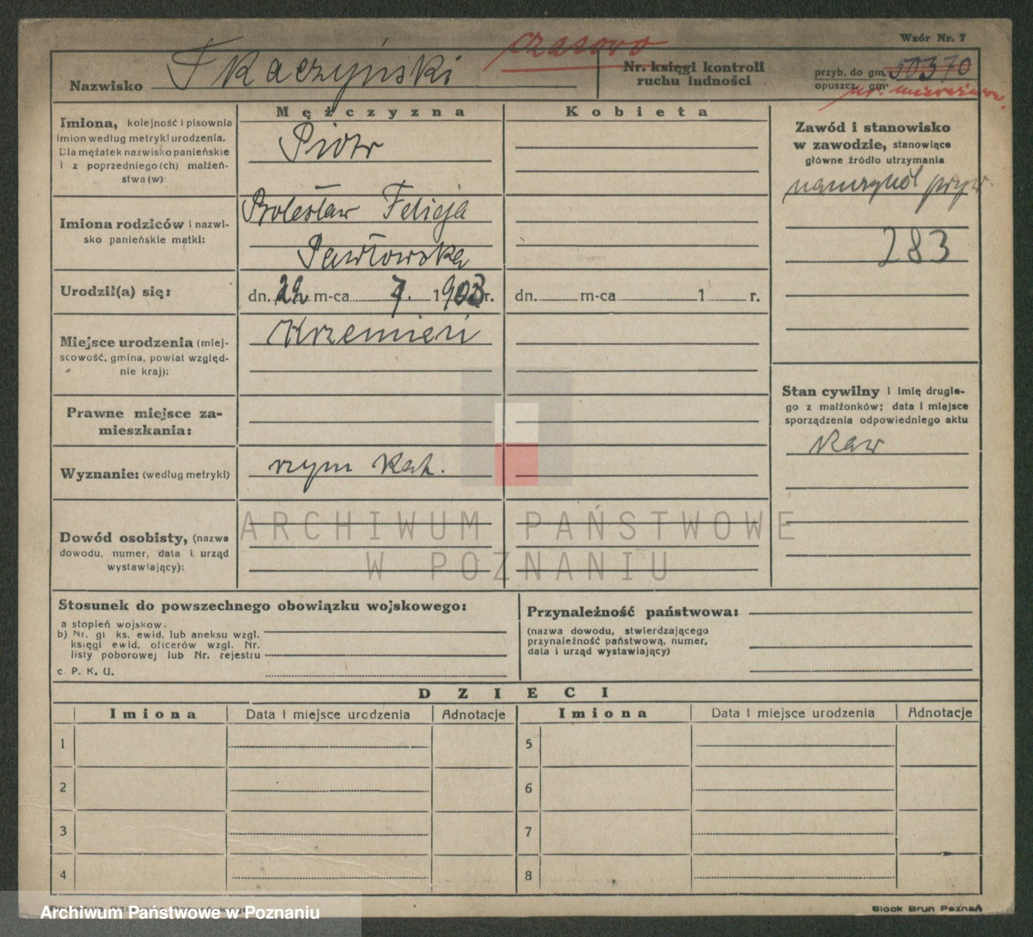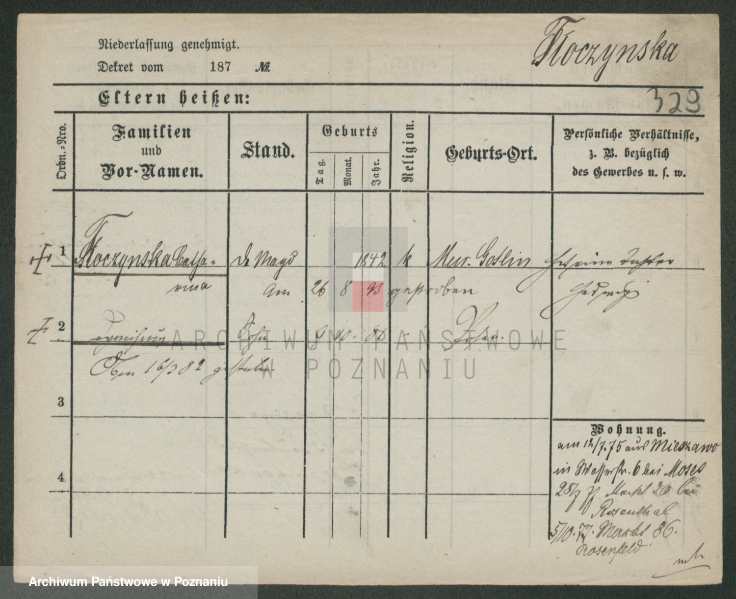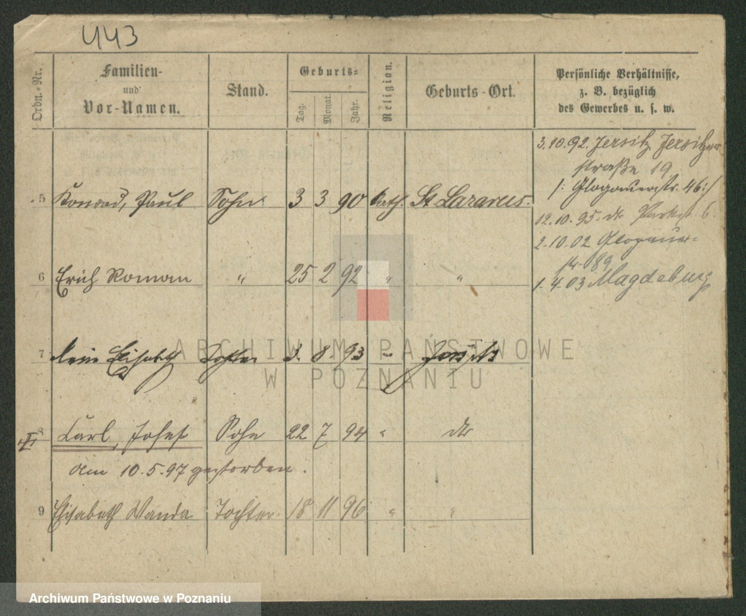Podgląd karty osobowej dostępny jest po kliknięciu na nazwisko lub ikonkę karty. Można dokonywać powiększenia (ikony na górze) lub przechodzić między kolejnymi skanami (strzałki po bokach).