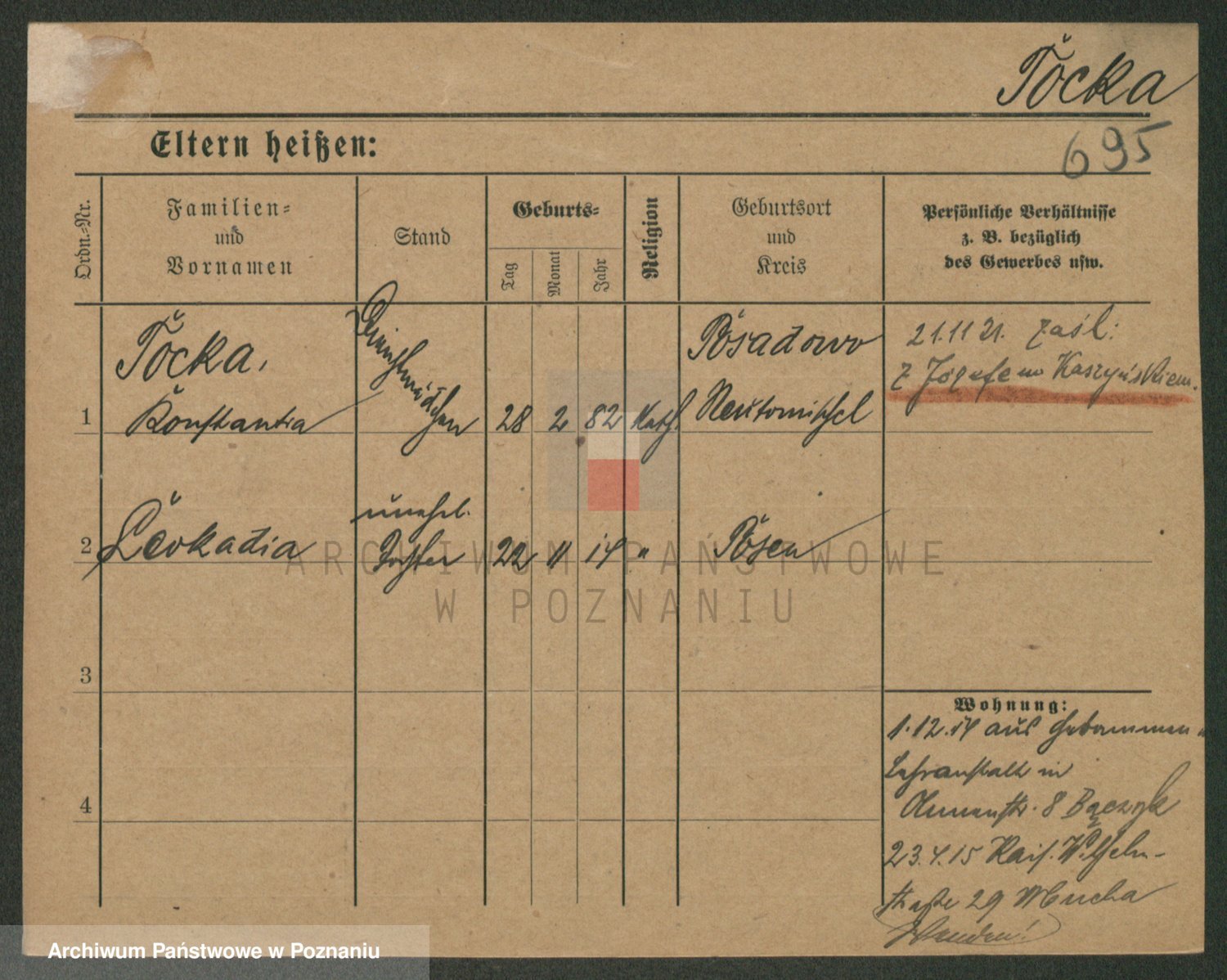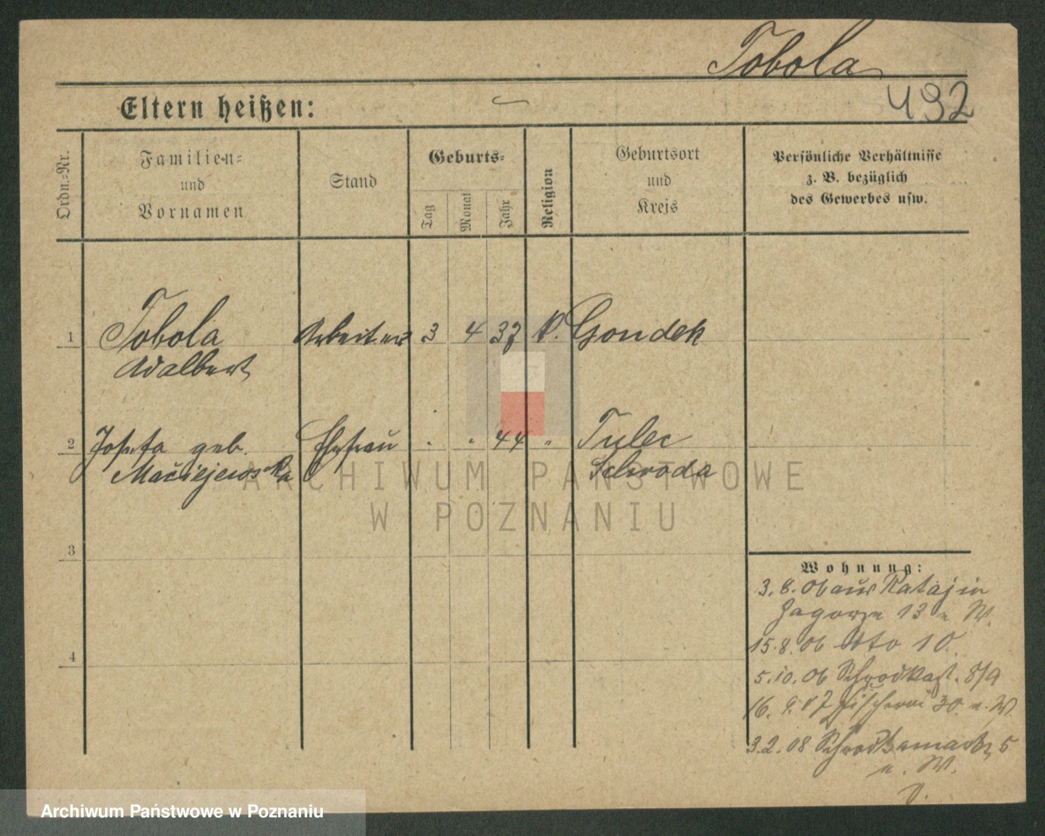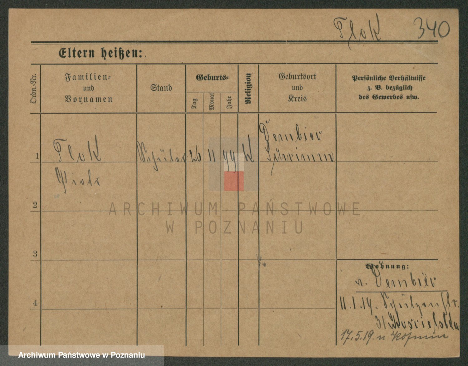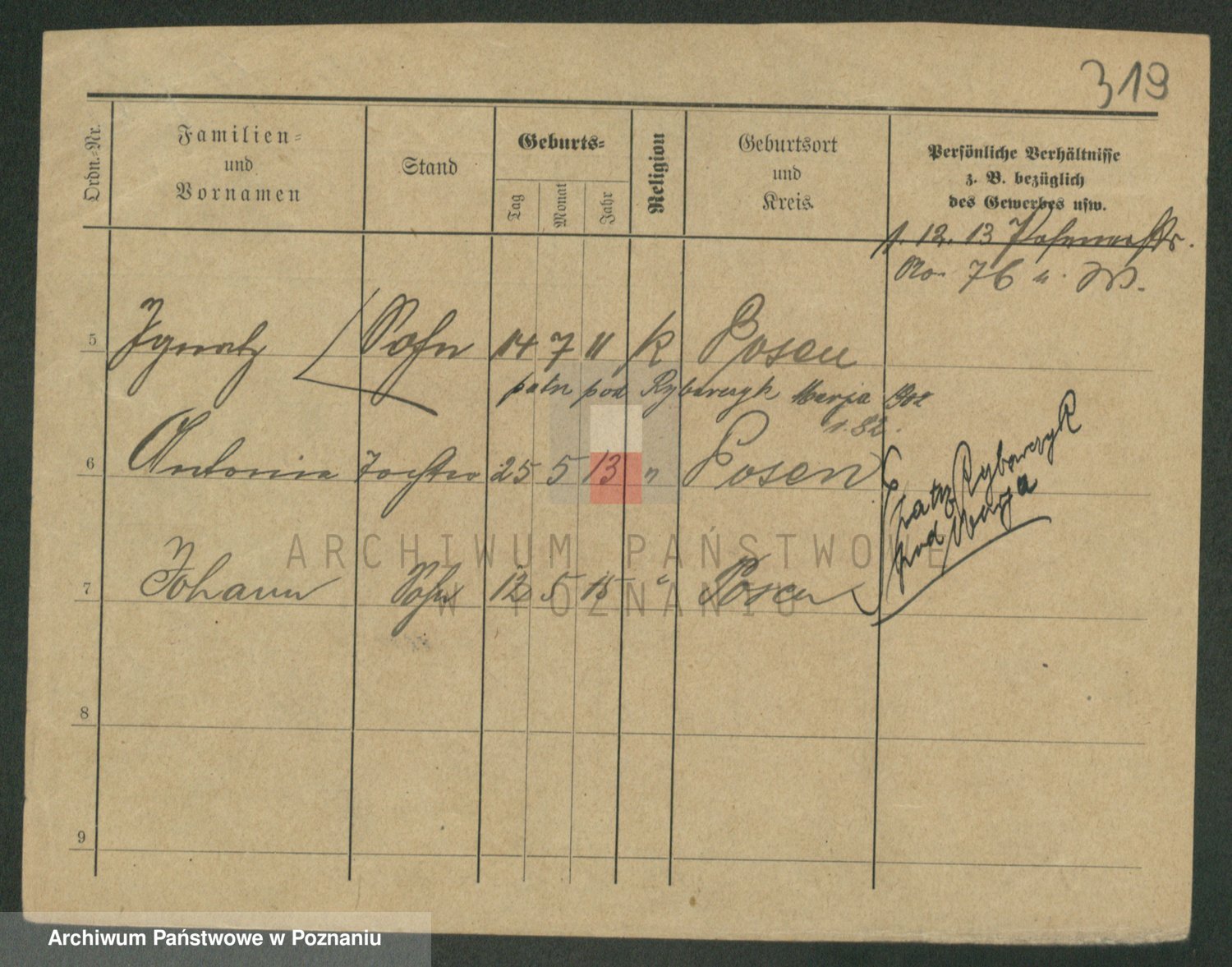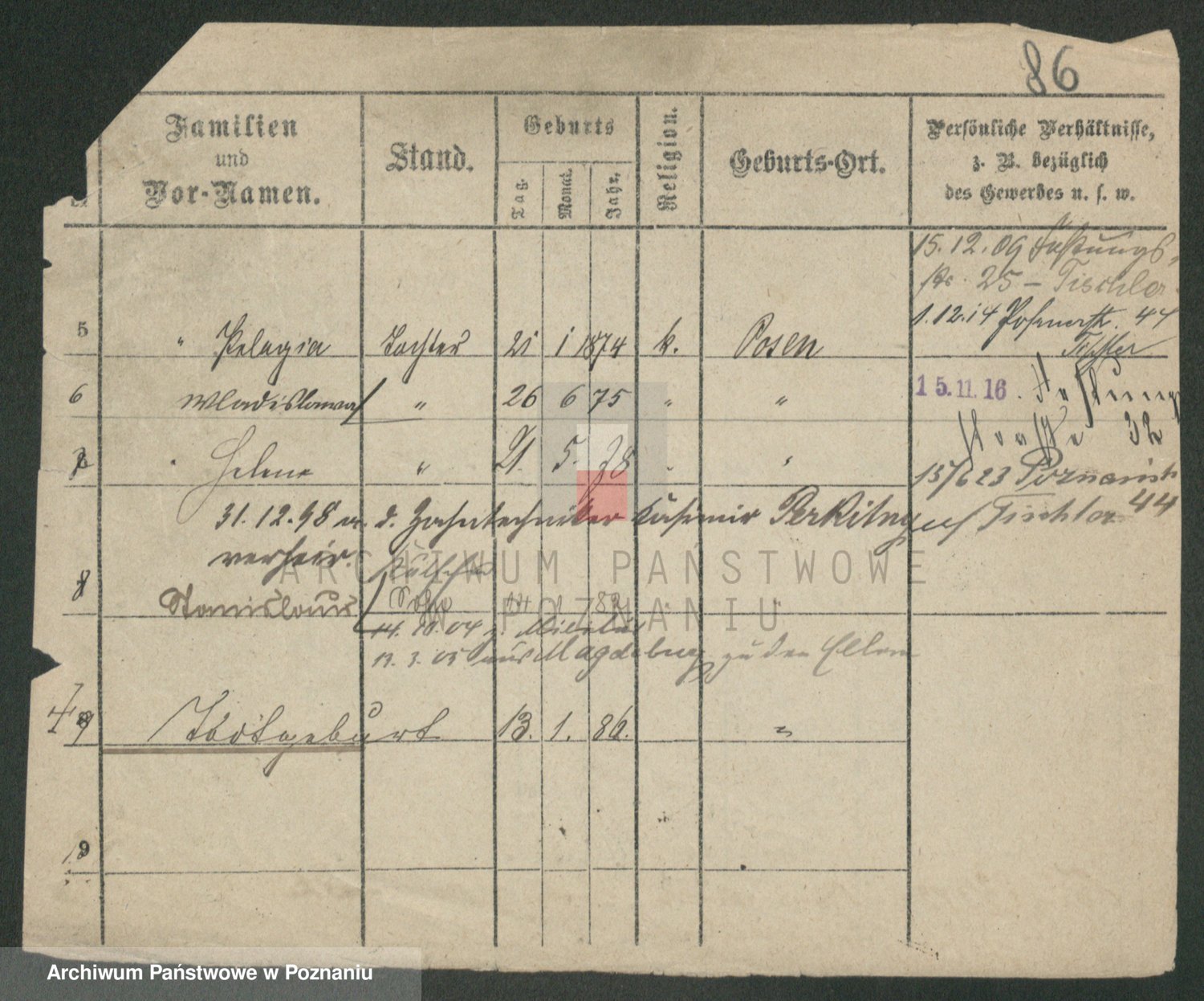 Podgląd karty osobowej dostępny jest po kliknięciu na nazwisko lub ikonkę karty. Można dokonywać powiększenia (ikony na górze) lub przechodzić między kolejnymi skanami (strzałki po bokach).