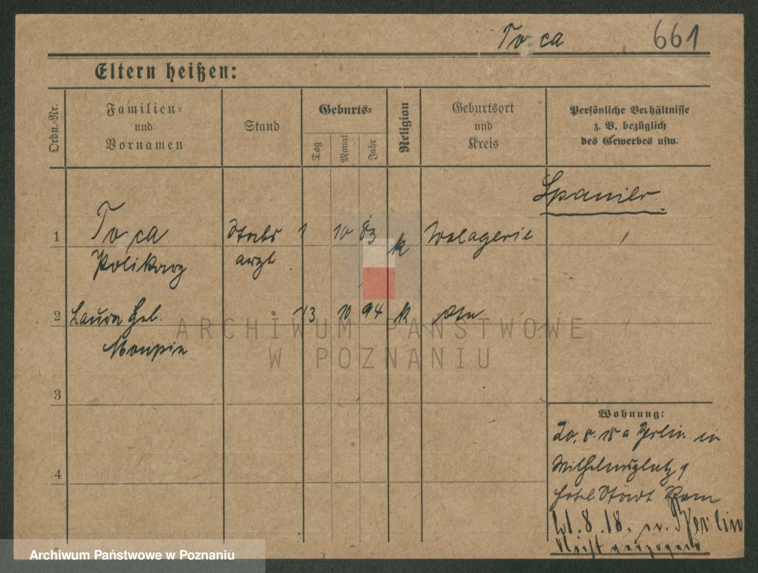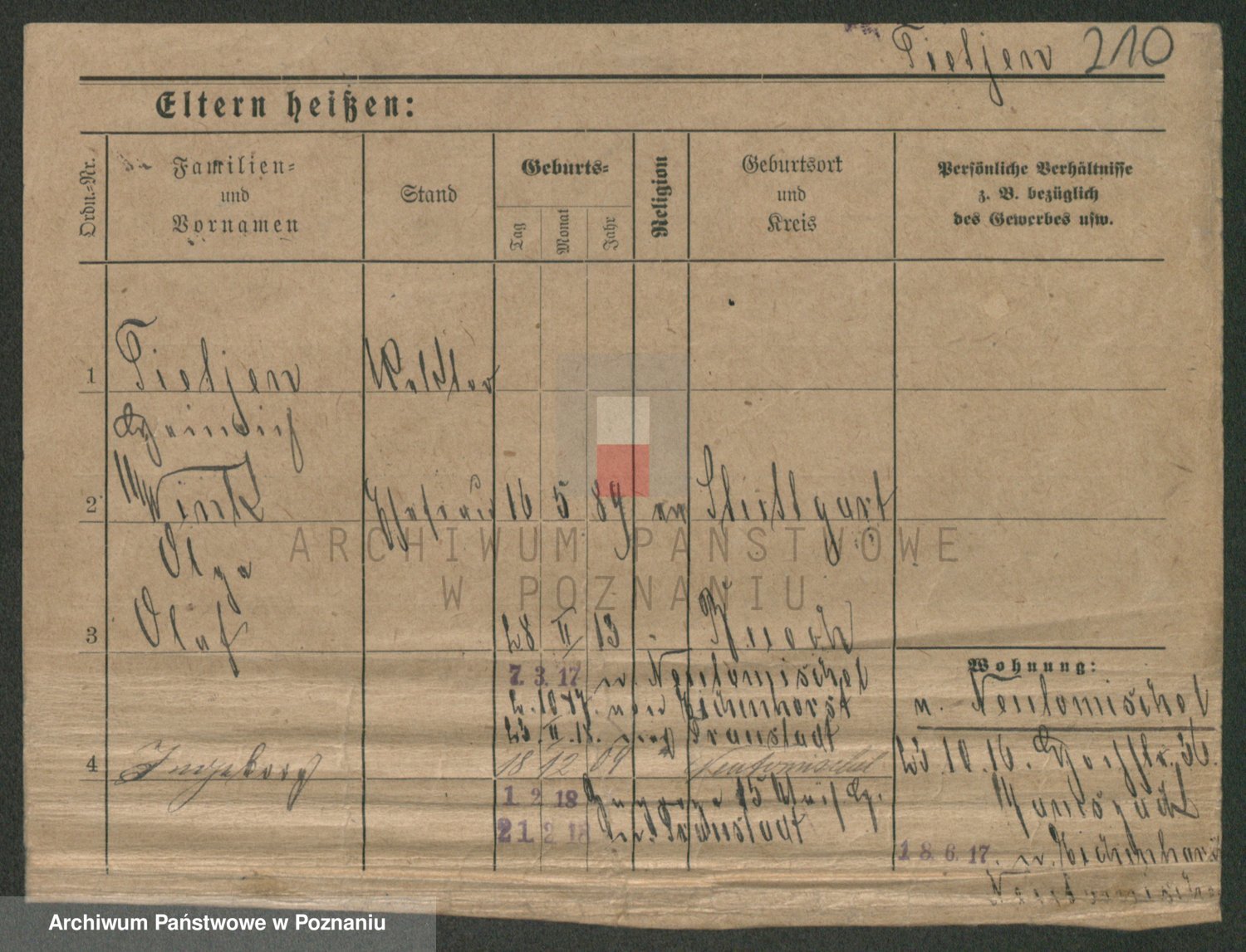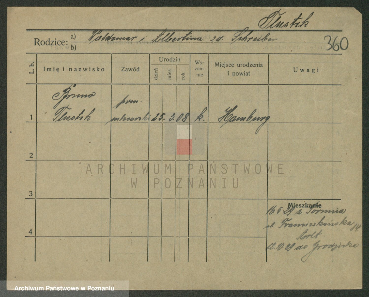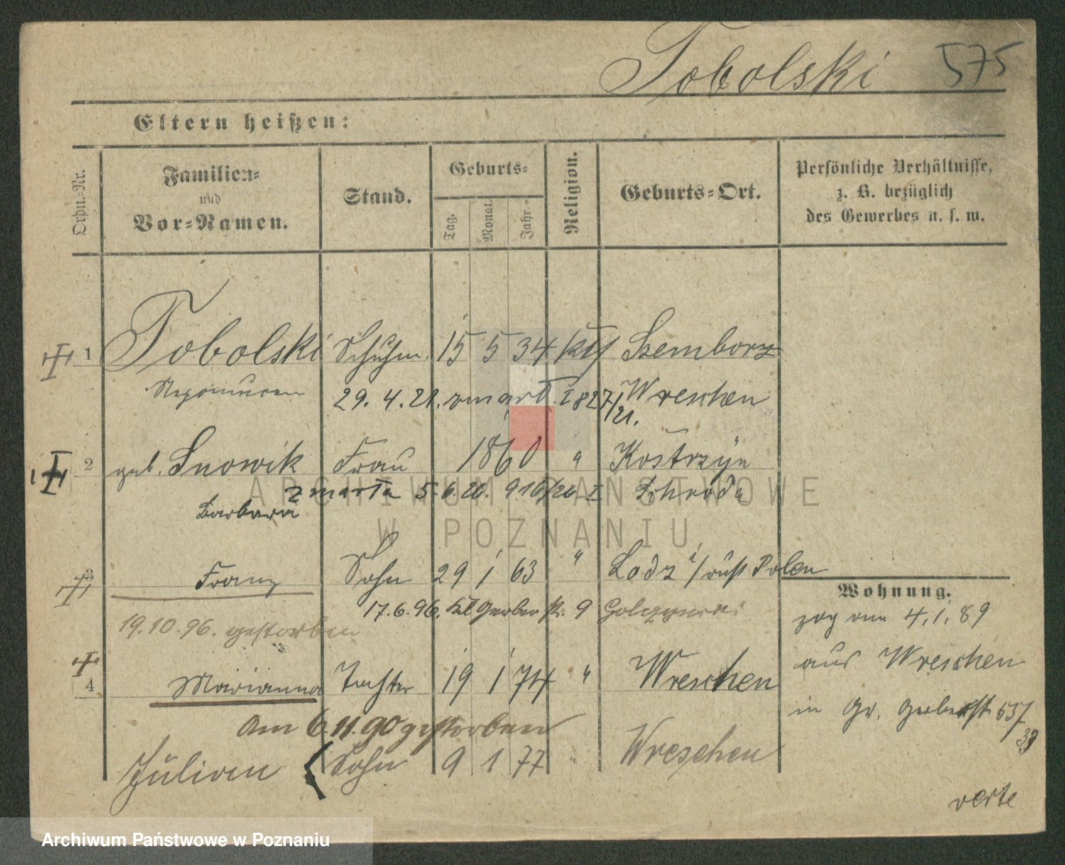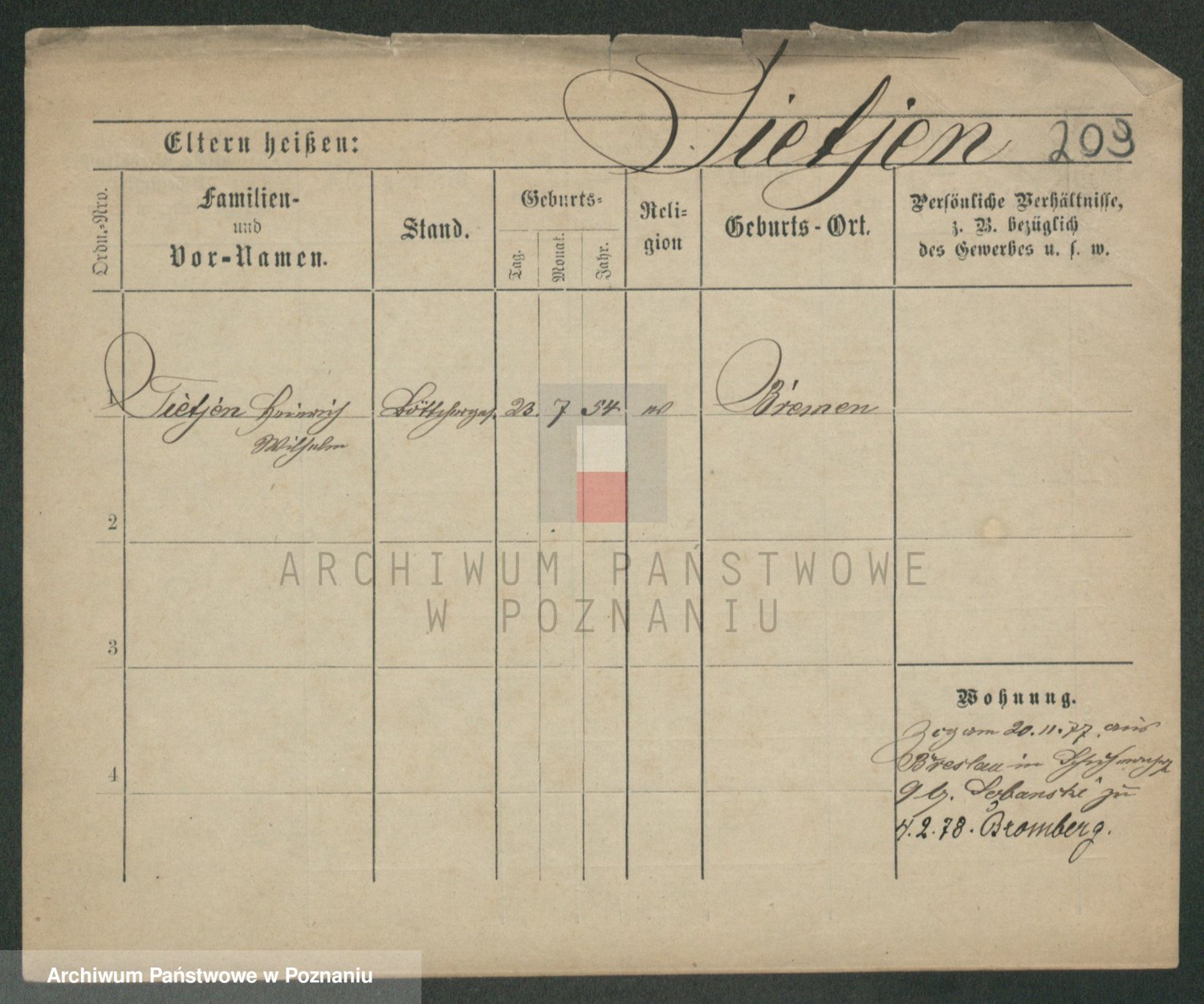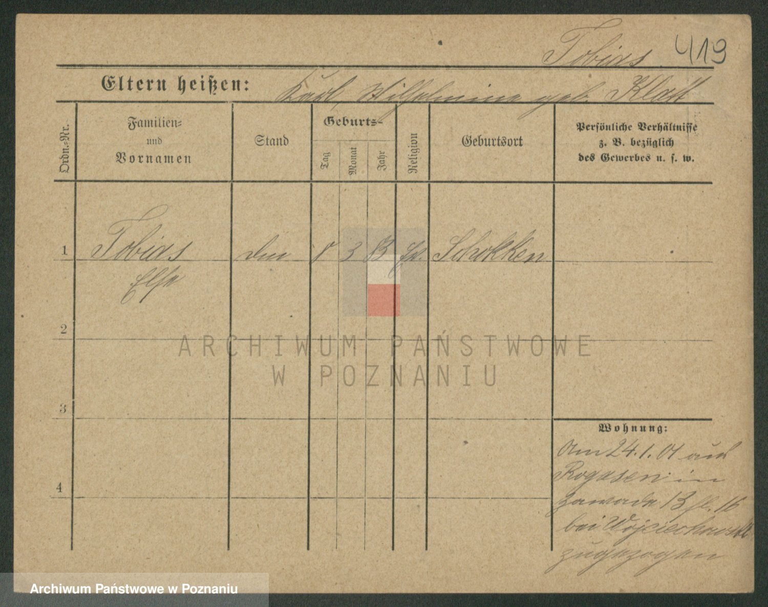 Podgląd karty osobowej dostępny jest po kliknięciu na nazwisko lub ikonkę karty. Można dokonywać powiększenia (ikony na górze) lub przechodzić między kolejnymi skanami (strzałki po bokach).