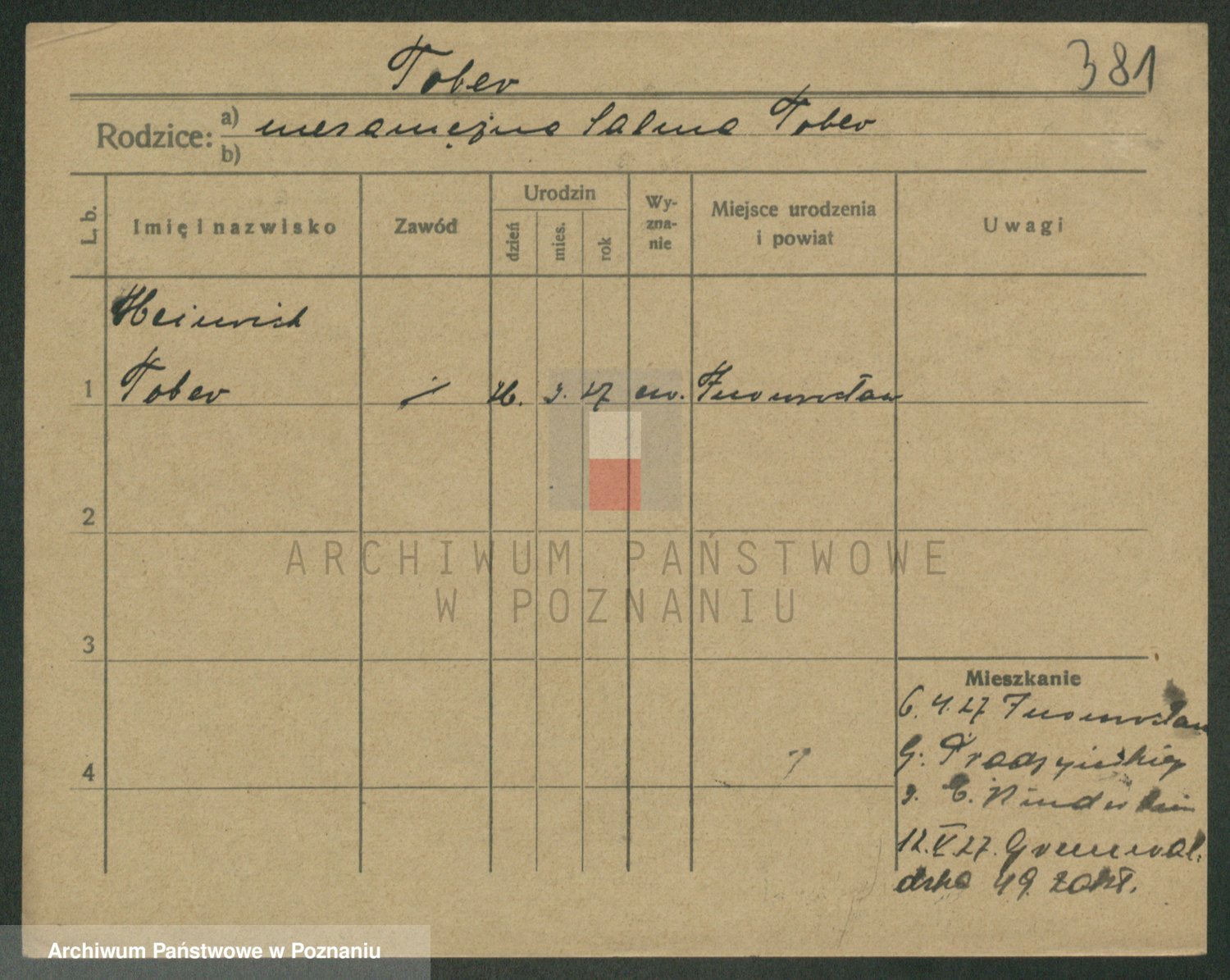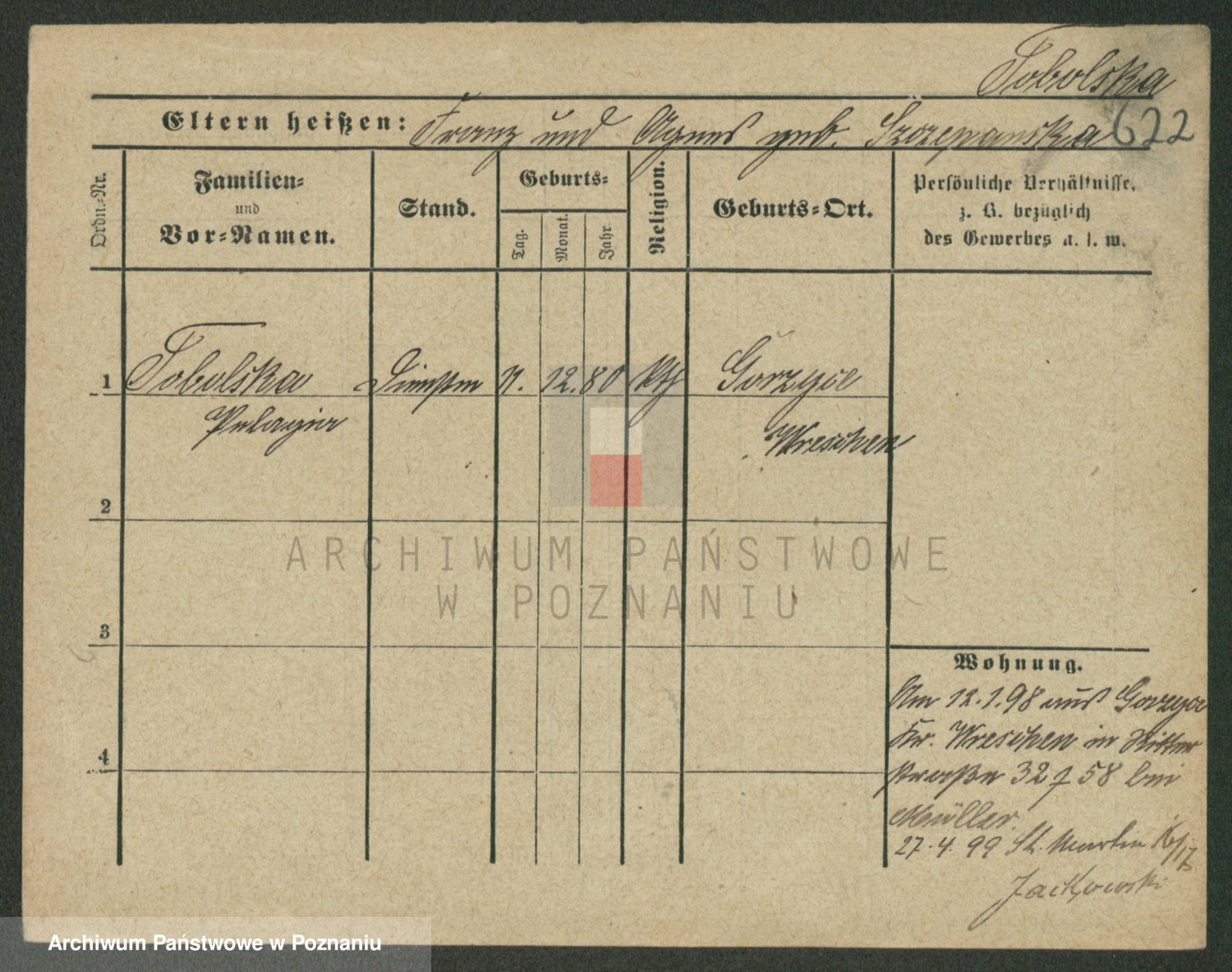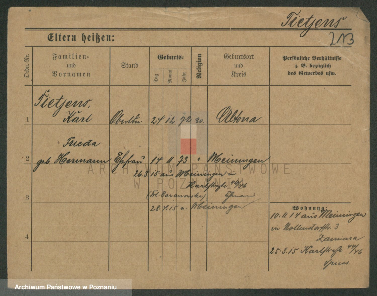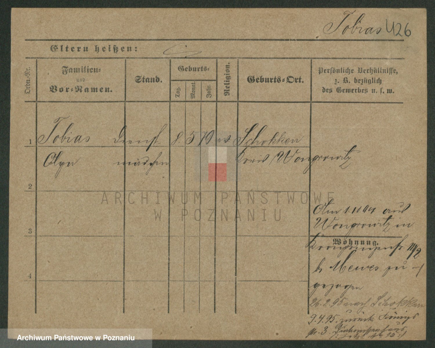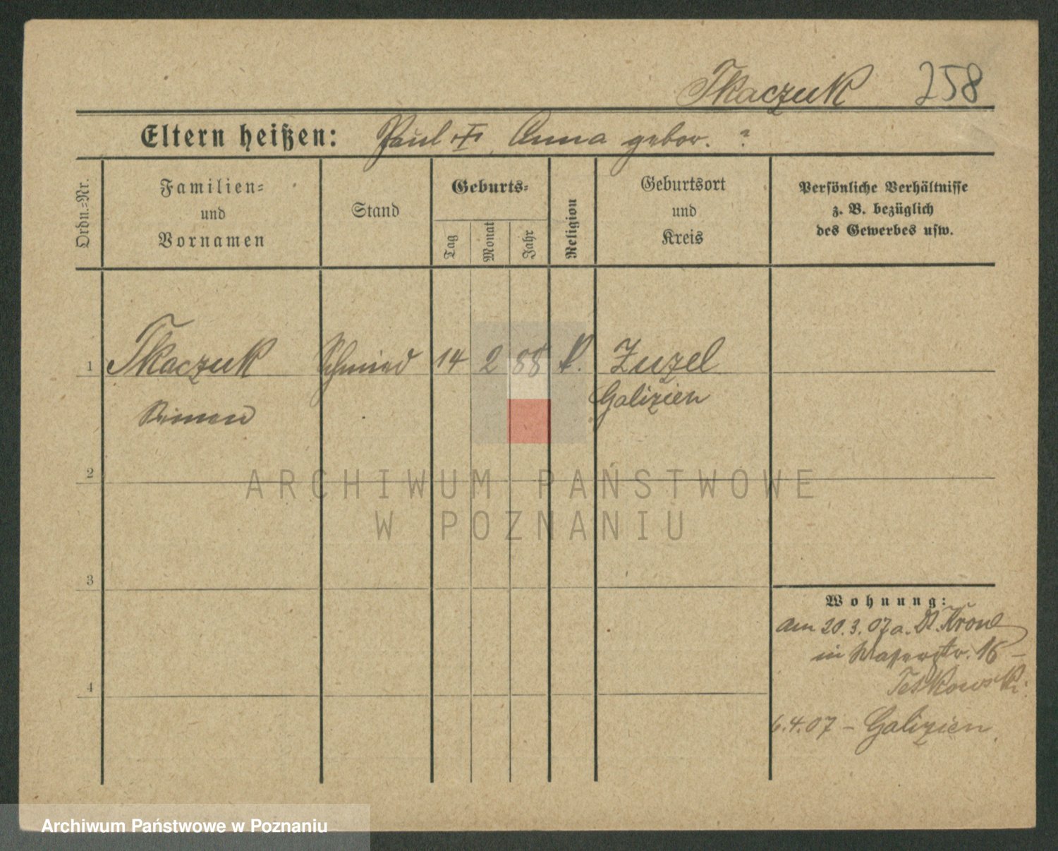 Podgląd karty osobowej dostępny jest po kliknięciu na nazwisko lub ikonkę karty. Można dokonywać powiększenia (ikony na górze) lub przechodzić między kolejnymi skanami (strzałki po bokach).