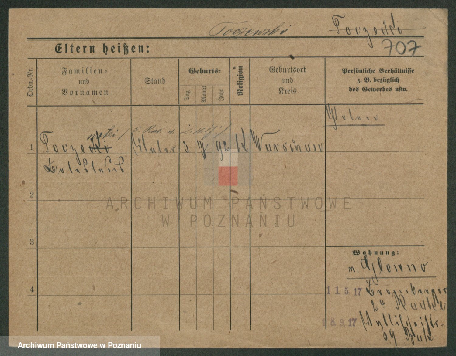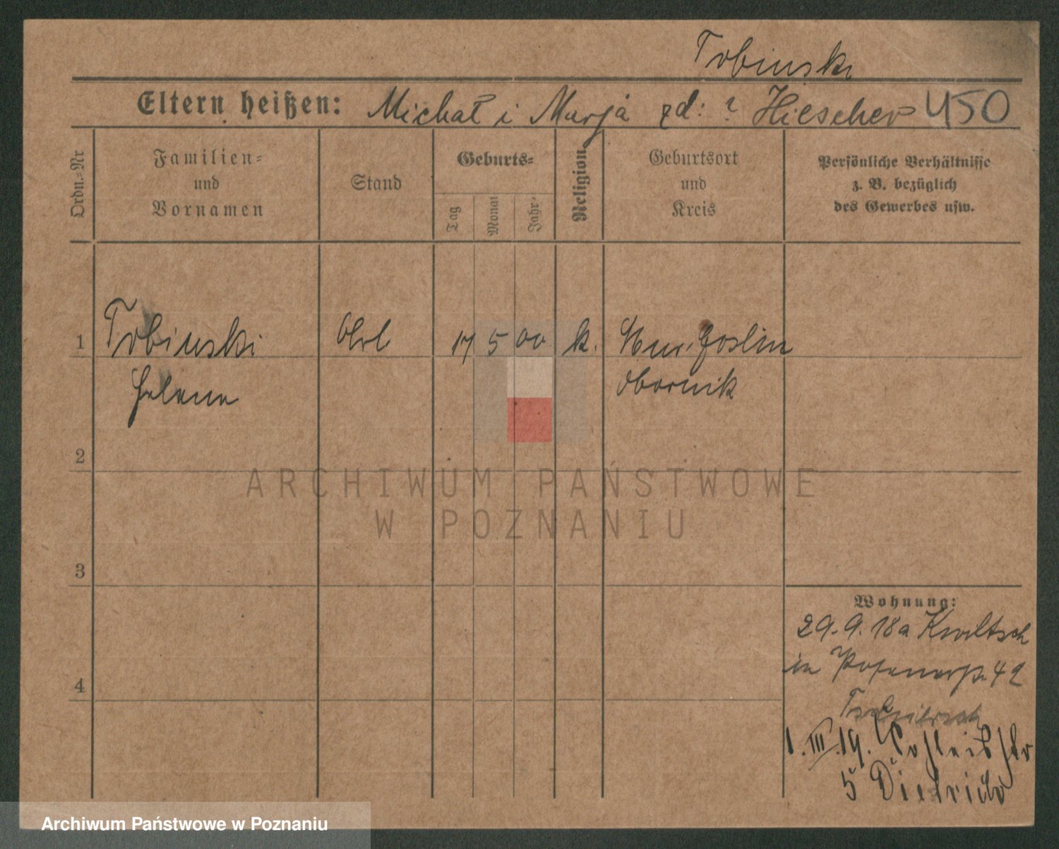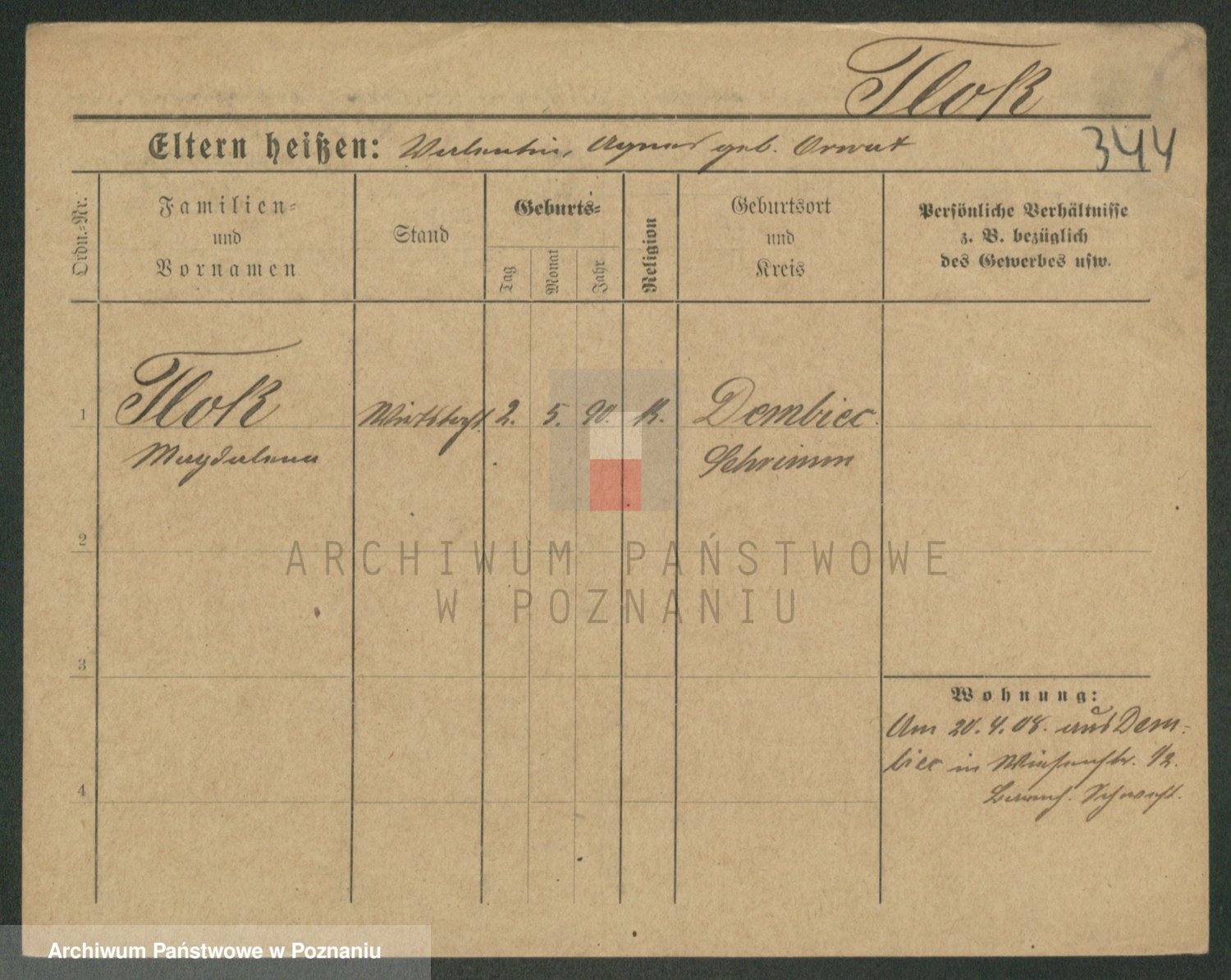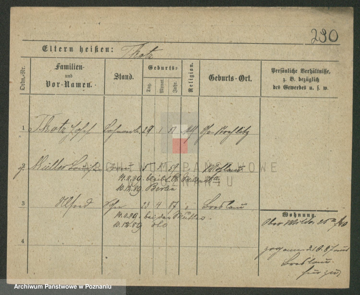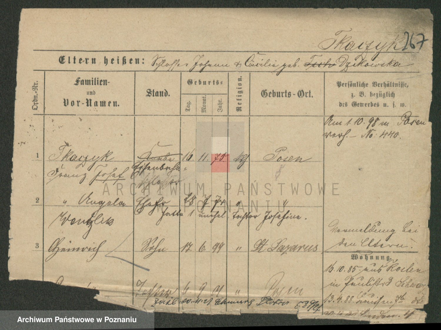 Podgląd karty osobowej dostępny jest po kliknięciu na nazwisko lub ikonkę karty. Można dokonywać powiększenia (ikony na górze) lub przechodzić między kolejnymi skanami (strzałki po bokach).